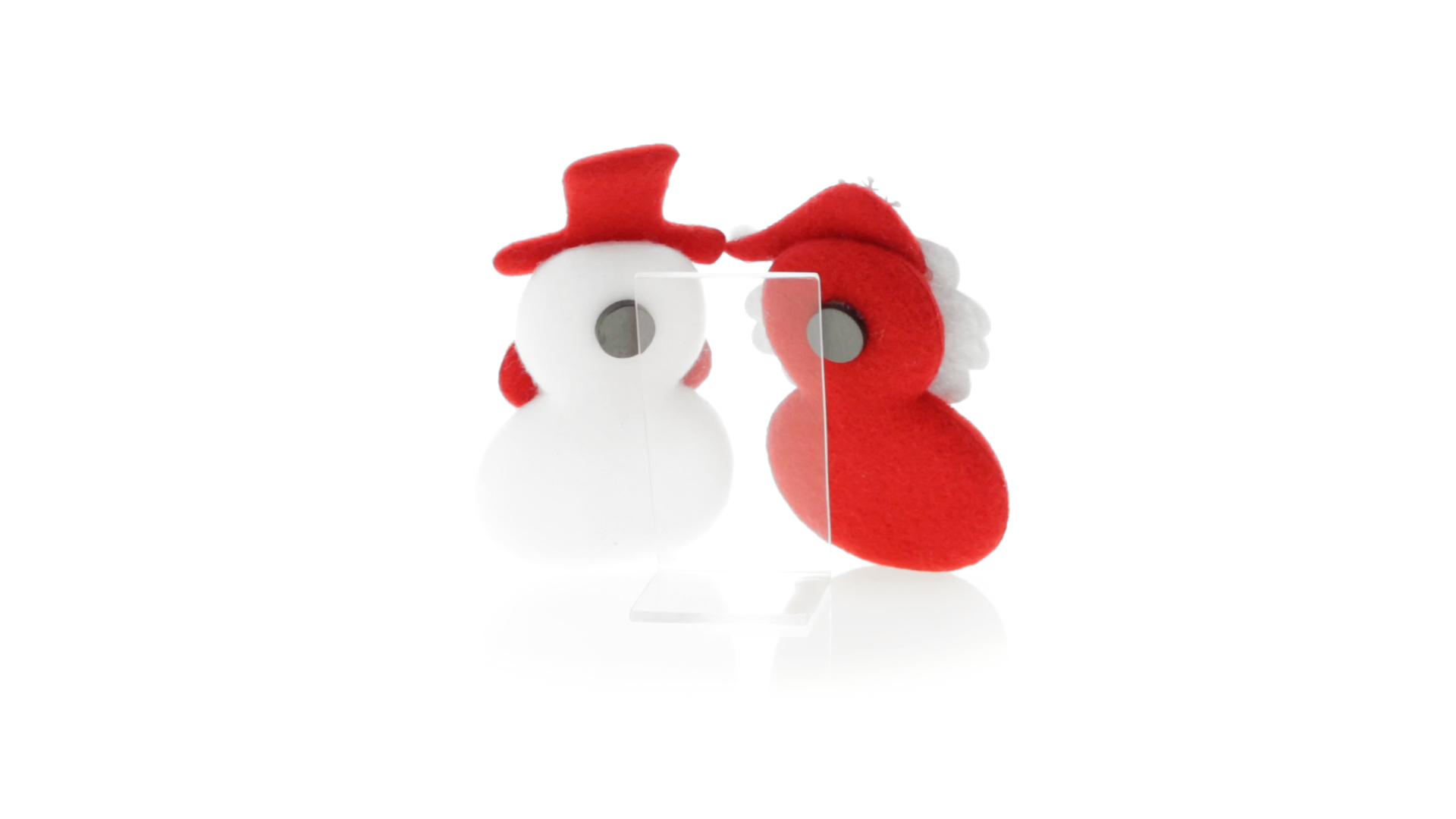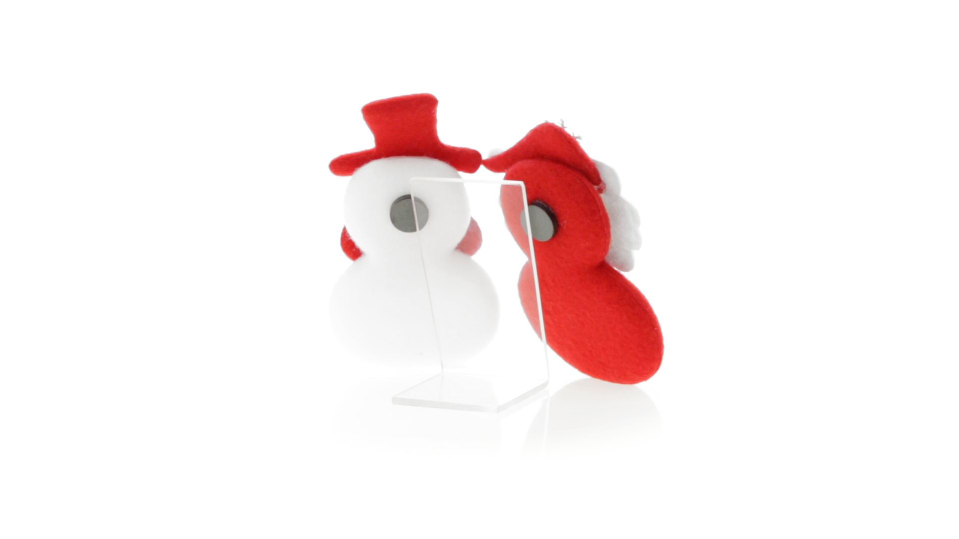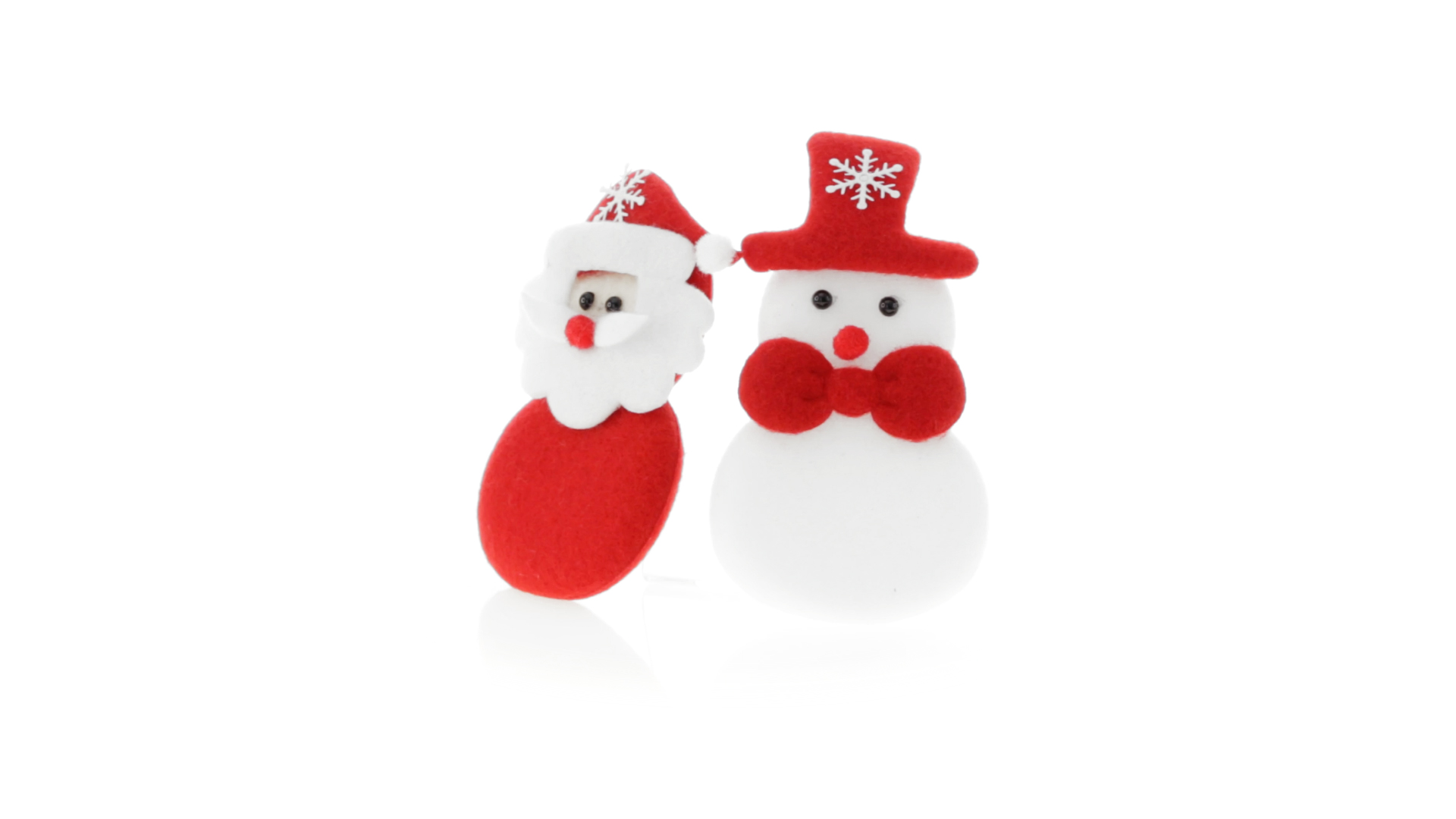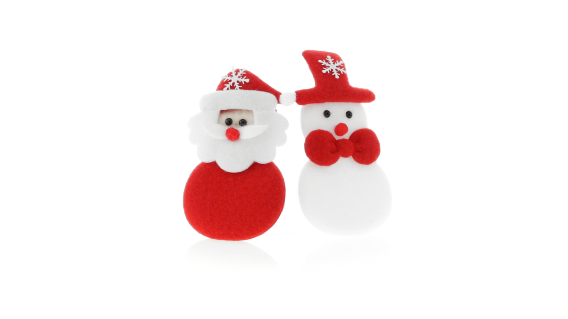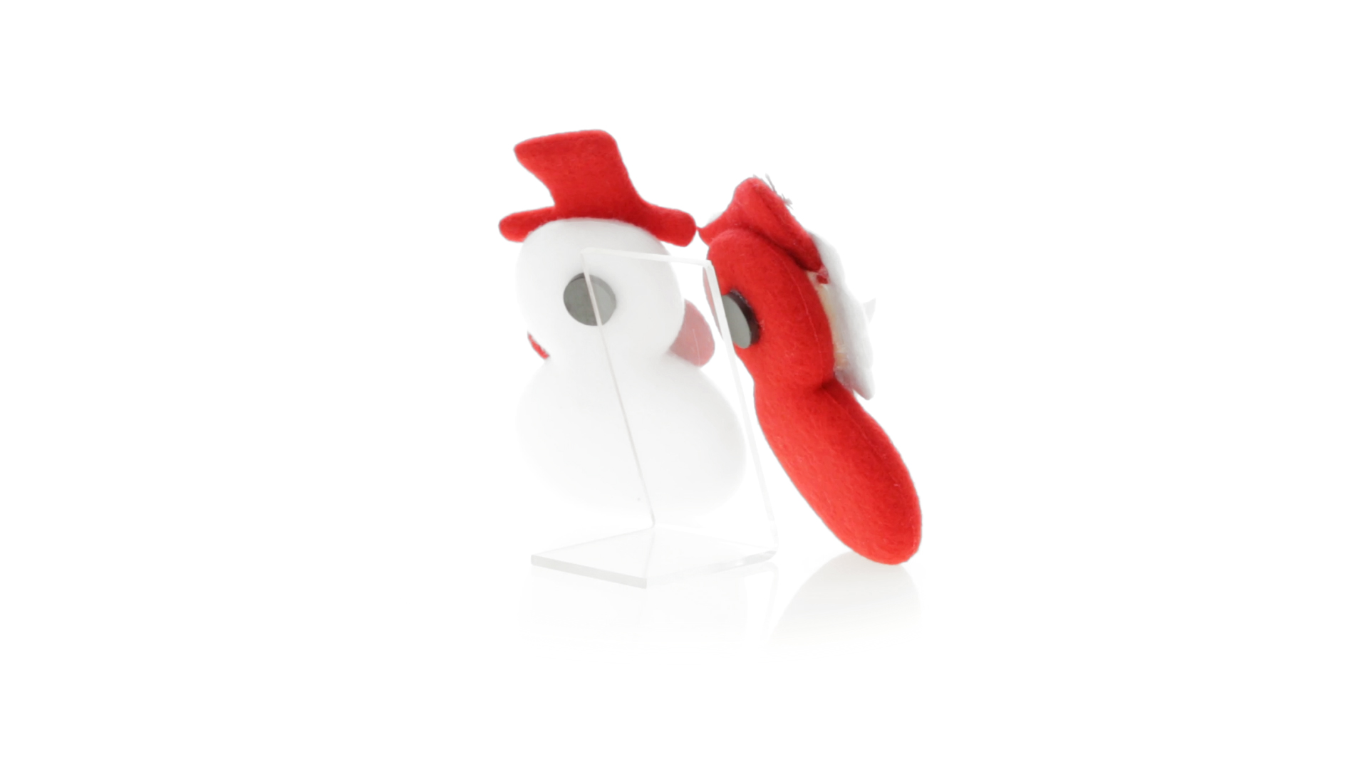 Origineller Weihnachtsmagnet aus weichem Polyester mit Weihnachtsmann- und Schneemannfiguren.