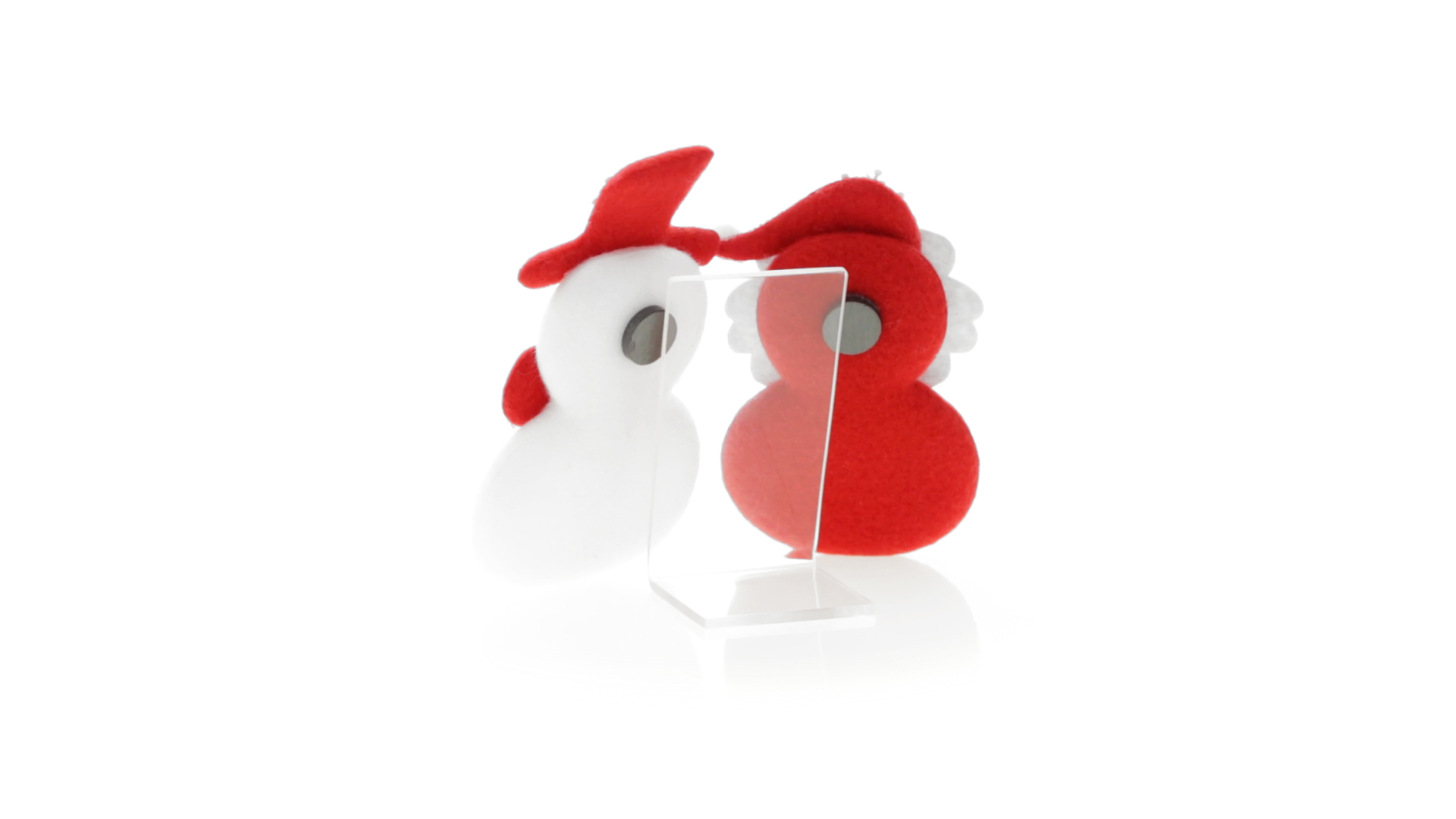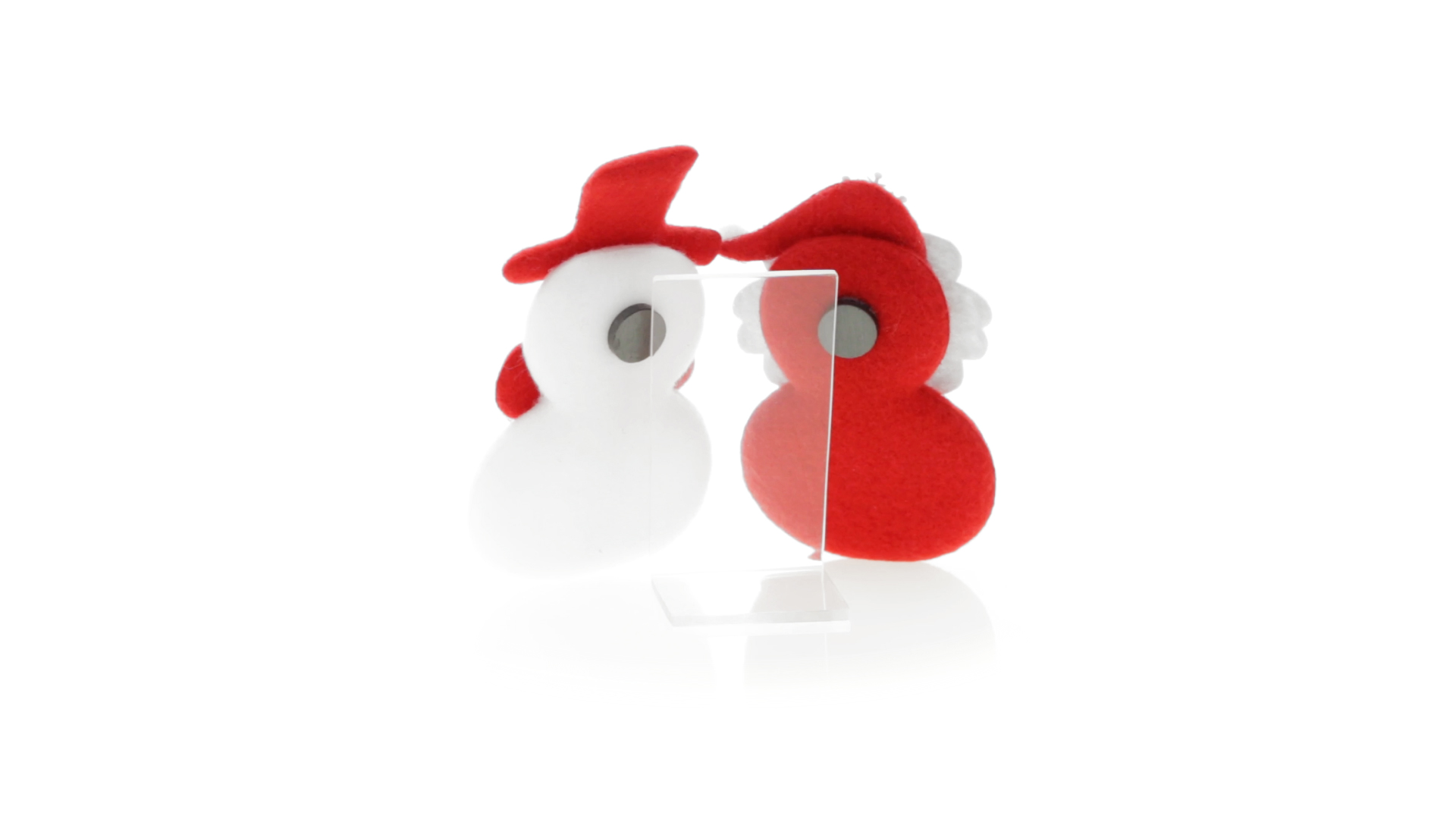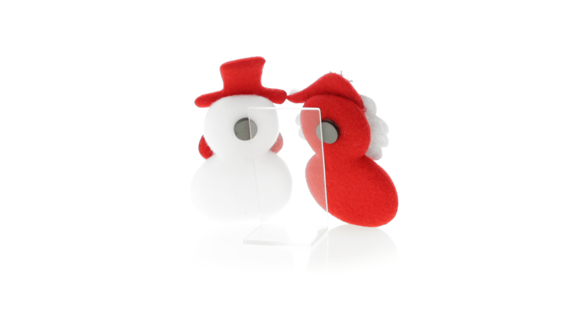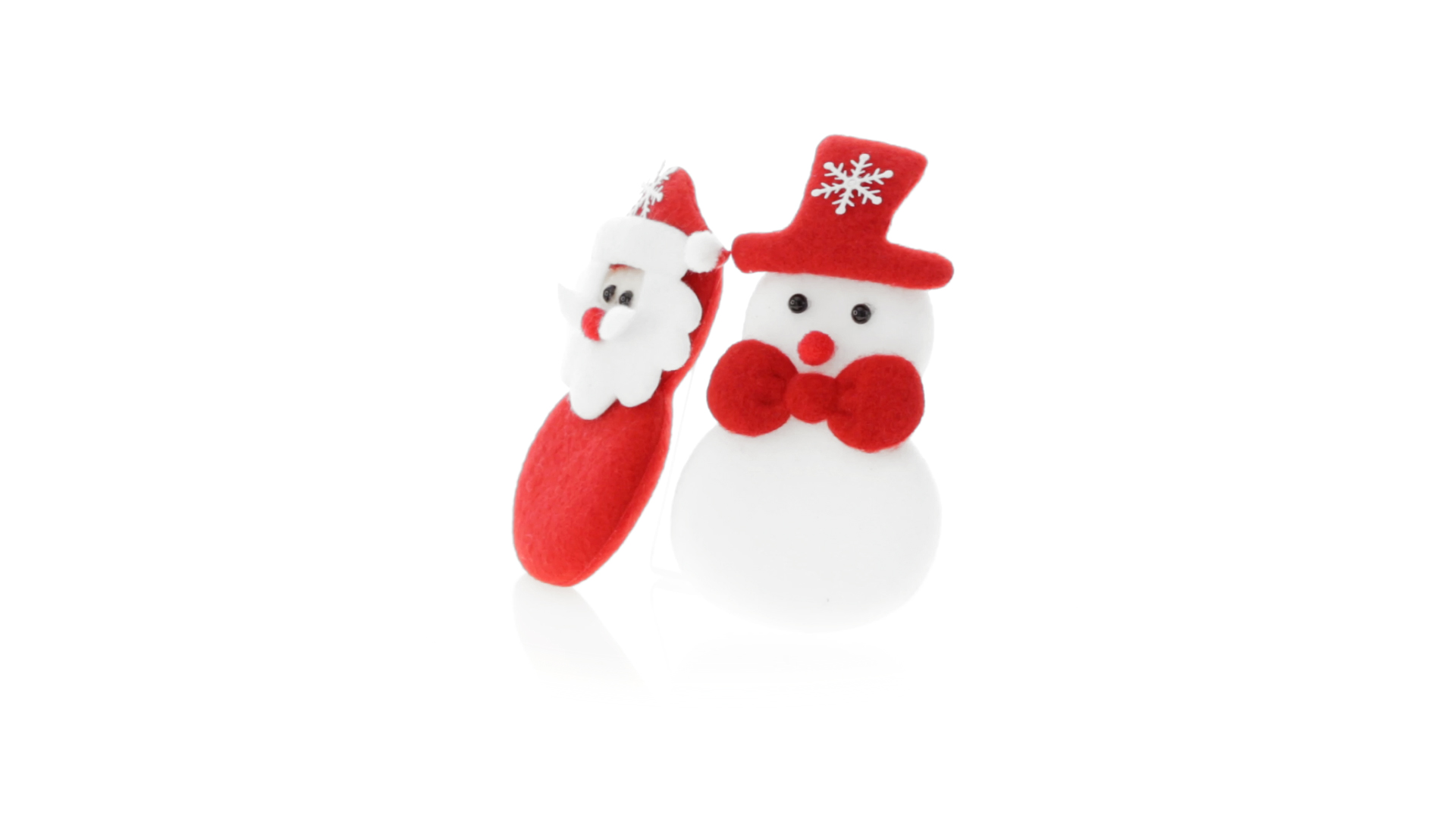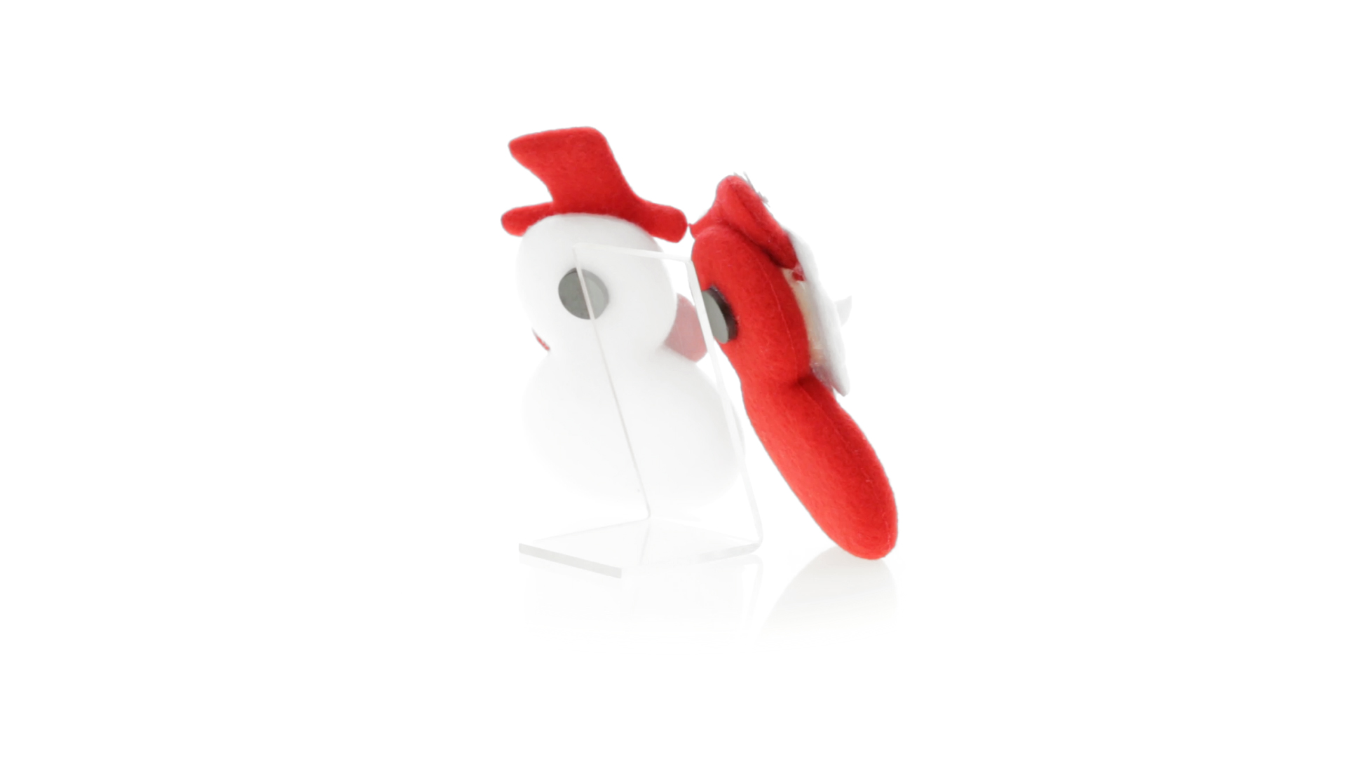 Origineller Weihnachtsmagnet aus weichem Polyester mit Weihnachtsmann- und Schneemannfiguren.
