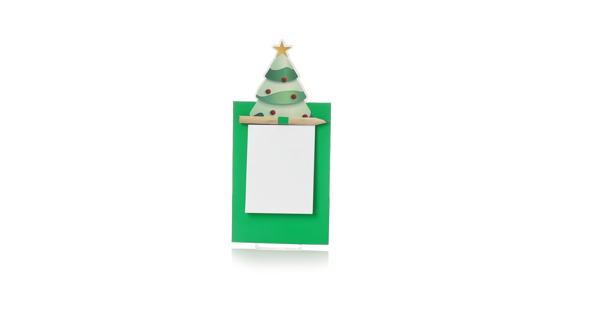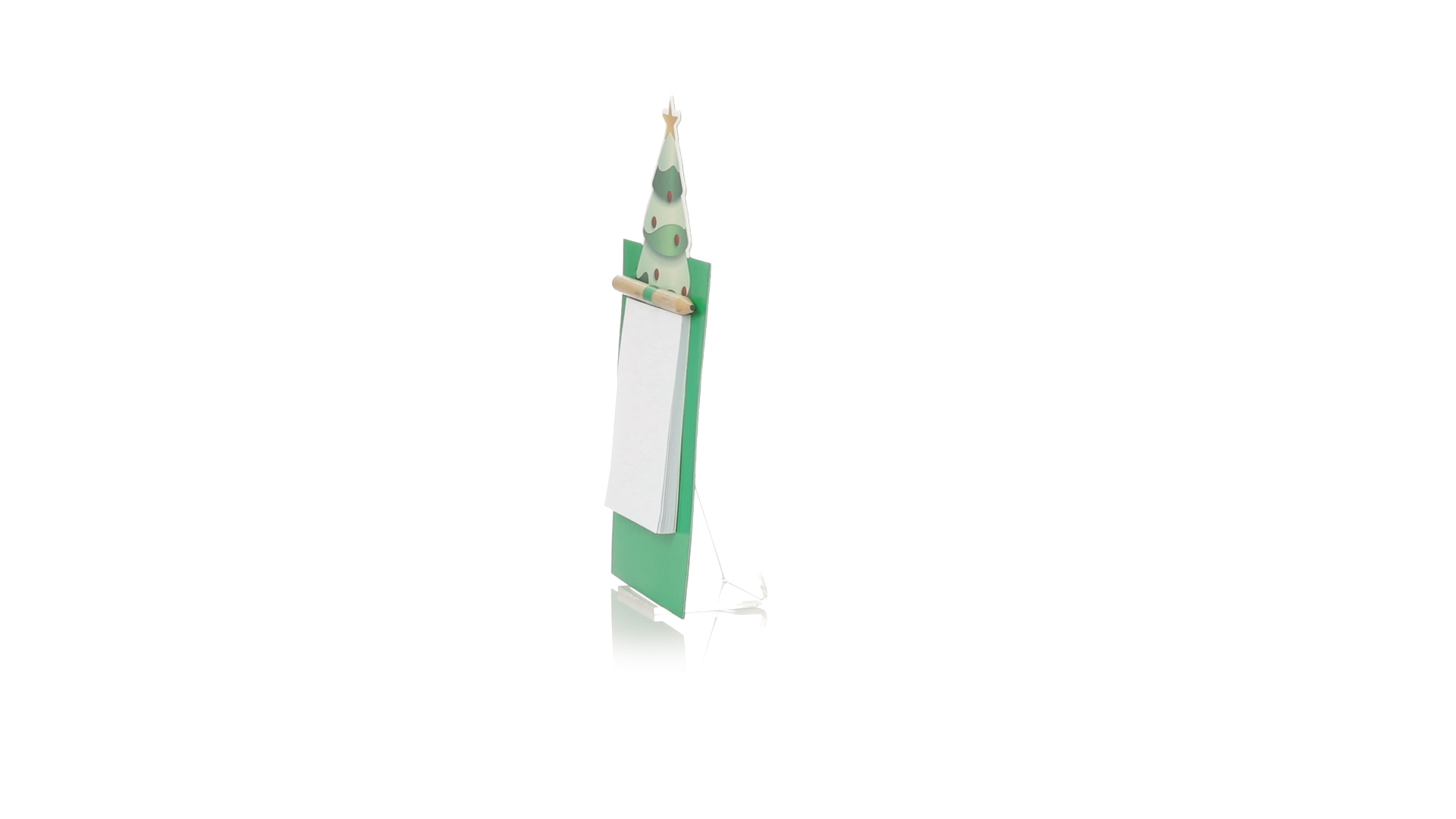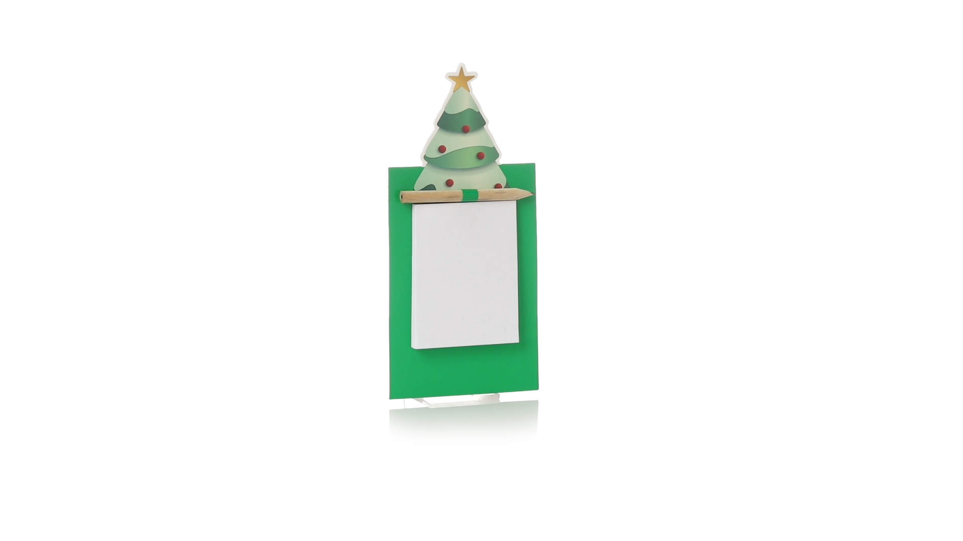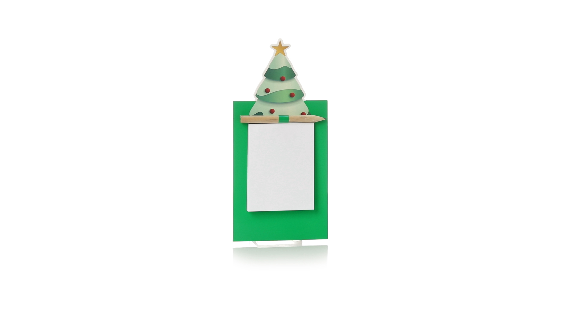 Magnet mit Notizblock in einem lustigen Weihnachtsbaumdesign. Inklusive 40 unbedruckten Blättern und Bleistift aus Naturholz.