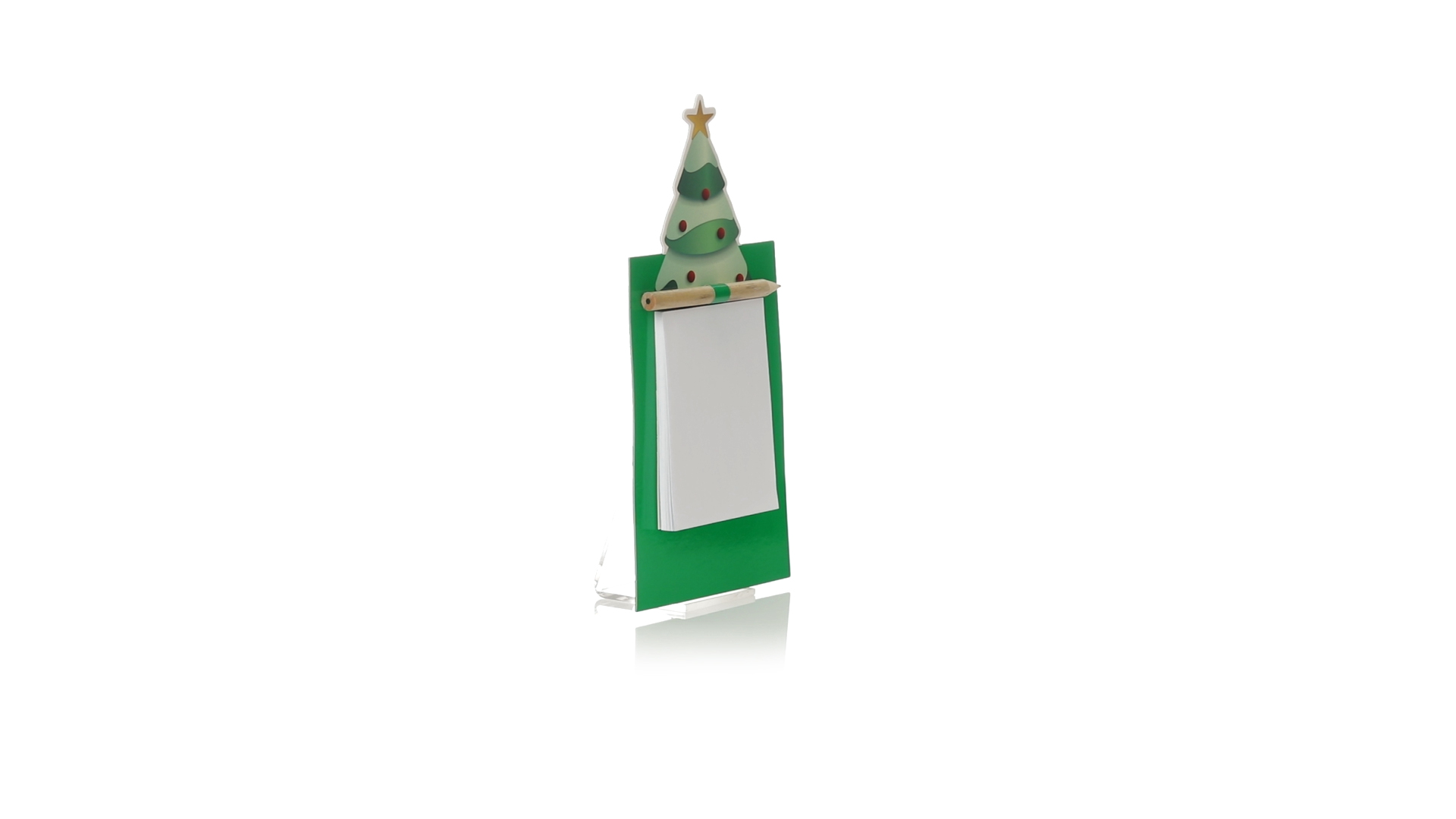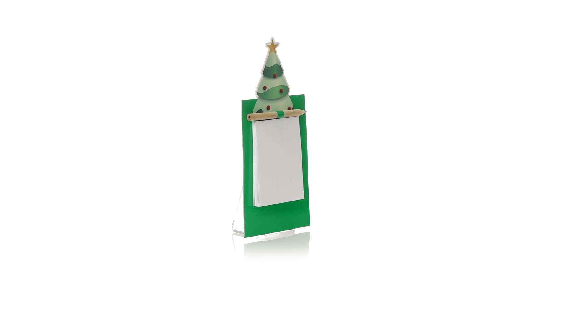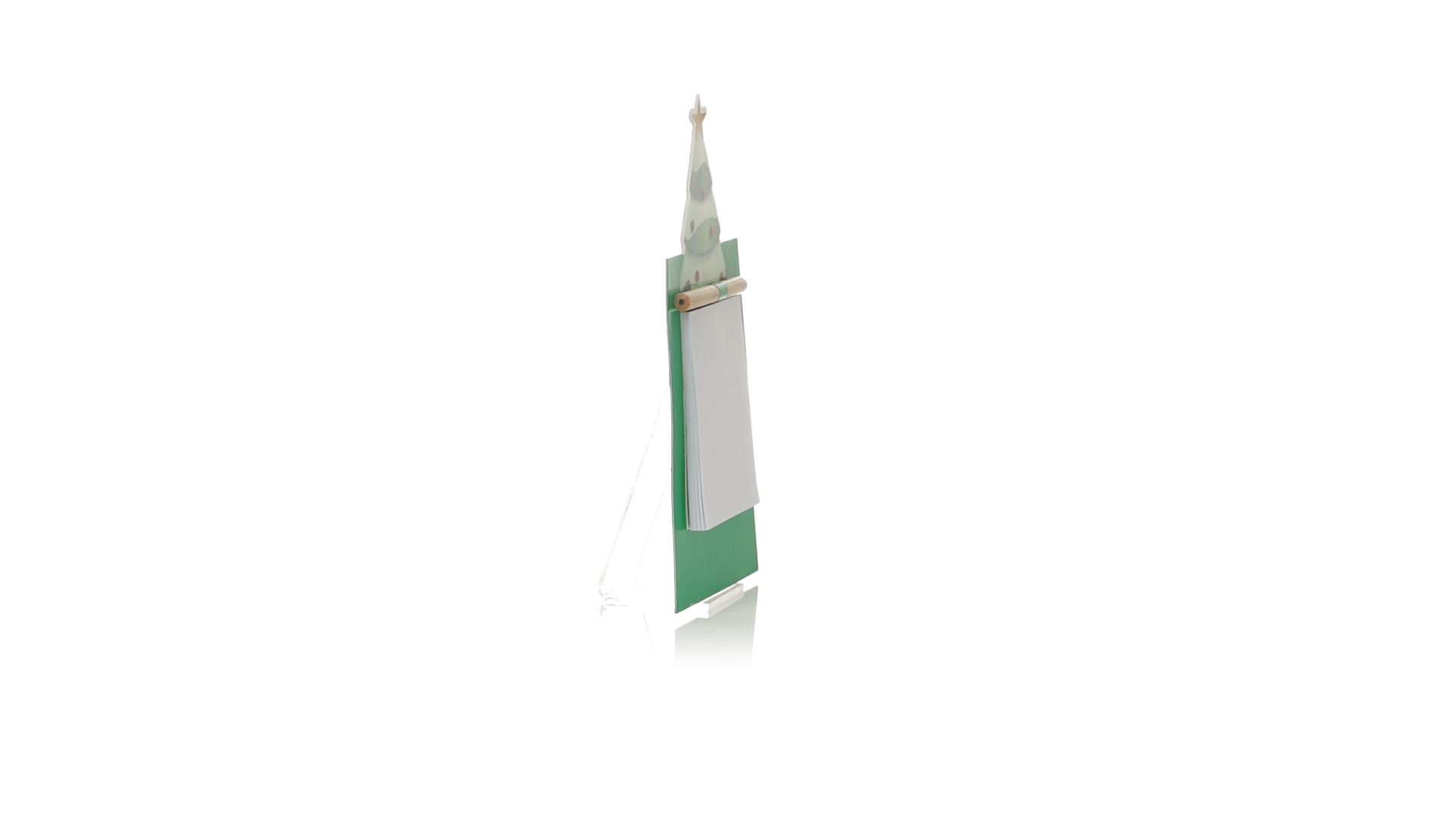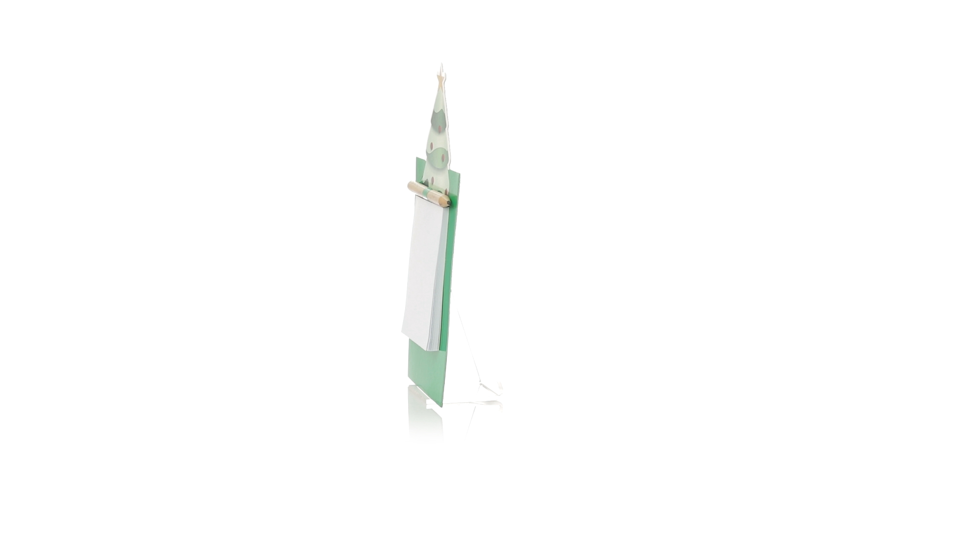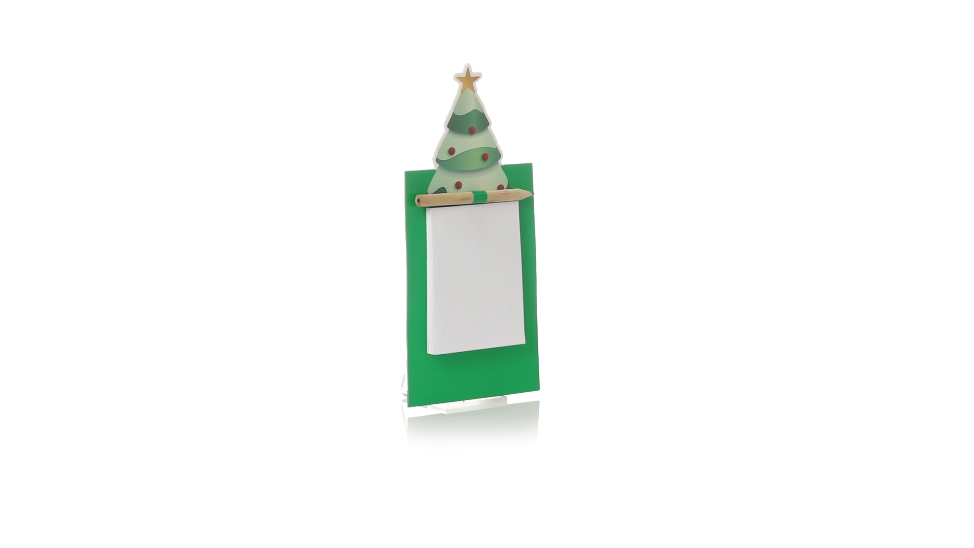 Magnet mit Notizblock in einem lustigen Weihnachtsbaumdesign. Inklusive 40 unbedruckten Blättern und Bleistift aus Naturholz.