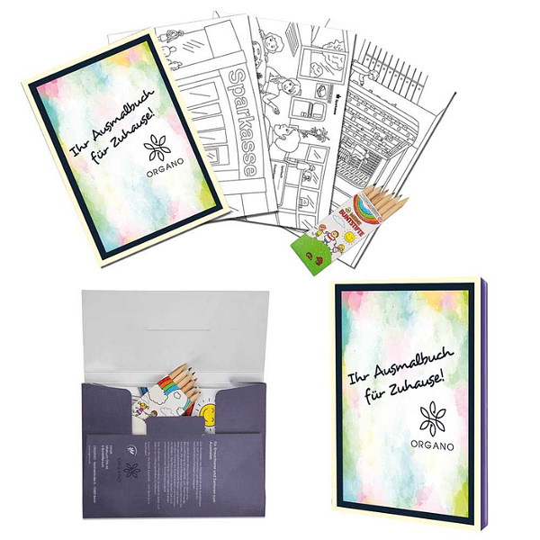 Das Highlight: Du kannst die Außenseiten von Malbuch und Mappe ab einer Mindestmenge von 500 Stück individuell bedrucken lassen – perfekt für dein Firmenevent, als kreatives Werbegeschenk oder als Give-away in Bildungseinrichtungen.