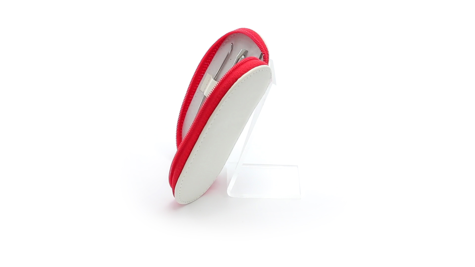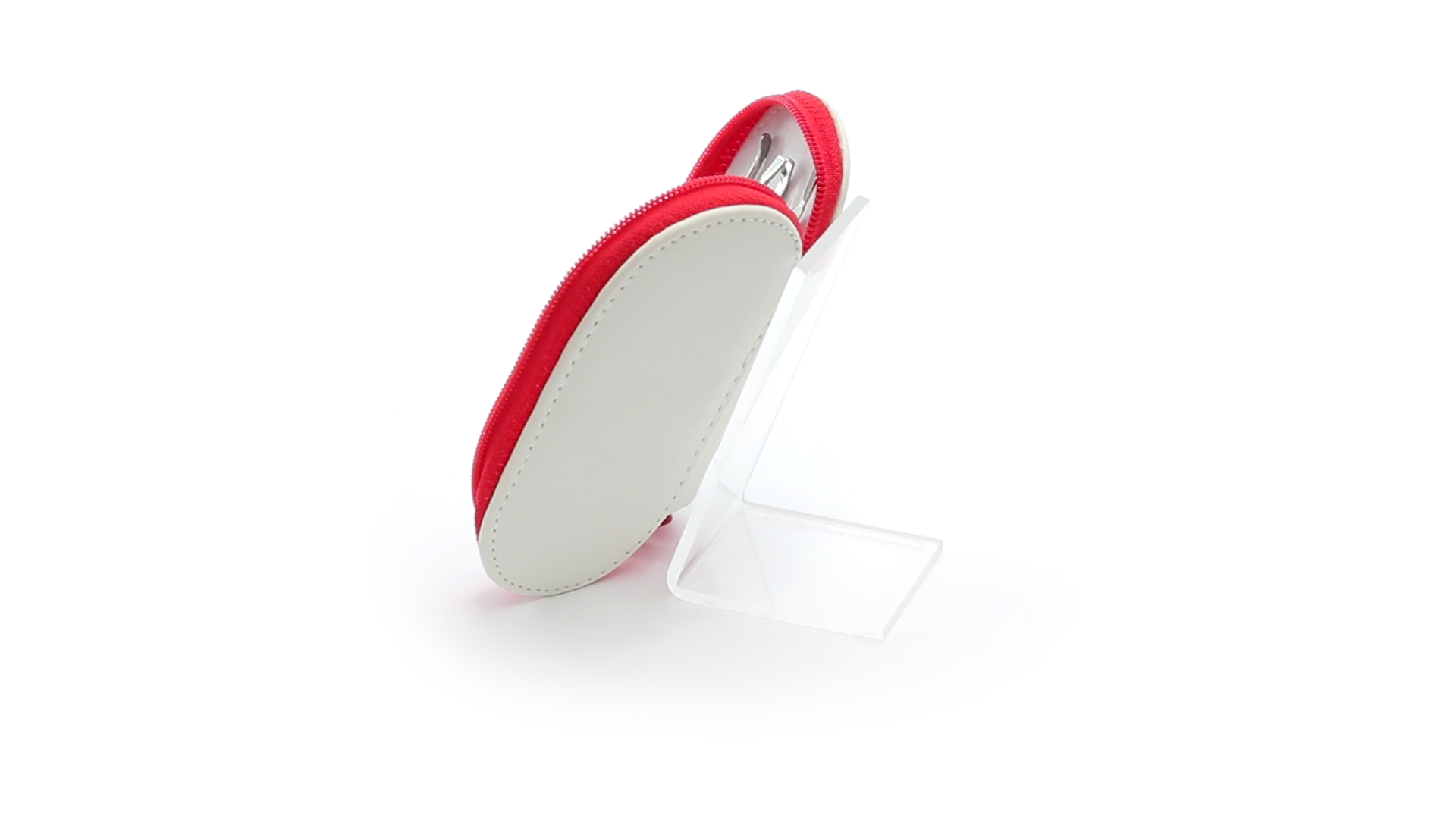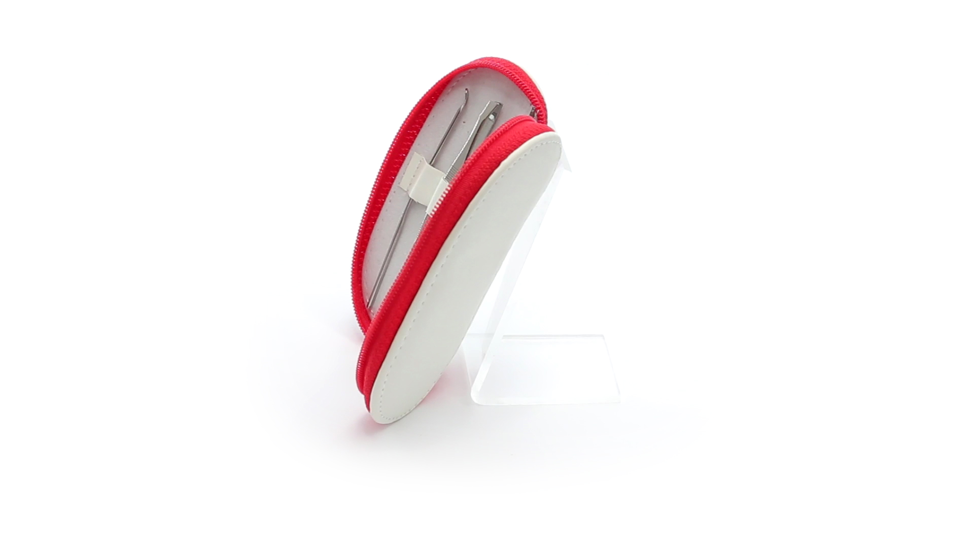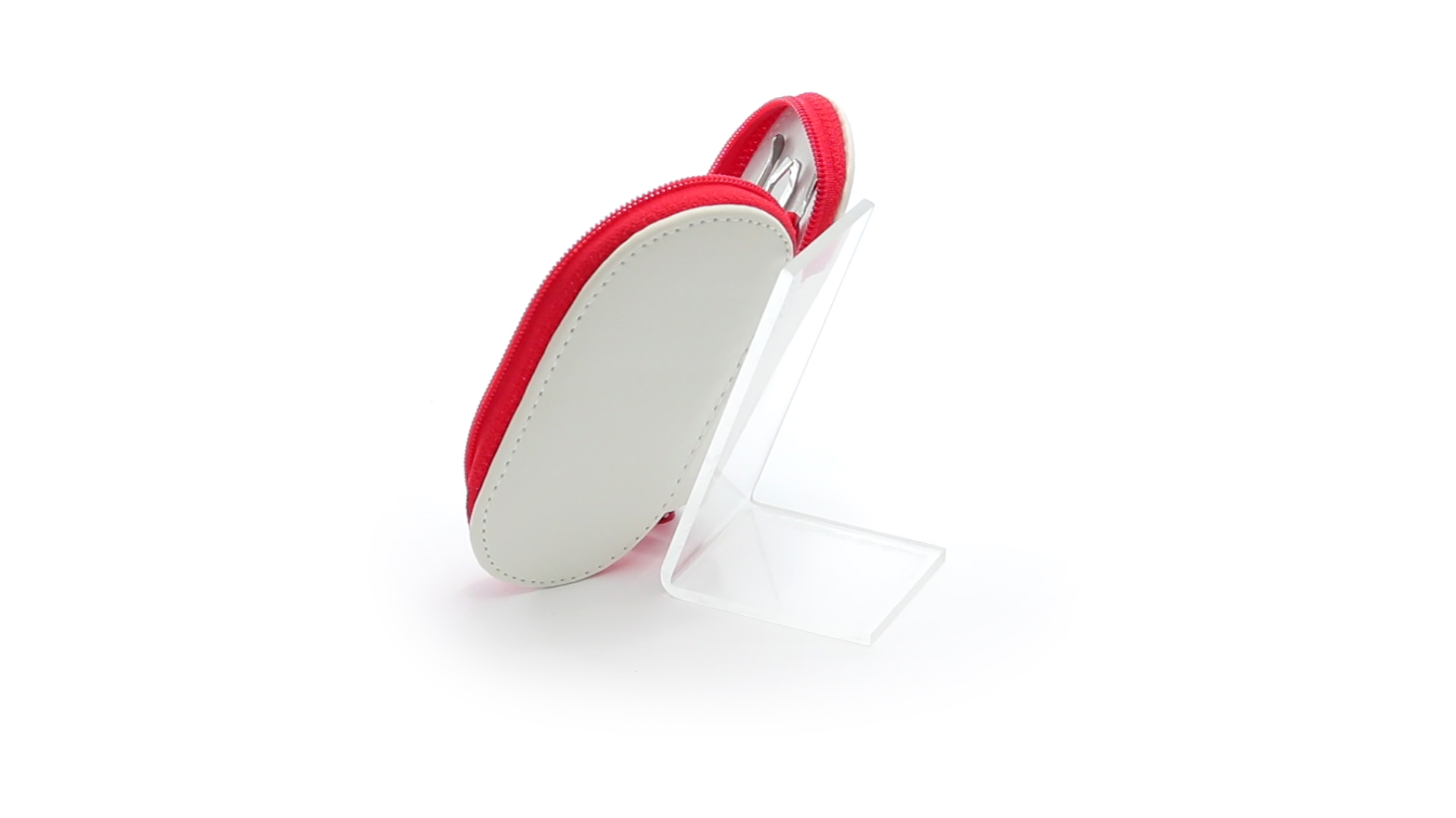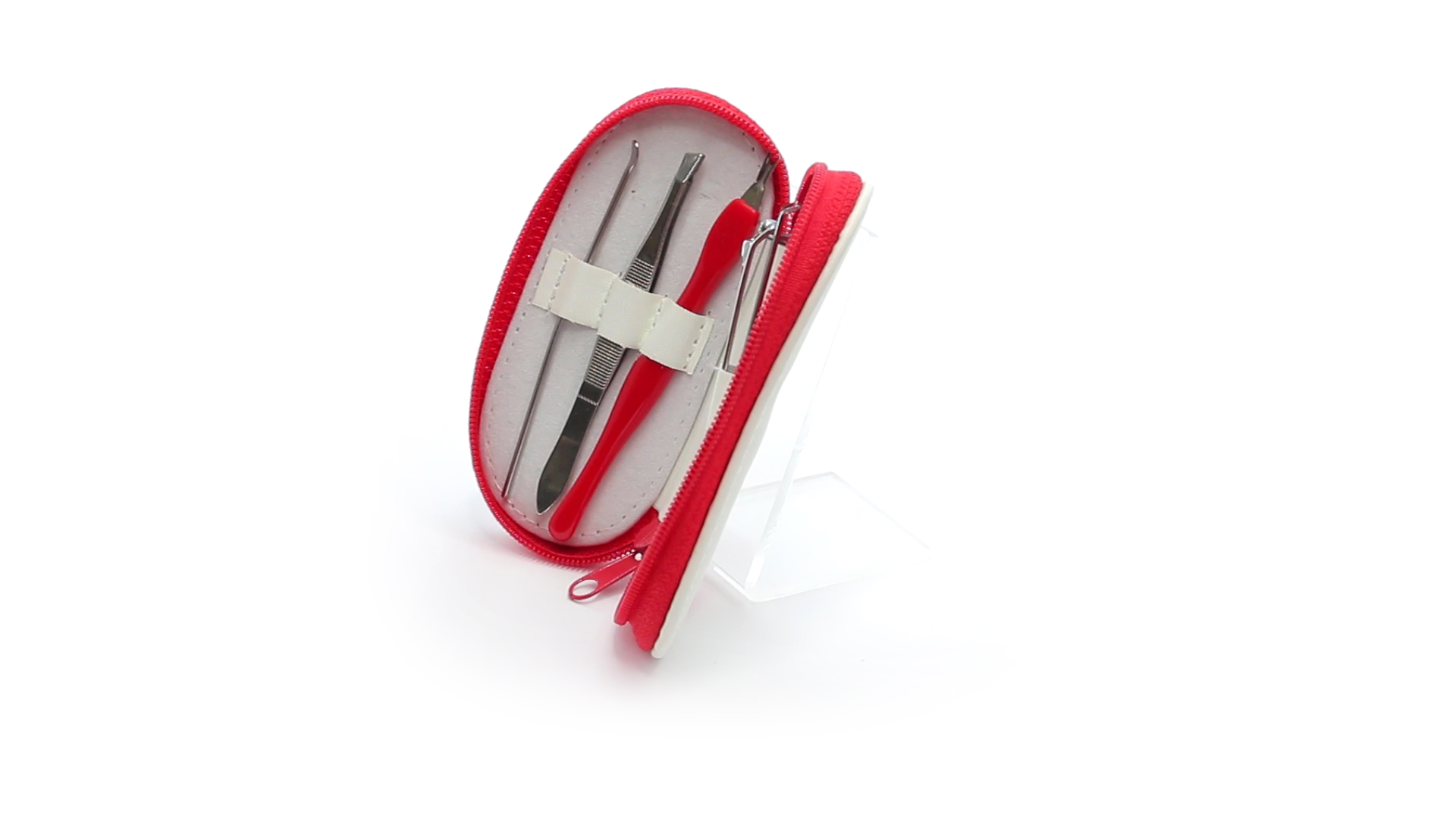 5-teiliges Maniküre-Set aus Edelstahl in einem Kunstleder-Etui mit Reissverschluss in lebendigen Farben. Enthält Nagelhautschneider, Feile, Nagelknipser, Pinzette und Nagelzubehör.