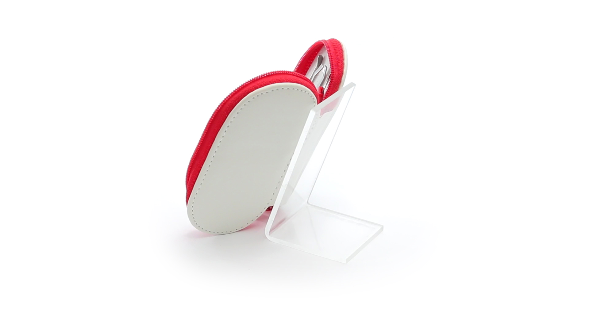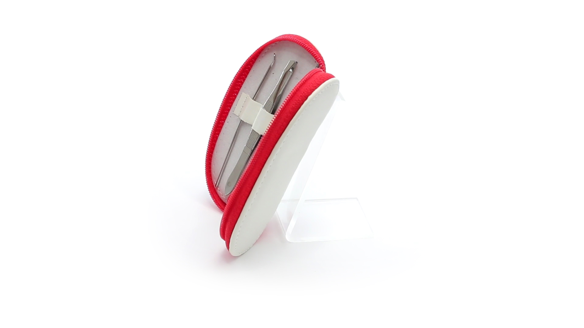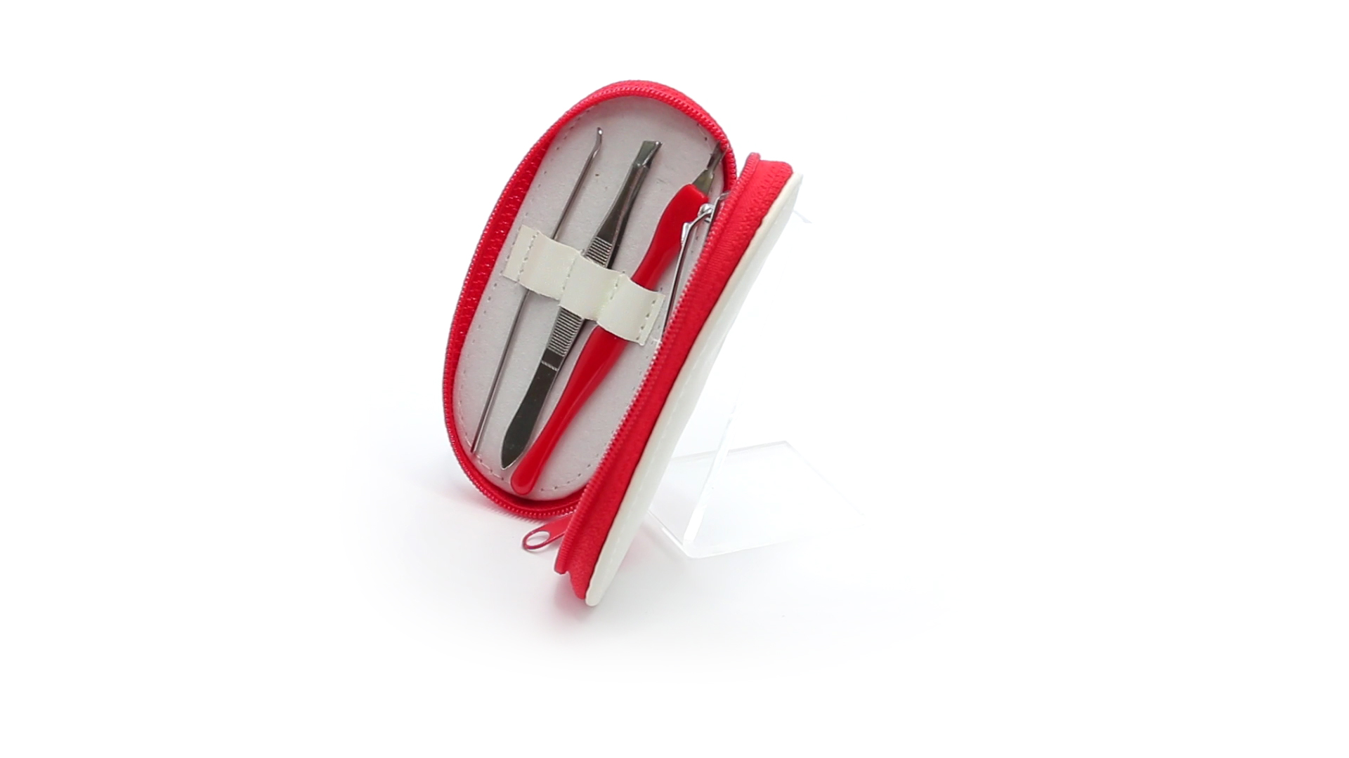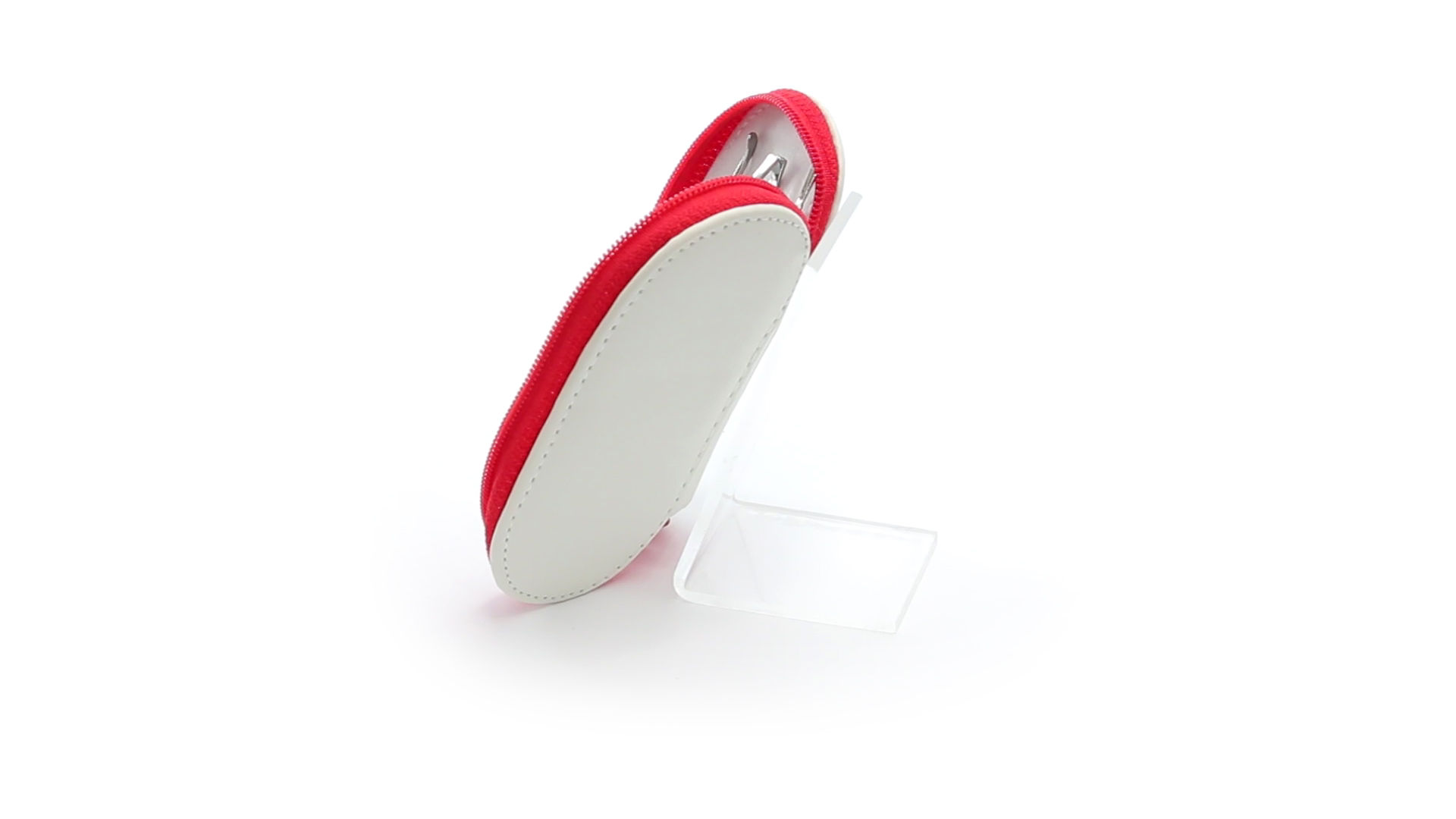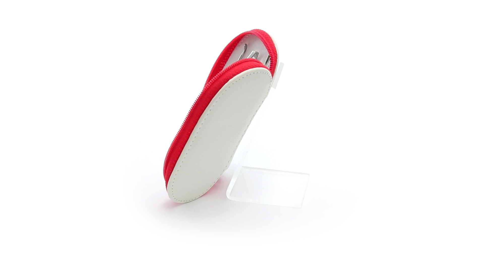 5-teiliges Maniküre-Set aus Edelstahl in einem Kunstleder-Etui mit Reissverschluss in lebendigen Farben. Enthält Nagelhautschneider, Feile, Nagelknipser, Pinzette und Nagelzubehör.