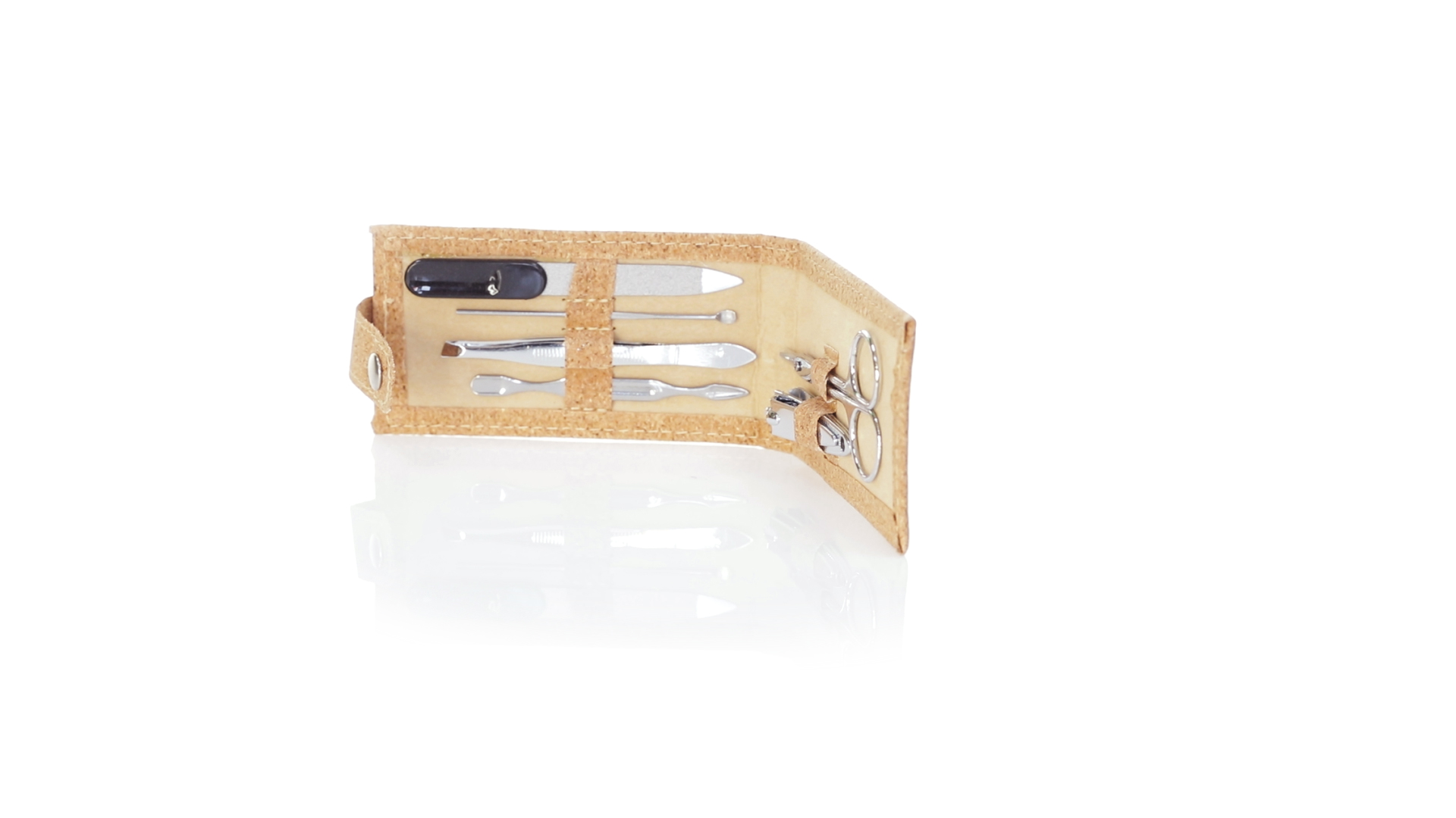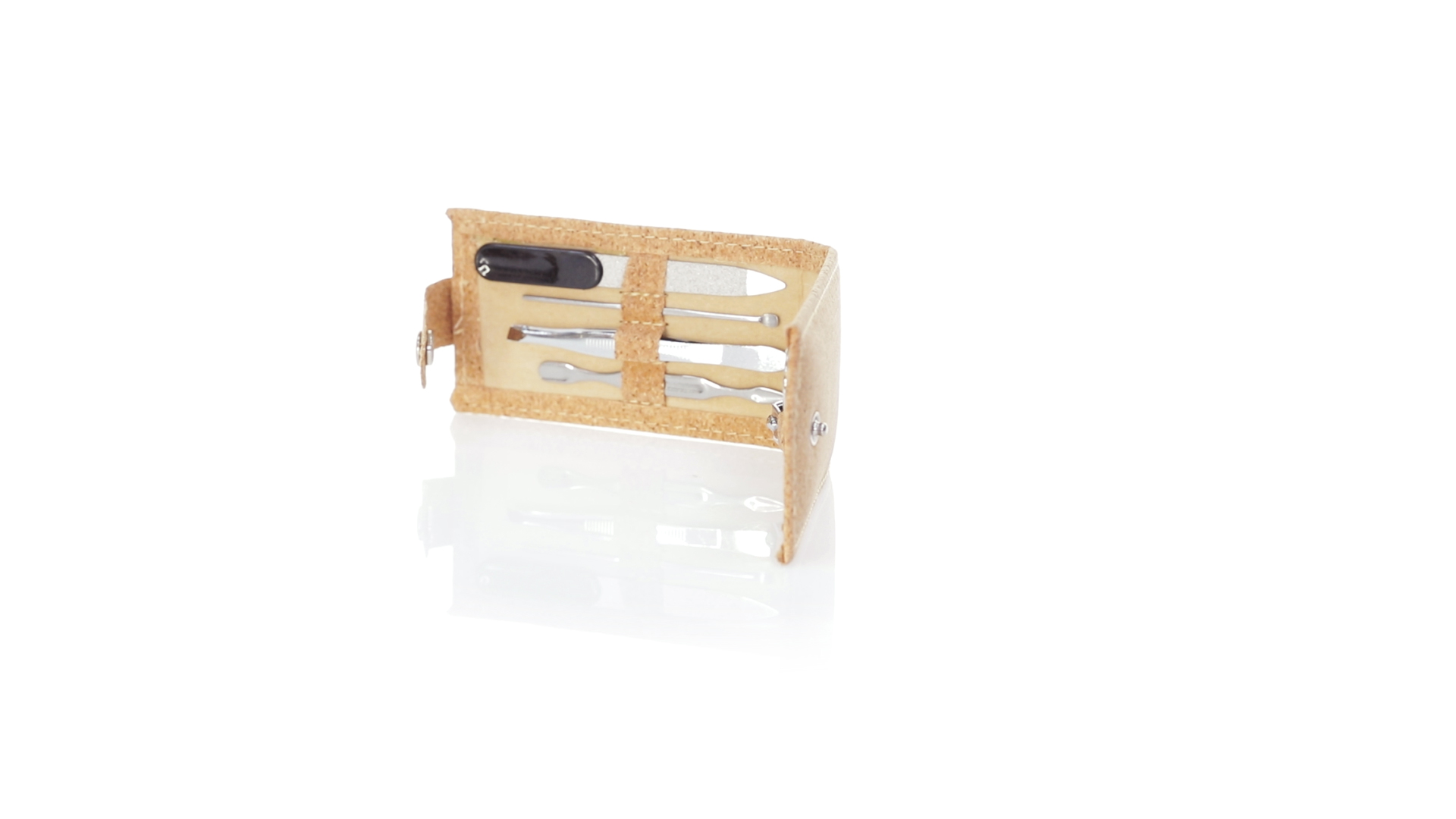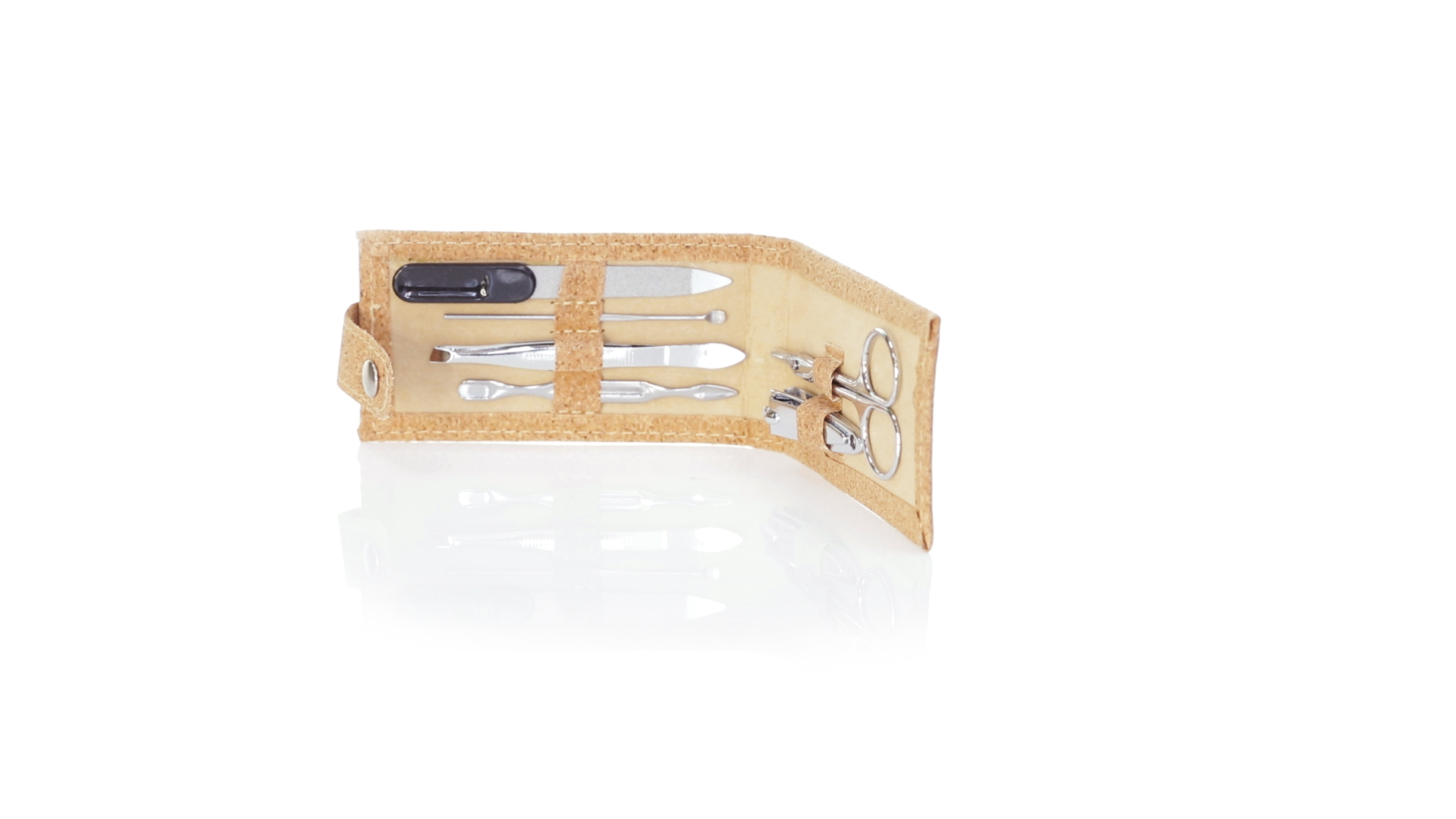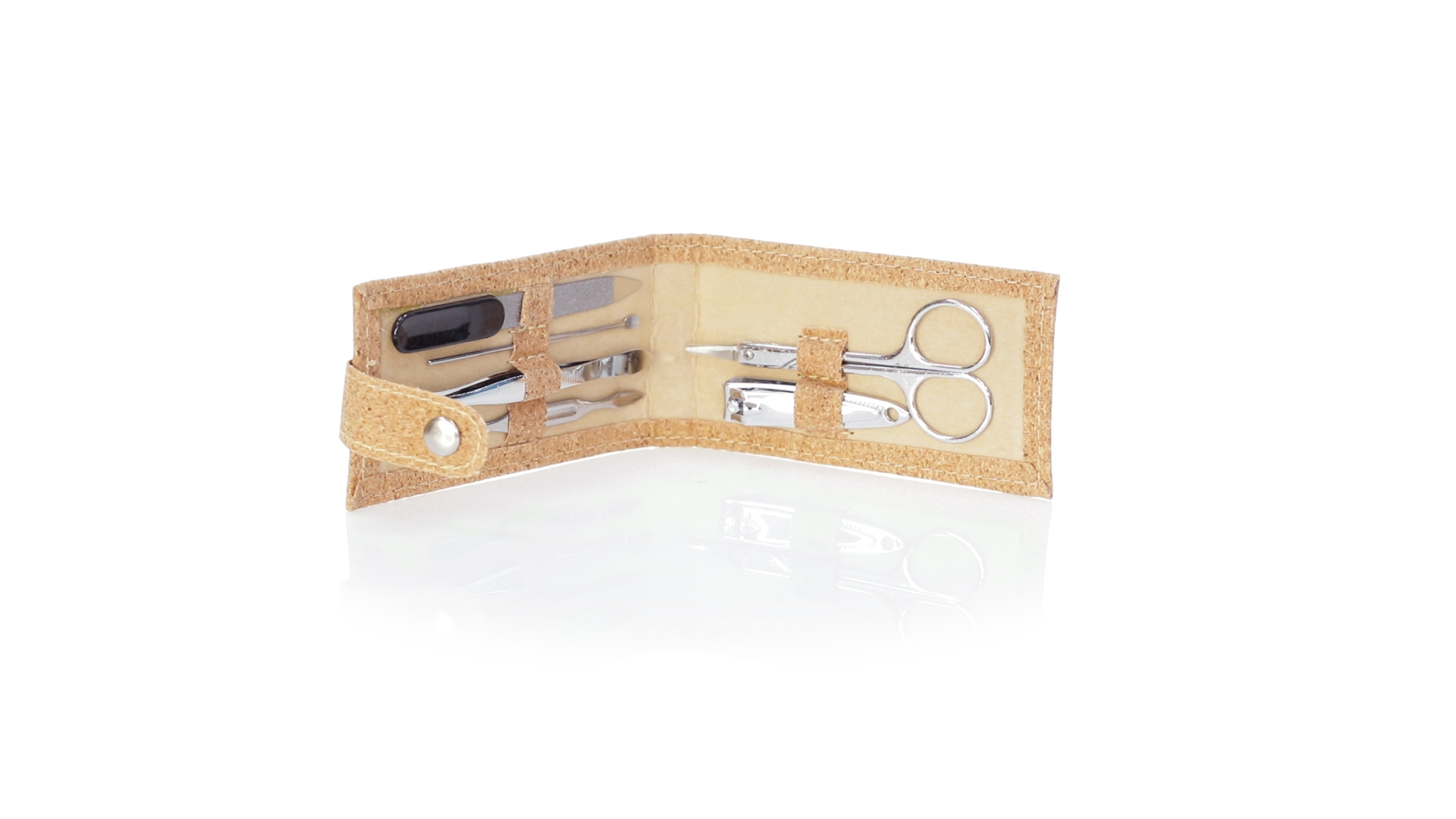 Linie "Natur" Maniküre-Set in einem Korketui, um die Verwendung natürlicher Rohstoffe zu fördern und Schadstoffemissionen zu reduzieren. Inklusive 6 Zubehörteile aus Edelstahl: Schere, Pinzette, Nagelknipser, Nagelfeile und 2 Nagelhautentferner. Innenliegende Zubehörhalter und Knopfverschluss. Vollständig ausklappbar für einfaches Branding.