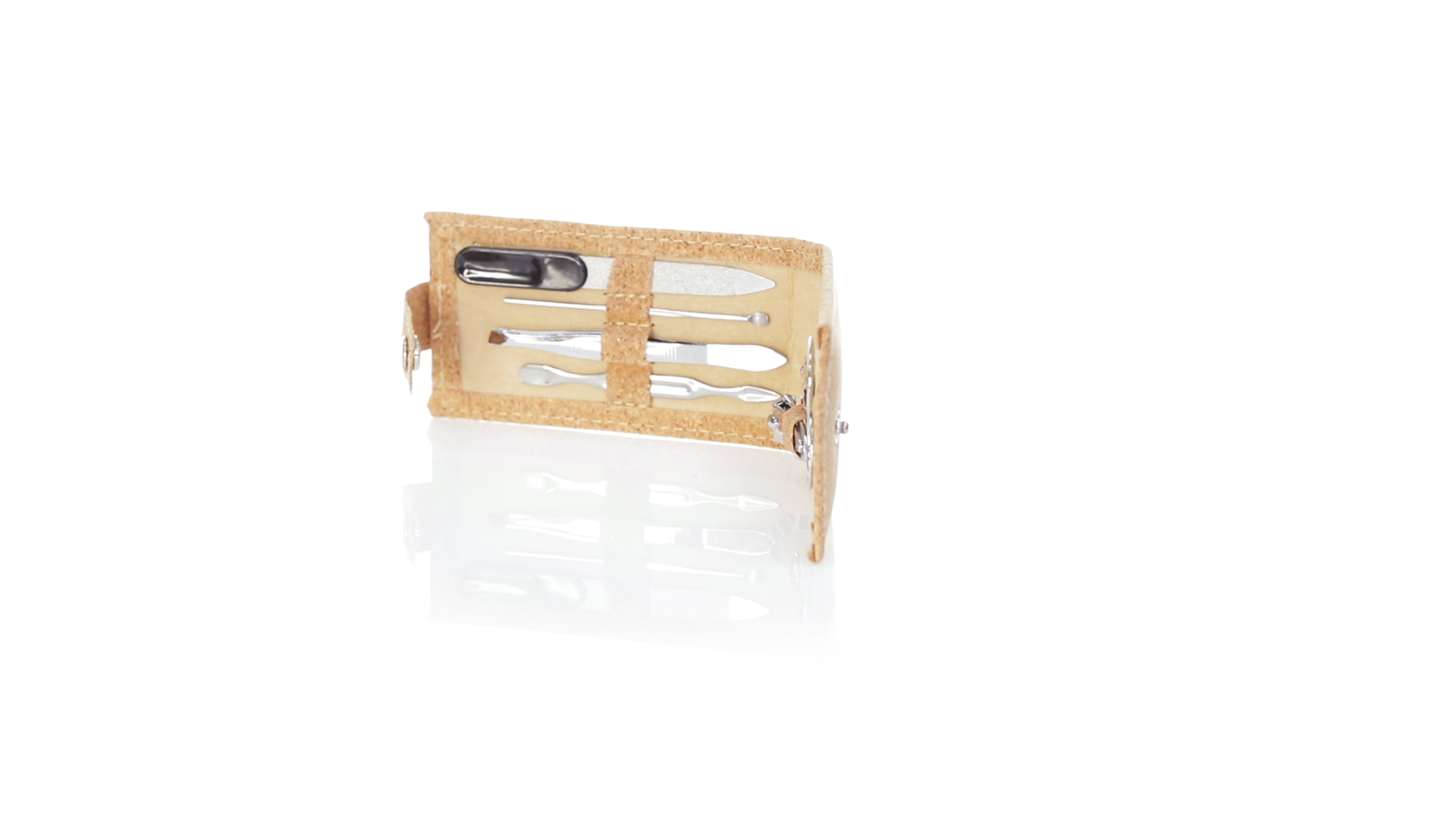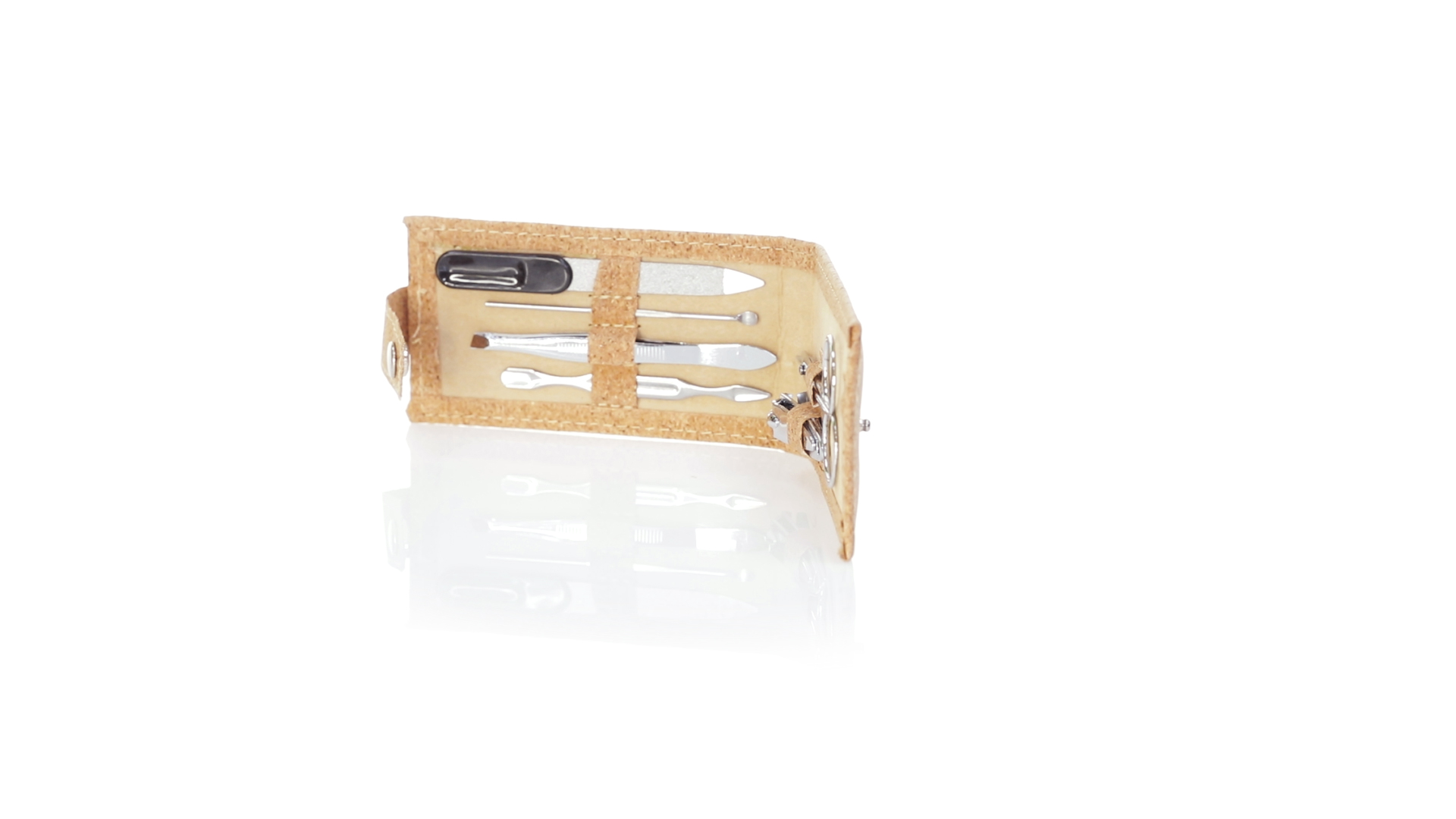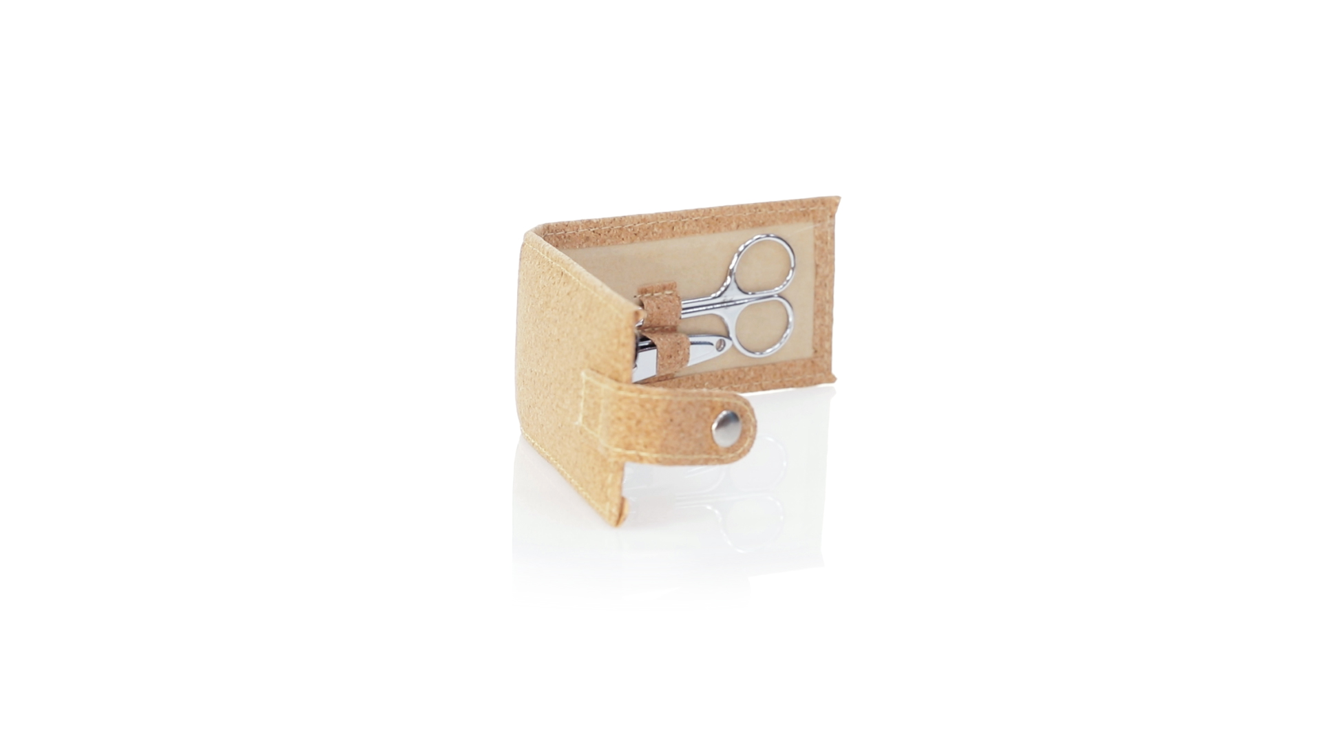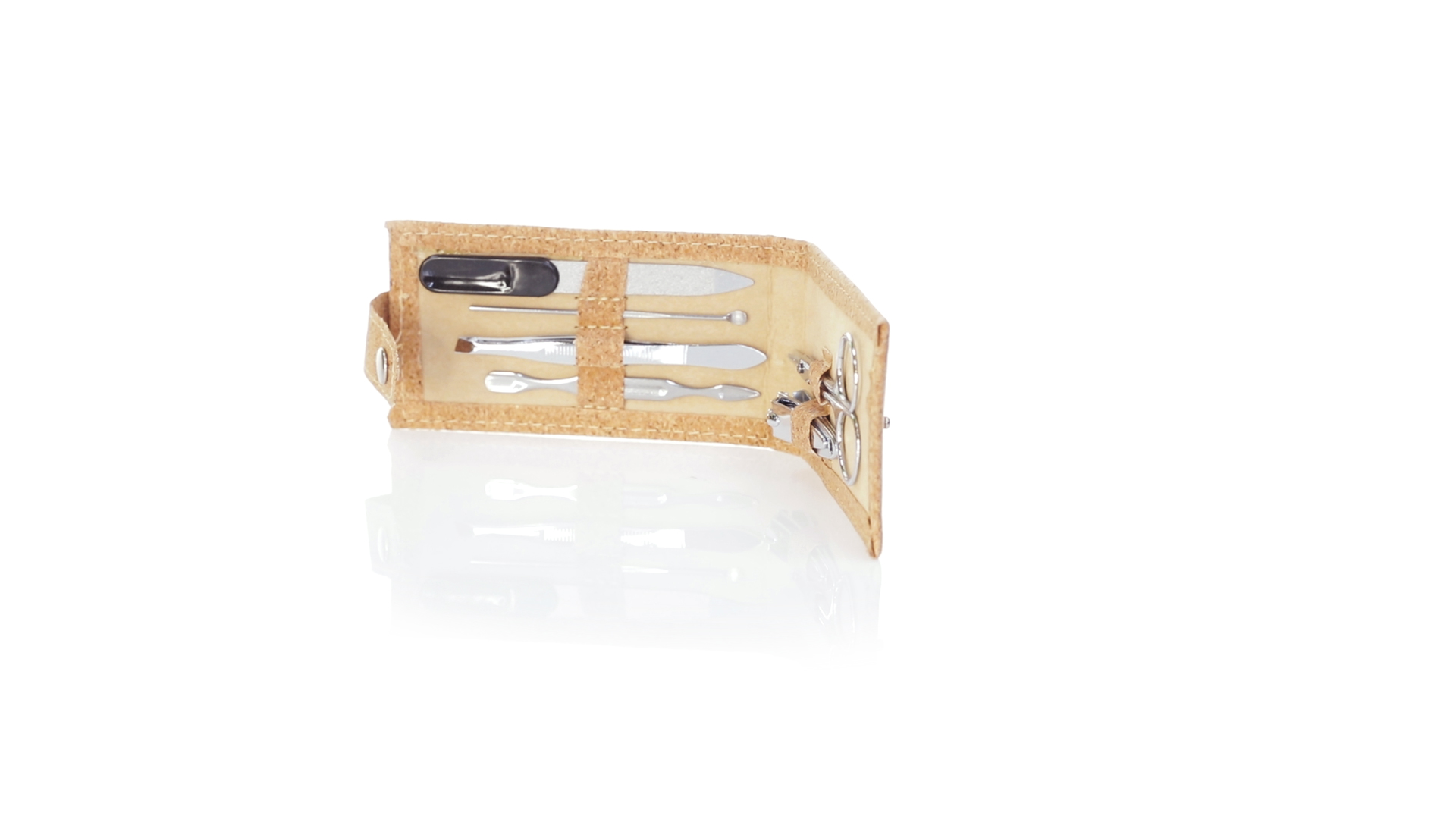 Linie "Natur" Maniküre-Set in einem Korketui, um die Verwendung natürlicher Rohstoffe zu fördern und Schadstoffemissionen zu reduzieren. Inklusive 6 Zubehörteile aus Edelstahl: Schere, Pinzette, Nagelknipser, Nagelfeile und 2 Nagelhautentferner. Innenliegende Zubehörhalter und Knopfverschluss. Vollständig ausklappbar für einfaches Branding.