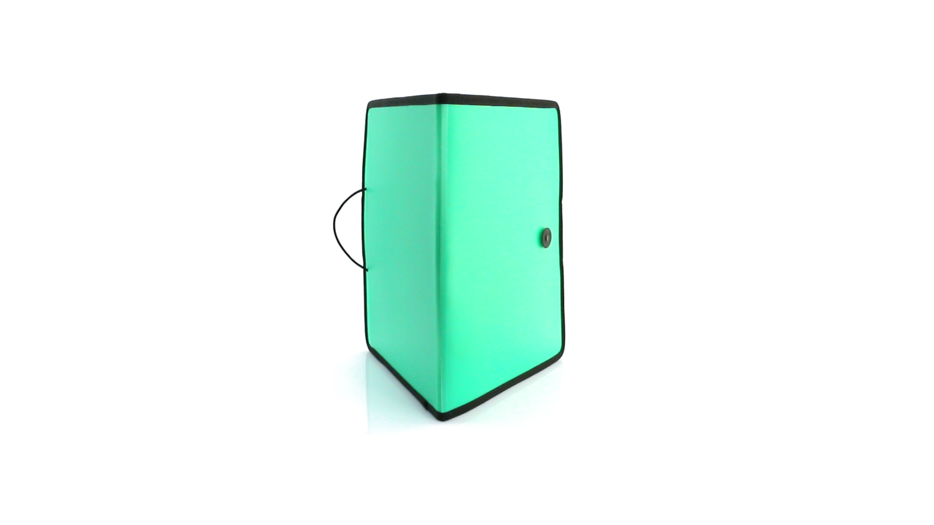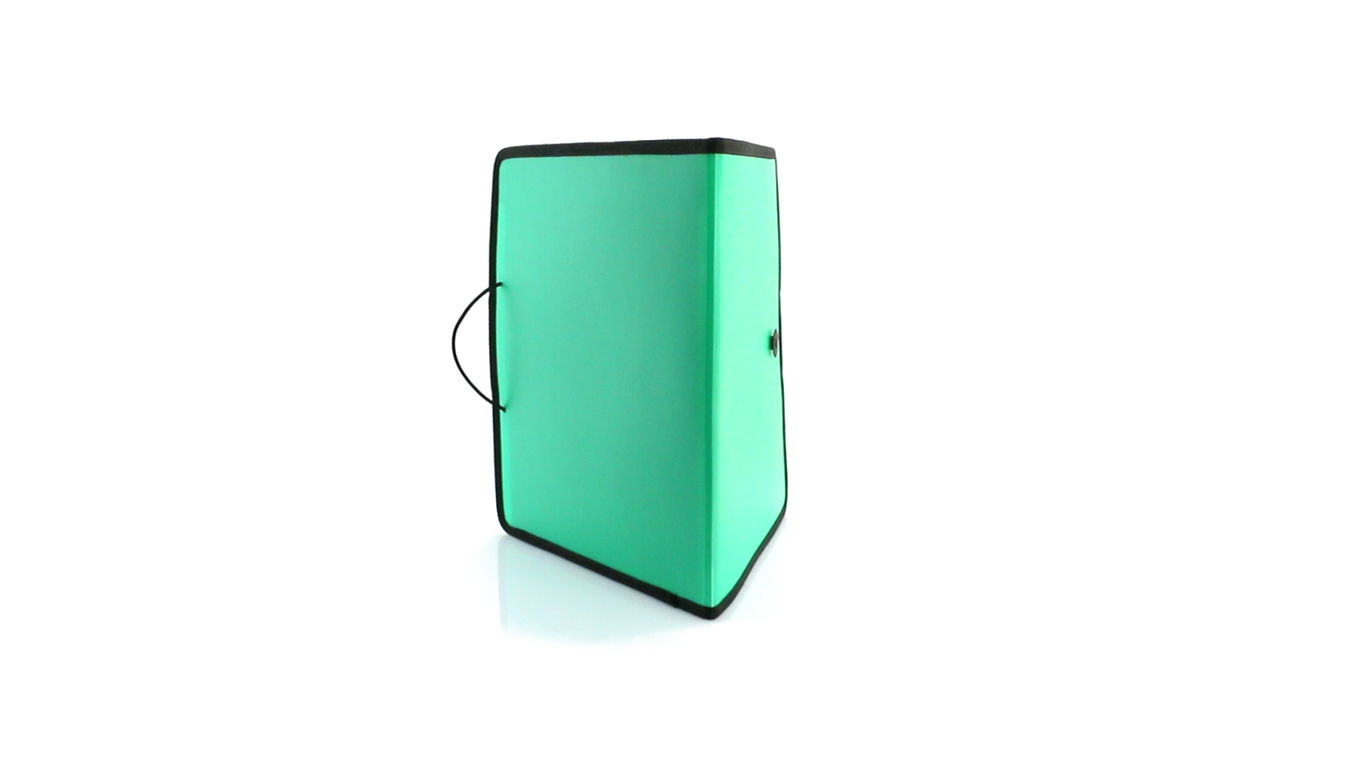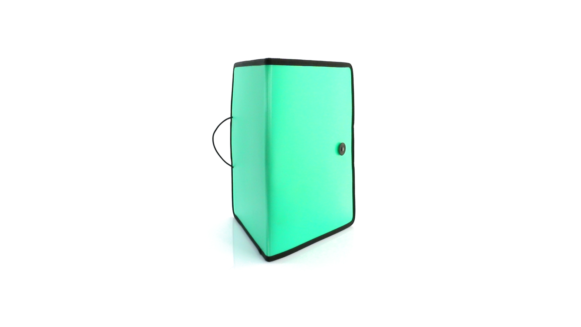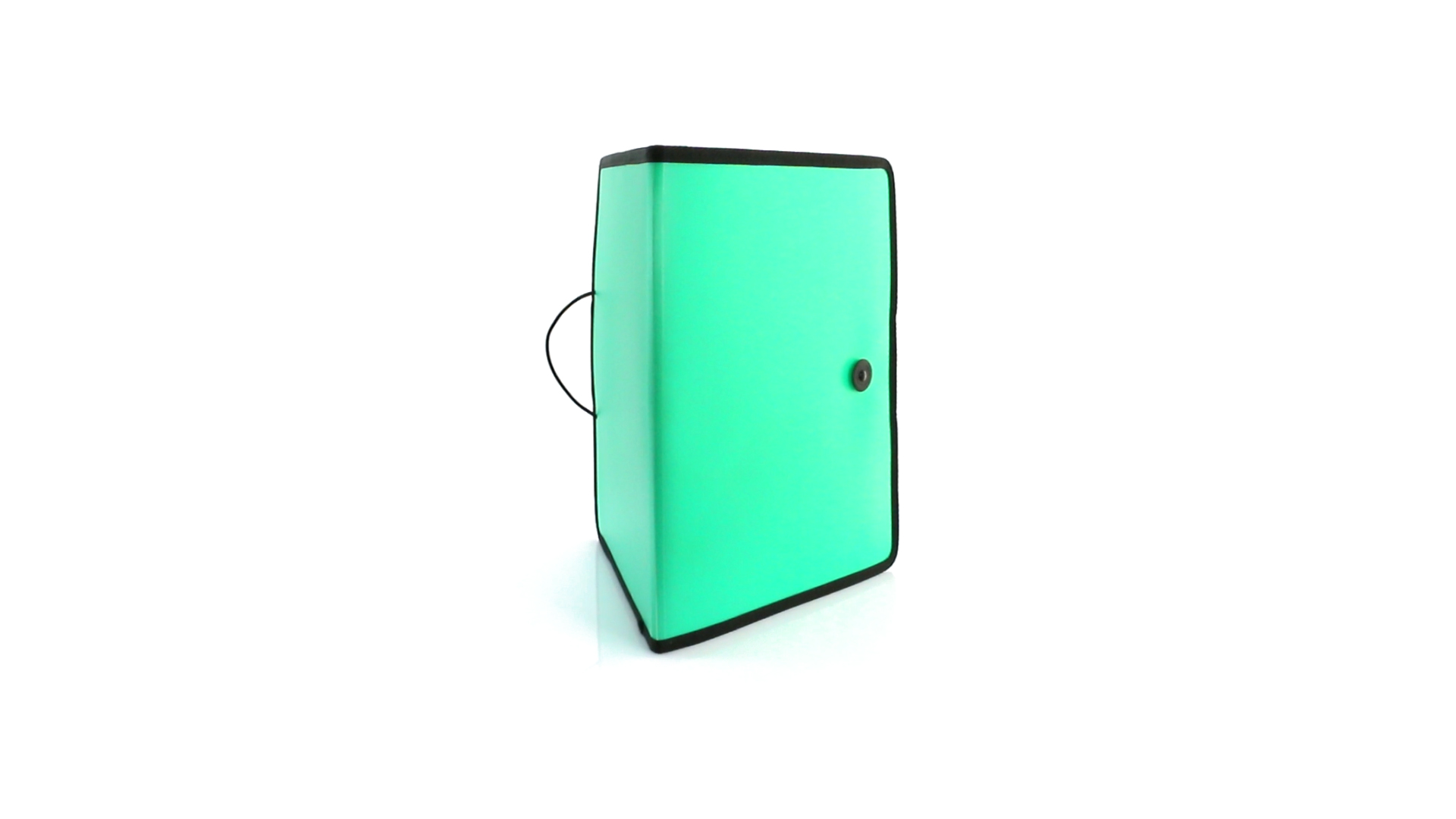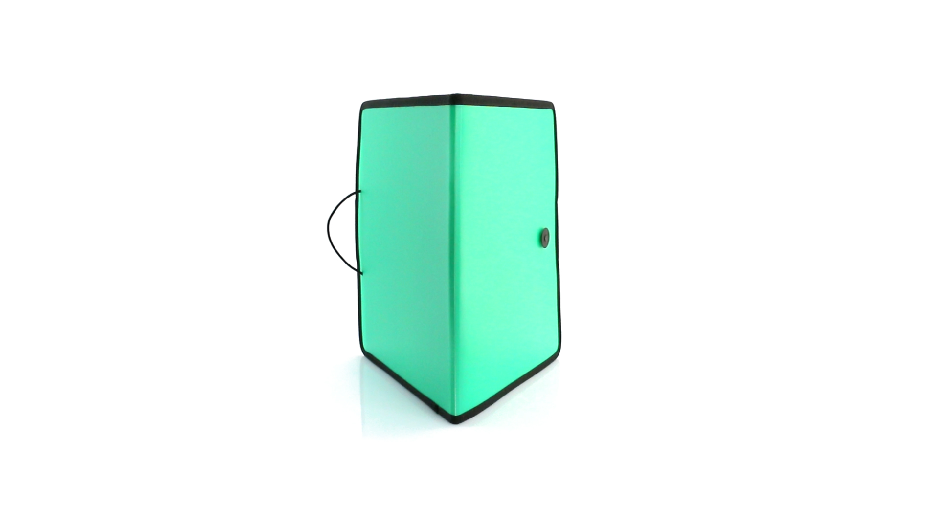 Mappe mit originellem Gummibandverschluss in verschiedenen Farben mit glänzendem Finish und schwarzen verstärkten Rändern. Im Inneren mit abnehmbarem Block mit 30 Blättern, transparentem Fach mit Klappe sowie Kartenfächern und Stifthalter.