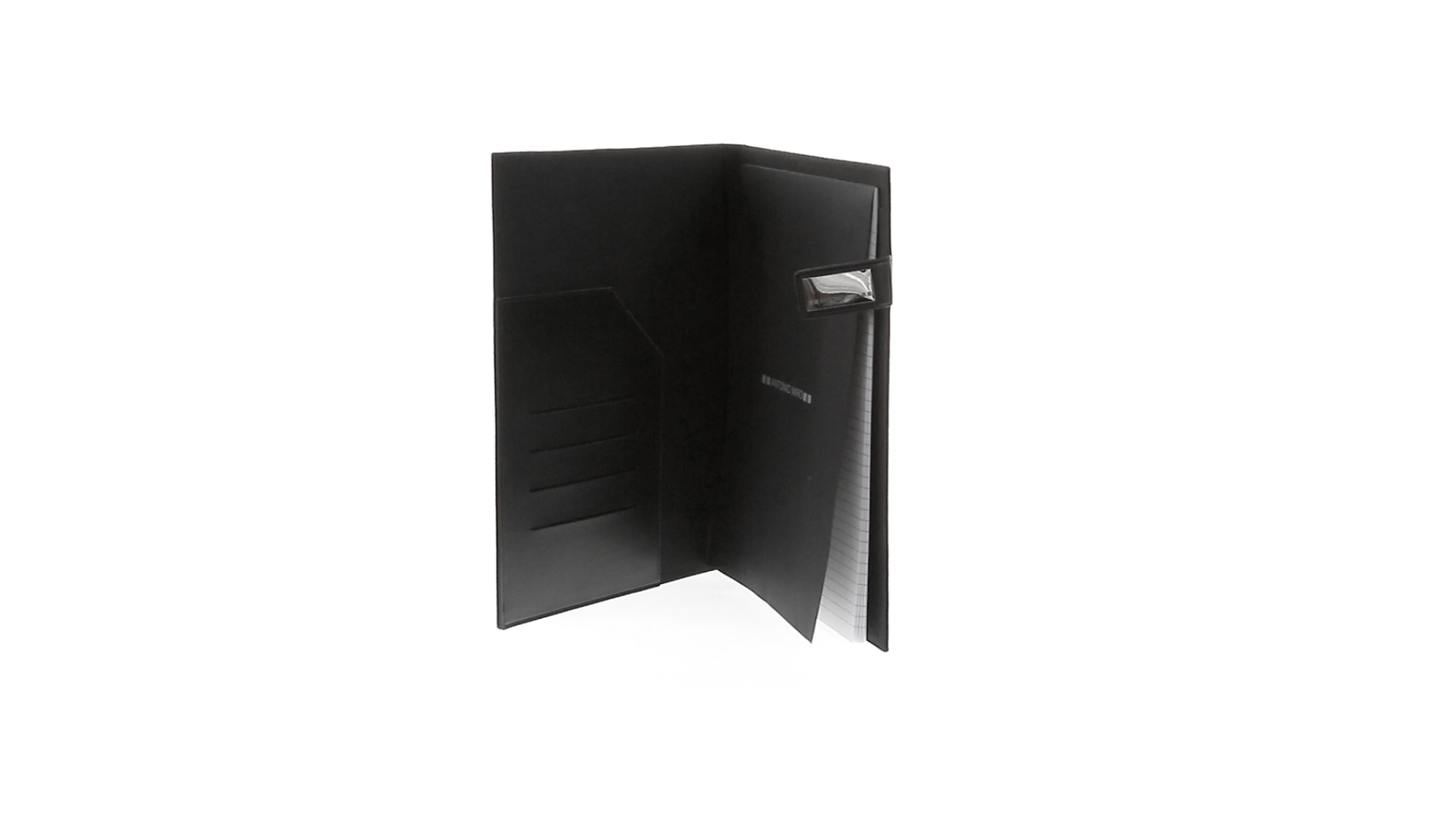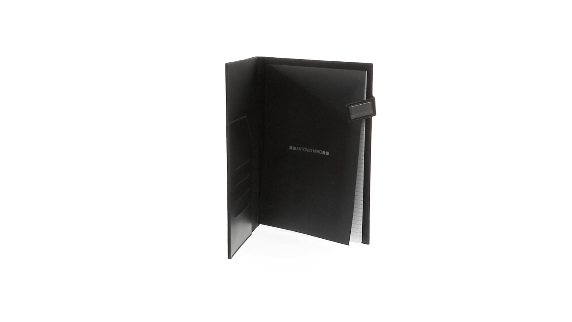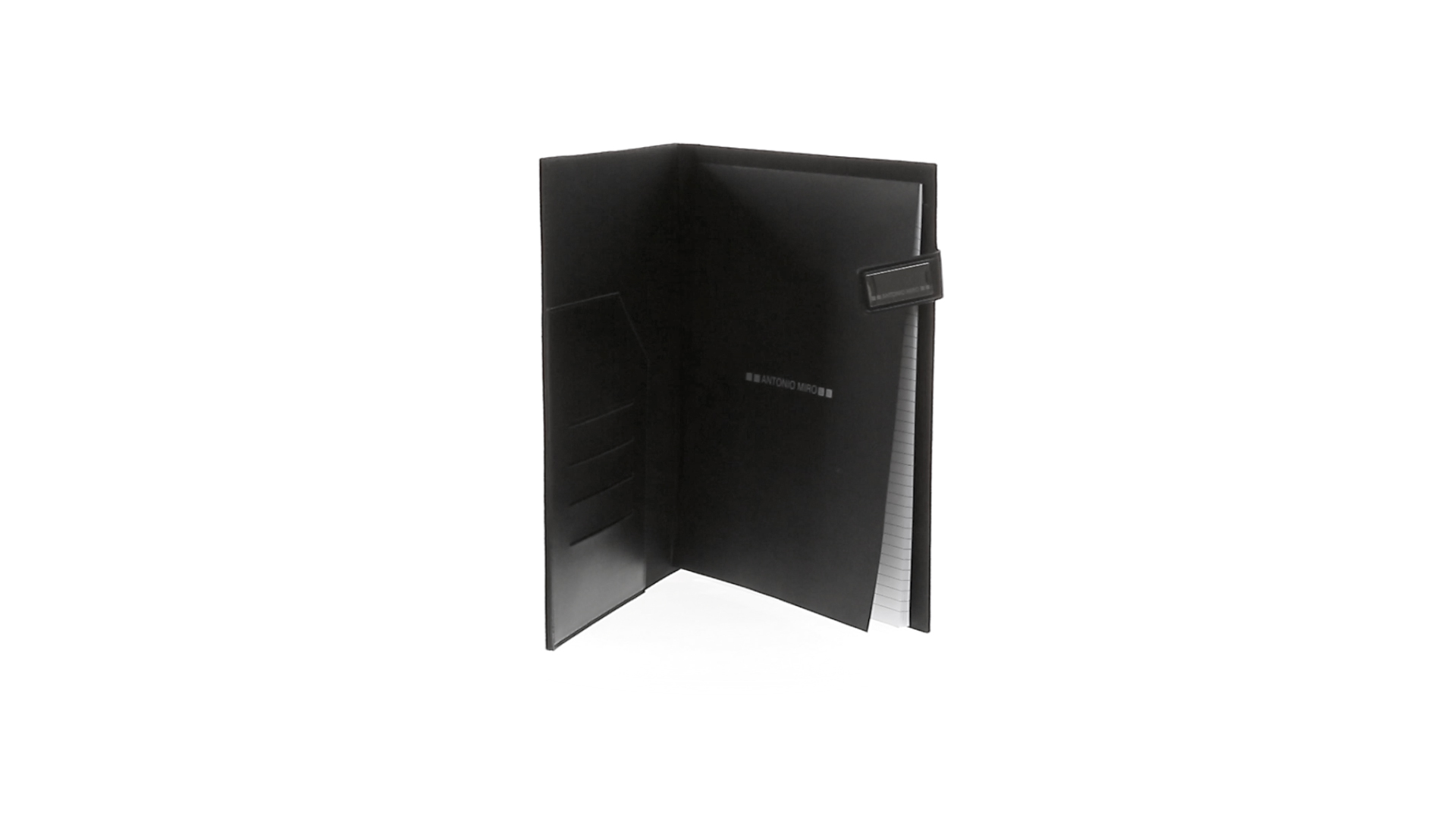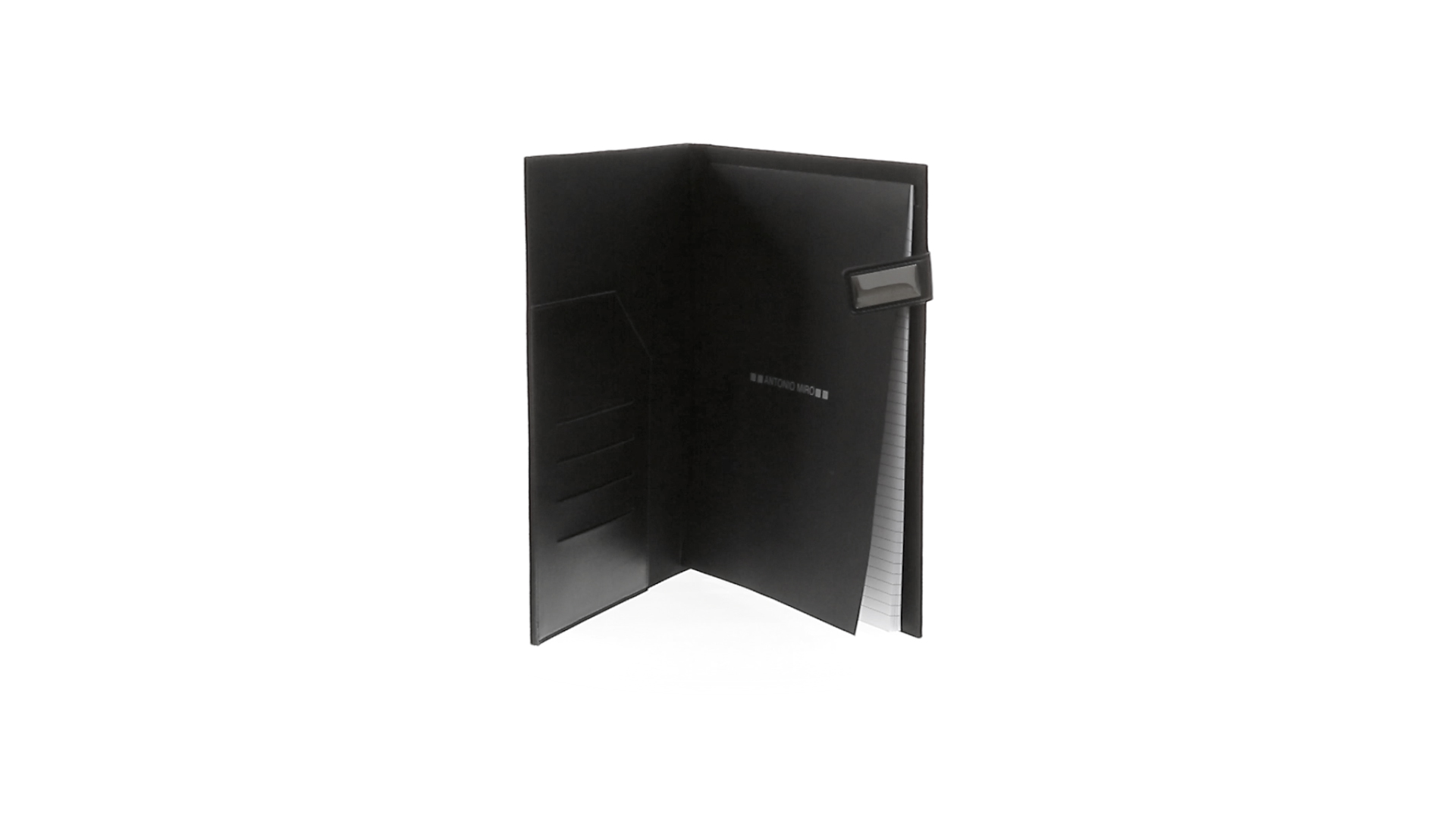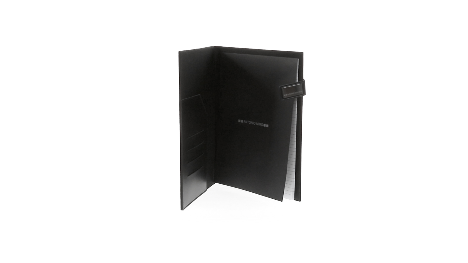 Mappe von Antonio Miró aus einer eleganten Kombination von 1200D Nylon und weichem Kunstleder. Mit elegantem Magnetverschluss mit dem Markenlogo. Im Inneren mit Klappentasche, Kartenfächern und Notizblock mit 50 linierten Blättern. Präsentiert in einer eleganten schwarzen Box mit dem Markenlogo.