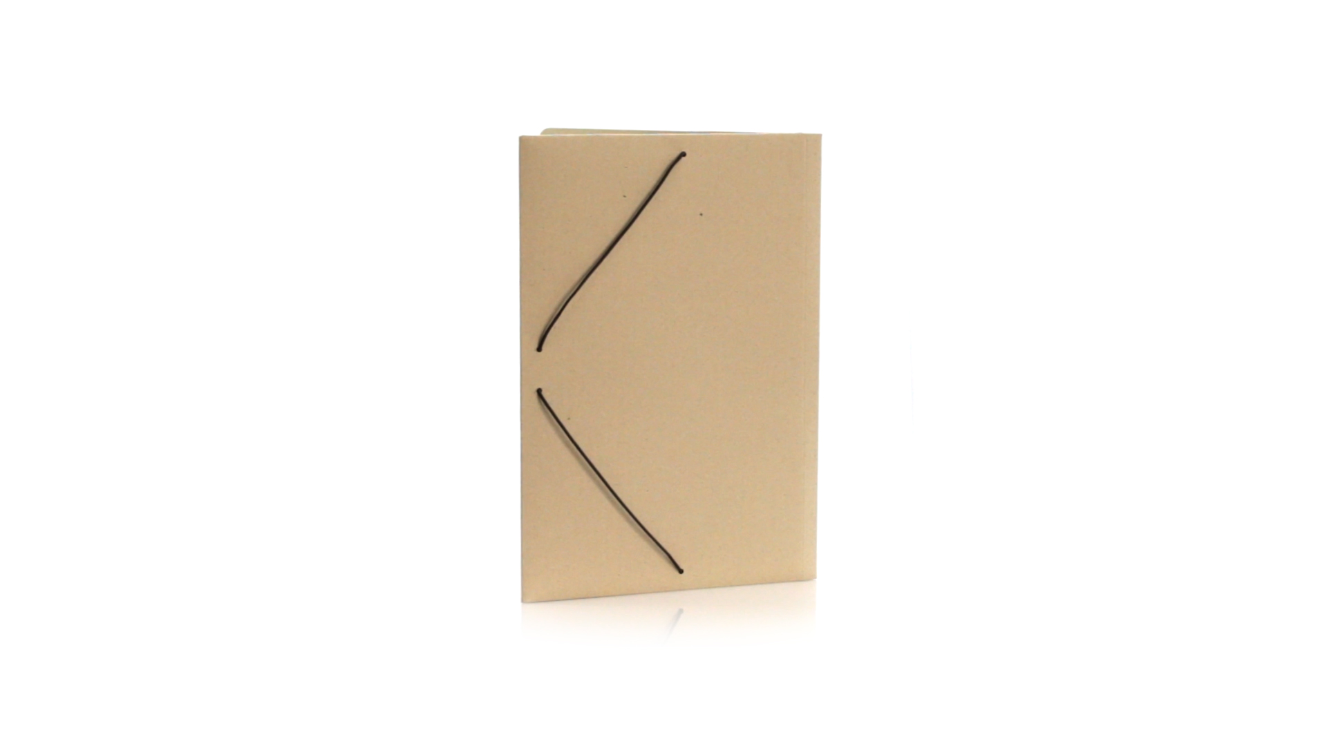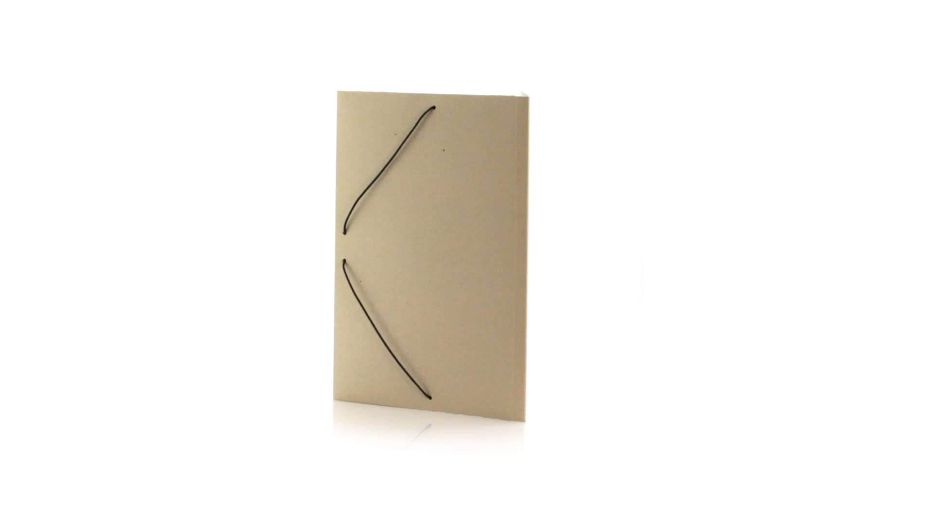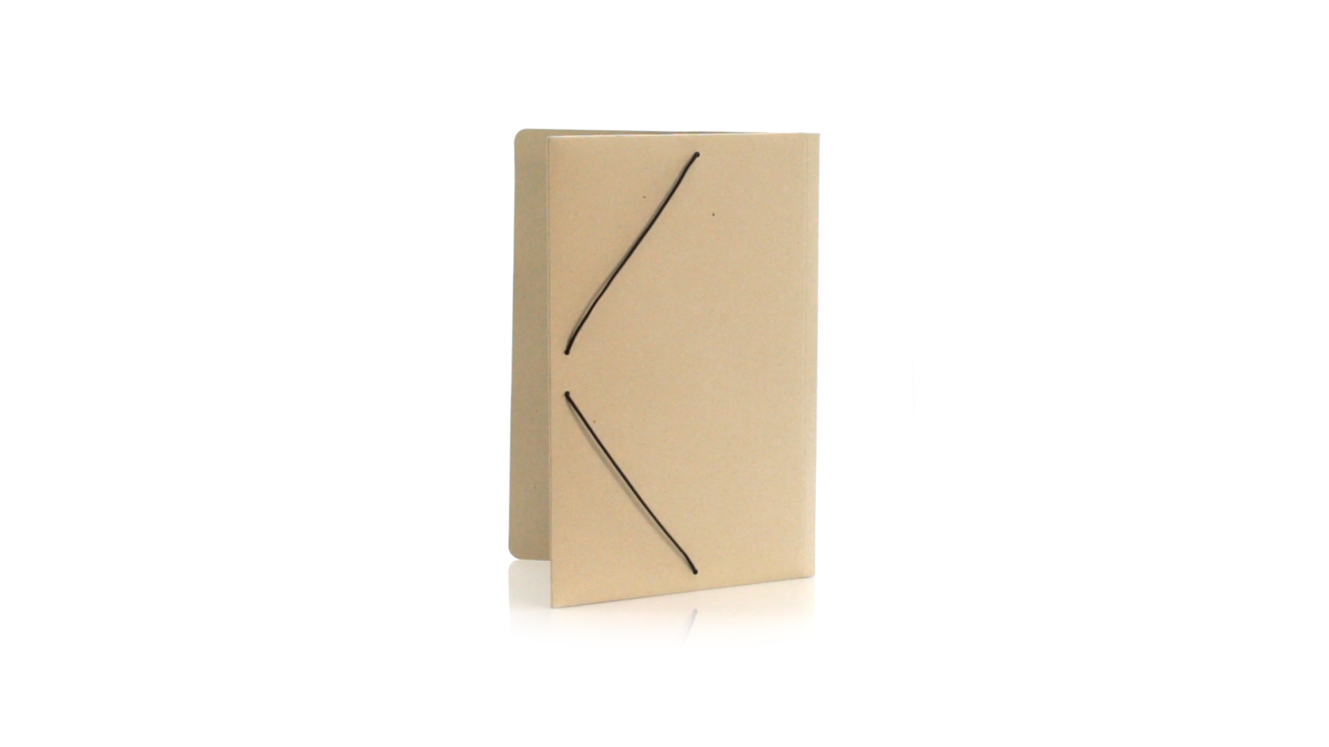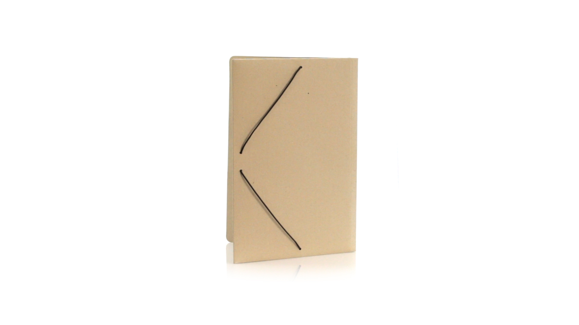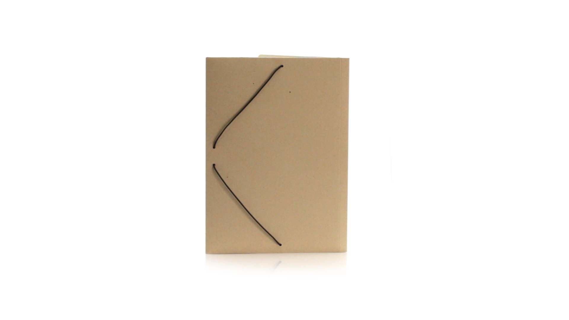 Ökologische Einschlagmappe aus Recyclingkarton mit grosser Kapazität, Gummieckspannern und drei Einschlagklappen.
