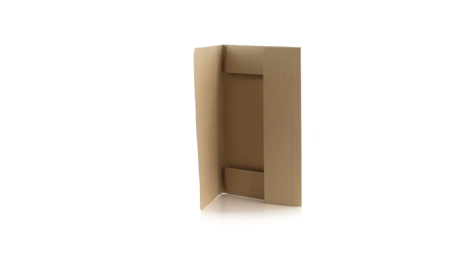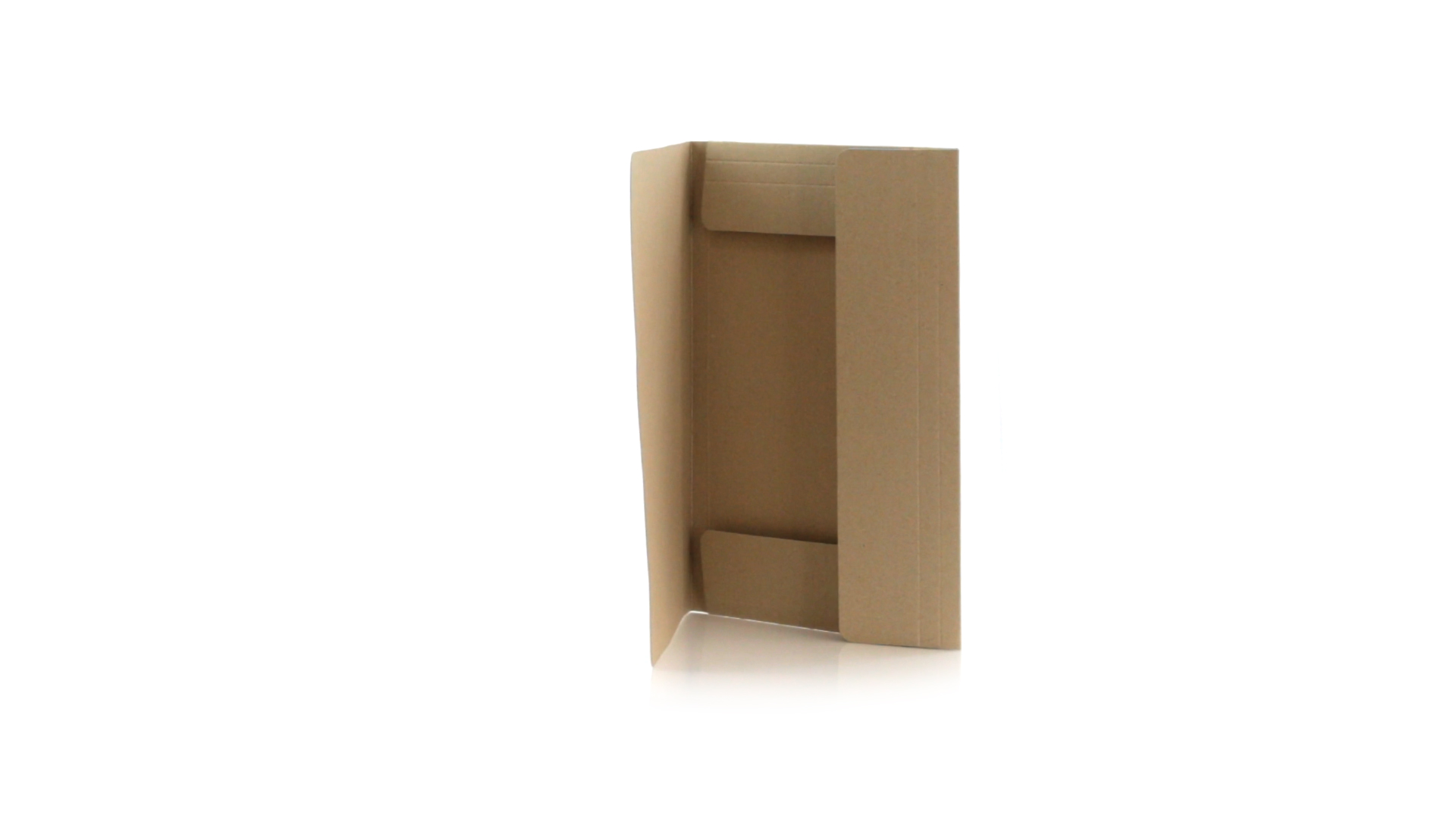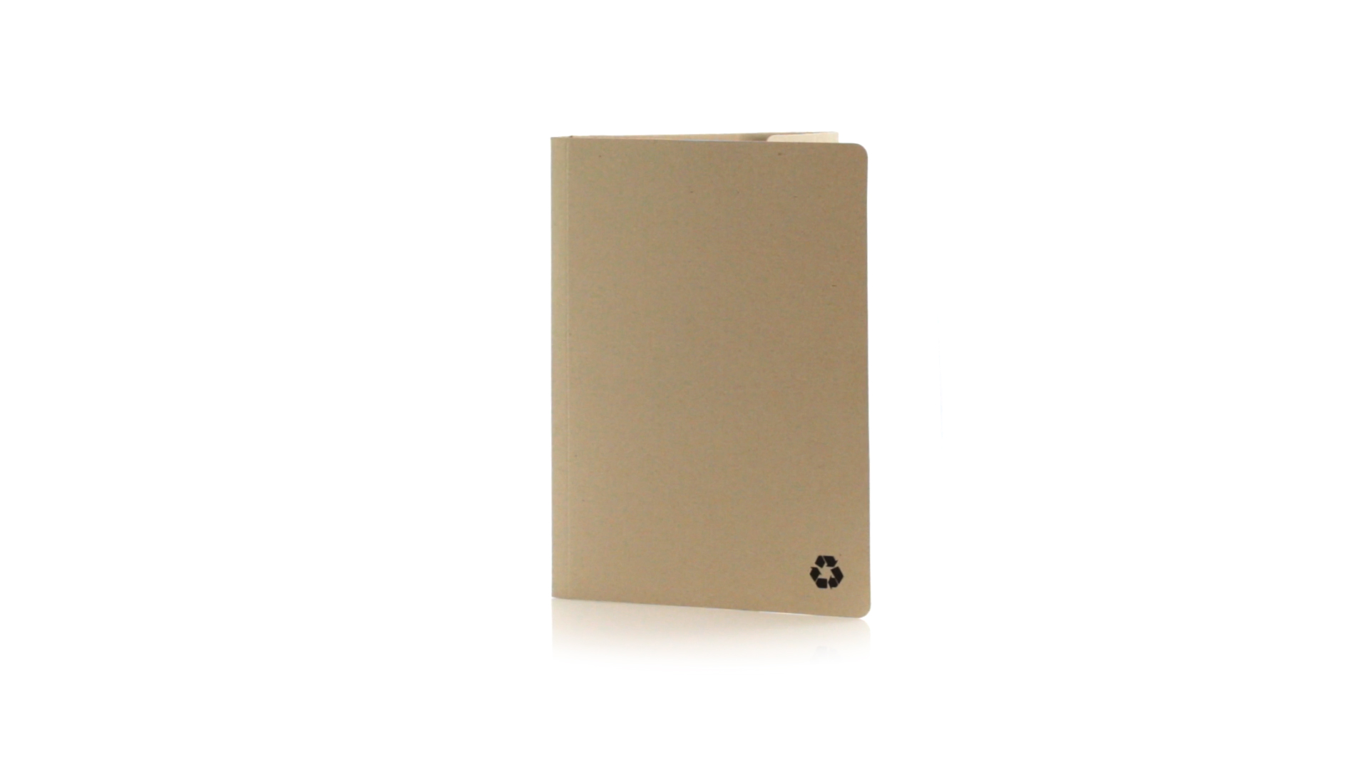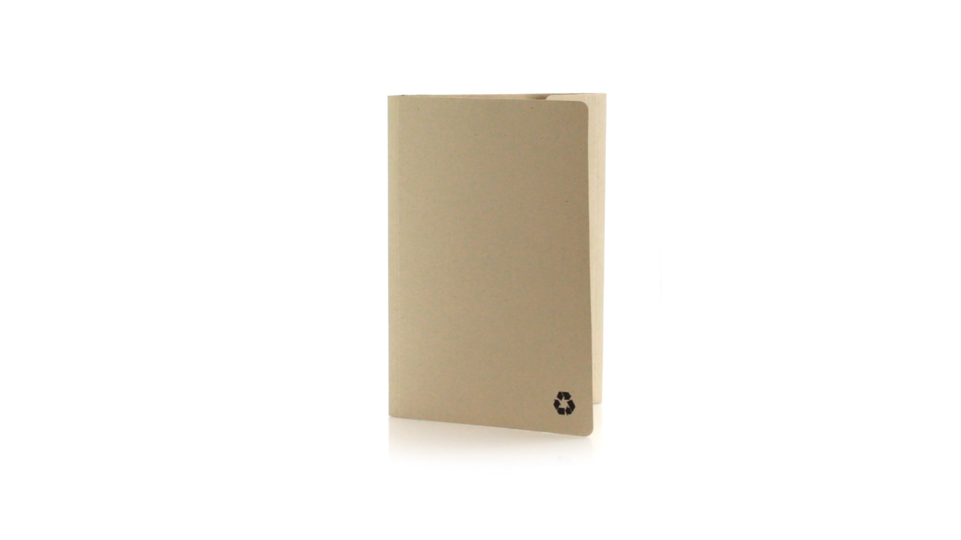 Ökologische Einschlagmappe aus Recyclingkarton mit grosser Kapazität, Gummieckspannern und drei Einschlagklappen.