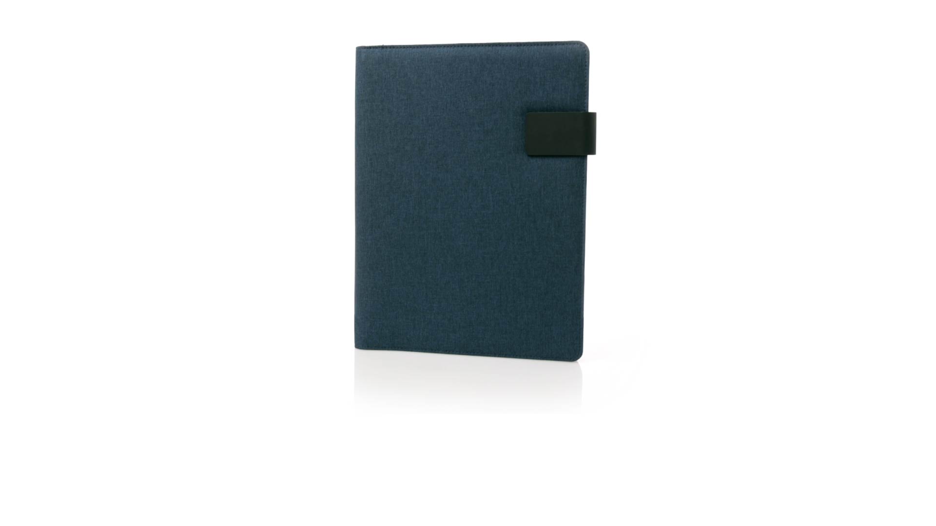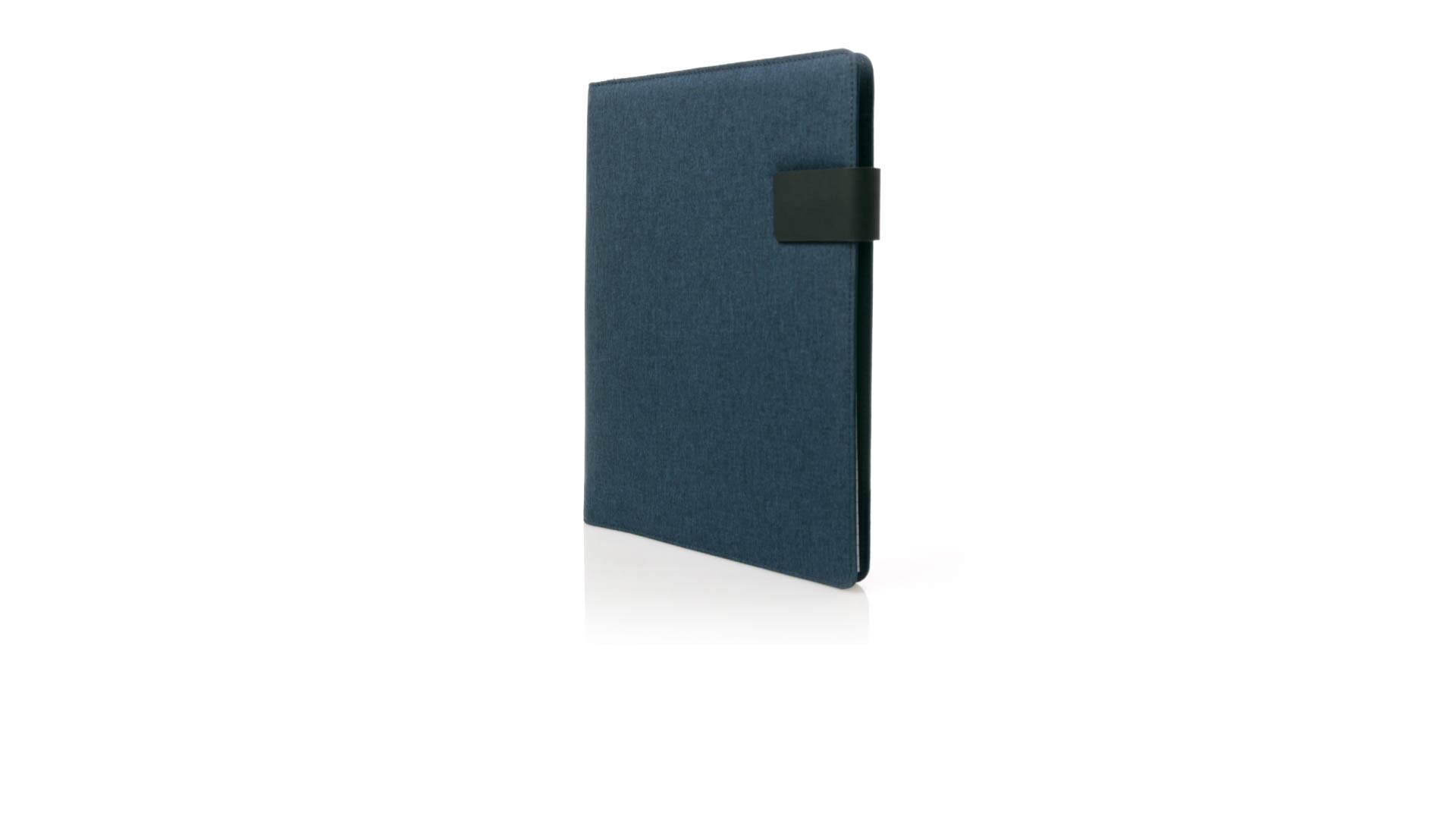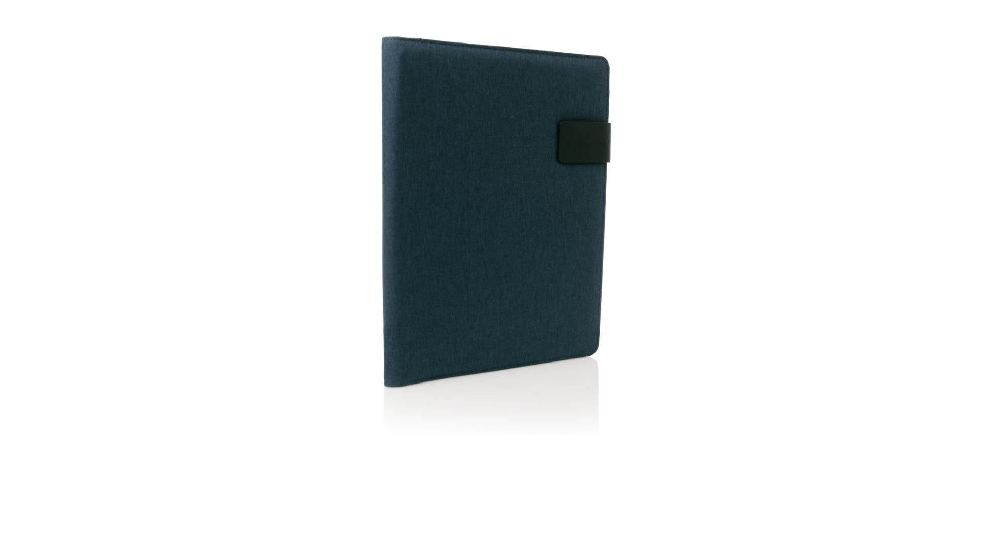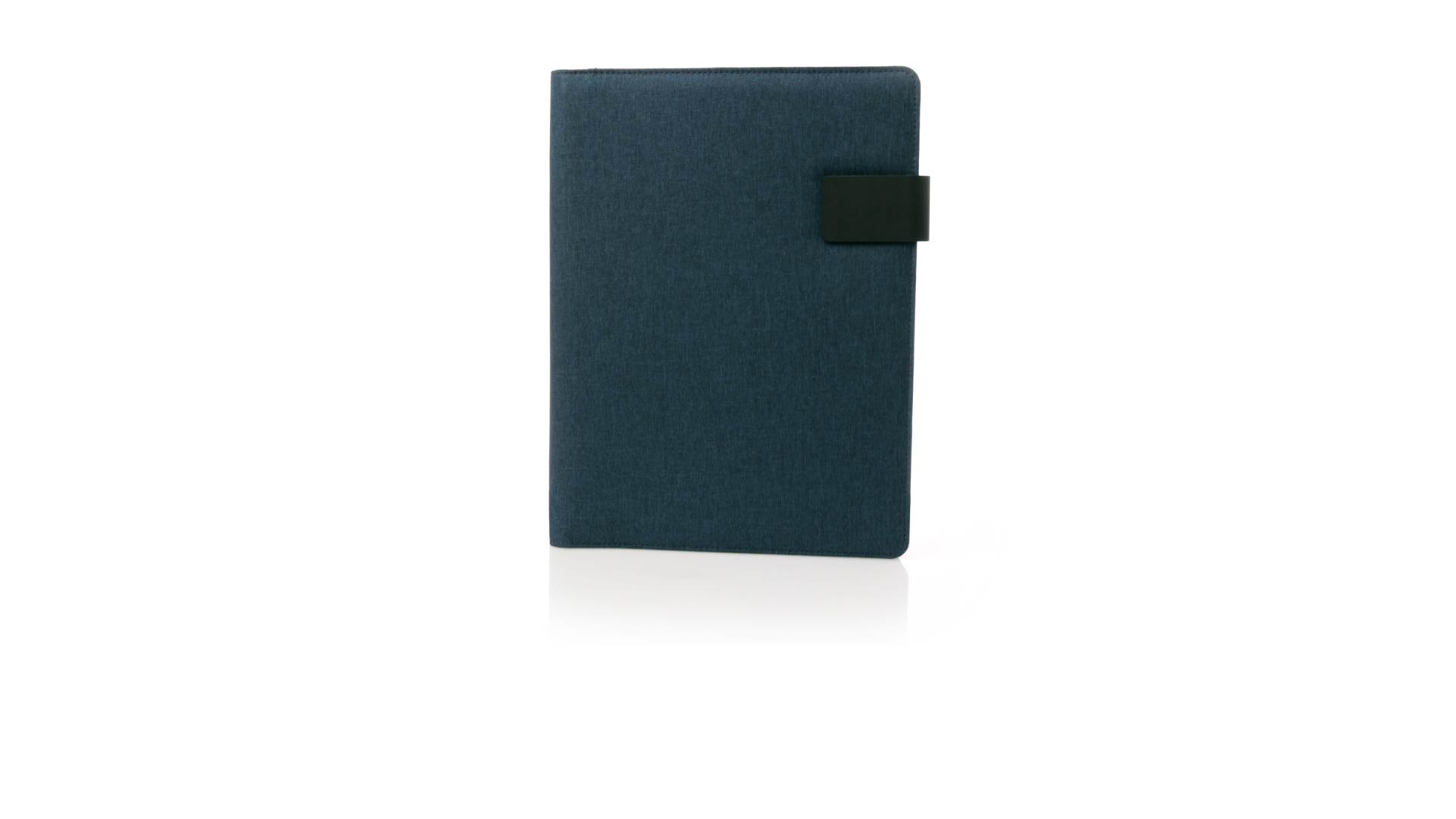 Praktischer Ordner aus RPET 600D. Mit einem effizienten Innendesign, das Fächer für 4 Karten, 3 elastische Taschen für mobile Geräte und viel Platz für Papierblätter umfasst. Dieser Organizer verfügt ausserdem über einen praktischen Stifthalter und einen Notizblock mit 20 Seiten im Einzelstreifen-Design. Dank der magnetischen Klappe lässt es sich sicher verschlossen halten. Erhältlich in stilvollen Farben und einzeln in einer recycelten Tasche präsentiert.