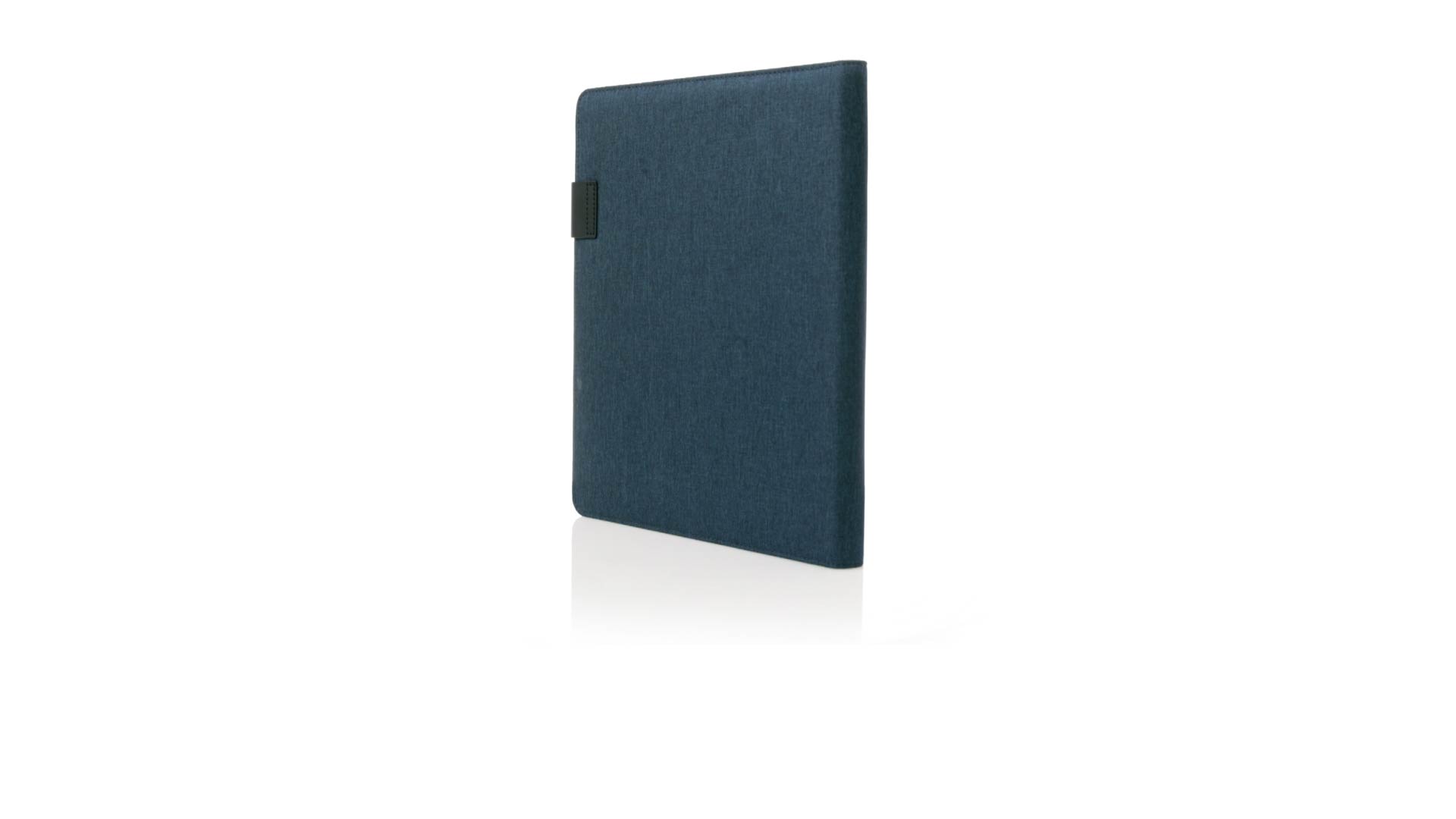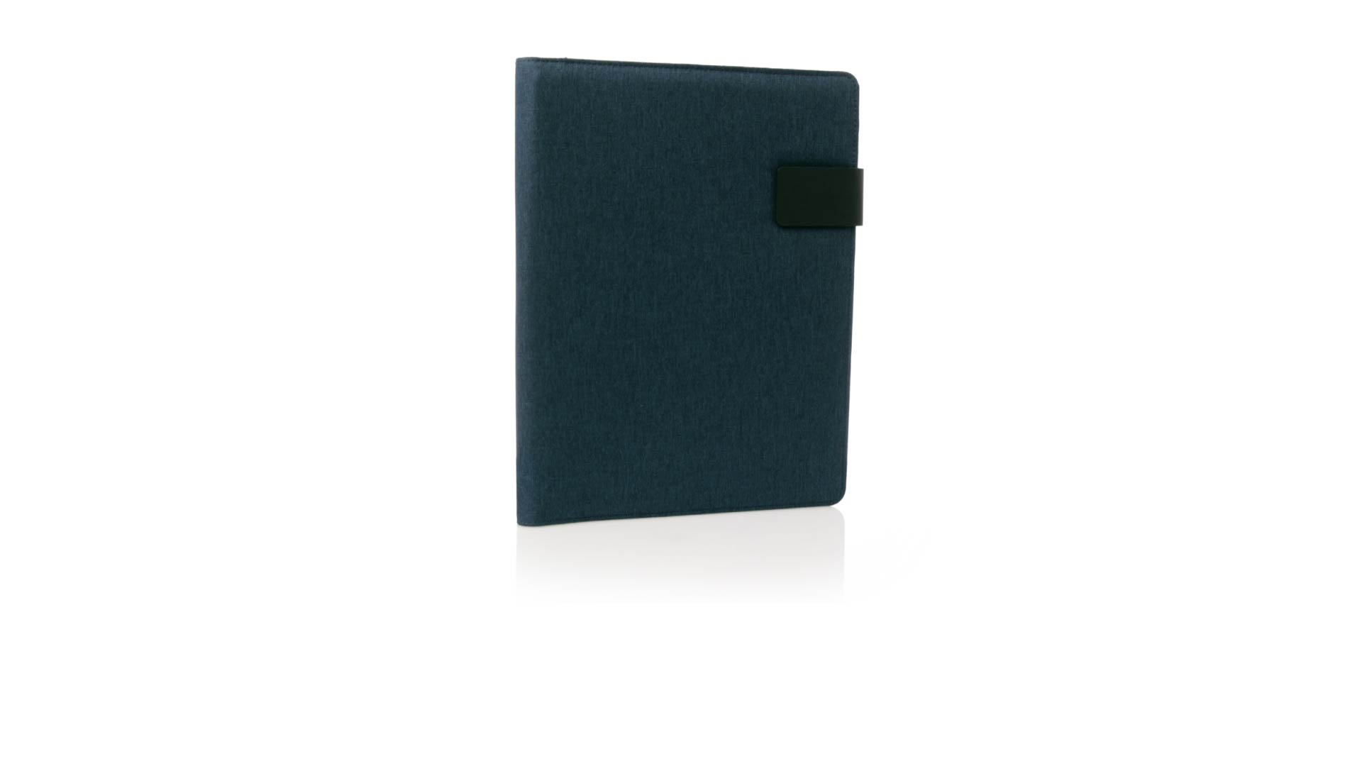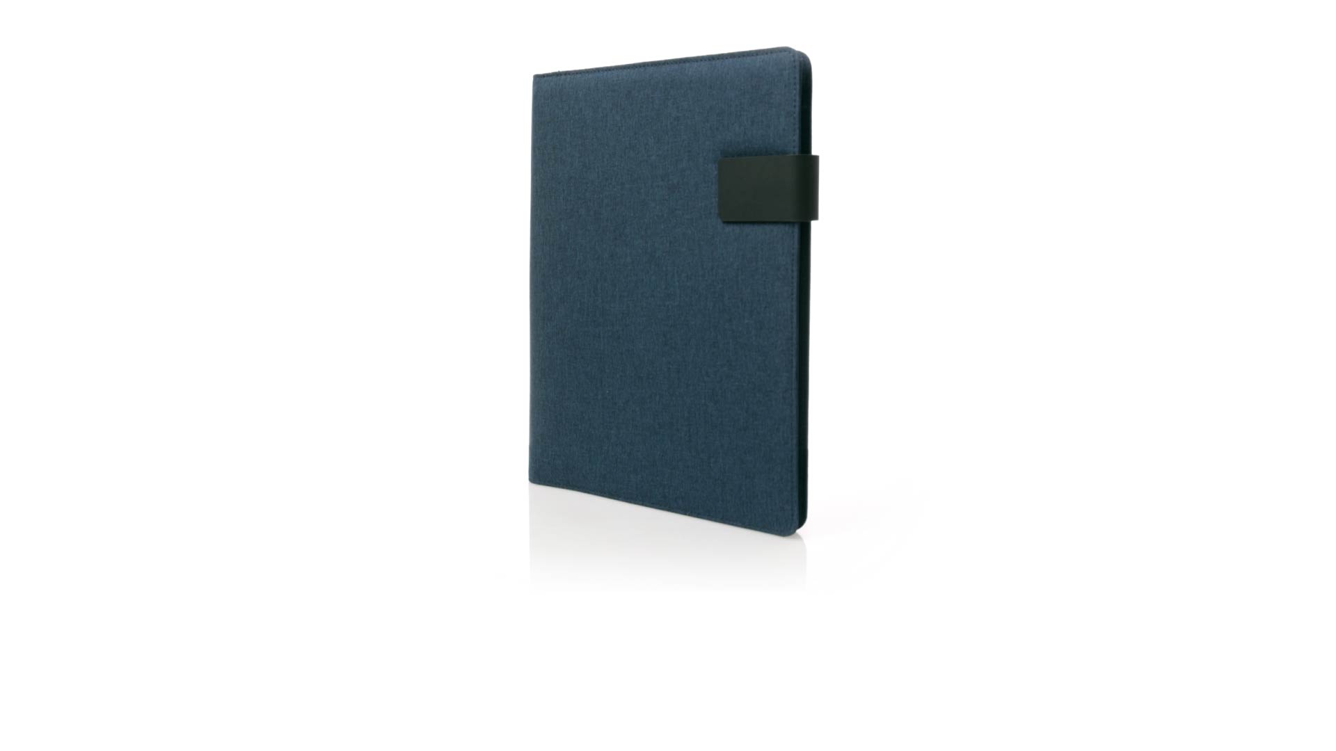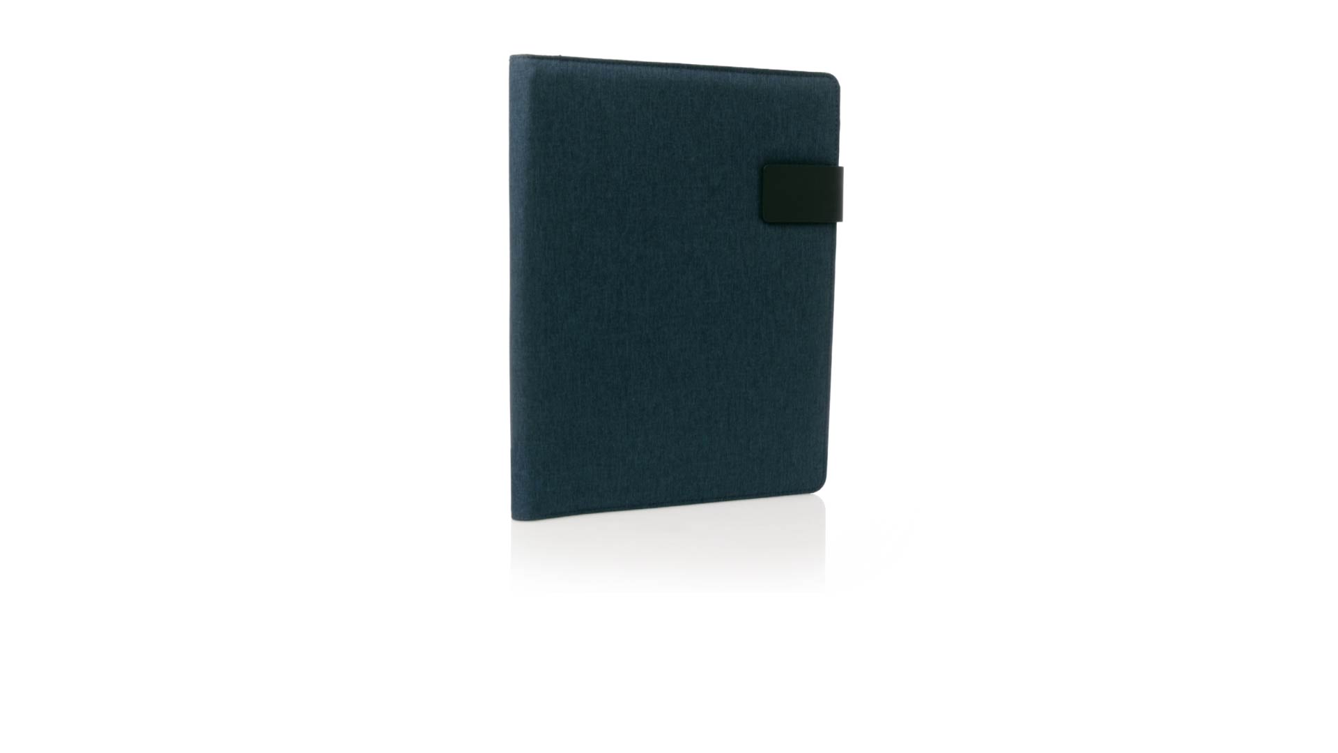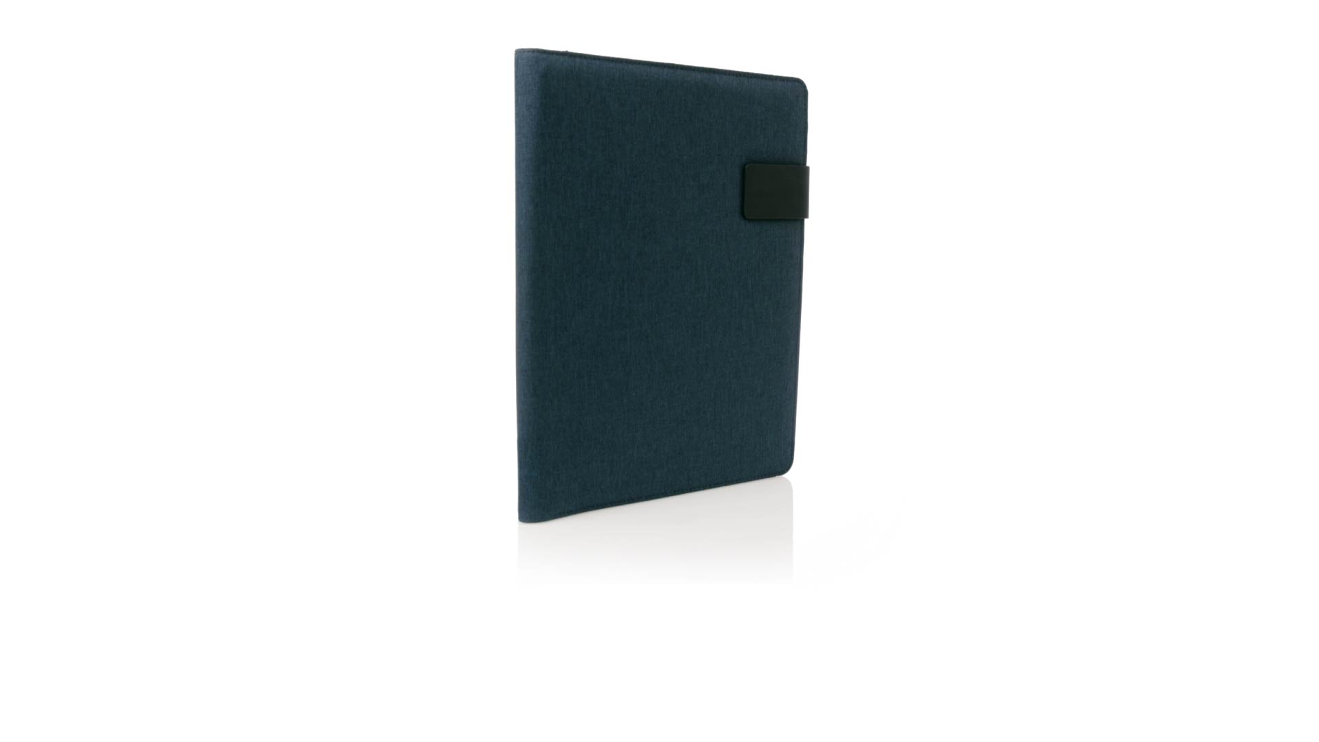 Praktischer Ordner aus RPET 600D. Mit einem effizienten Innendesign, das Fächer für 4 Karten, 3 elastische Taschen für mobile Geräte und viel Platz für Papierblätter umfasst. Dieser Organizer verfügt ausserdem über einen praktischen Stifthalter und einen Notizblock mit 20 Seiten im Einzelstreifen-Design. Dank der magnetischen Klappe lässt es sich sicher verschlossen halten. Erhältlich in stilvollen Farben und einzeln in einer recycelten Tasche präsentiert.