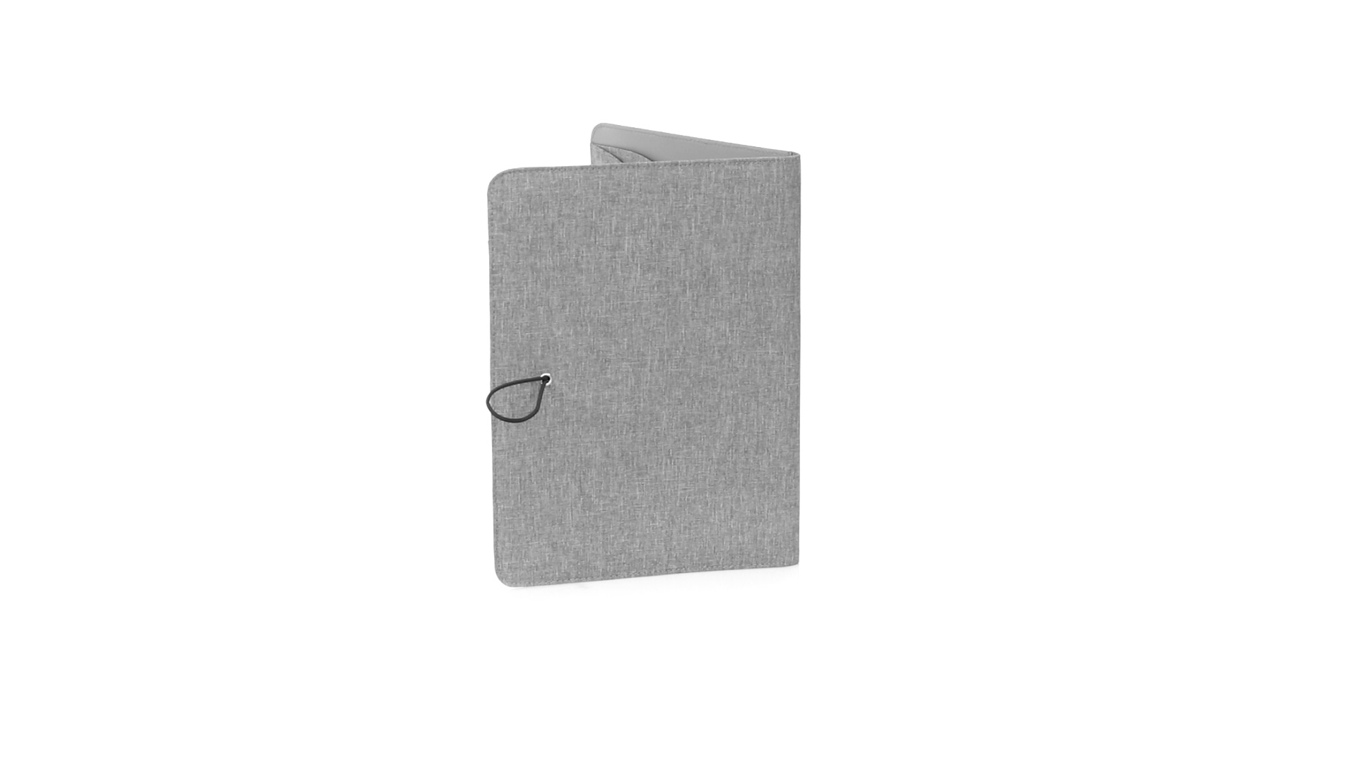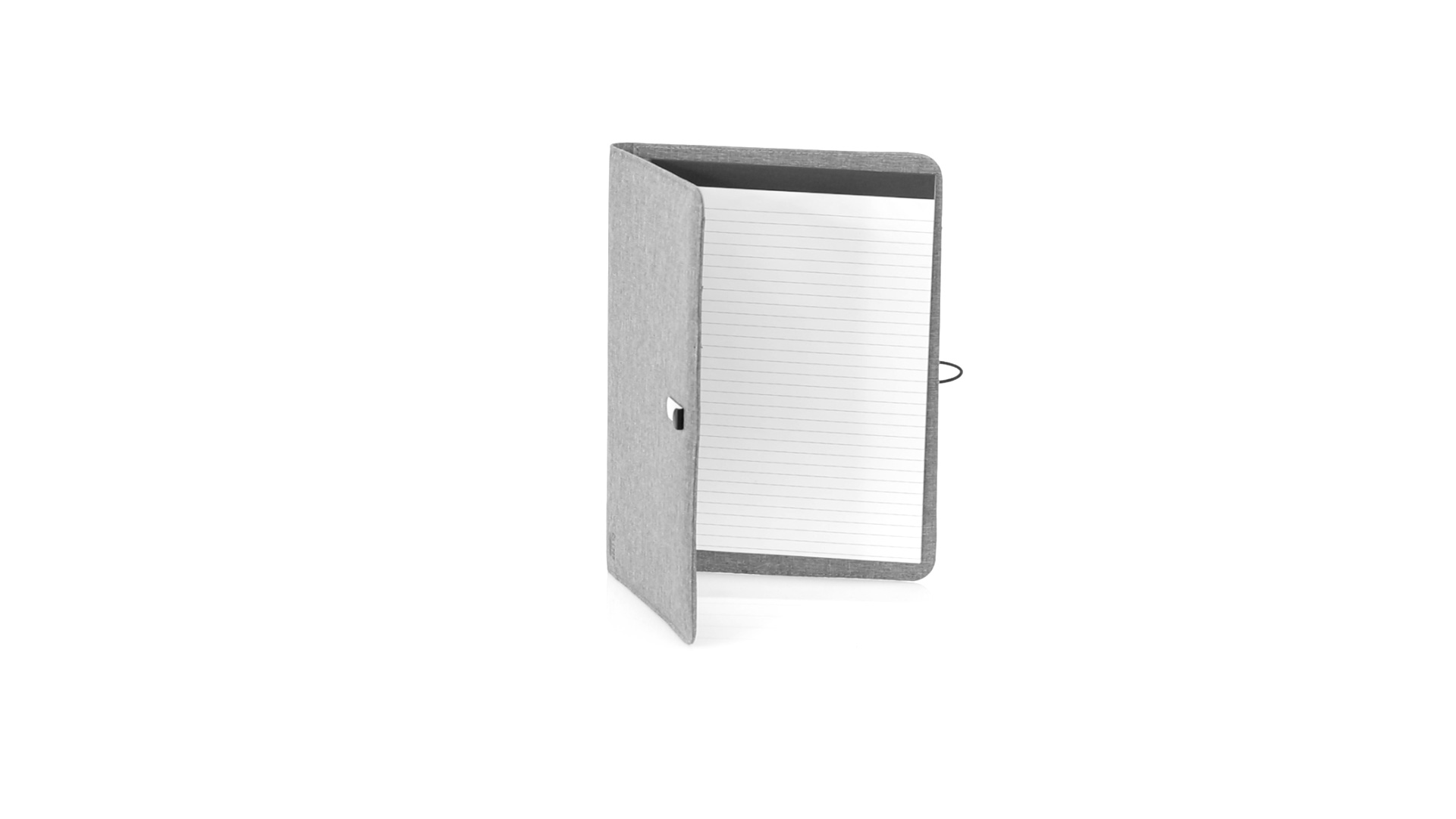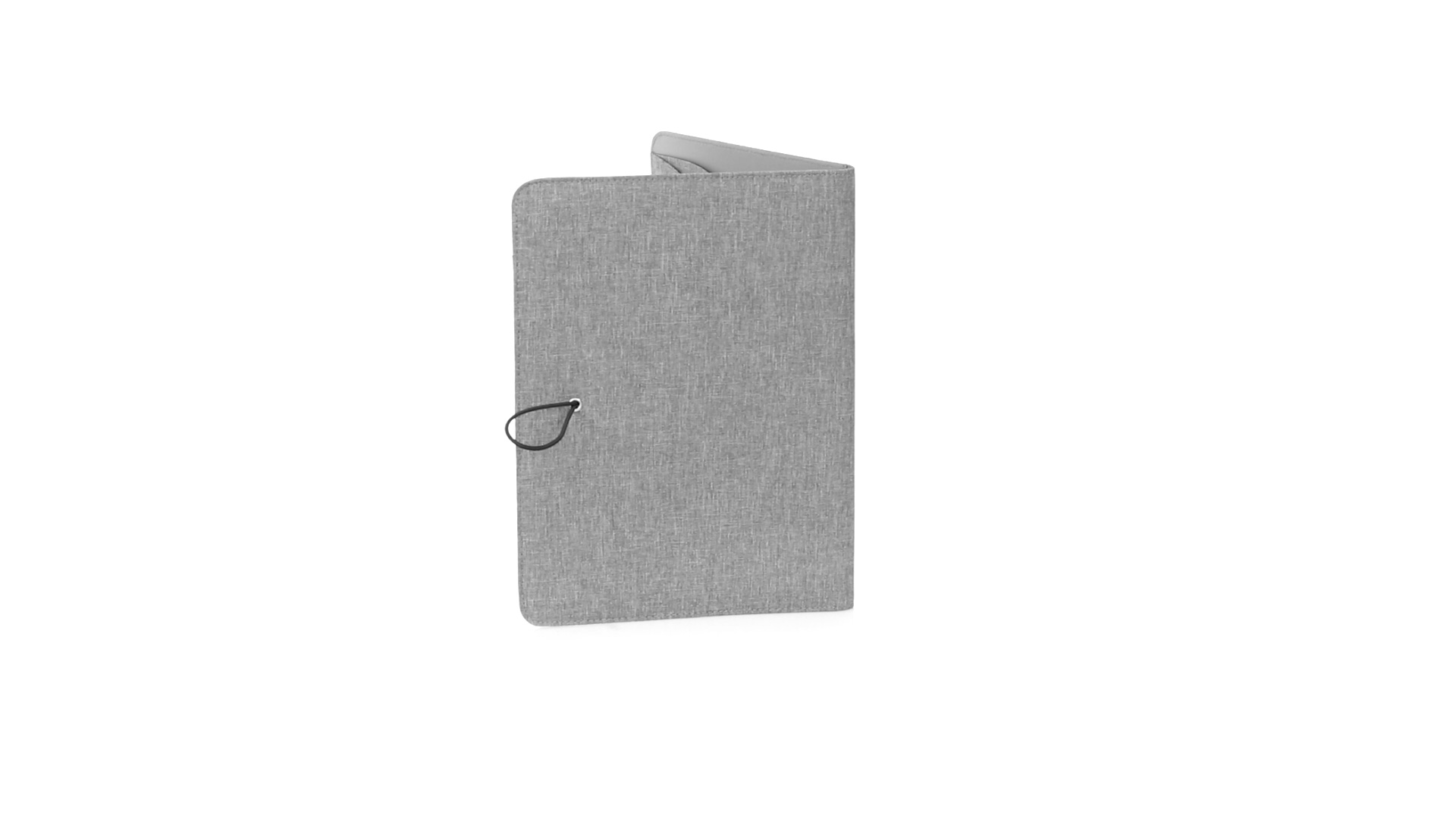 Eleganter Ordner im A4-Format aus Nature Line. Hergestellt aus widerstandsfähigem 600D RPET Melange-Effekt, hergestellt aus recyceltem Kunststoff, um die Wiederverwendung von Kunststoffabfällen zu fördern und einen Beitrag zur Nachhaltigkeit des Planeten zu leisten. Schwarze Details und Metallspange mit Gummiband speziell für die Laserbeschriftung entwickelt. Innen mit herausnehmbarem 20-Blatt-Block mit Einzelstreifen-Layout, 3 Klappentaschen, Kartenfächern und Stifthalter. RPET-Plakette in der Ecke.