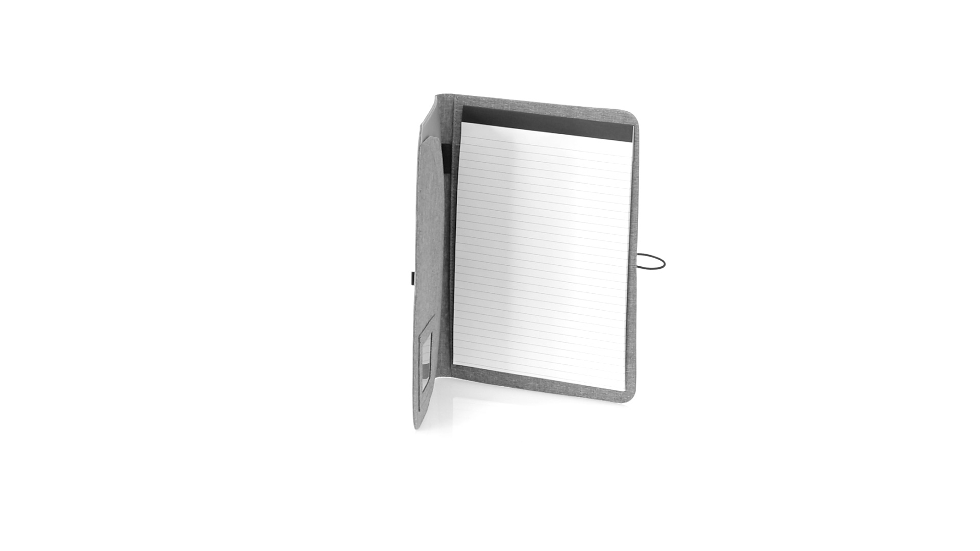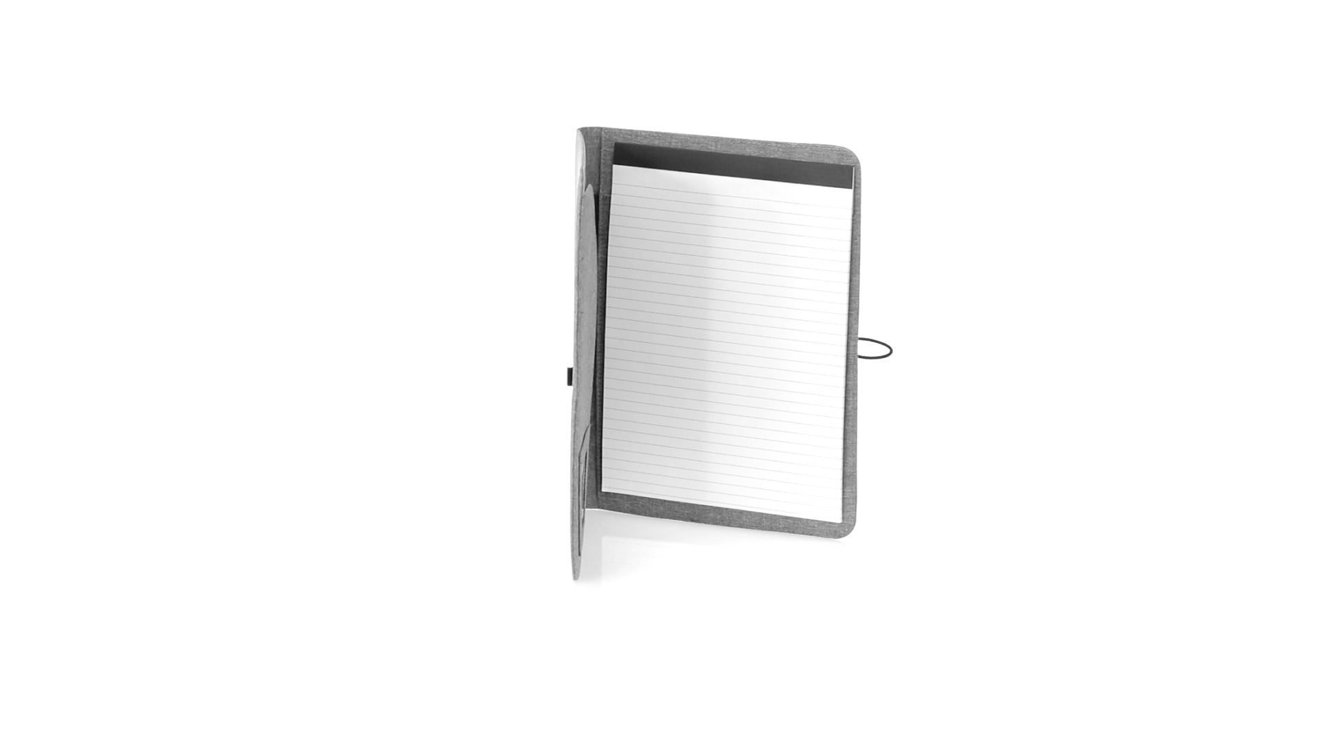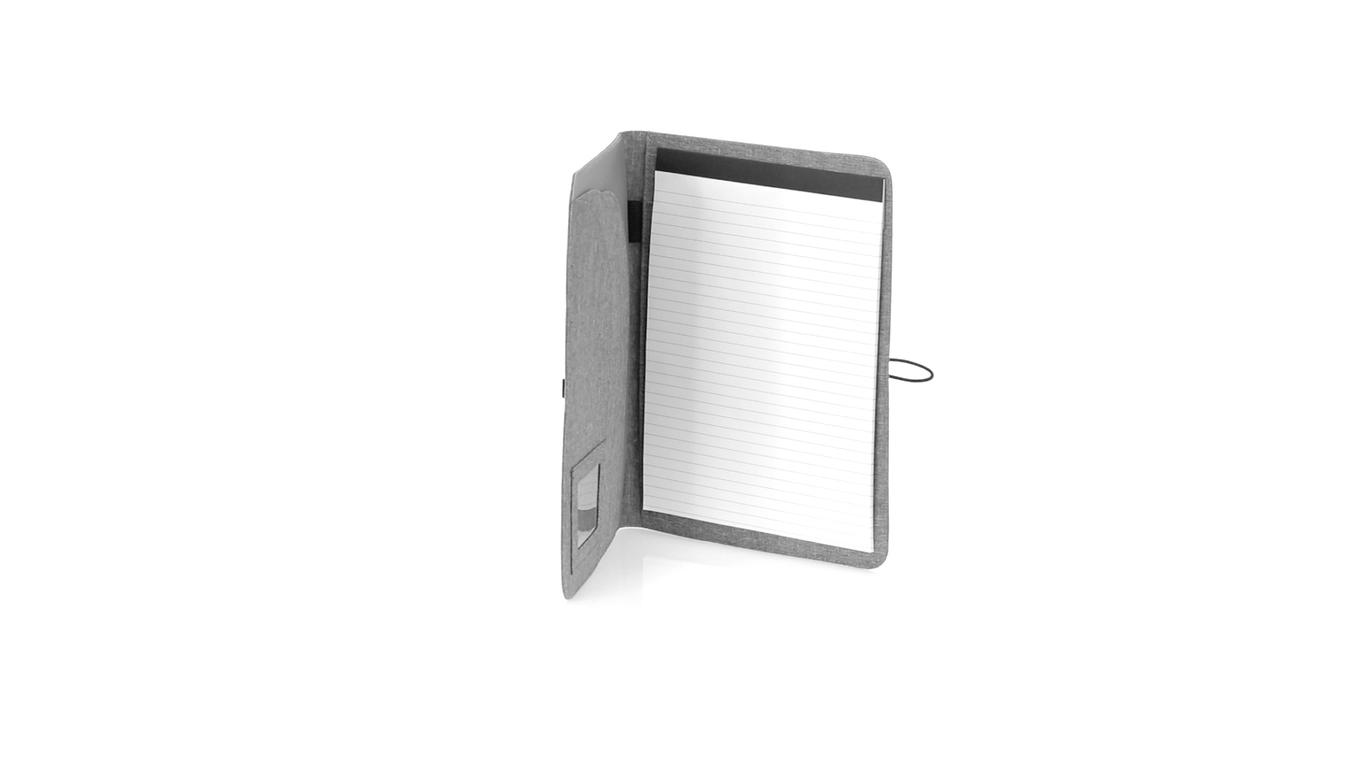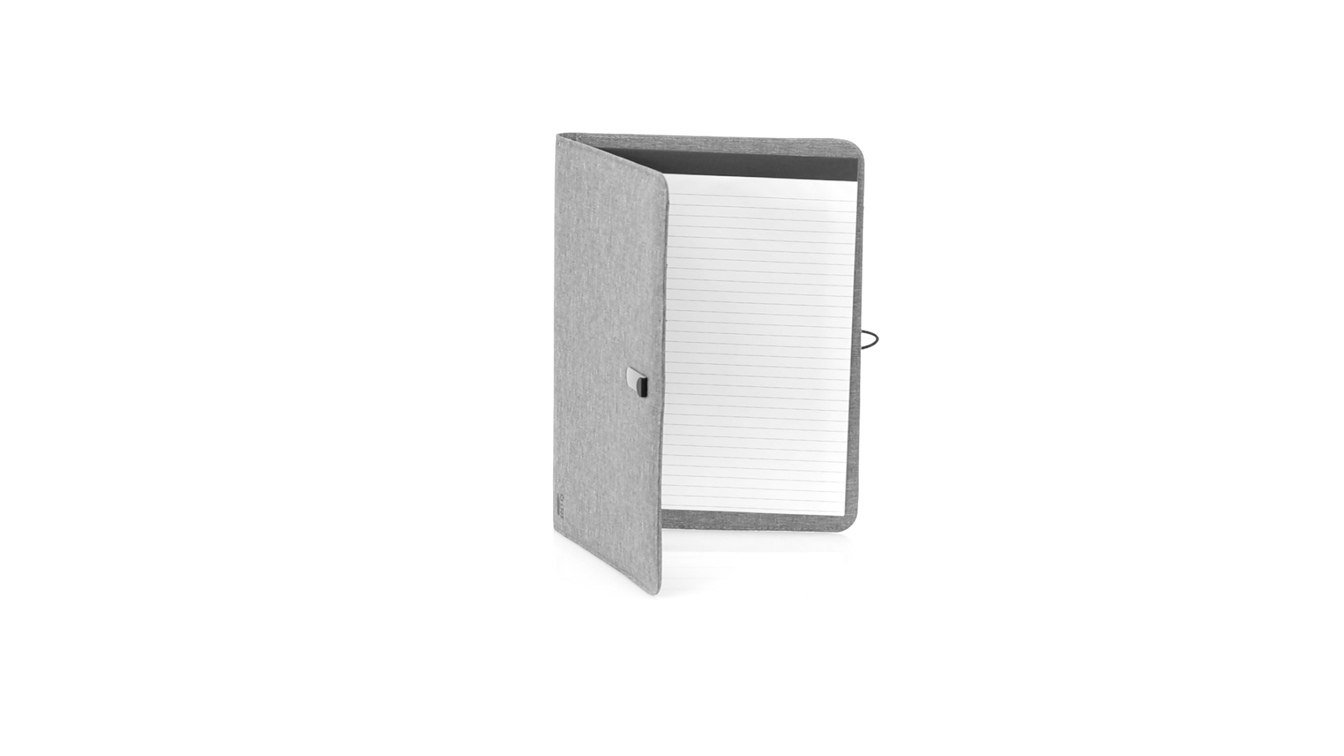 Eleganter Ordner im A4-Format aus Nature Line. Hergestellt aus widerstandsfähigem 600D RPET Melange-Effekt, hergestellt aus recyceltem Kunststoff, um die Wiederverwendung von Kunststoffabfällen zu fördern und einen Beitrag zur Nachhaltigkeit des Planeten zu leisten. Schwarze Details und Metallspange mit Gummiband speziell für die Laserbeschriftung entwickelt. Innen mit herausnehmbarem 20-Blatt-Block mit Einzelstreifen-Layout, 3 Klappentaschen, Kartenfächern und Stifthalter. RPET-Plakette in der Ecke.