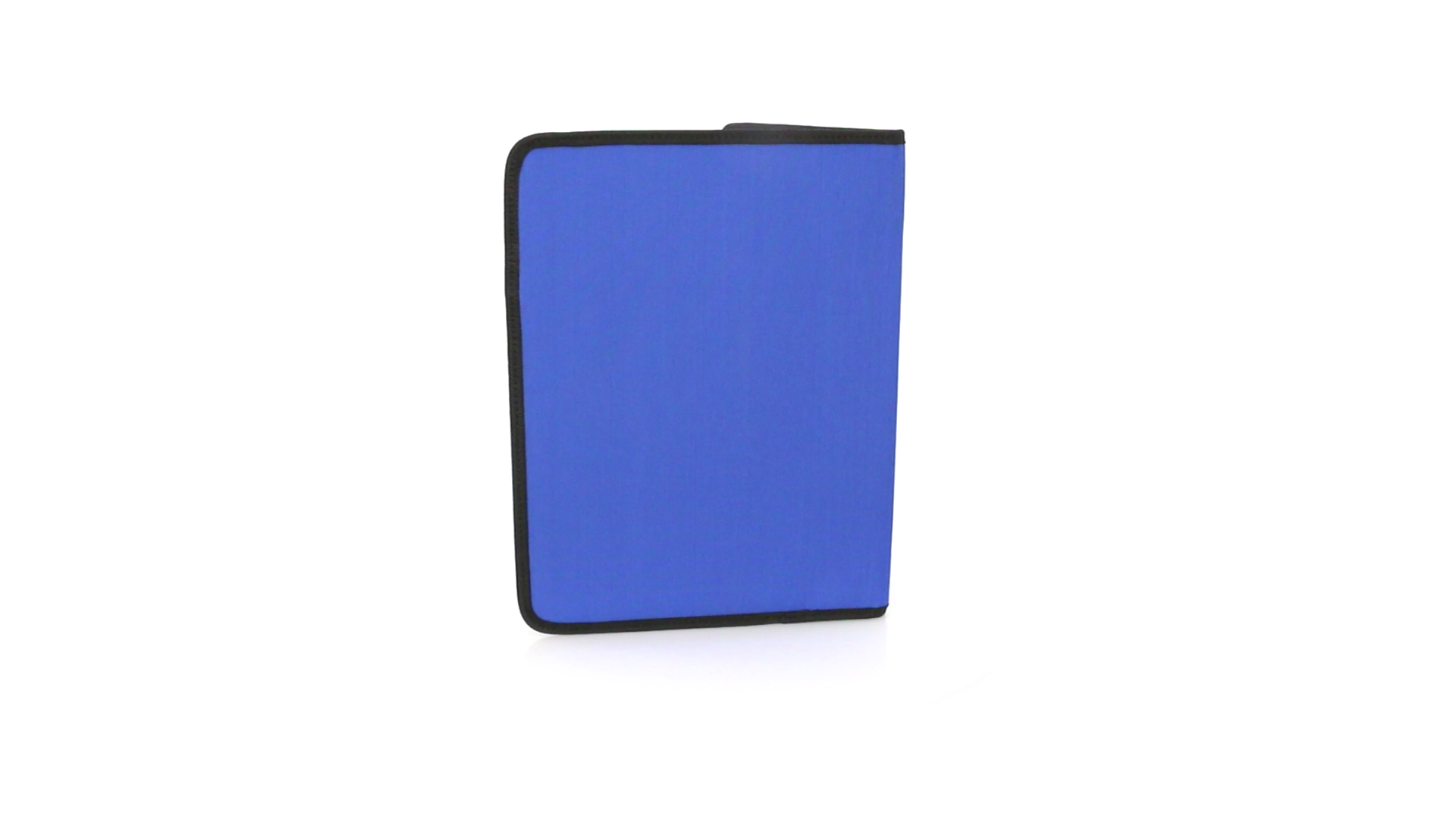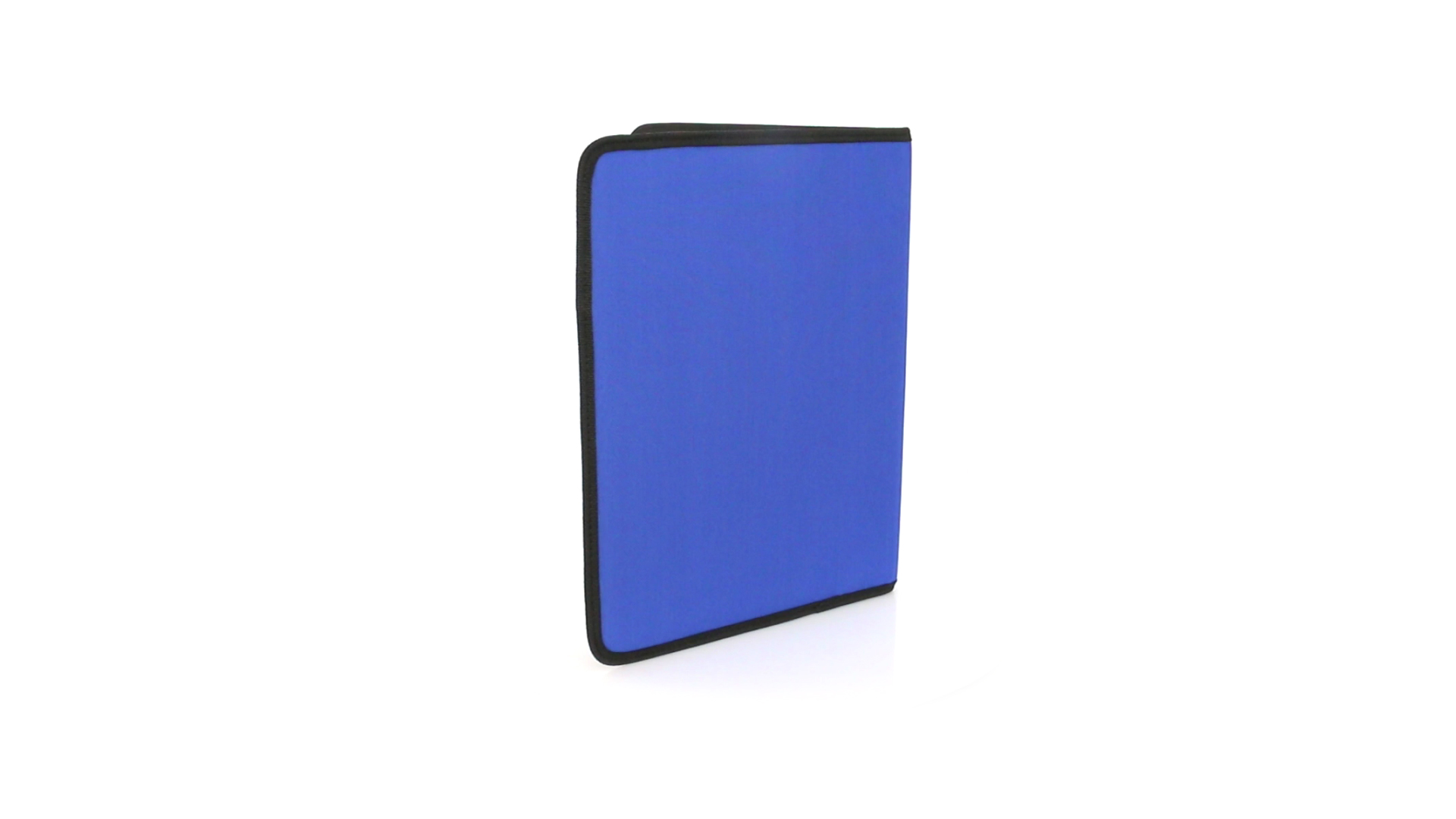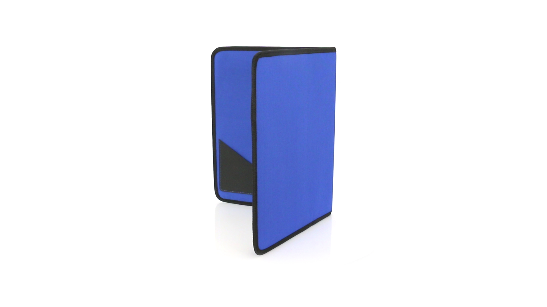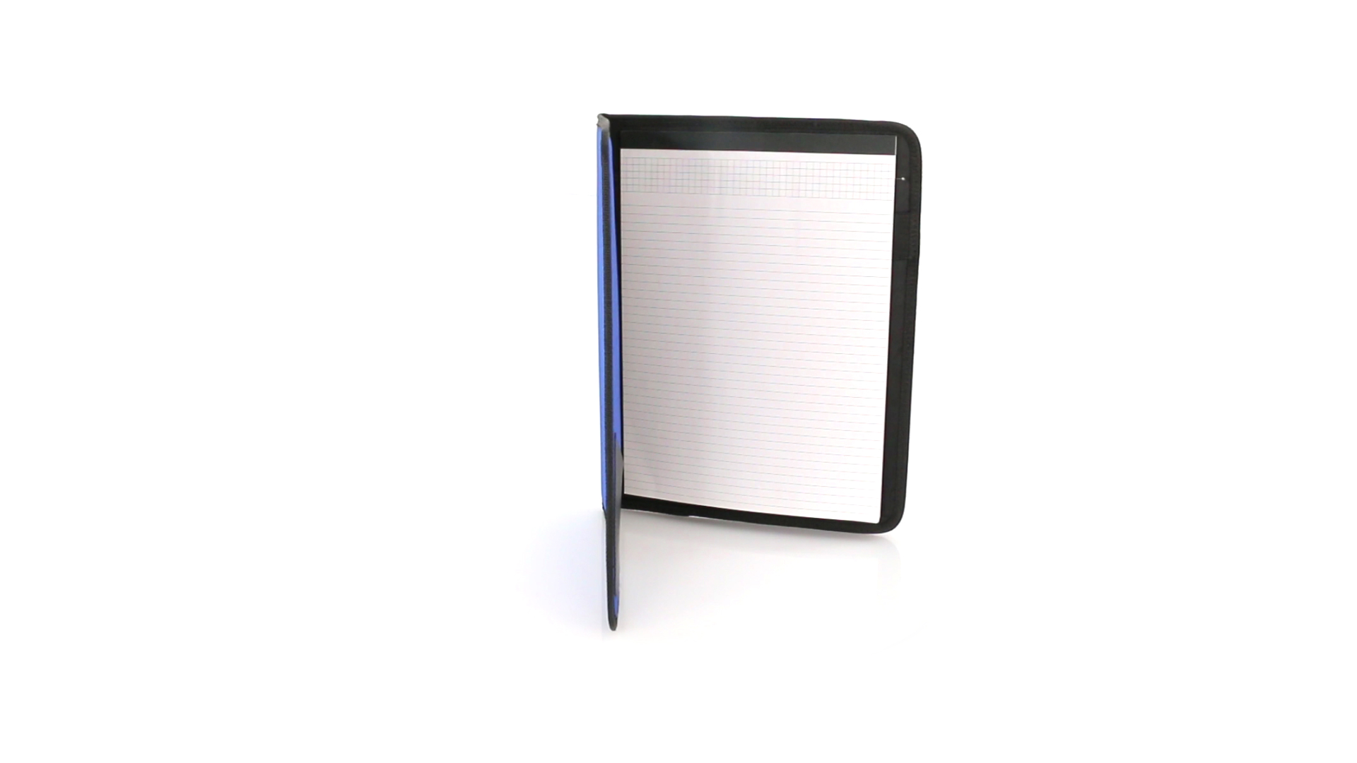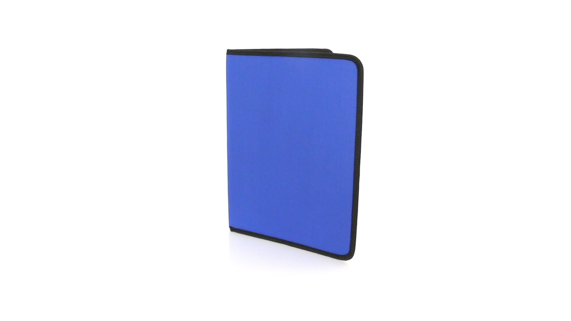 Mappe in verschiedenen Farben aus resistentem 600D Polyester mit verstärkten schwarzen Rändern. Im Inneren mit herausnehmbarem Block mit 20 Blättern, 2 Klappentaschen und Stifthalter.