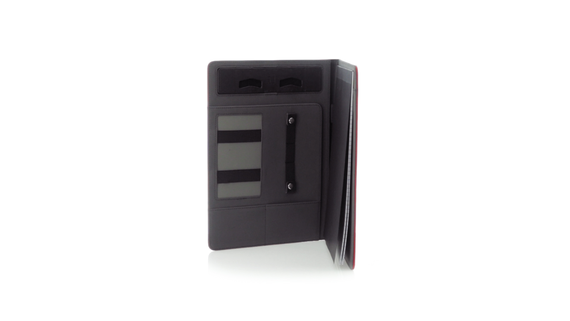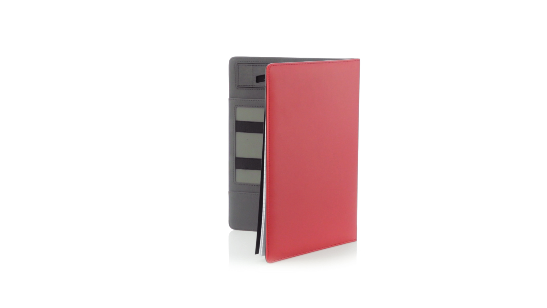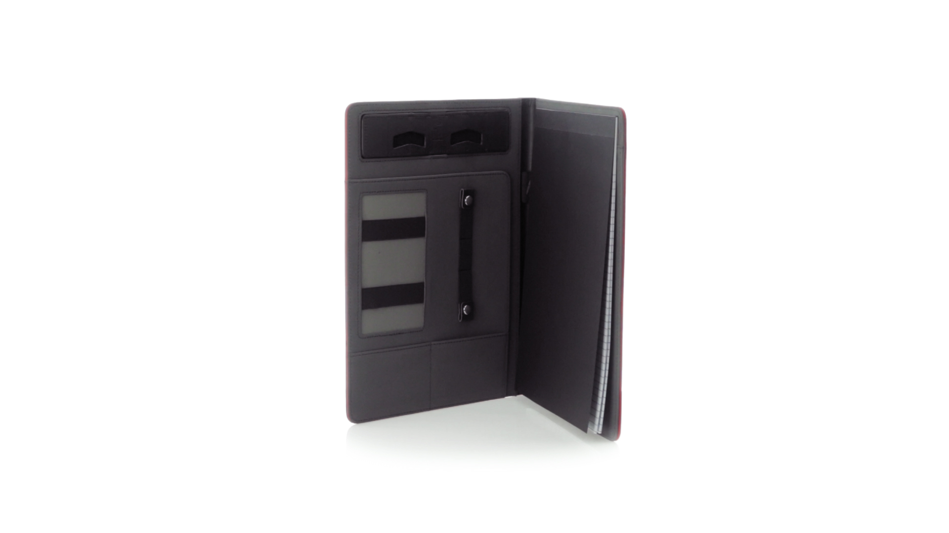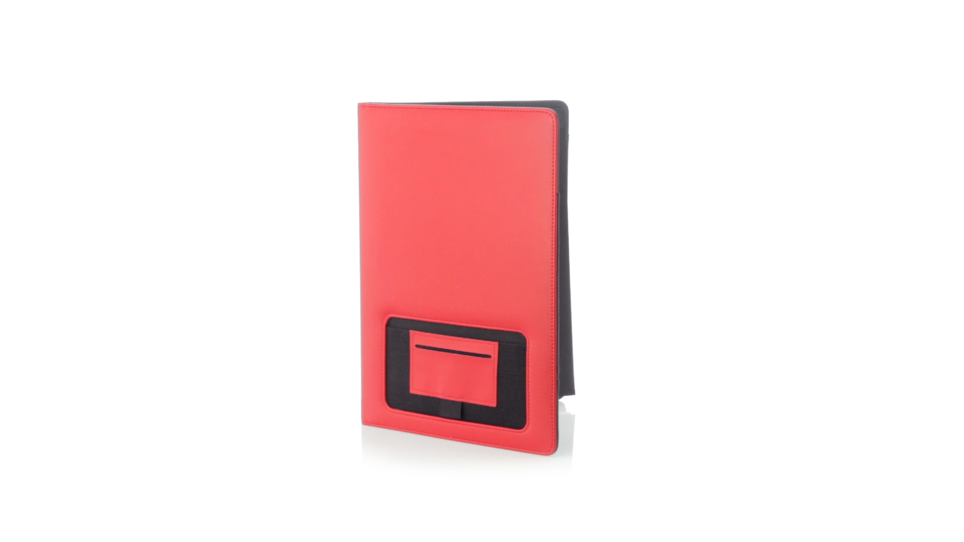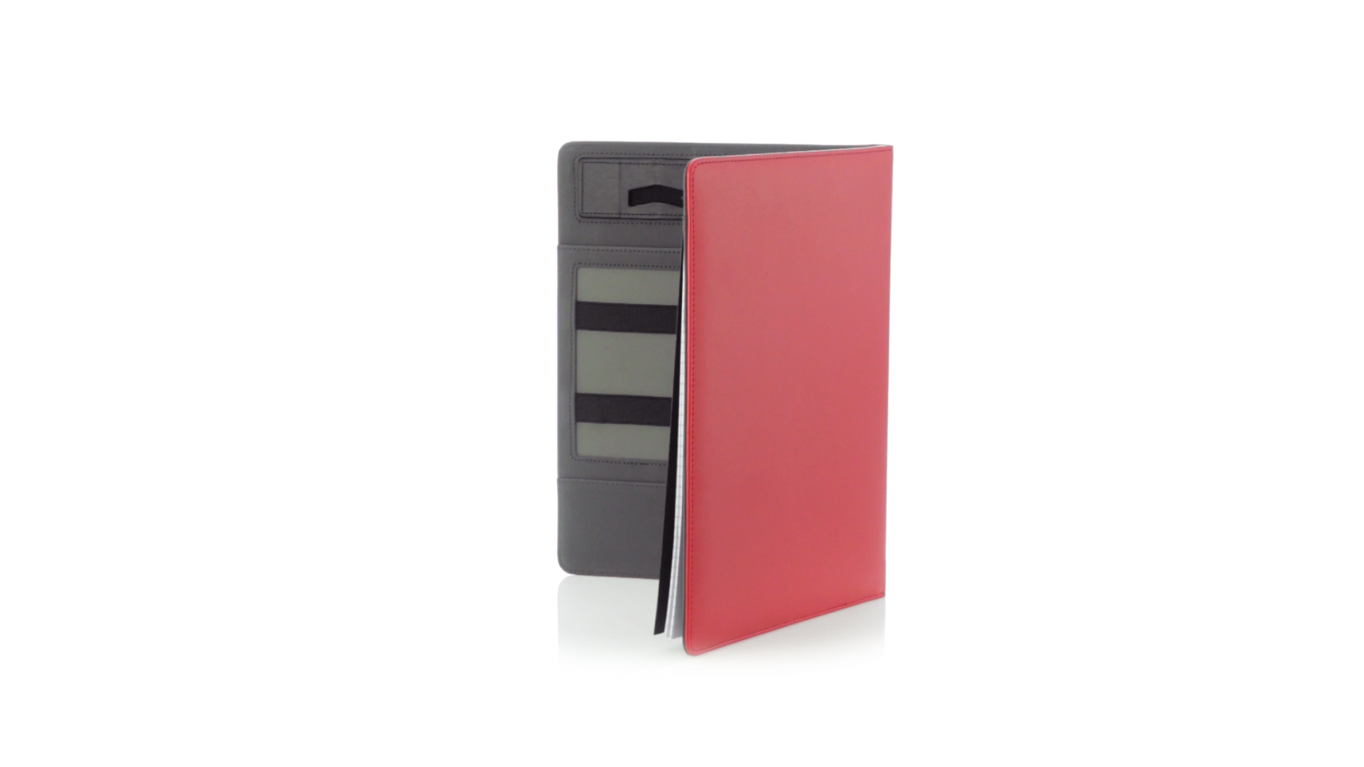 Hochwertige Mappe aus weichem Kunstleder in kräftigen Farben. Mit originellem Design und Fach auf dem Cover. Halterung im Inneren für Tablet von bis zu 10 Zoll und Smartphone. Mit herausnehmbarem Notizblock mit 20 linierten Blättern sowie Kalender und Stifthalter. Präsentiert in einer eleganten schwarzen Box.