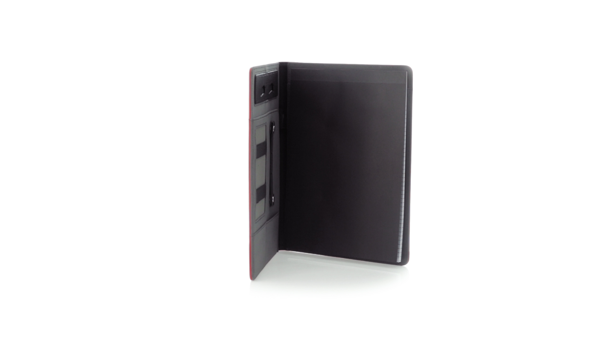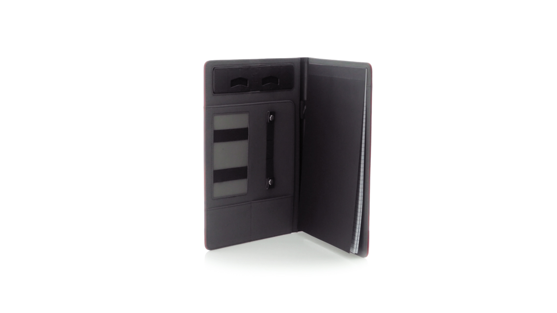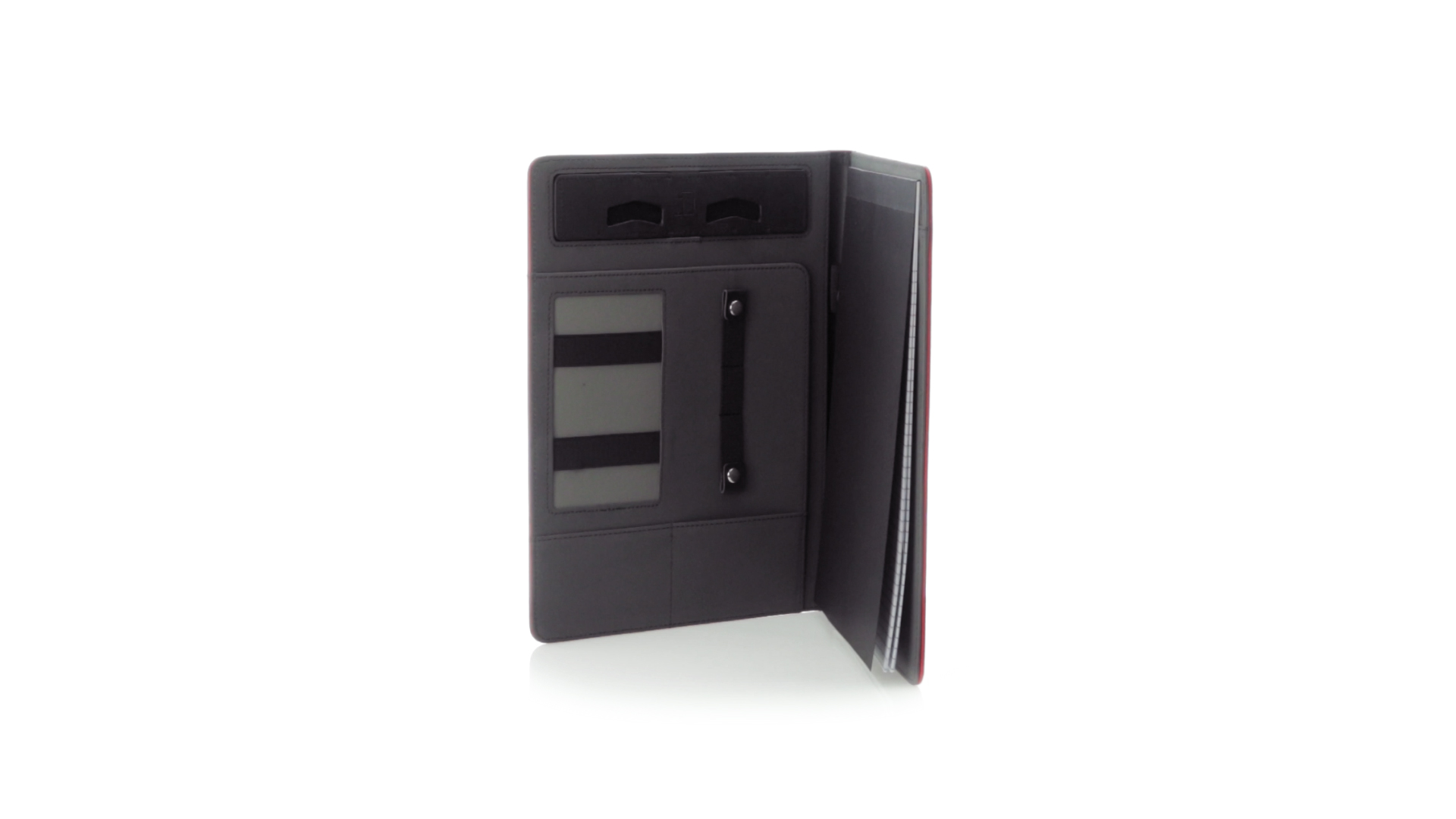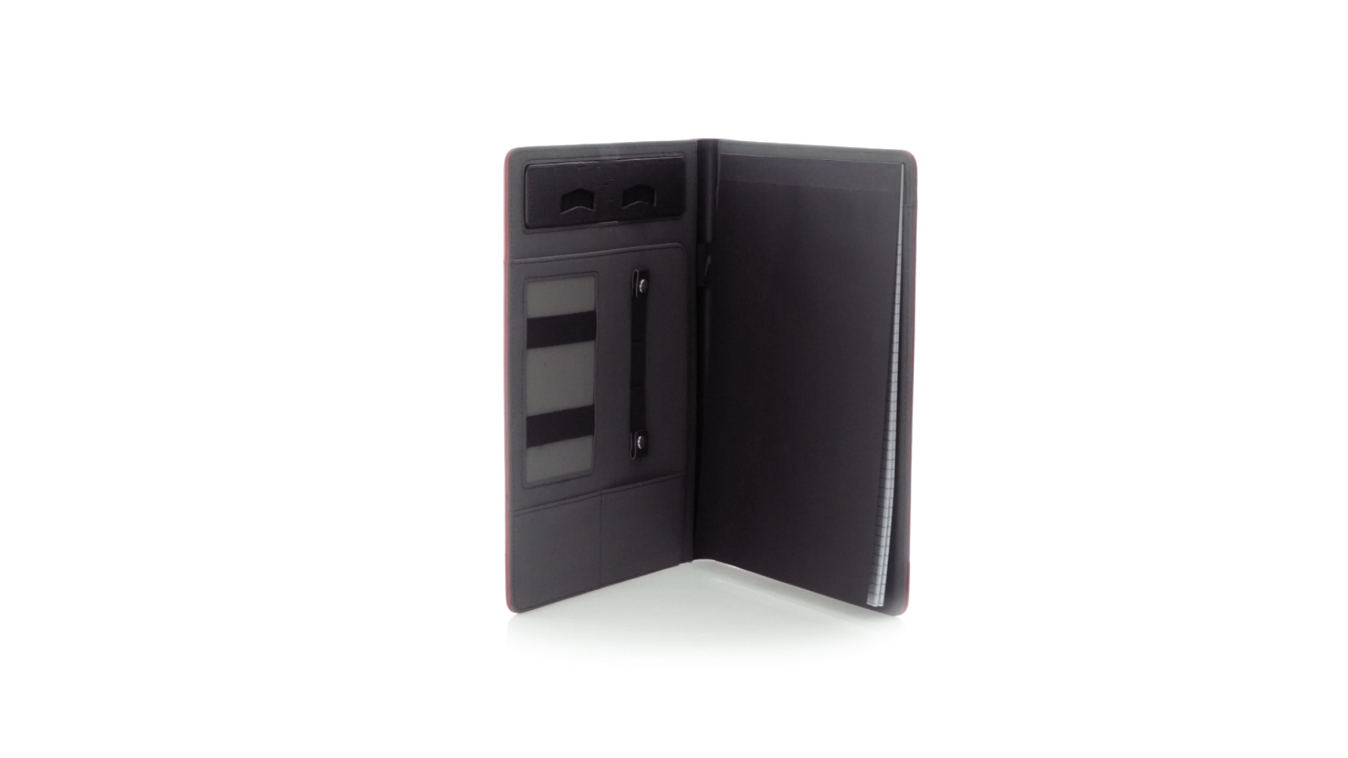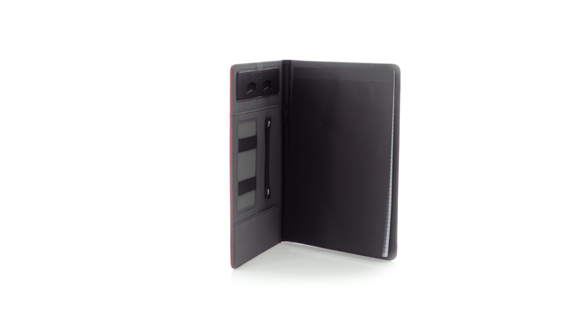 Hochwertige Mappe aus weichem Kunstleder in kräftigen Farben. Mit originellem Design und Fach auf dem Cover. Halterung im Inneren für Tablet von bis zu 10 Zoll und Smartphone. Mit herausnehmbarem Notizblock mit 20 linierten Blättern sowie Kalender und Stifthalter. Präsentiert in einer eleganten schwarzen Box.