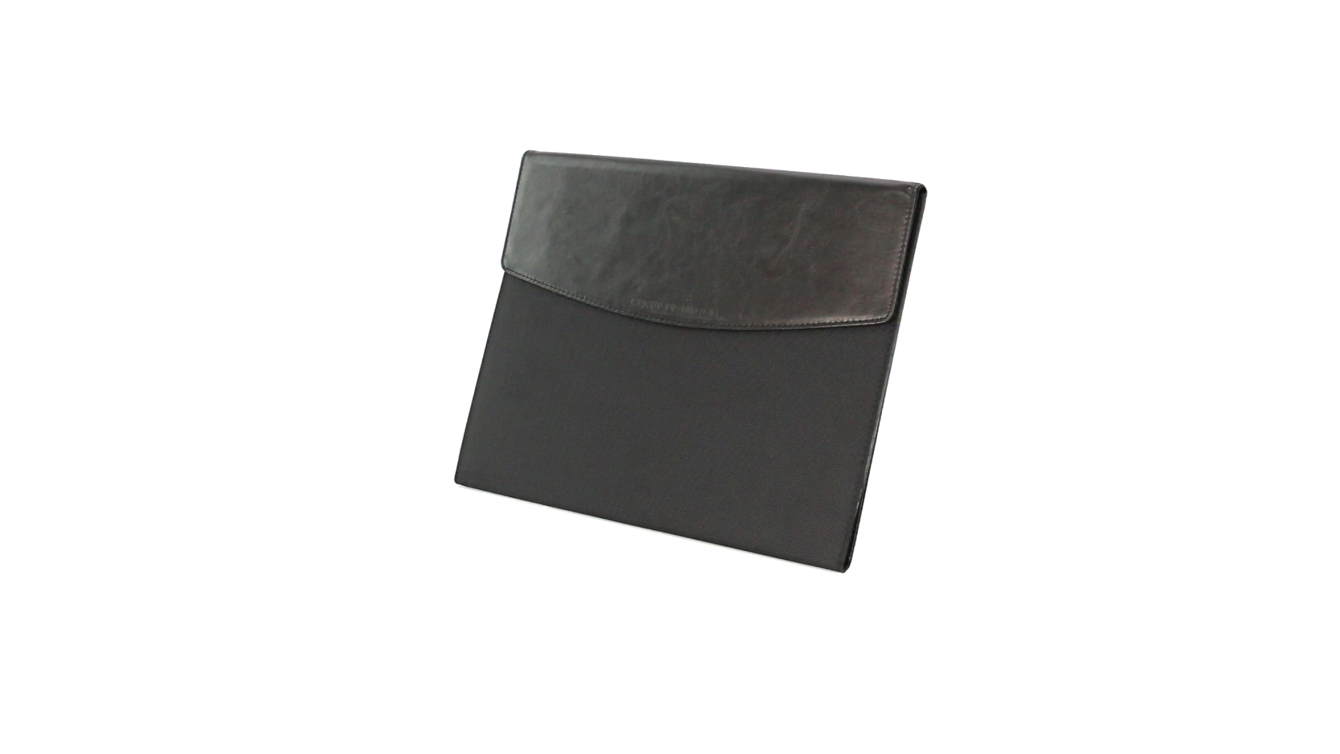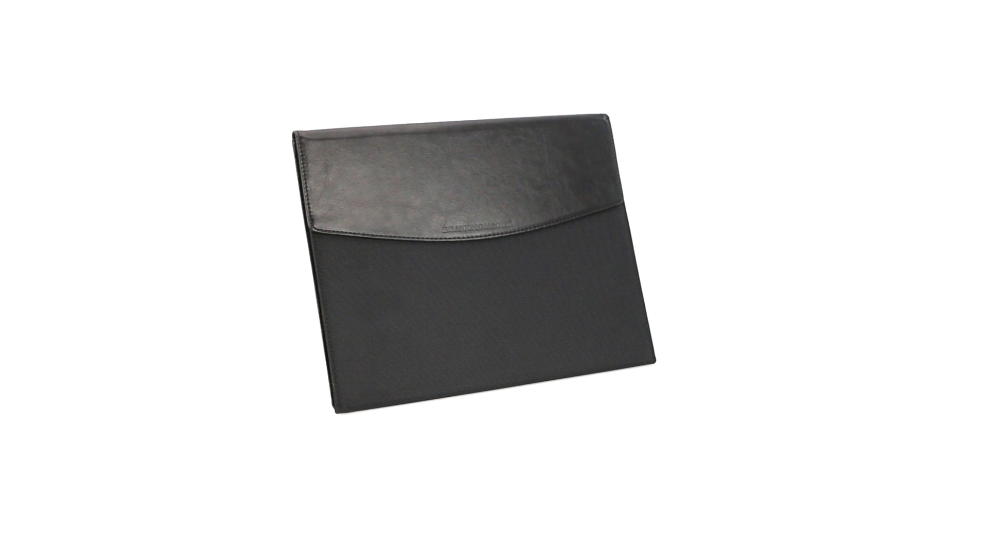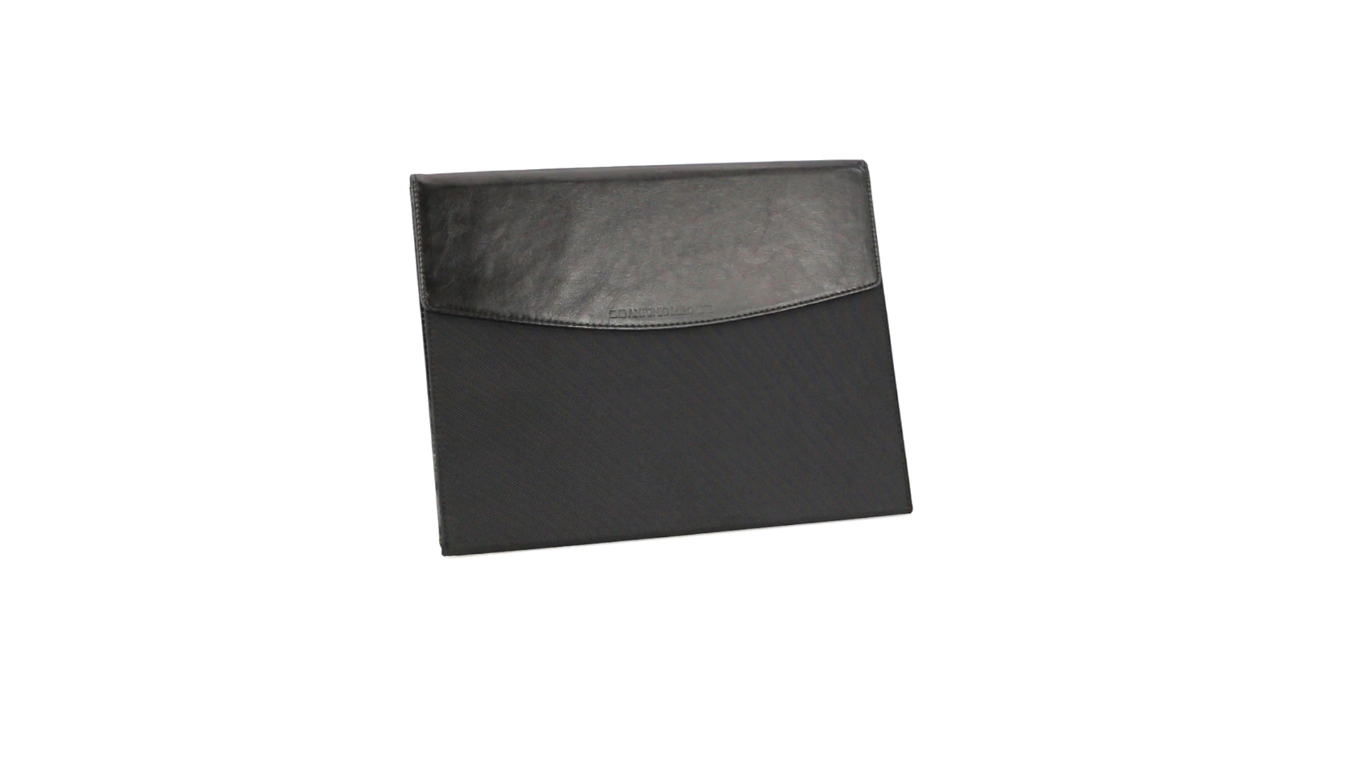 Mappe von Antonio Miró aus einer eleganten Kombination von 1680D Nylon und weichem Kunstleder. Eleganter Magnetverschluss mit dem Markenlogo und im Inneren mit Klappentasche und Notizblock mit 50 Blättern. Präsentiert in einer eleganten schwarzen Box mit dem Markenlogo.