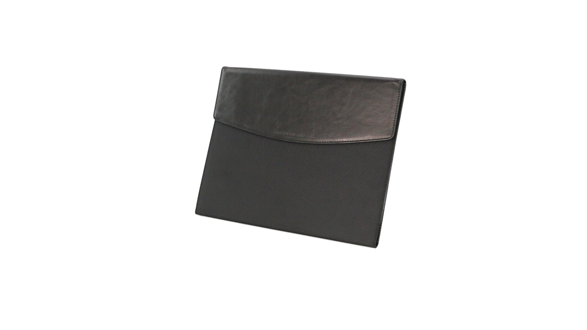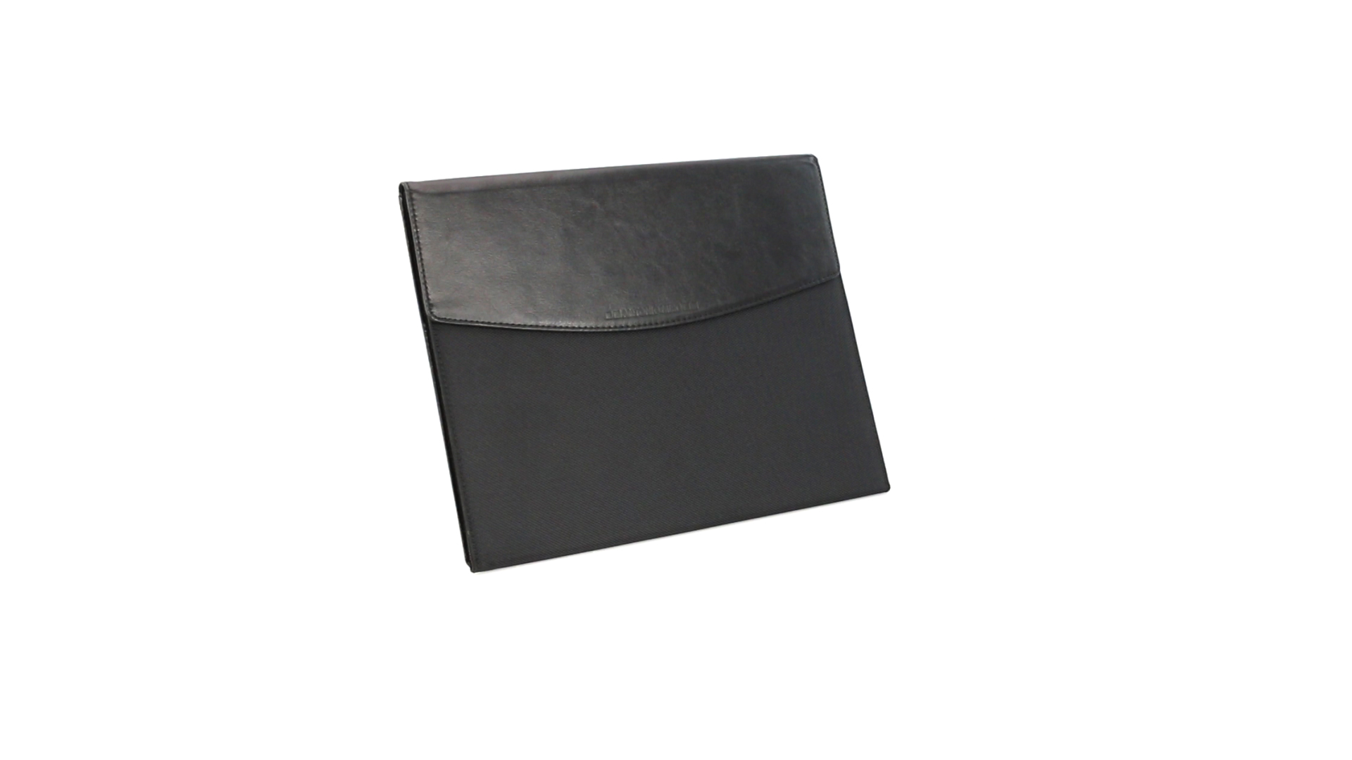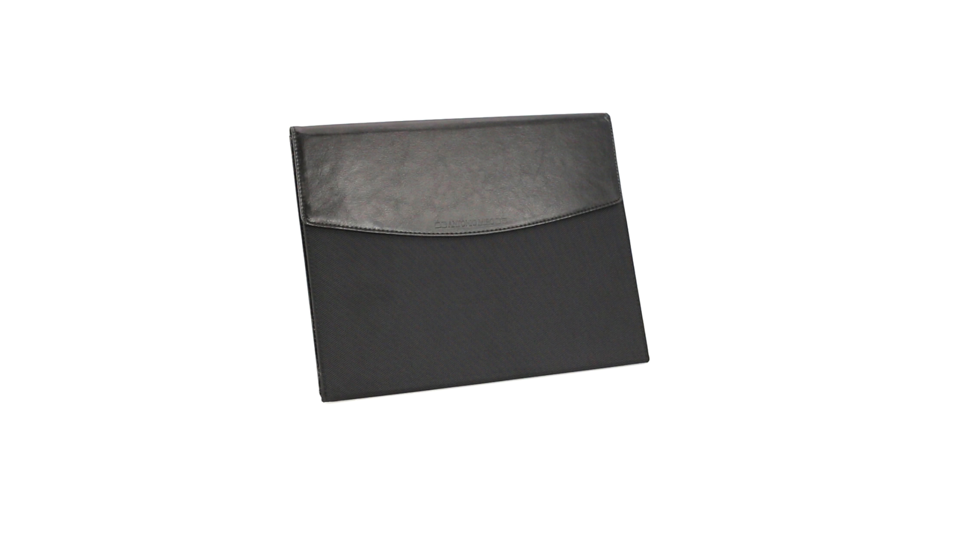 Mappe von Antonio Miró aus einer eleganten Kombination von 1680D Nylon und weichem Kunstleder. Eleganter Magnetverschluss mit dem Markenlogo und im Inneren mit Klappentasche und Notizblock mit 50 Blättern. Präsentiert in einer eleganten schwarzen Box mit dem Markenlogo.