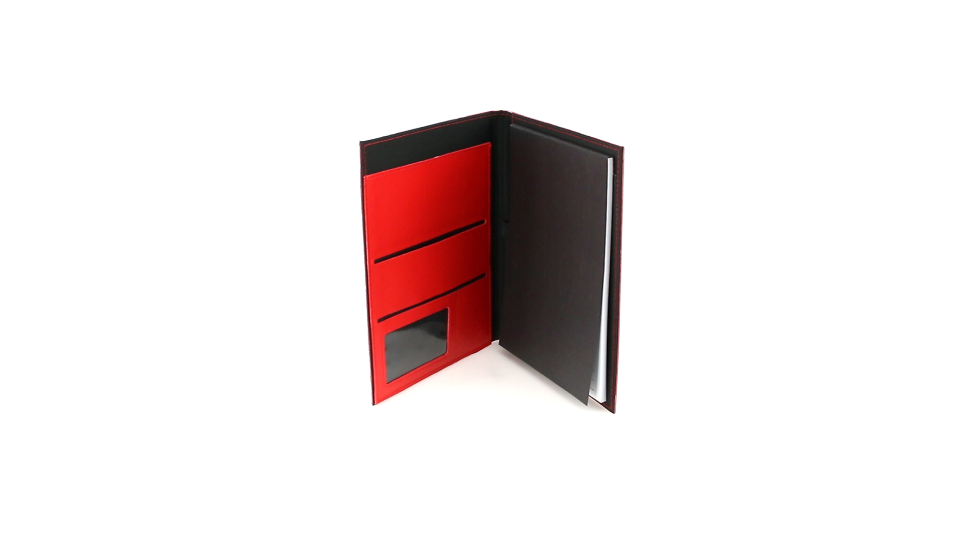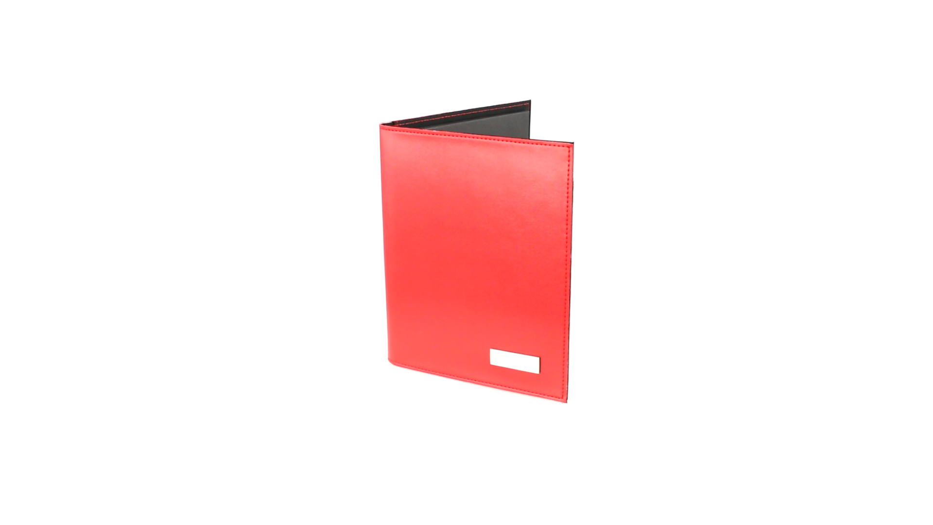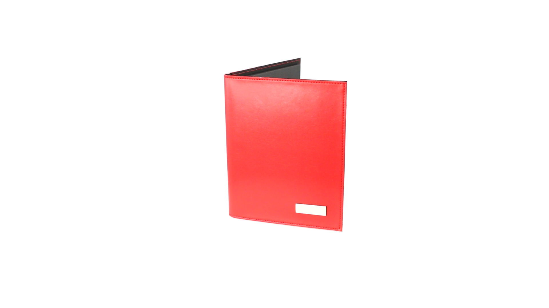 Mappe in lebendigen Farben aus weichem Kunstleder mit Metall-Druckfläche - speziell entworfen für den Laserdruck. Mit farblich passender Innenseite mit herausnehmbarem Notizblock mit 20 linierten Blättern sowie 4 Taschen und Stifthalter.