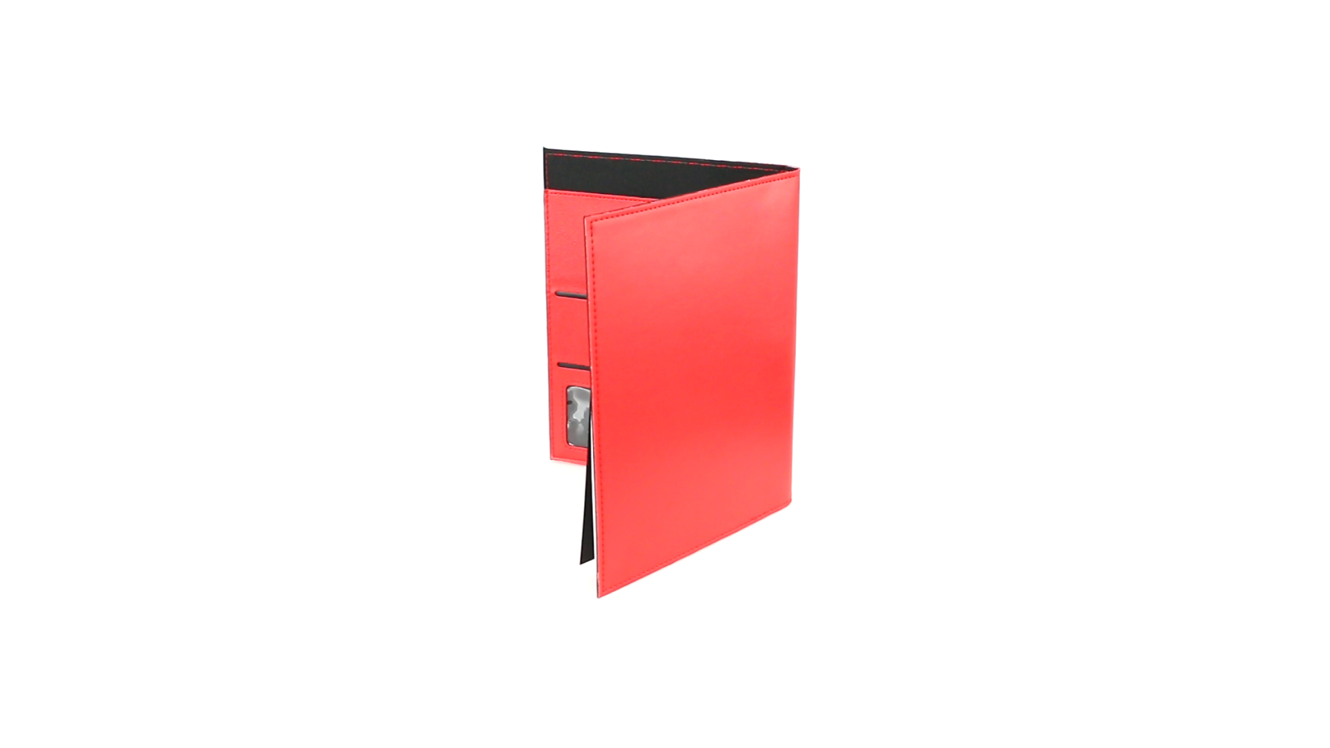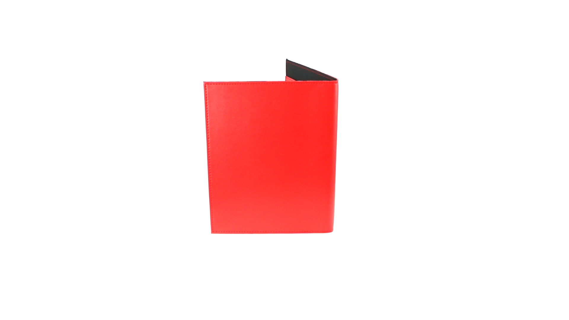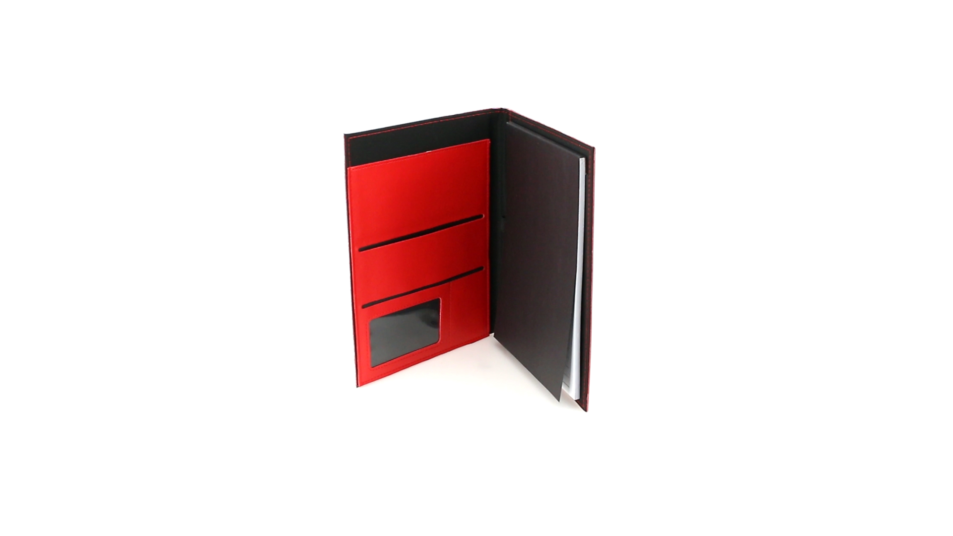 Mappe in lebendigen Farben aus weichem Kunstleder mit Metall-Druckfläche - speziell entworfen für den Laserdruck. Mit farblich passender Innenseite mit herausnehmbarem Notizblock mit 20 linierten Blättern sowie 4 Taschen und Stifthalter.