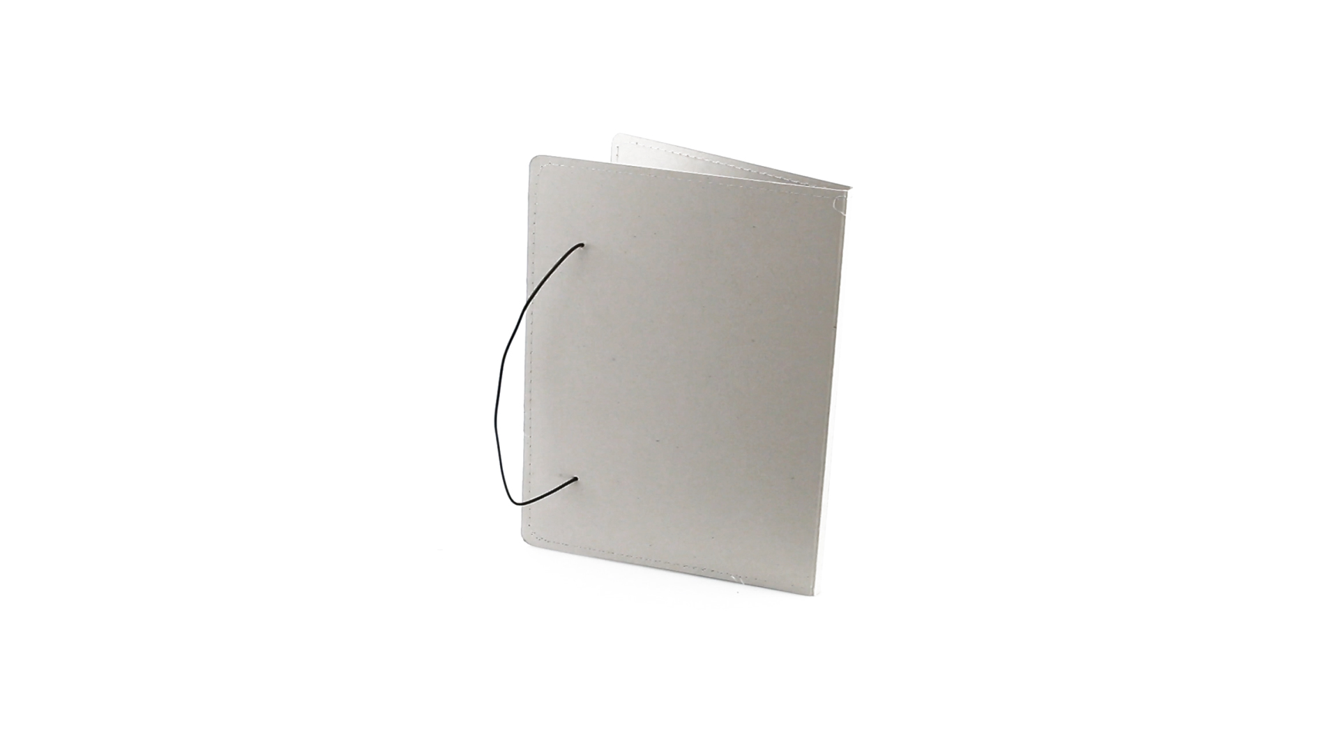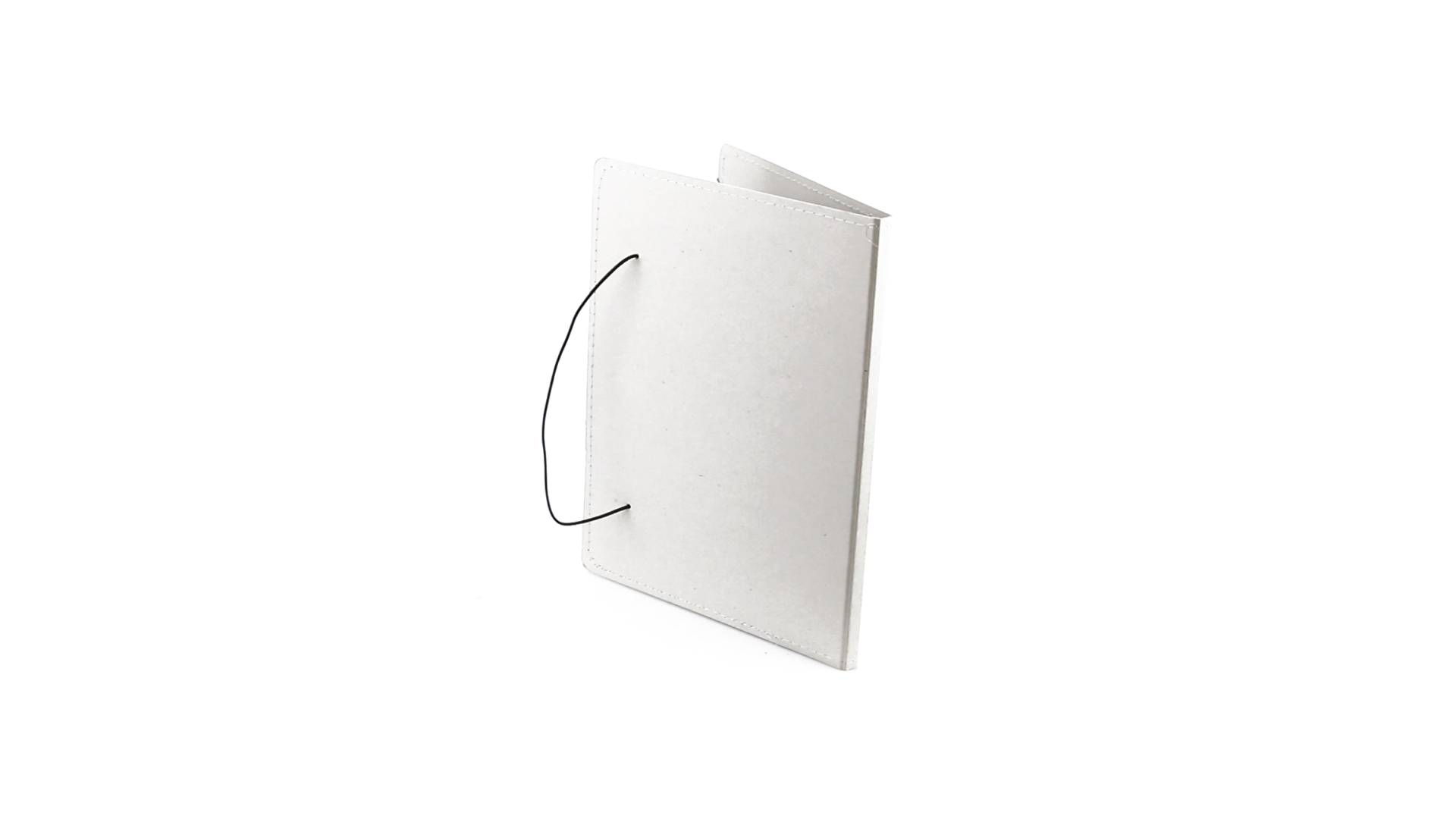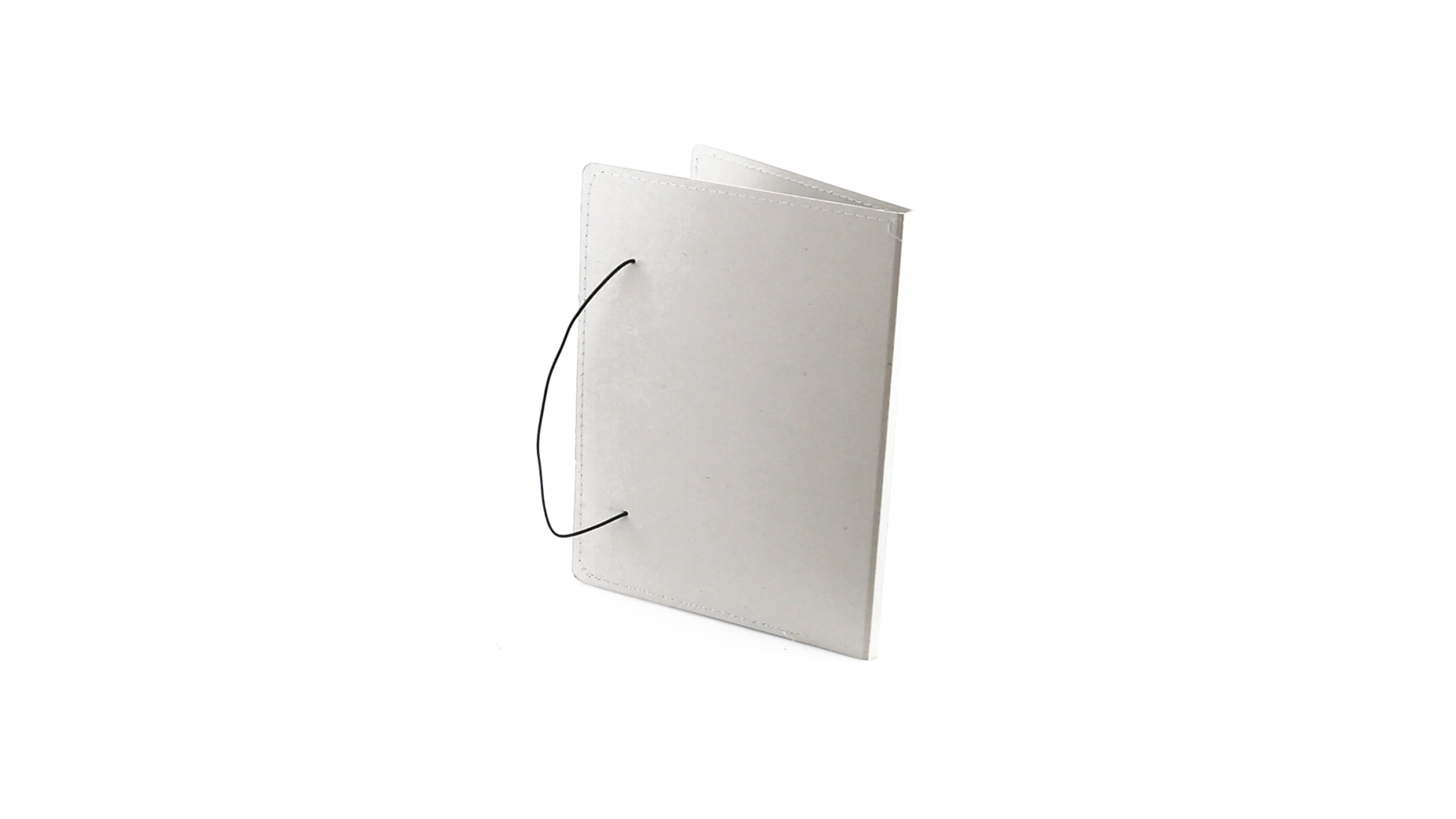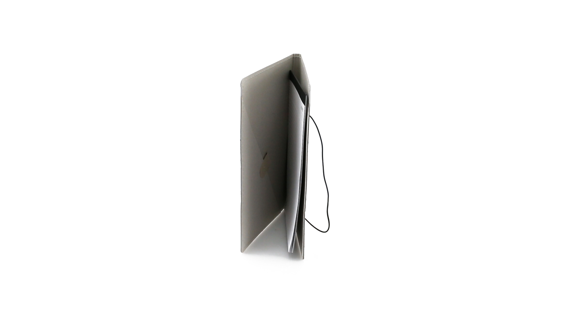 Mappe mit originellem Gummibandverschluss aus widerstandsfähigem Recyclingkarton mit Verstärkungsnähten. Mit Notizblock mit 20 linierten Blättern, dreieckiger Klappentasche und Stifthalter.