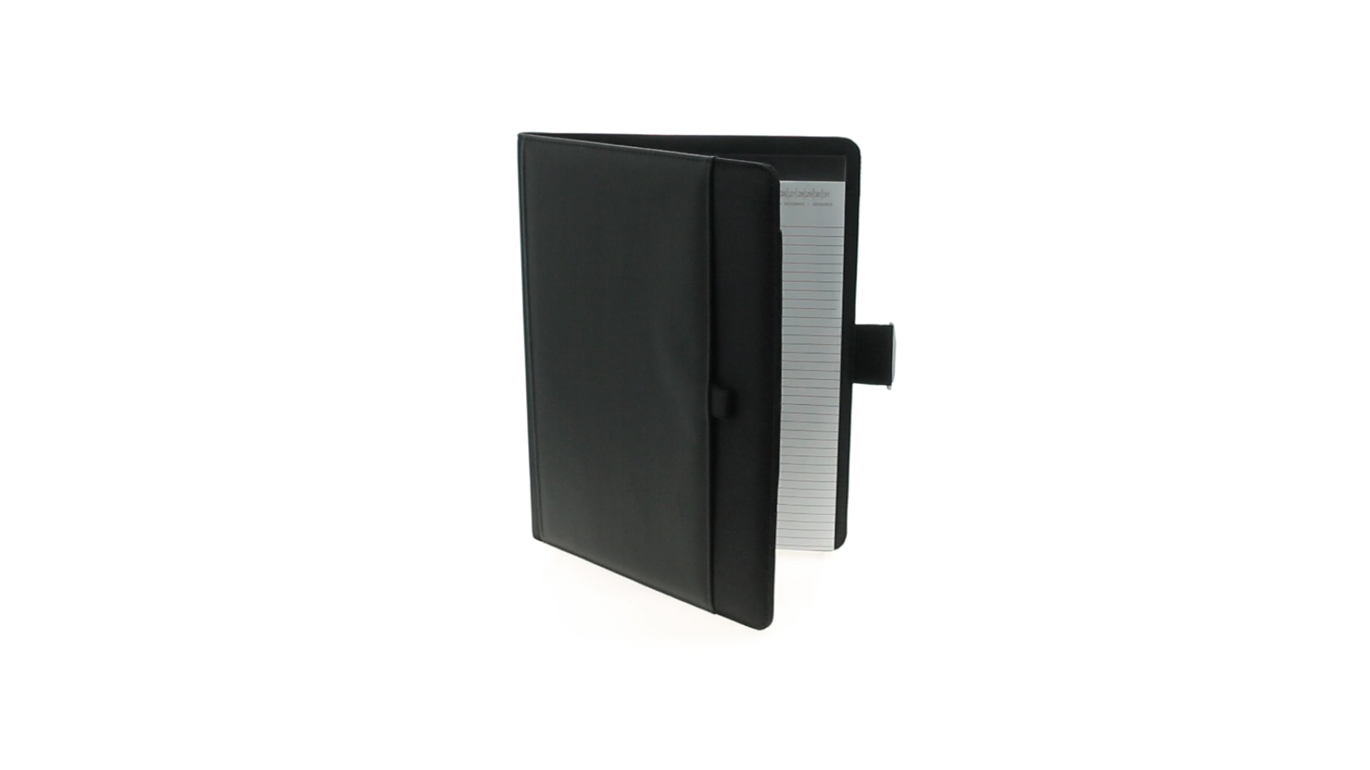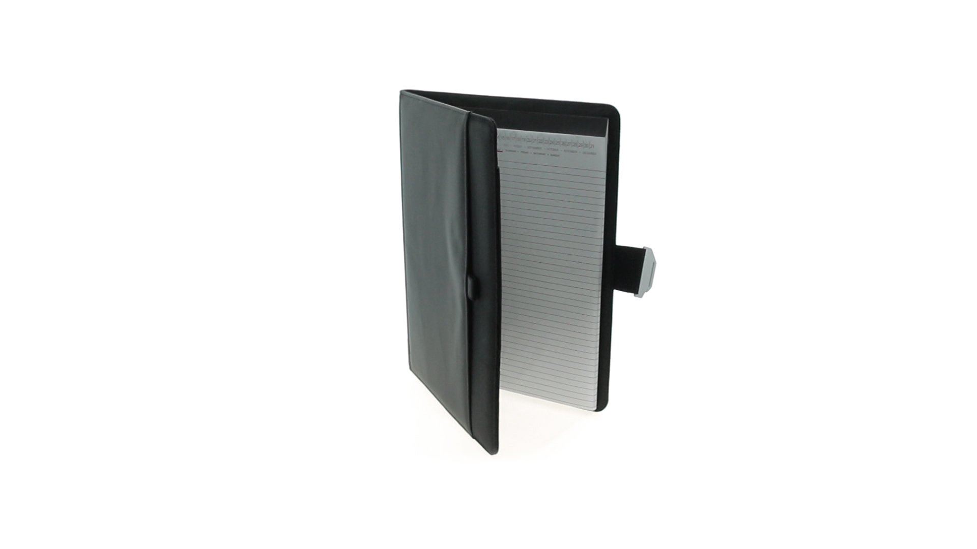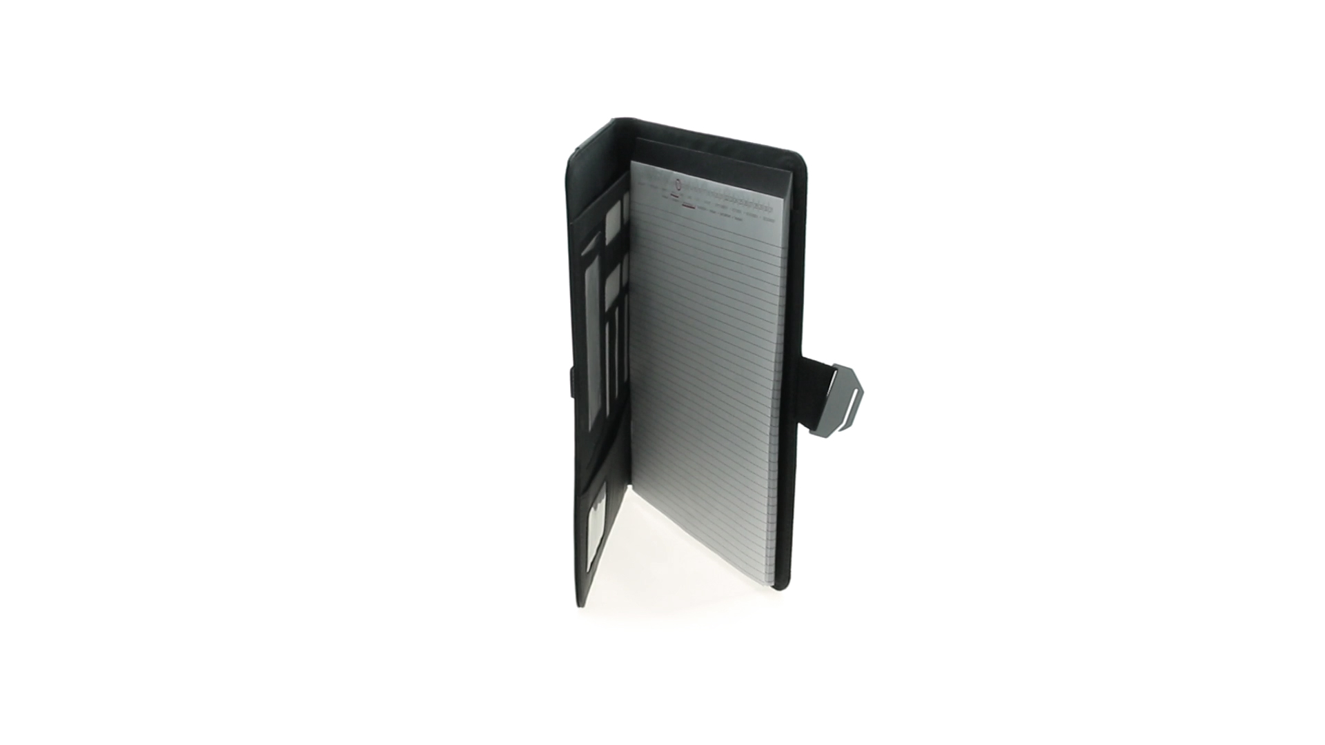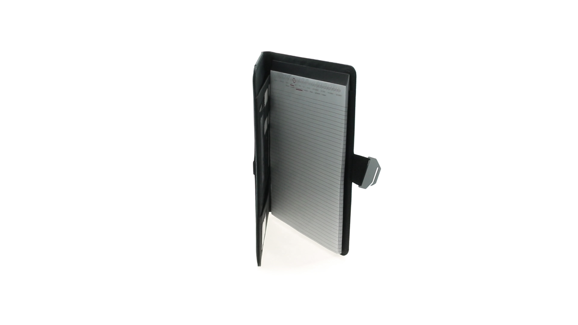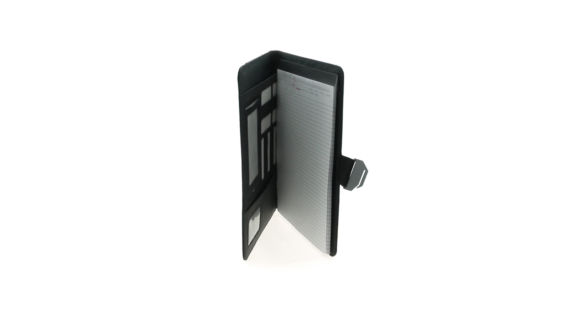 Mappe aus einer eleganten Polyester/Kunstleder-Kombination mit originellem Metallverschluss. Im Inneren mit Fächern für USB-Sticks und externen Akku, Smartphone-Hülle mit Touch-Funktion sowie Kartenfächern und Stifthalter. Mit herausnehmbarem Notizblock mit 20 Blättern. Präsentiert in einer eleganten schwarzen Box.