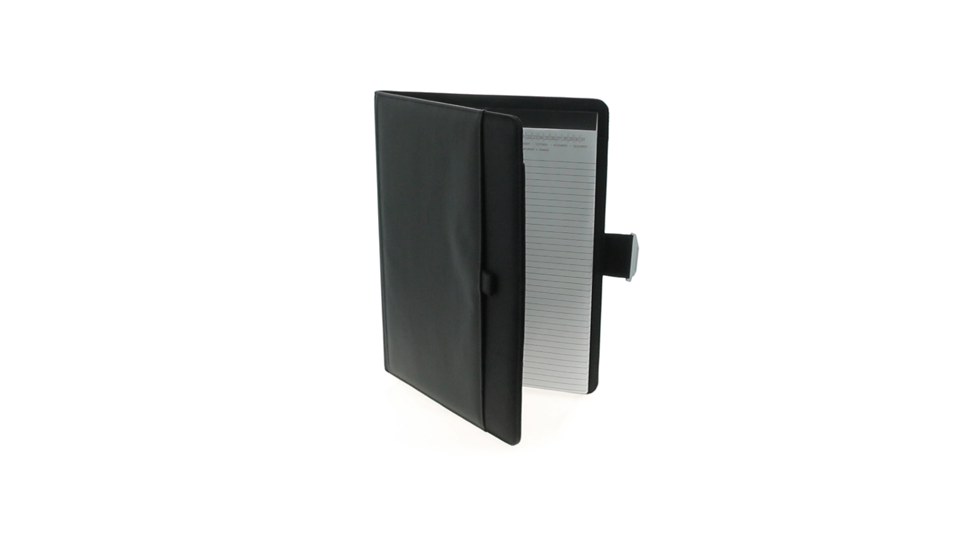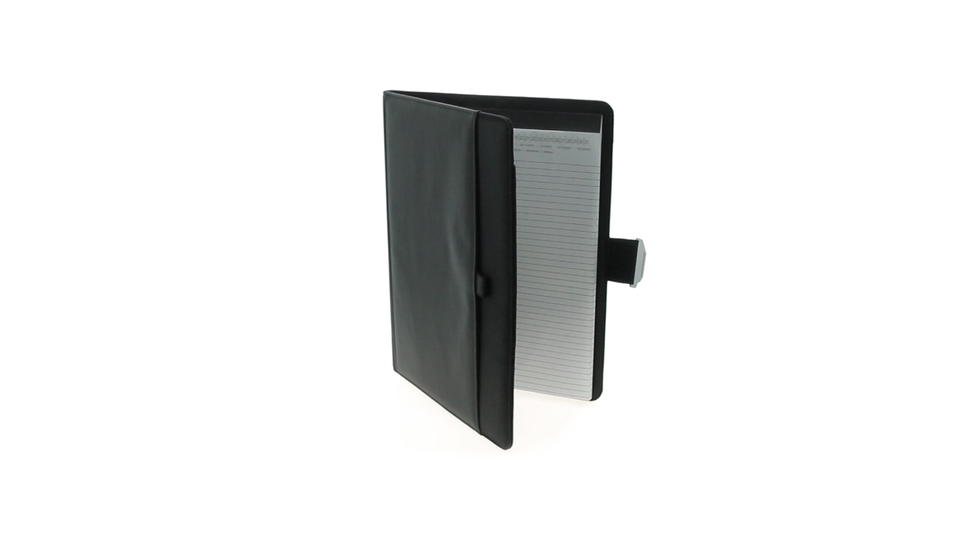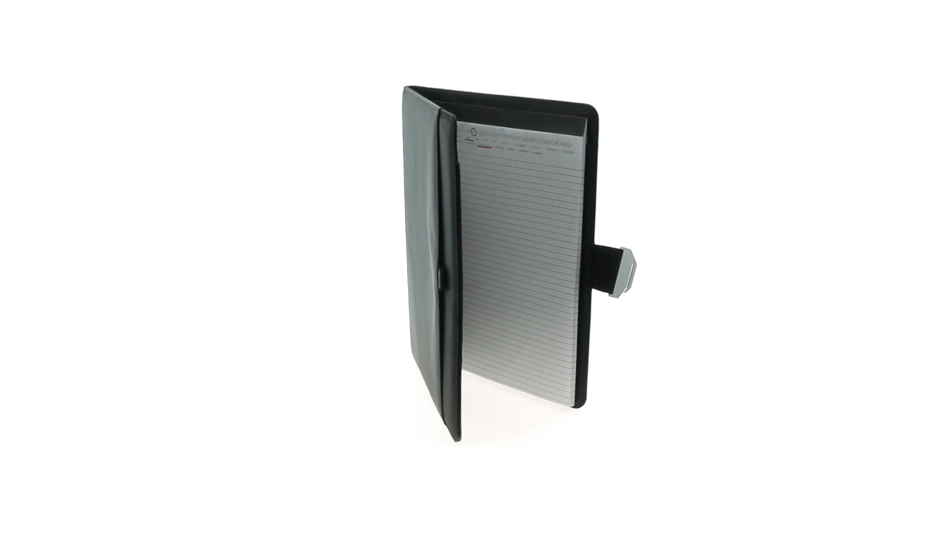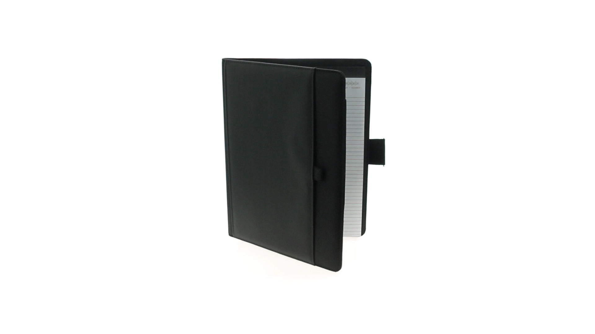 Mappe aus einer eleganten Polyester/Kunstleder-Kombination mit originellem Metallverschluss. Im Inneren mit Fächern für USB-Sticks und externen Akku, Smartphone-Hülle mit Touch-Funktion sowie Kartenfächern und Stifthalter. Mit herausnehmbarem Notizblock mit 20 Blättern. Präsentiert in einer eleganten schwarzen Box.