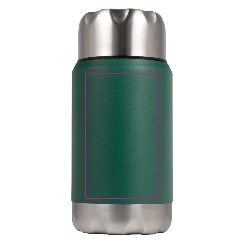 Kleine, handliche Thermosflasche mit dem gewissen Extra. Elegantes Design aus rostfreiem Stahl mit einem kleinen Klapplöffel im Deckel. Durch den grossen Hals ist sie leicht zu reinigen und eignet sich perfekt zum Befüllen mit z. B. Suppe. Hält Ihre Speisen oder Getränke 24 Stunden lang eiskalt oder 12 Stunden lang heiss.