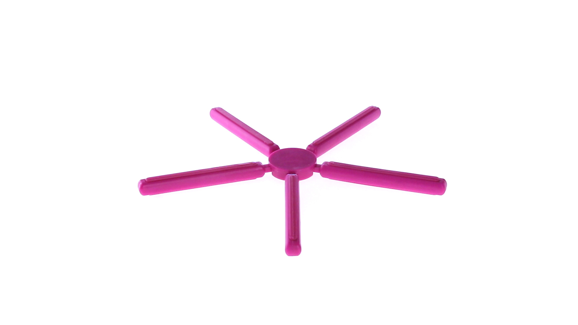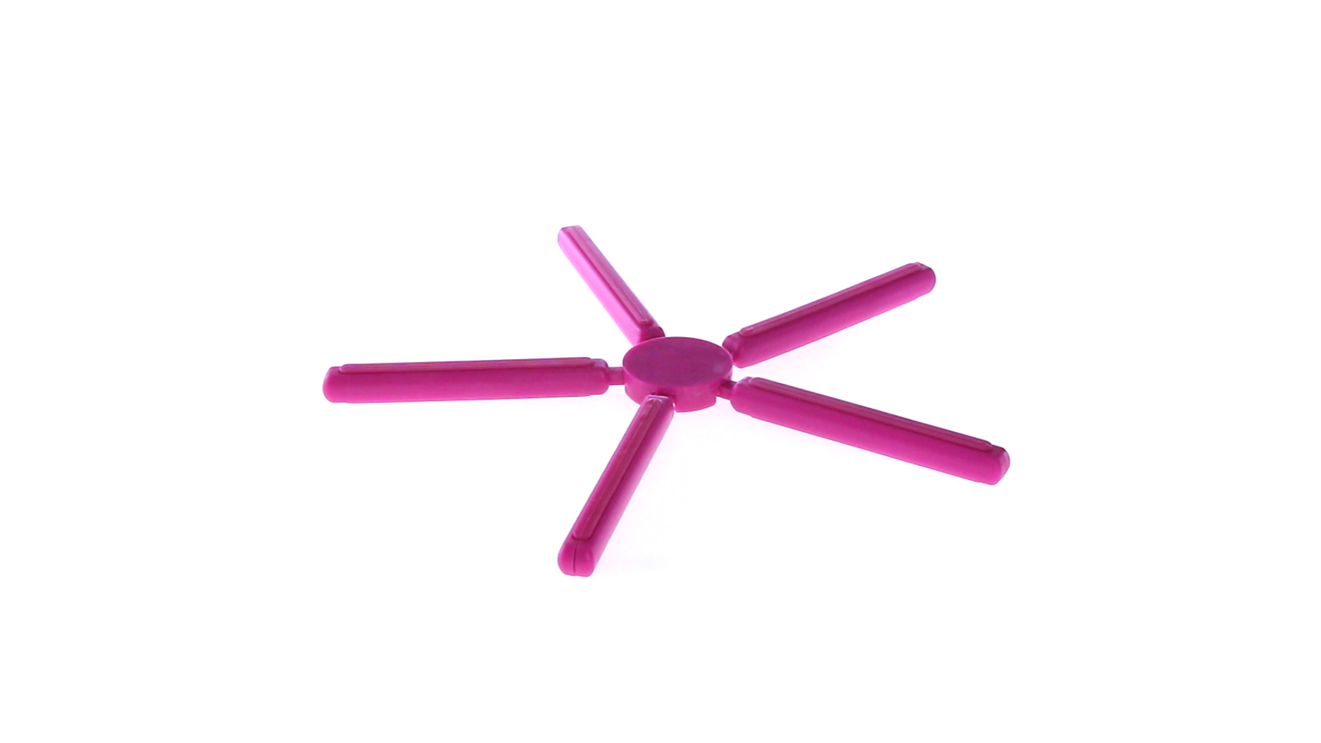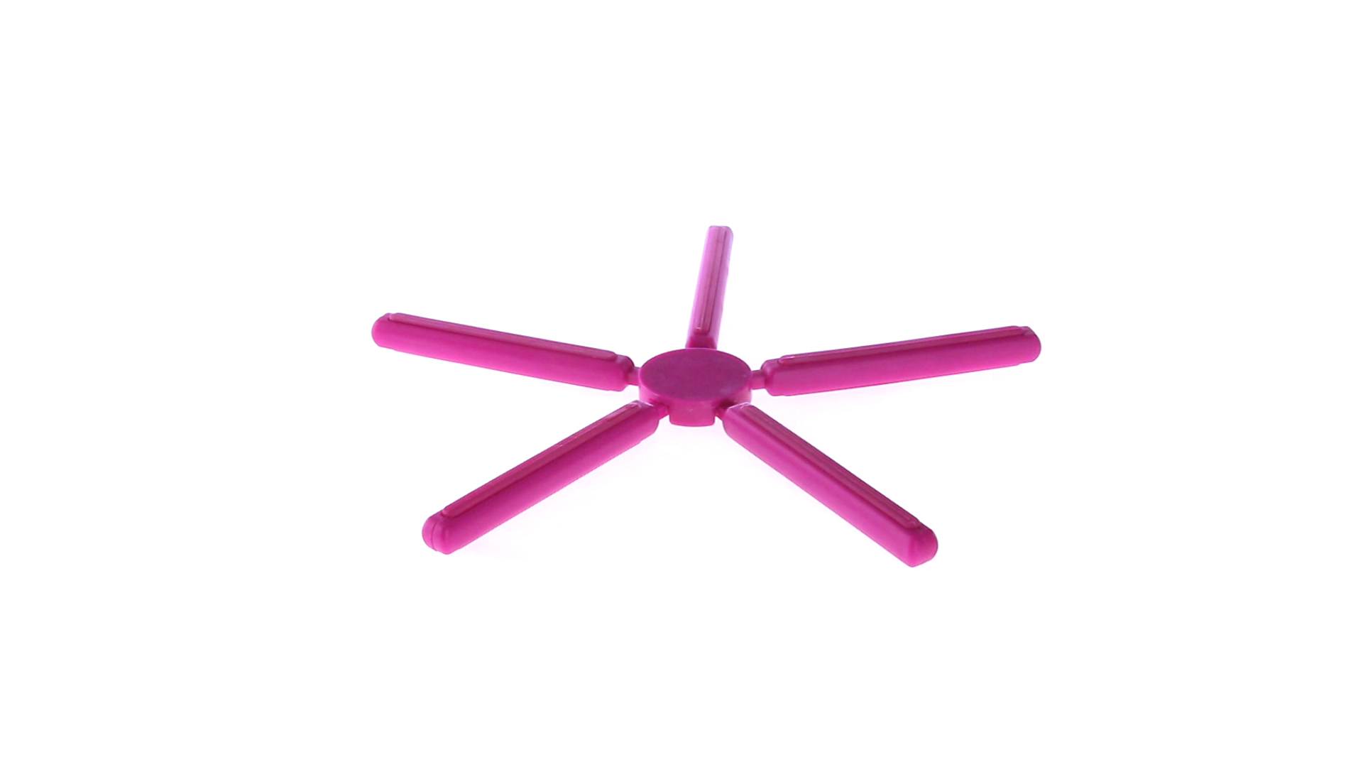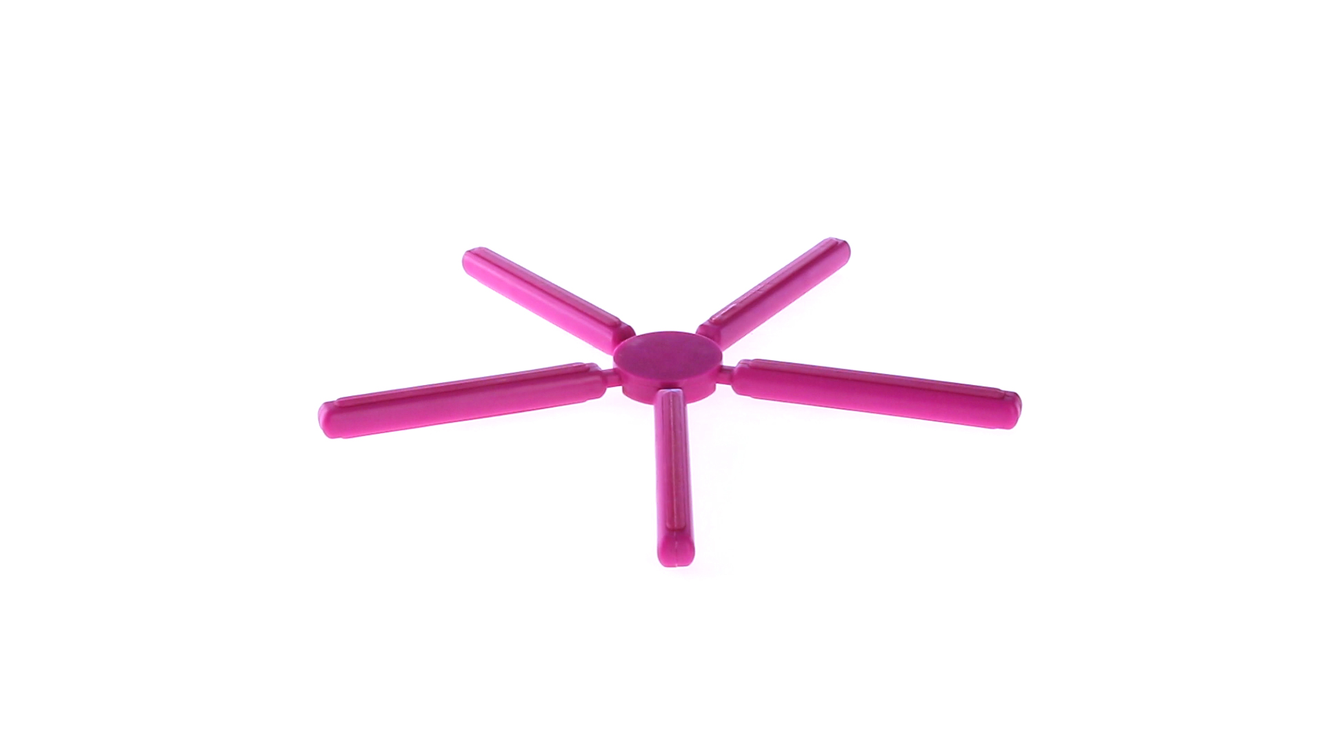 Origineller klappbarer Topfuntersetzer in verschiedenen kräftigen Farben. Mit 5 Beinen mit rutschfester Silikonbeschichtung.