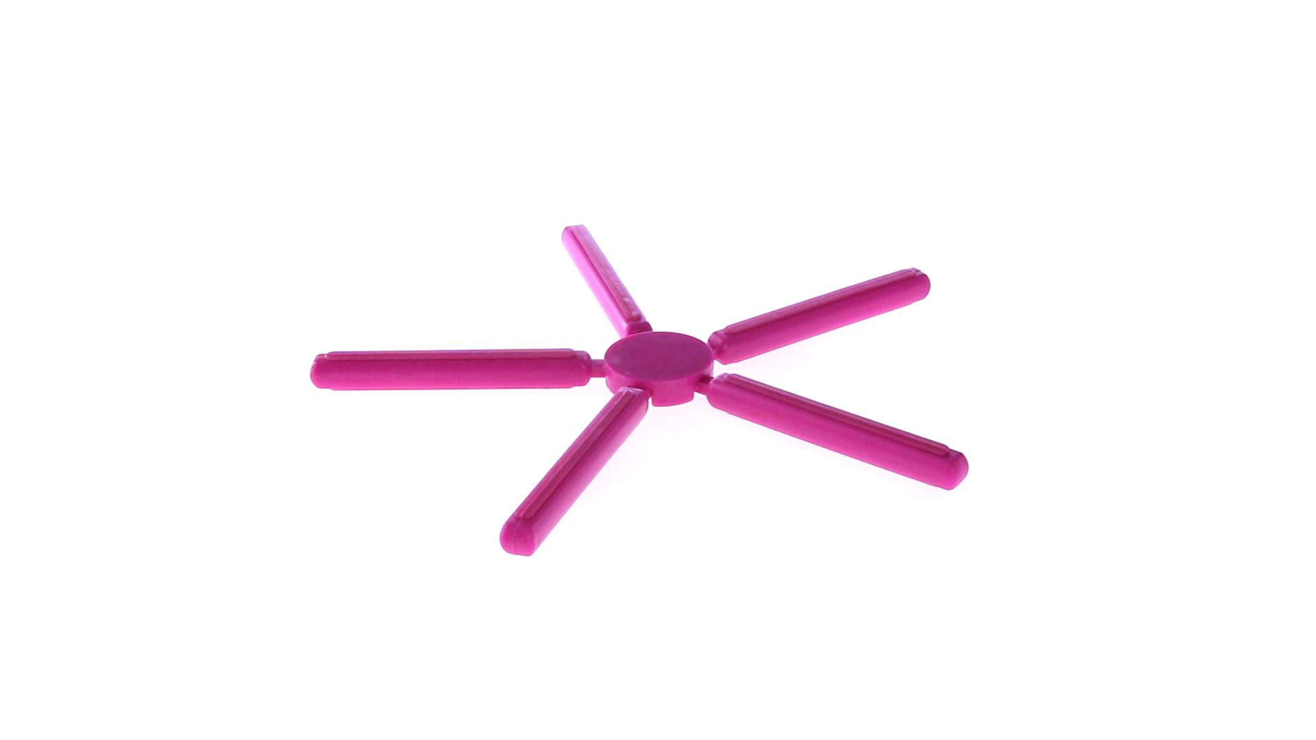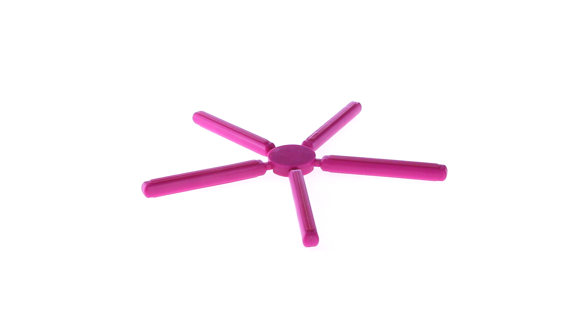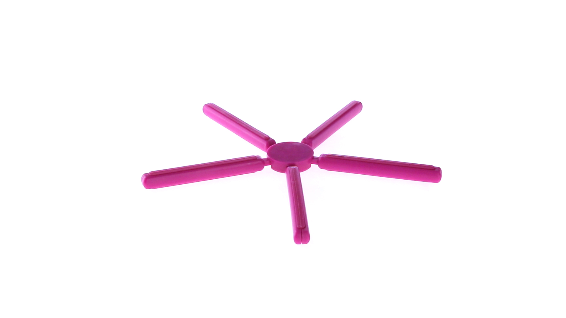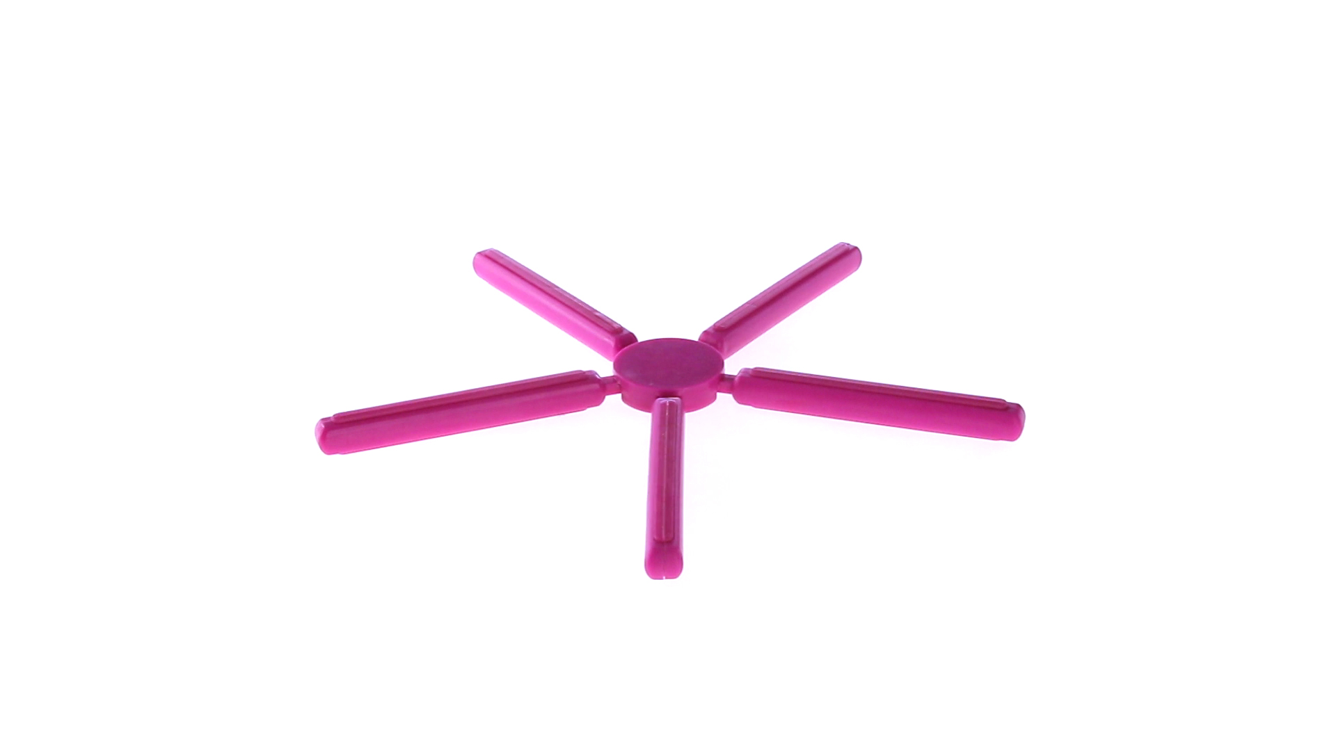 Origineller klappbarer Topfuntersetzer in verschiedenen kräftigen Farben. Mit 5 Beinen mit rutschfester Silikonbeschichtung.