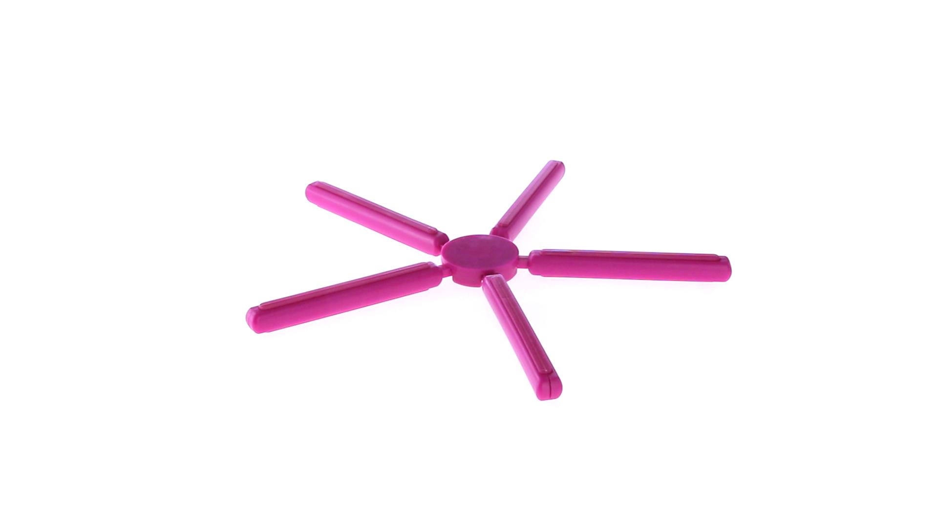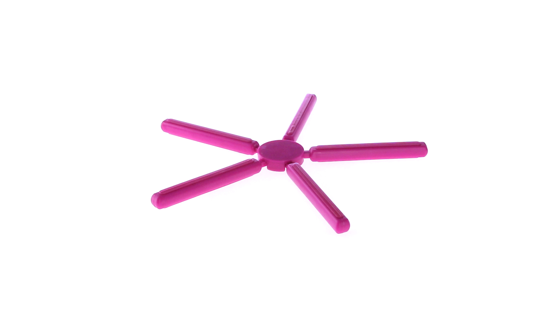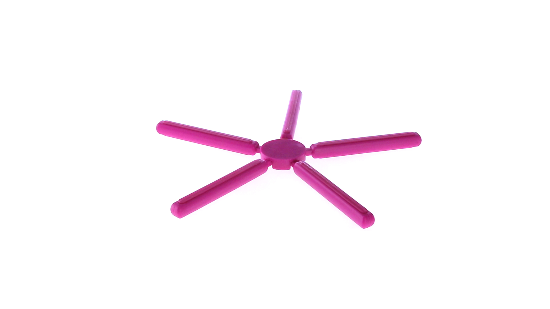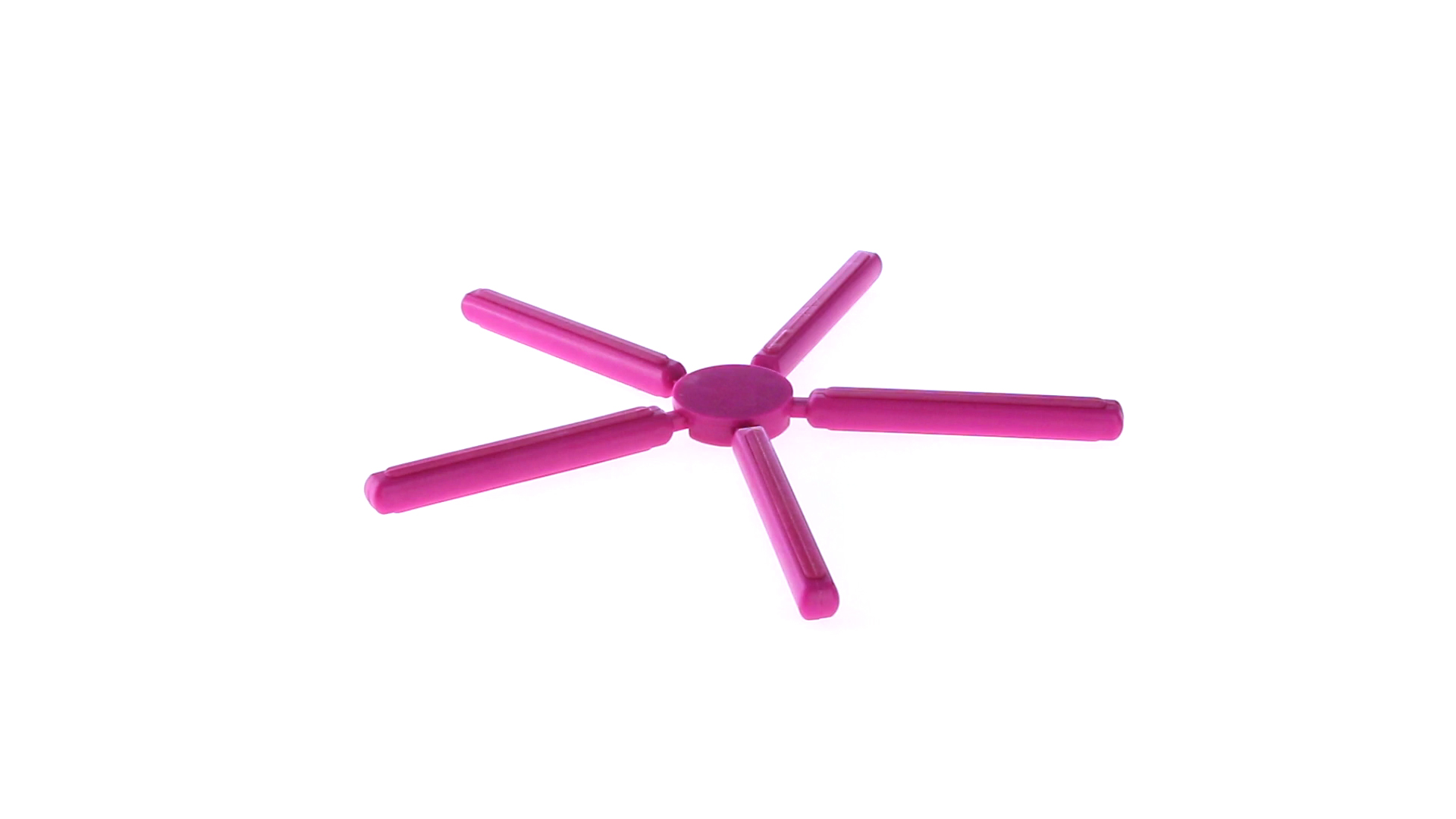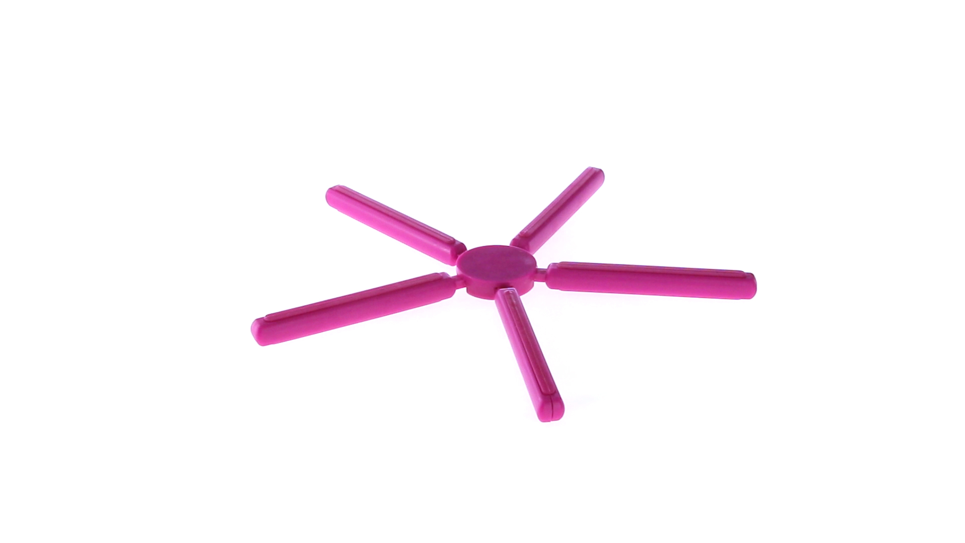 Origineller klappbarer Topfuntersetzer in verschiedenen kräftigen Farben. Mit 5 Beinen mit rutschfester Silikonbeschichtung.