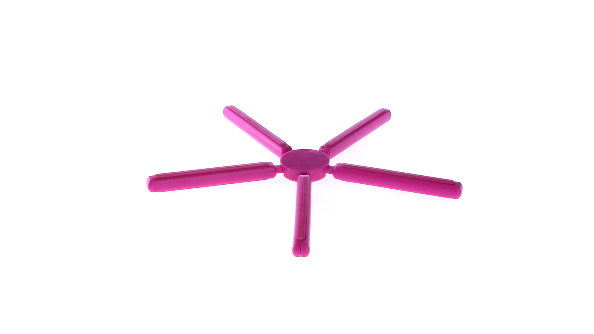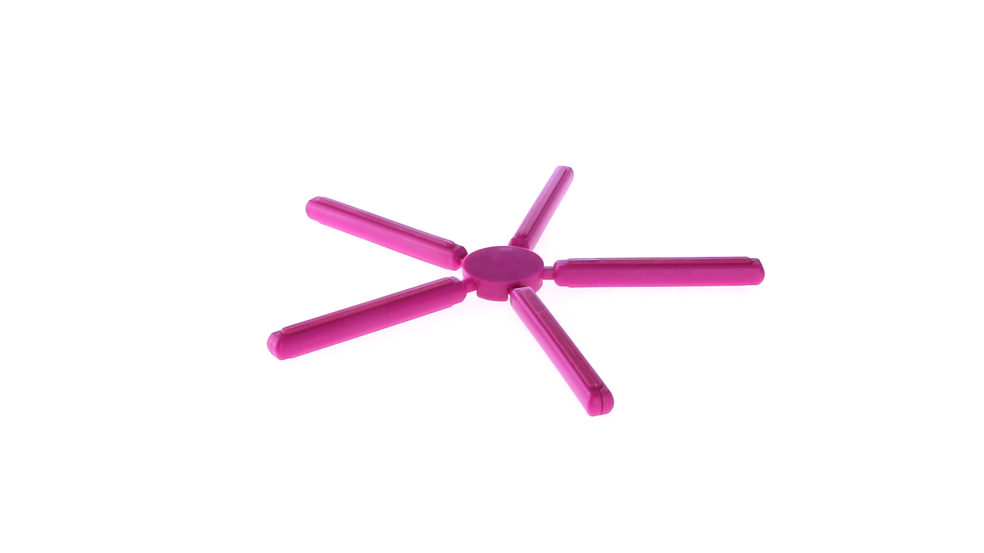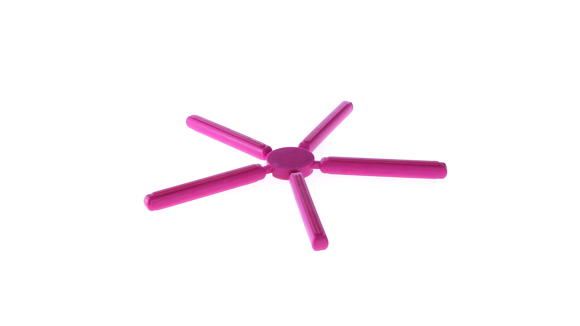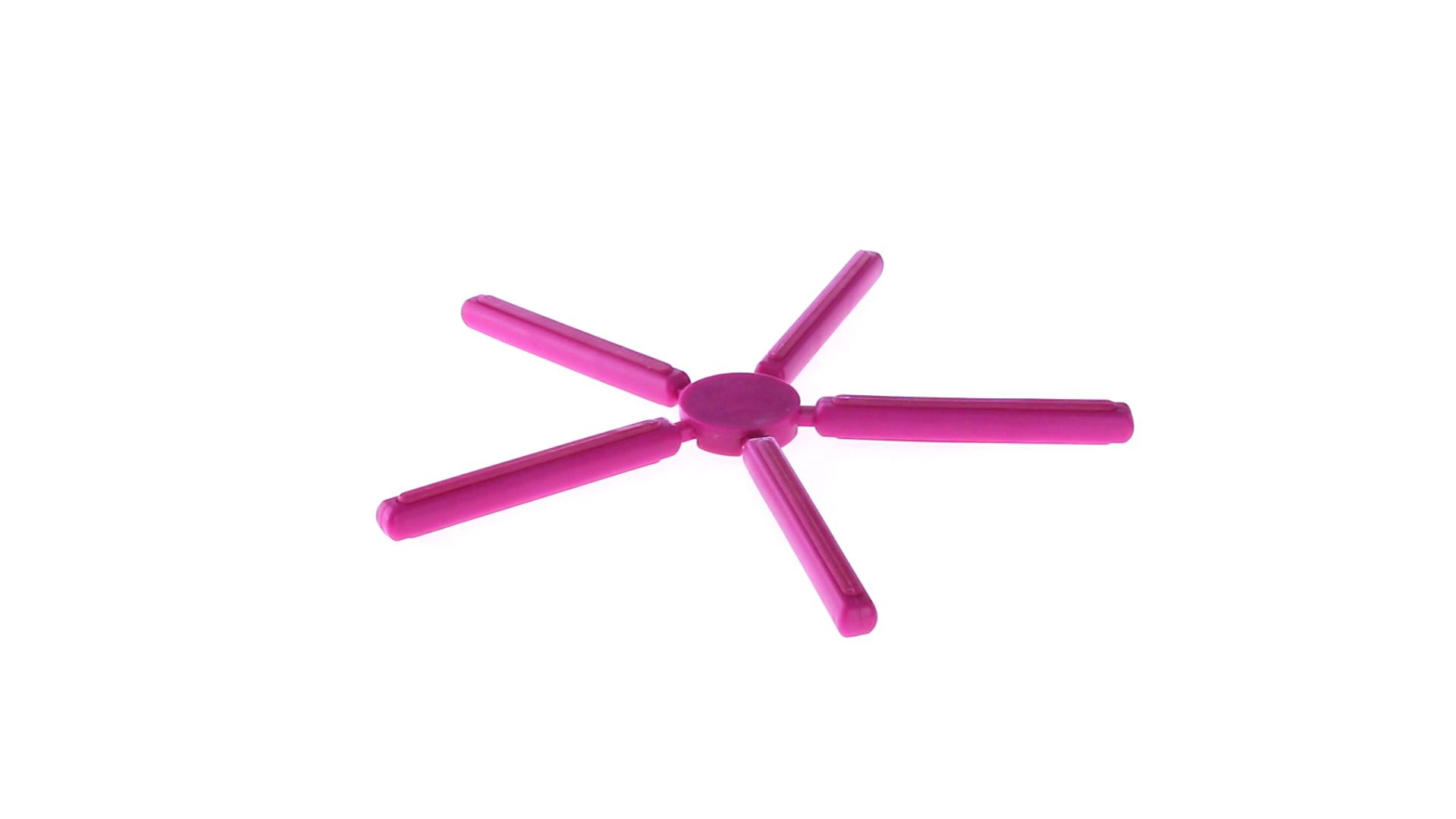 Origineller klappbarer Topfuntersetzer in verschiedenen kräftigen Farben. Mit 5 Beinen mit rutschfester Silikonbeschichtung.