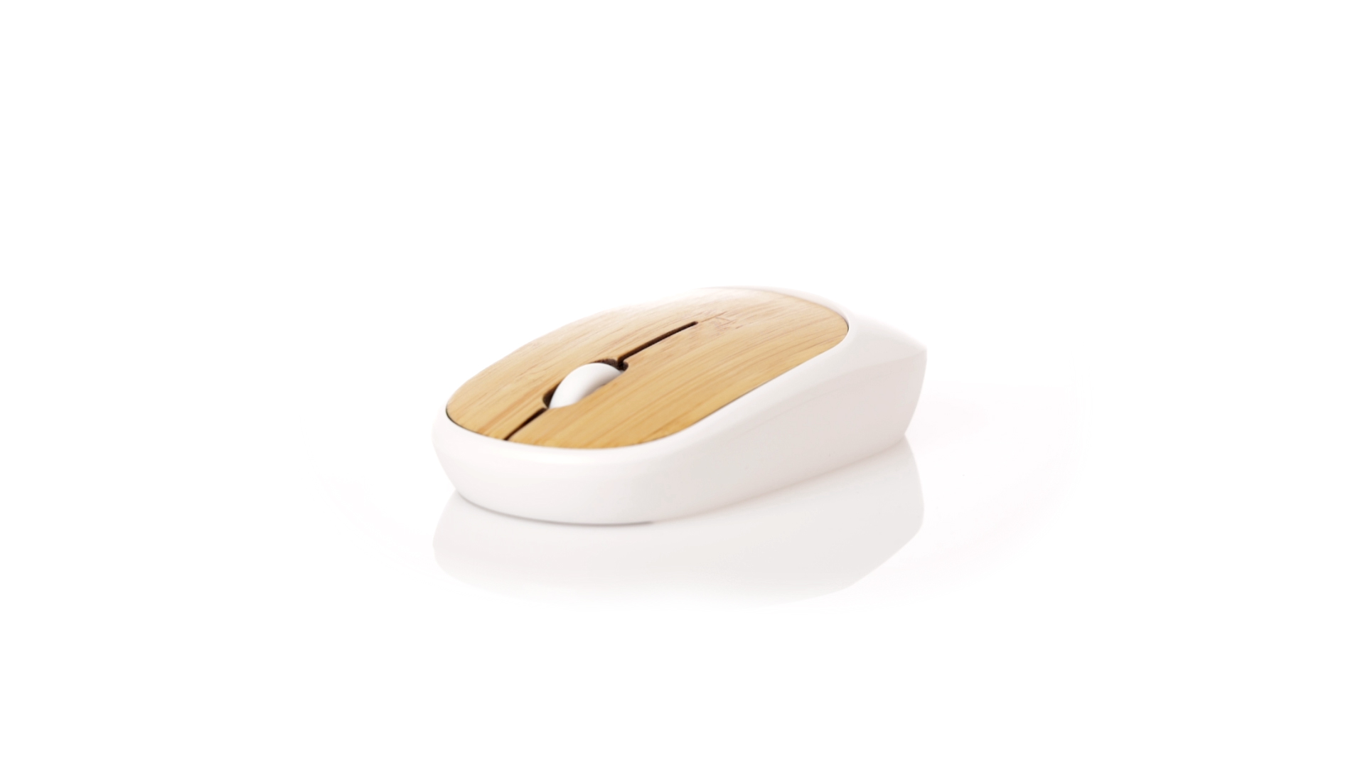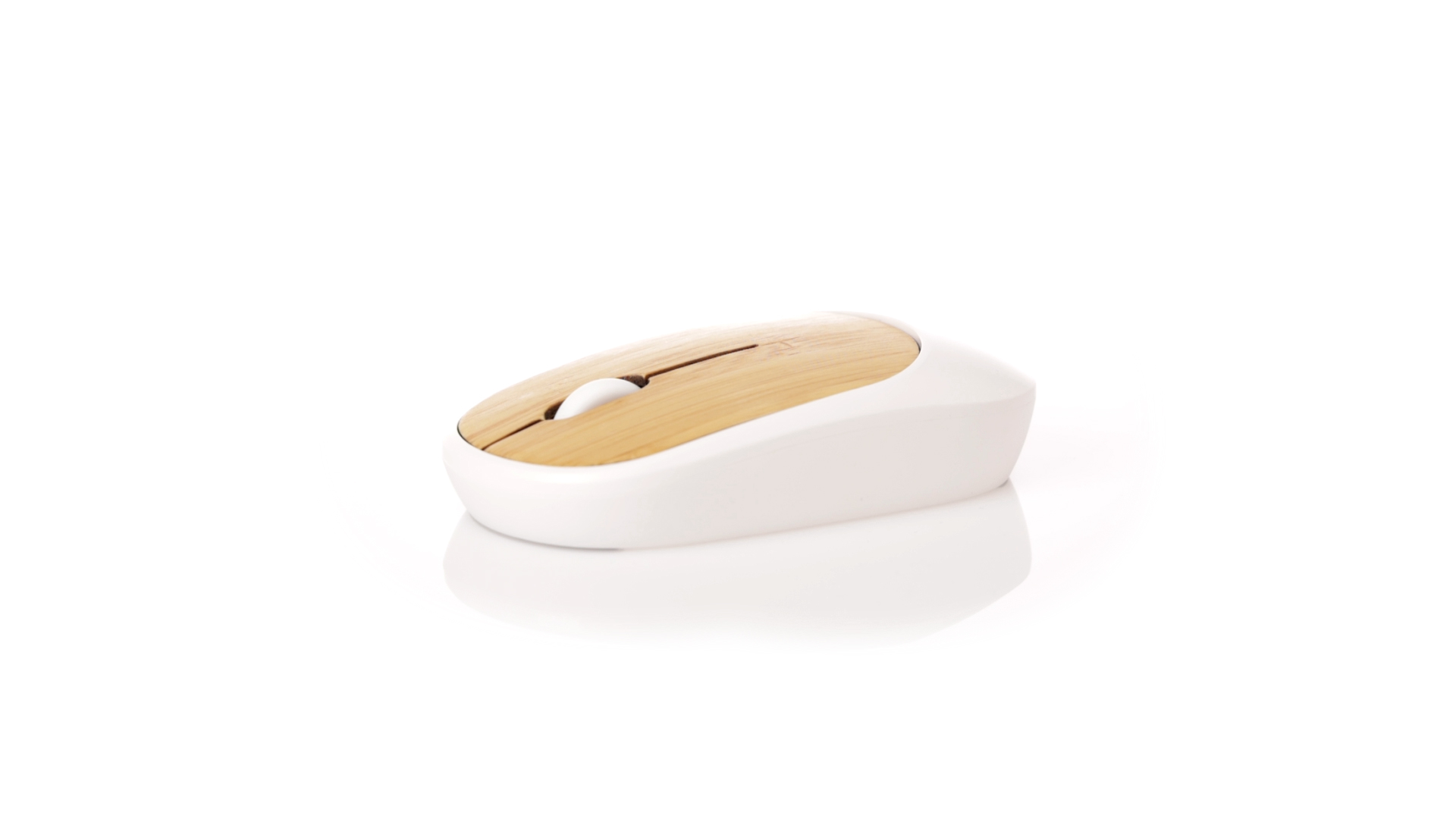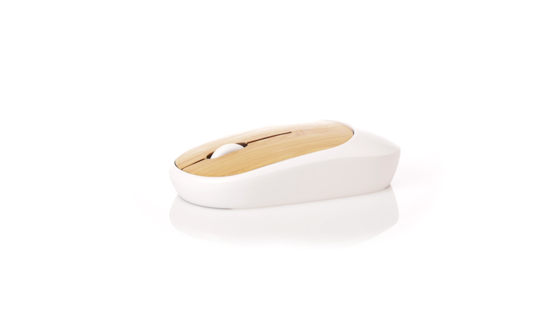 Kabellose optische Maus der Nature-Linie mit ergonomischem Design. Hergestellt aus widerstandsfähigem weissem ABS mit Bambusoberfläche. Batteriebetrieben (1xAA nicht im Lieferumfang enthalten). Präsentiert in einer individuellen Kraft-Designbox.