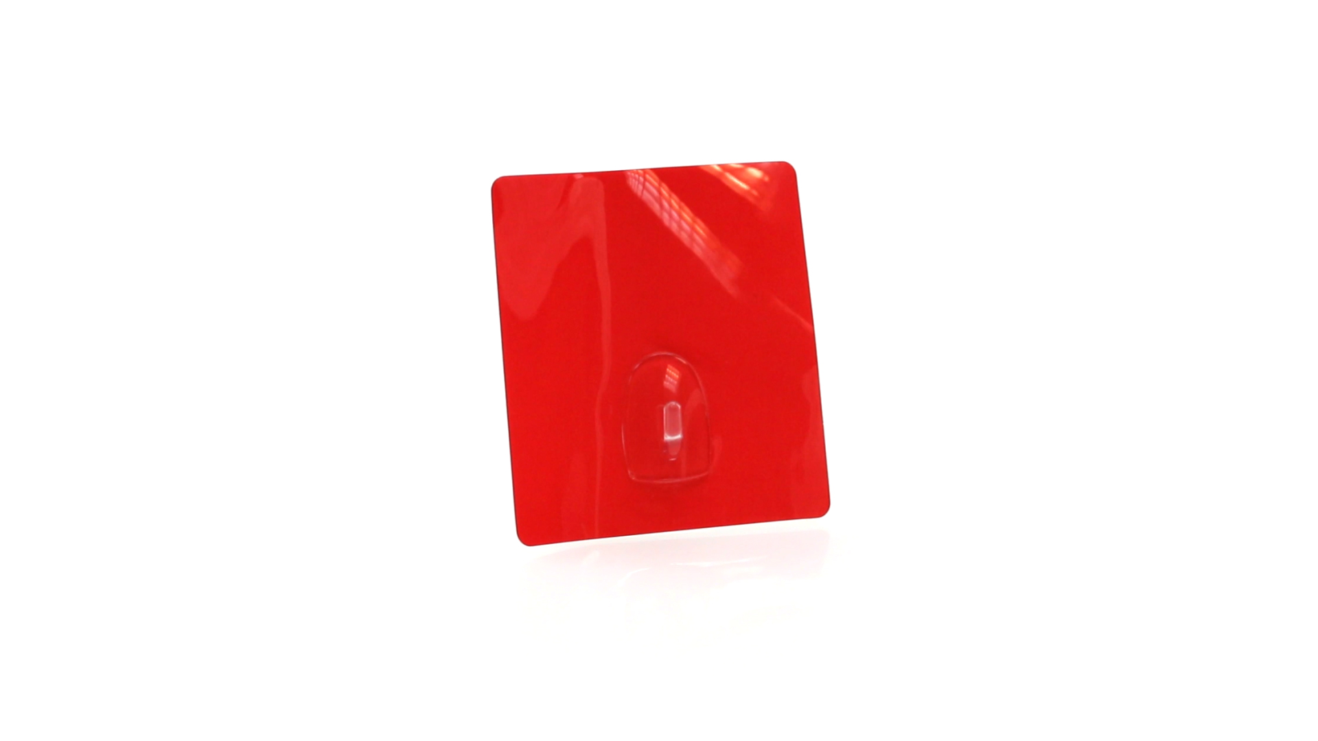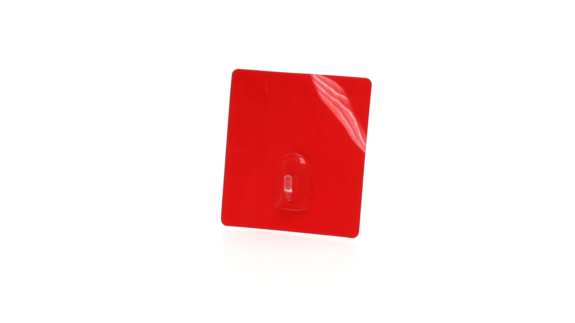 Vielseitig verwendbarer Haken aus robustem PET in lebendigen Farben. Mit wiederverwendbarer Befestigungsfläche mit hoher Haftkraft.