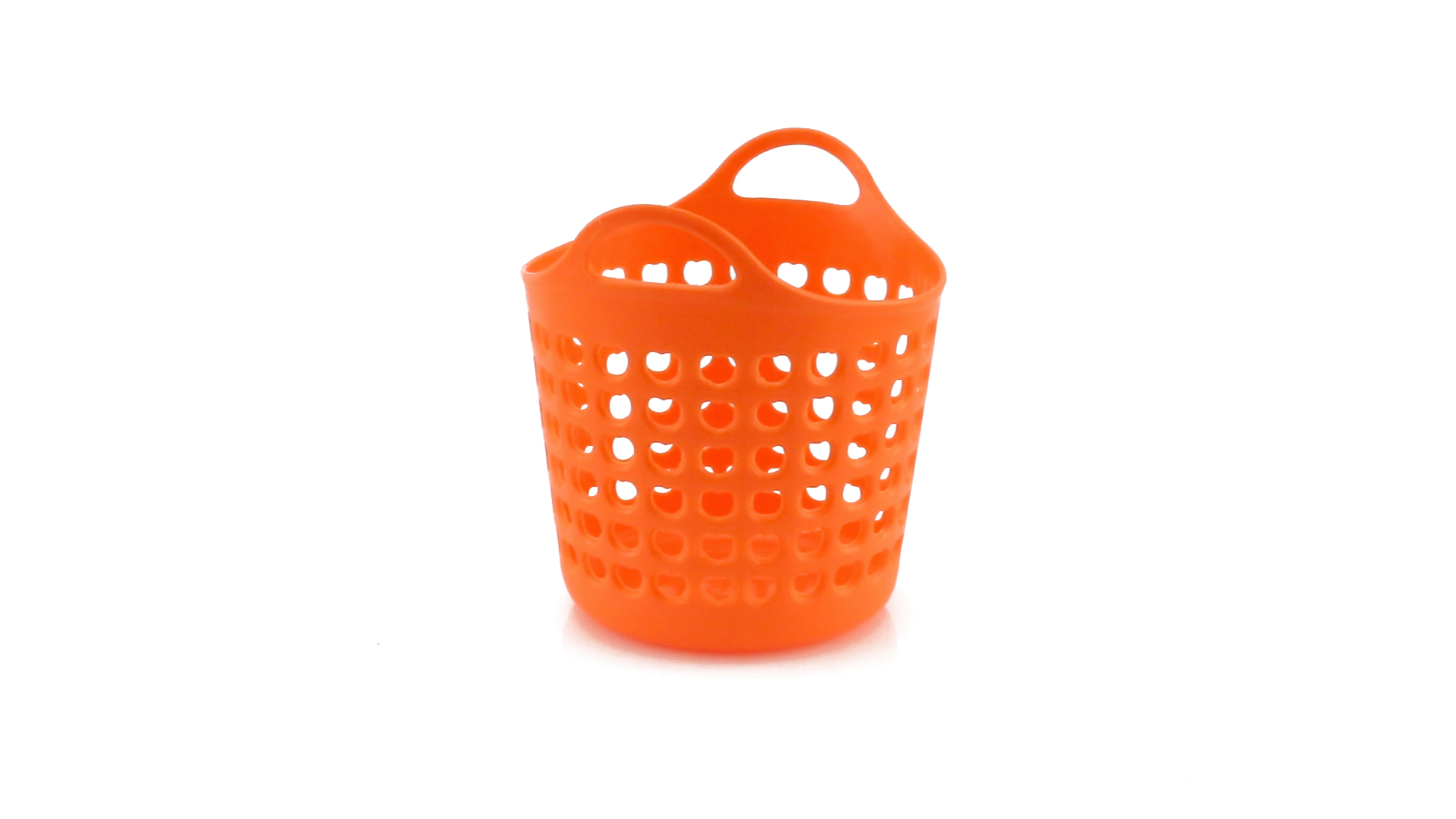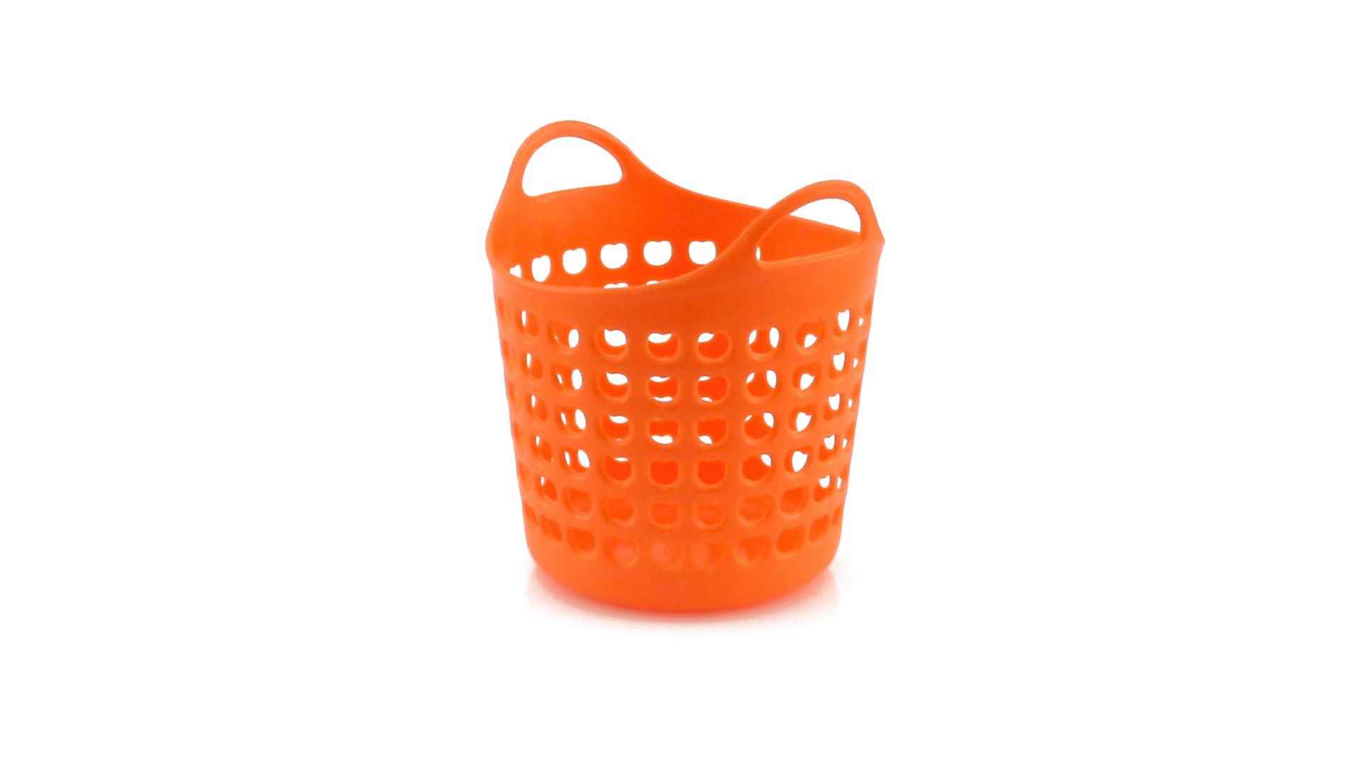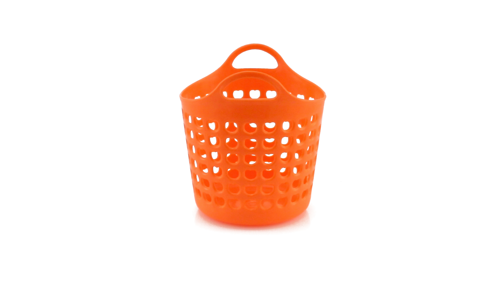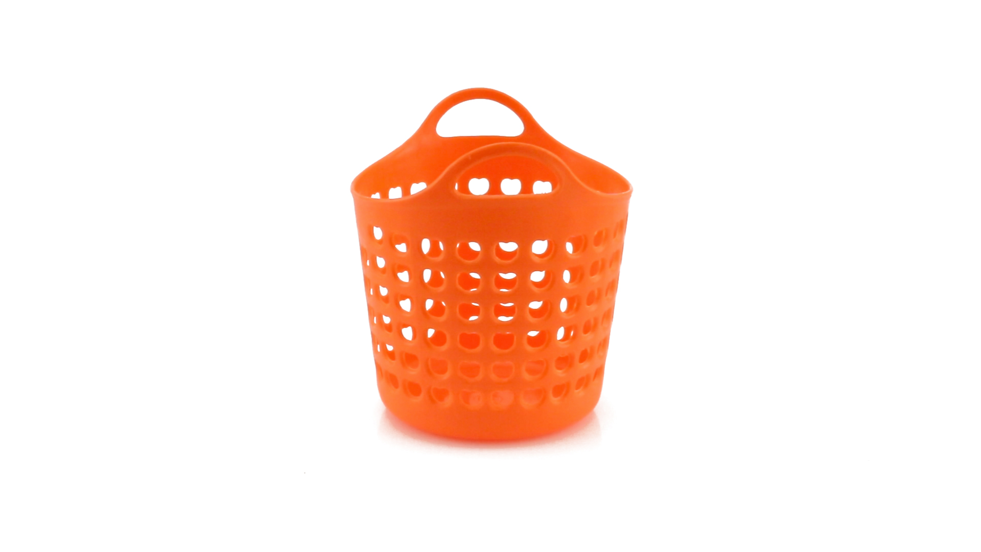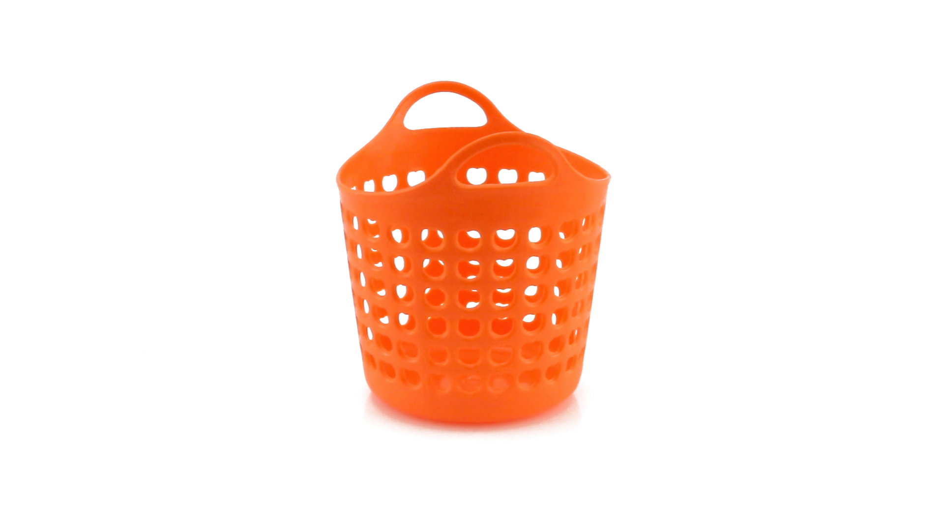 Origineller, vielseitig verwendbarer Korb mit zwei Griffen und gestanzten Herzen in verschiedenen kräftigen Farben.