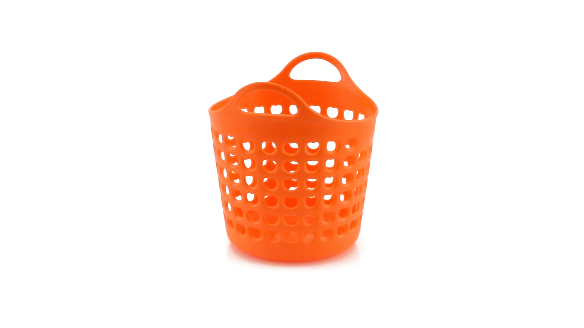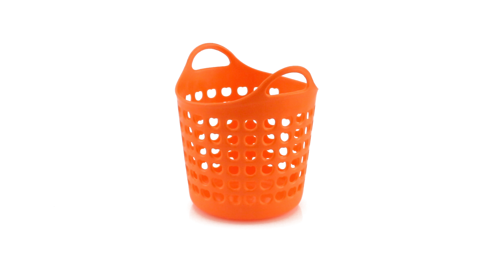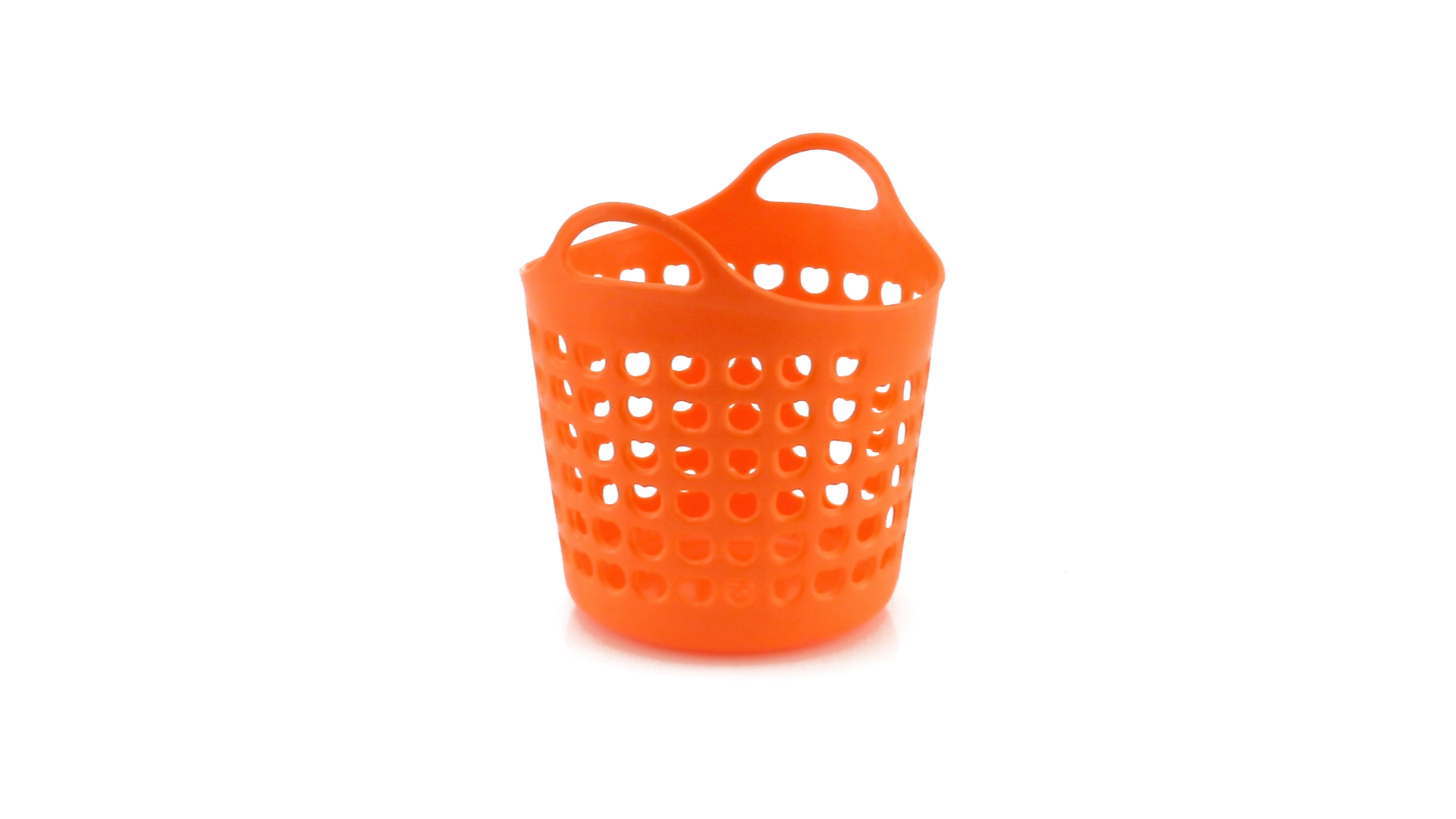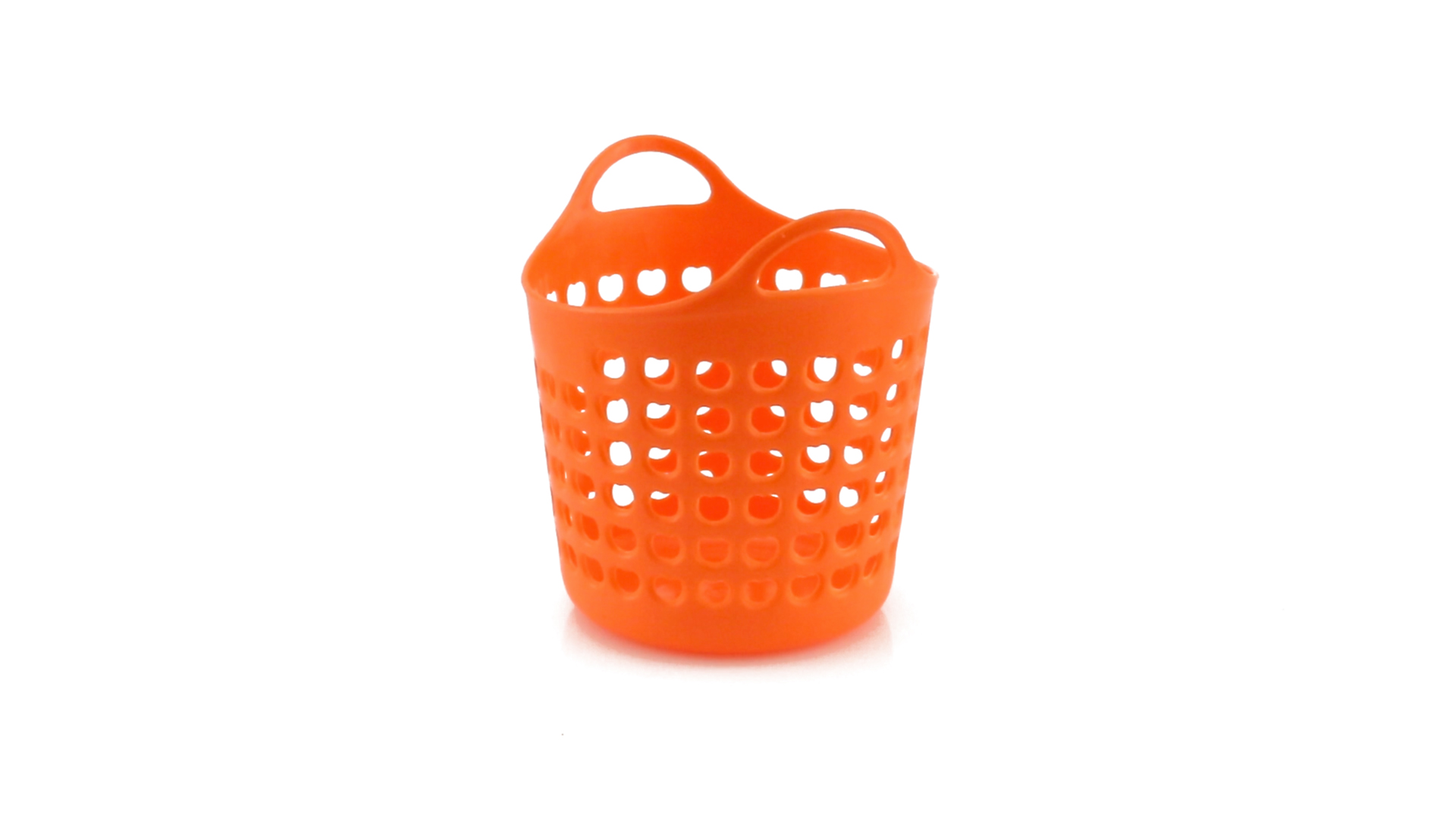 Origineller, vielseitig verwendbarer Korb mit zwei Griffen und gestanzten Herzen in verschiedenen kräftigen Farben.