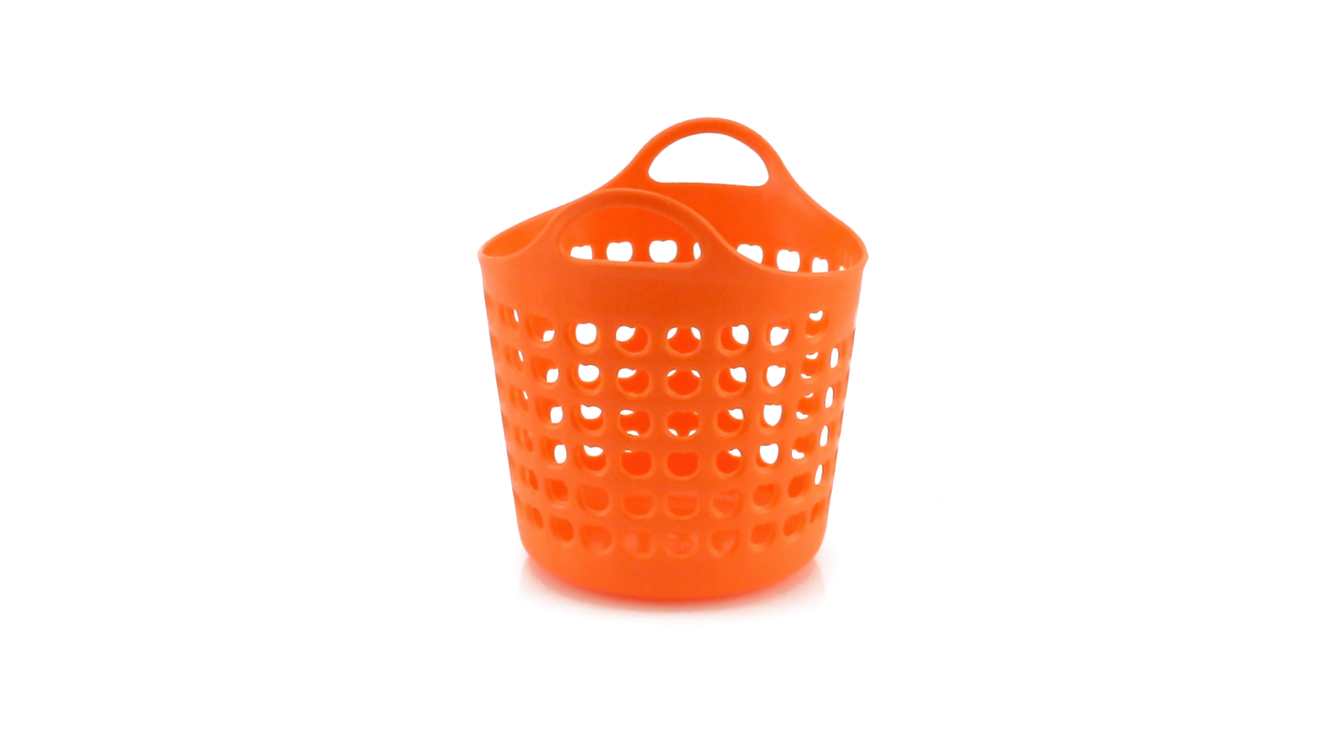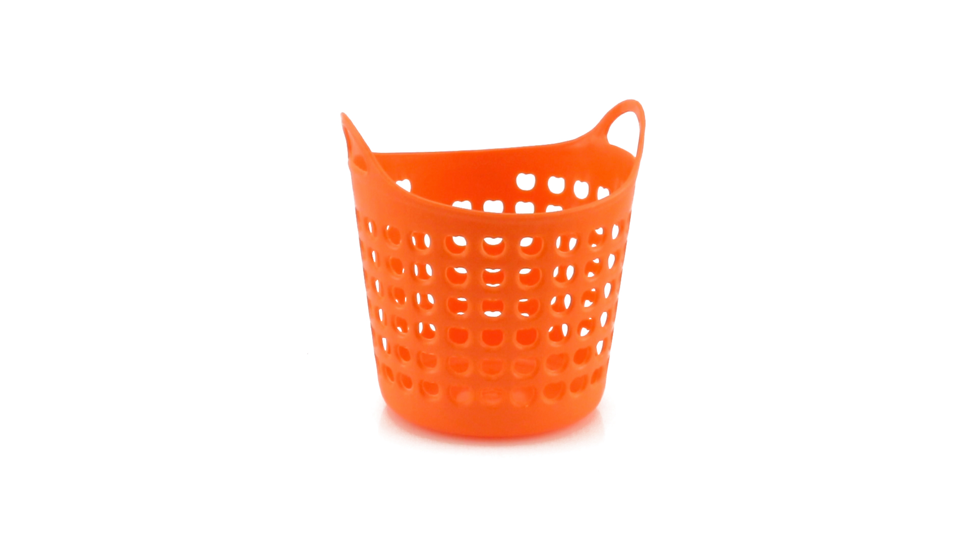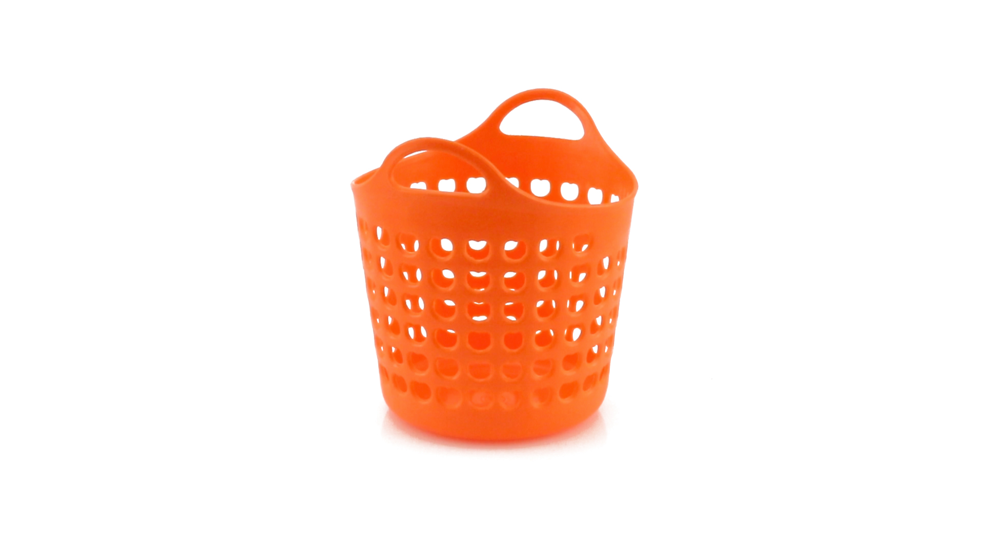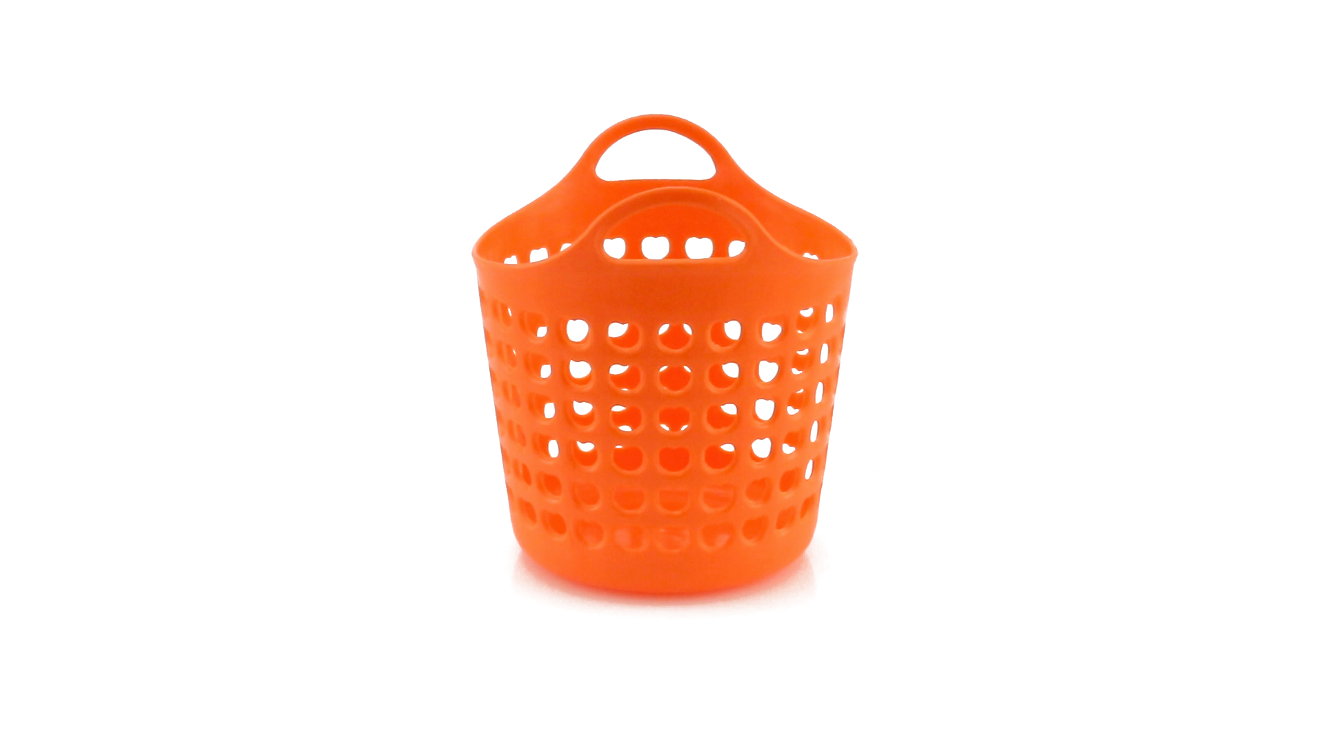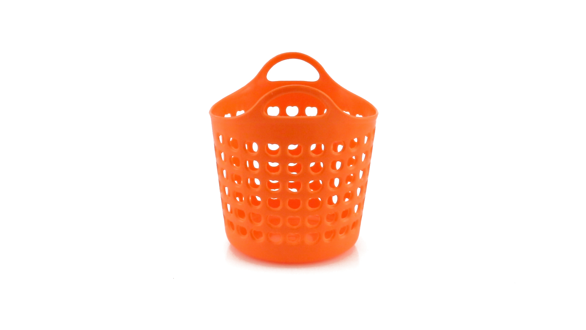 Origineller, vielseitig verwendbarer Korb mit zwei Griffen und gestanzten Herzen in verschiedenen kräftigen Farben.