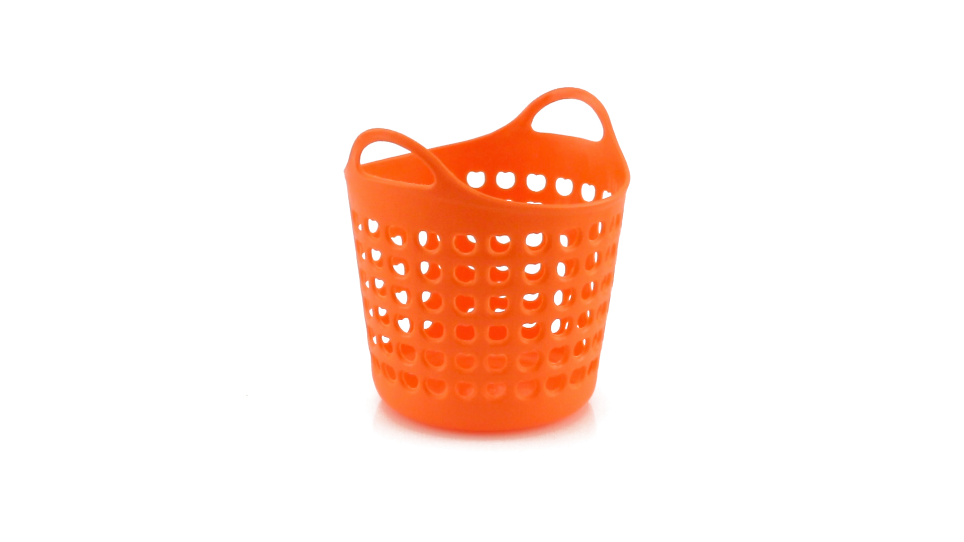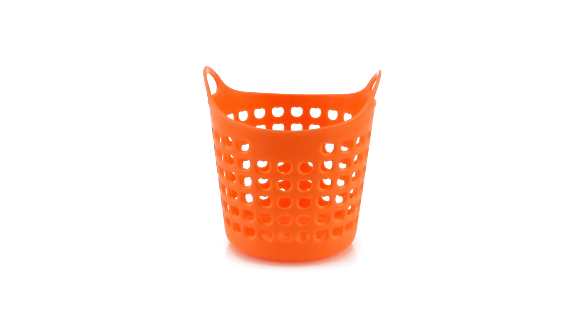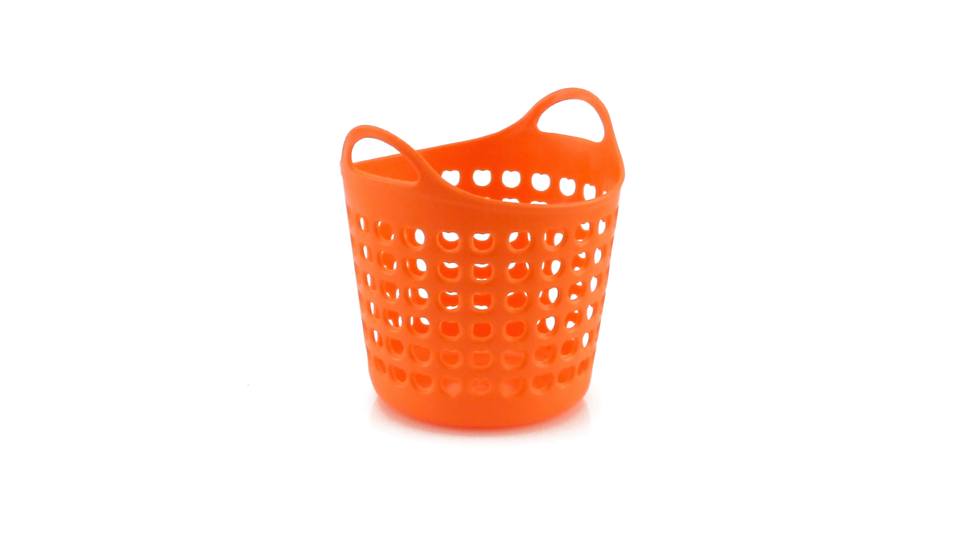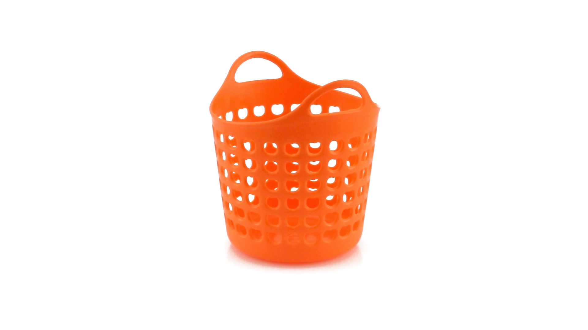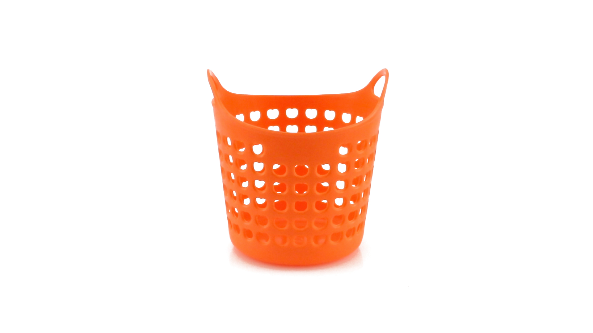 Origineller, vielseitig verwendbarer Korb mit zwei Griffen und gestanzten Herzen in verschiedenen kräftigen Farben.