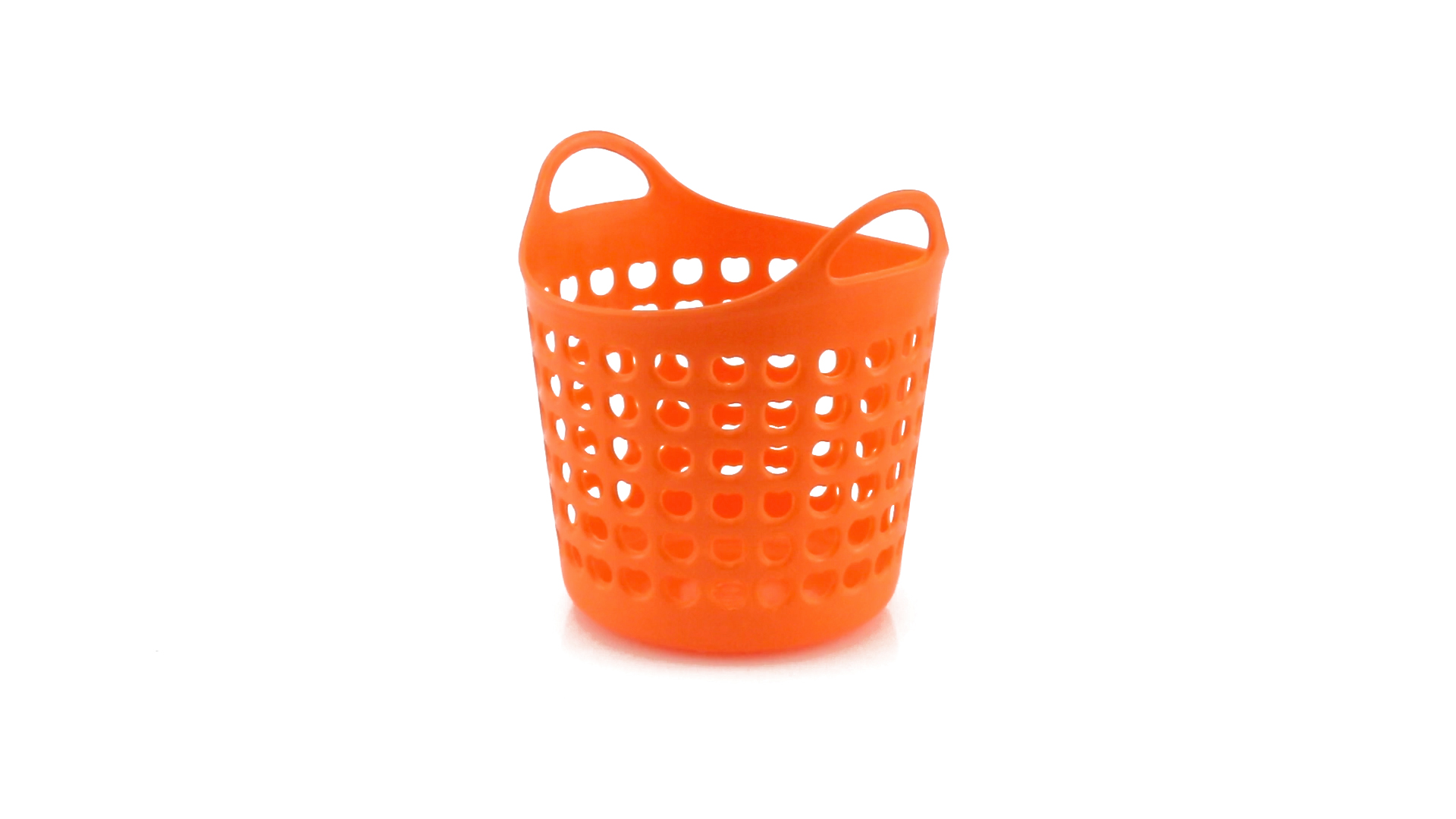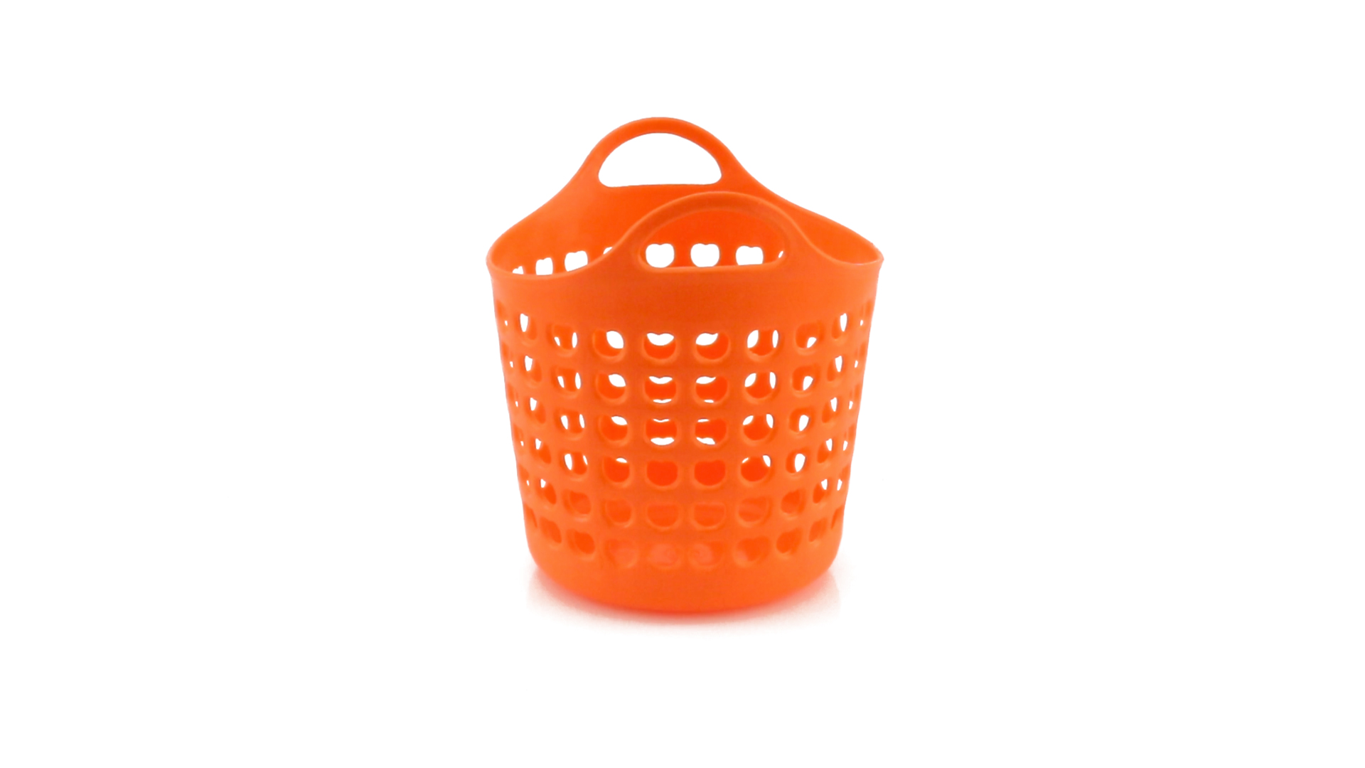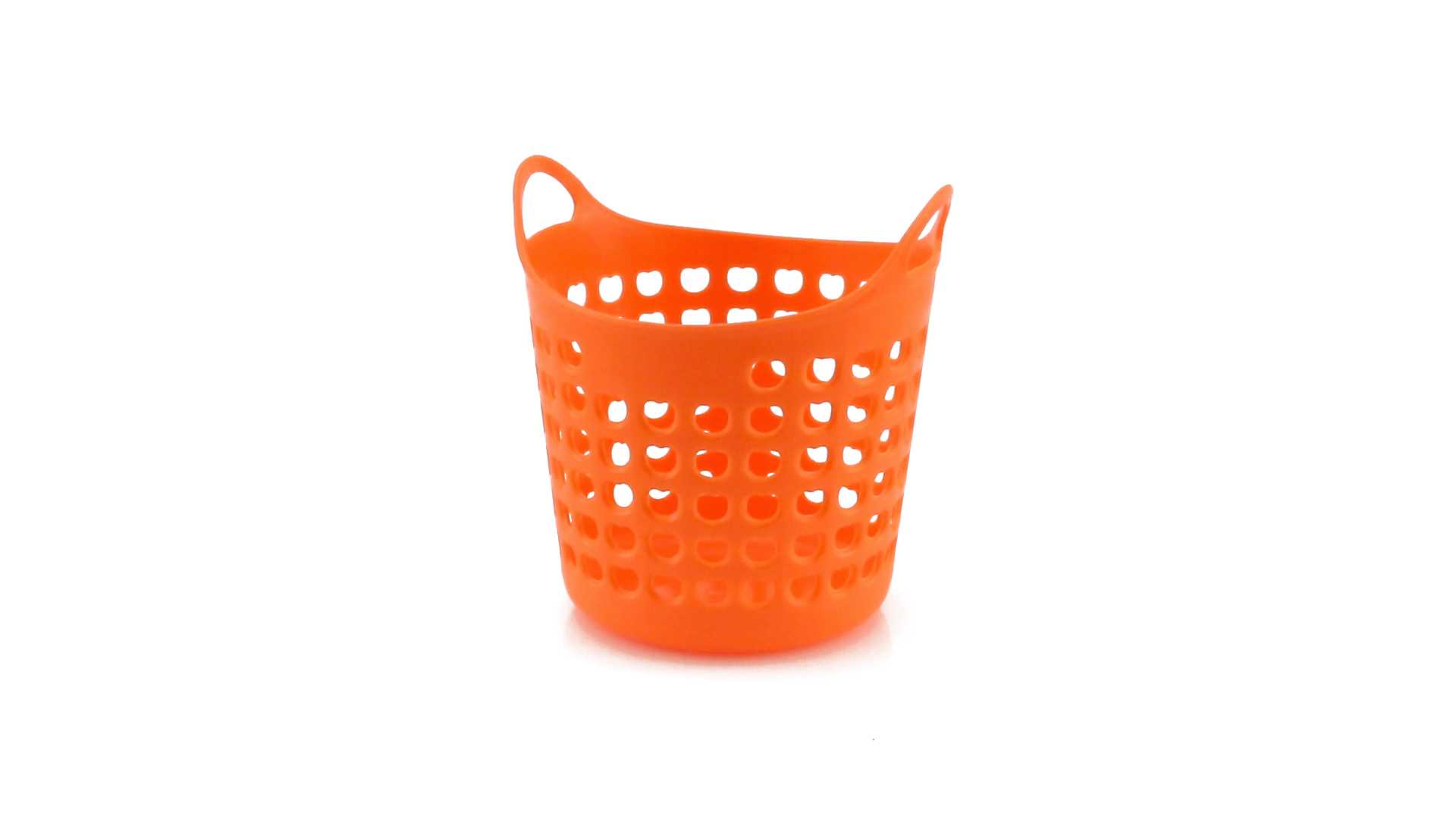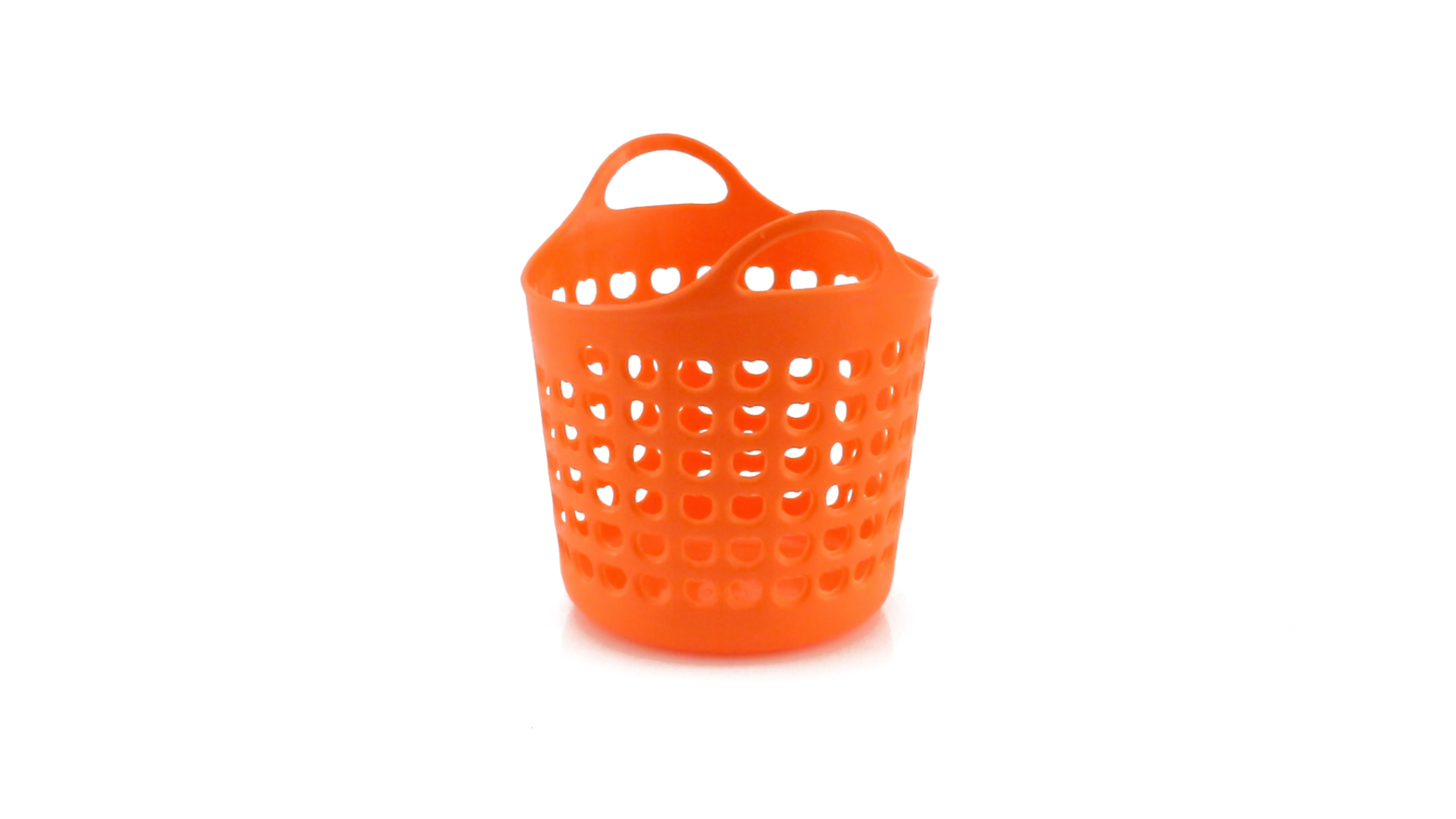 Origineller, vielseitig verwendbarer Korb mit zwei Griffen und gestanzten Herzen in verschiedenen kräftigen Farben.
