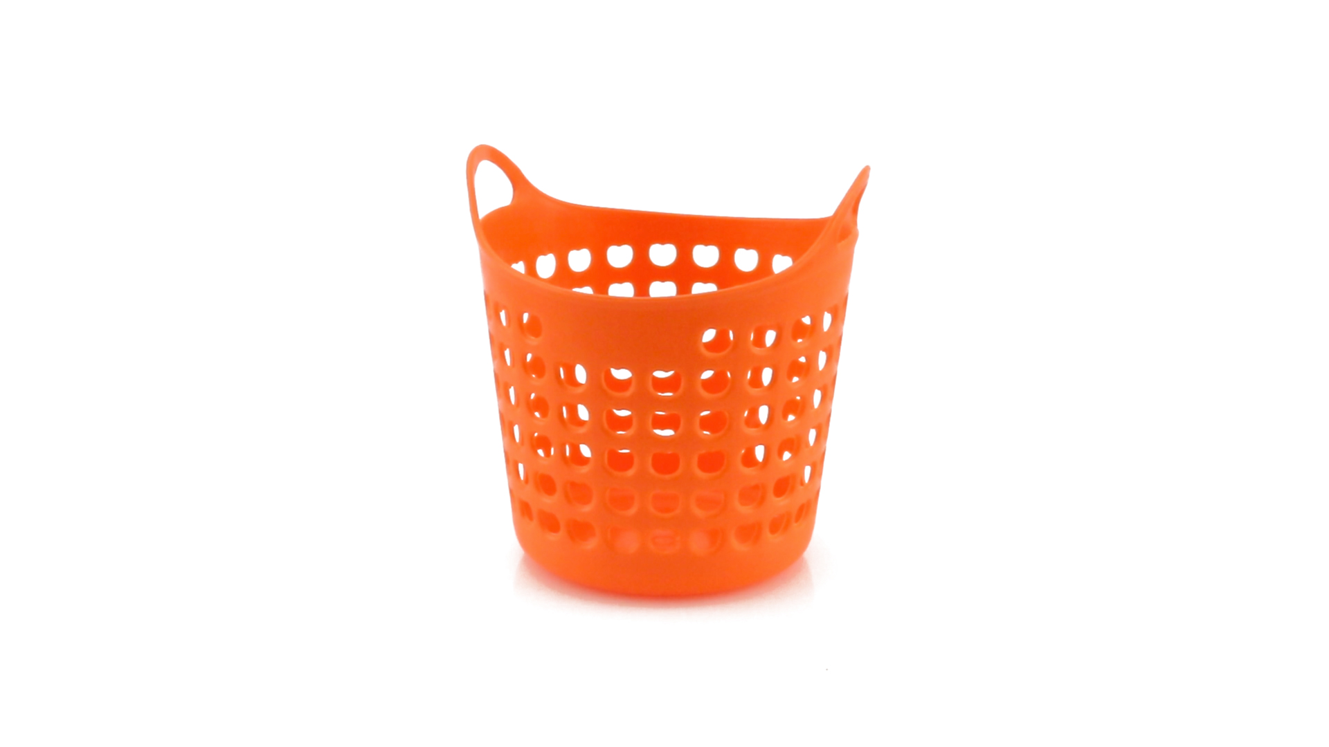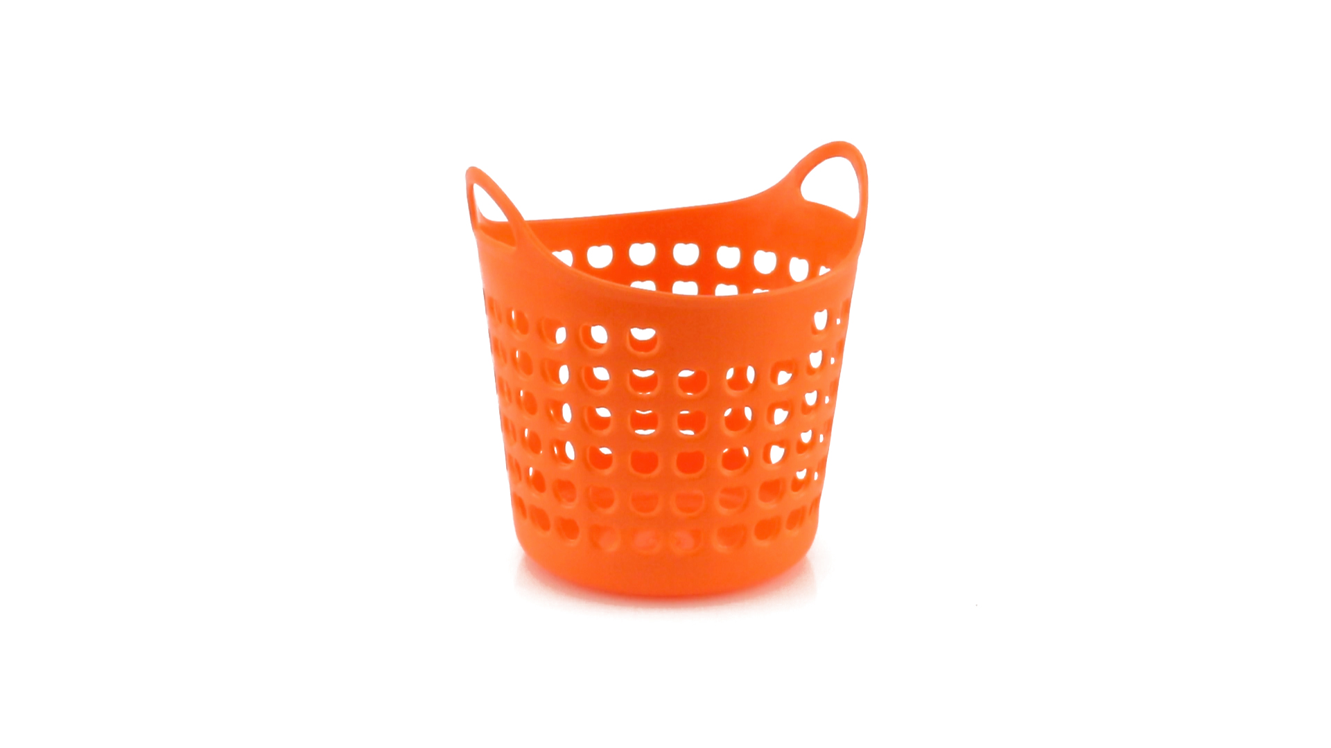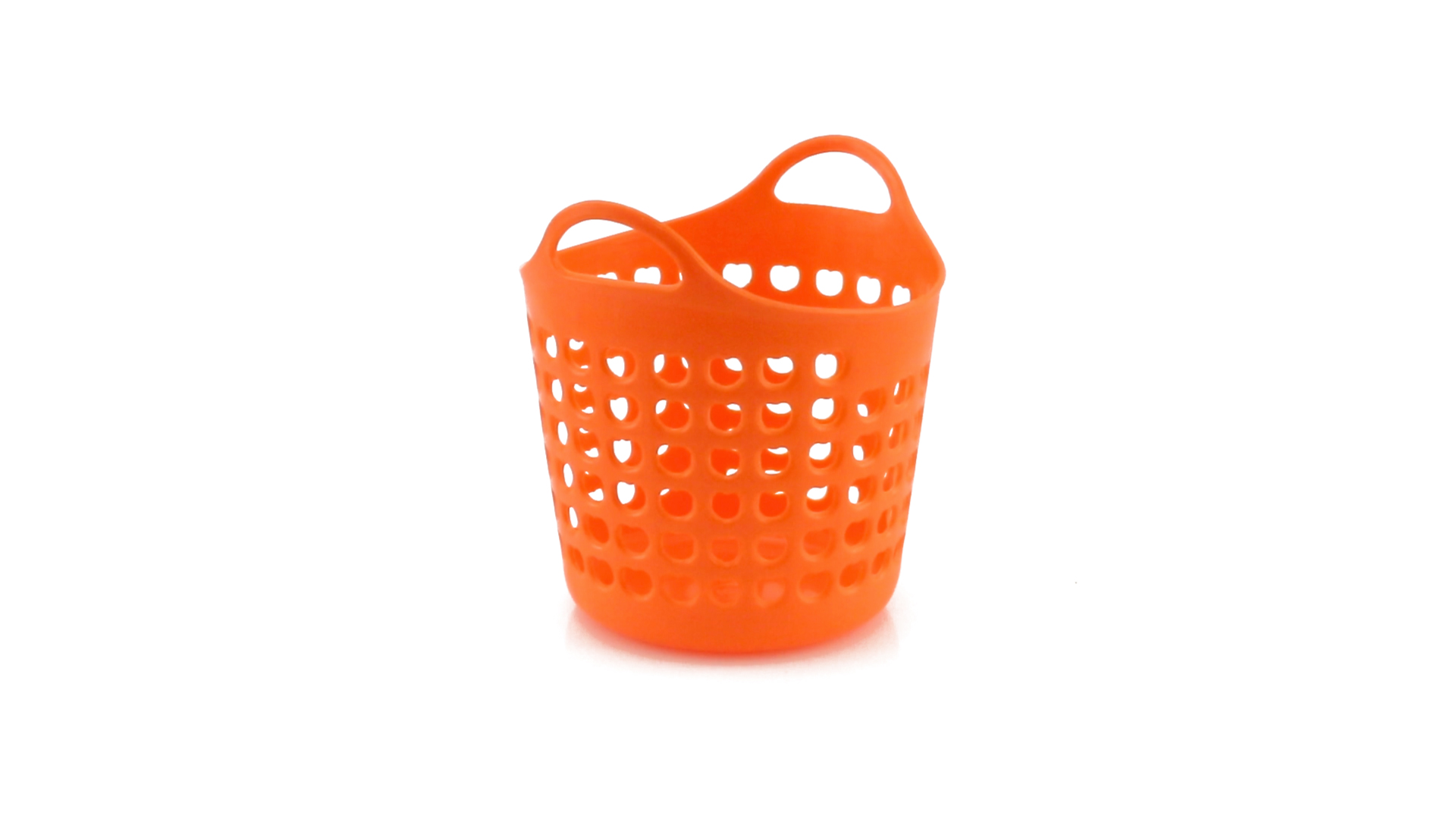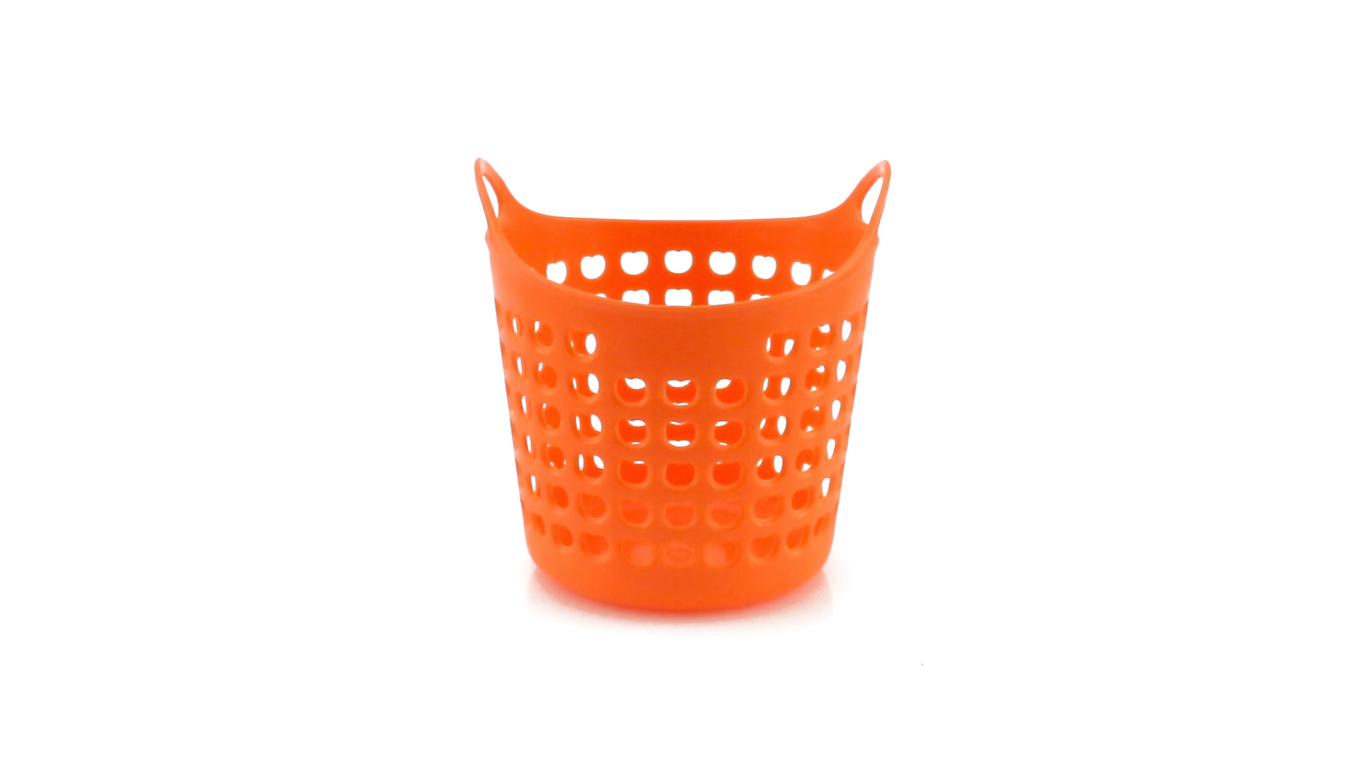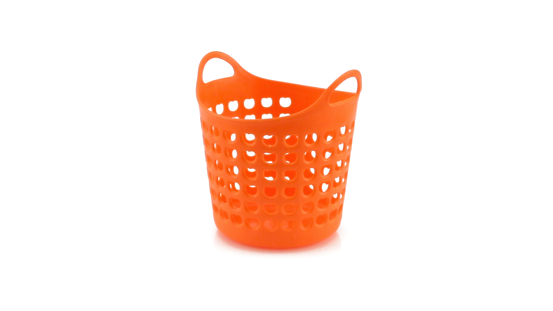 Origineller, vielseitig verwendbarer Korb mit zwei Griffen und gestanzten Herzen in verschiedenen kräftigen Farben.