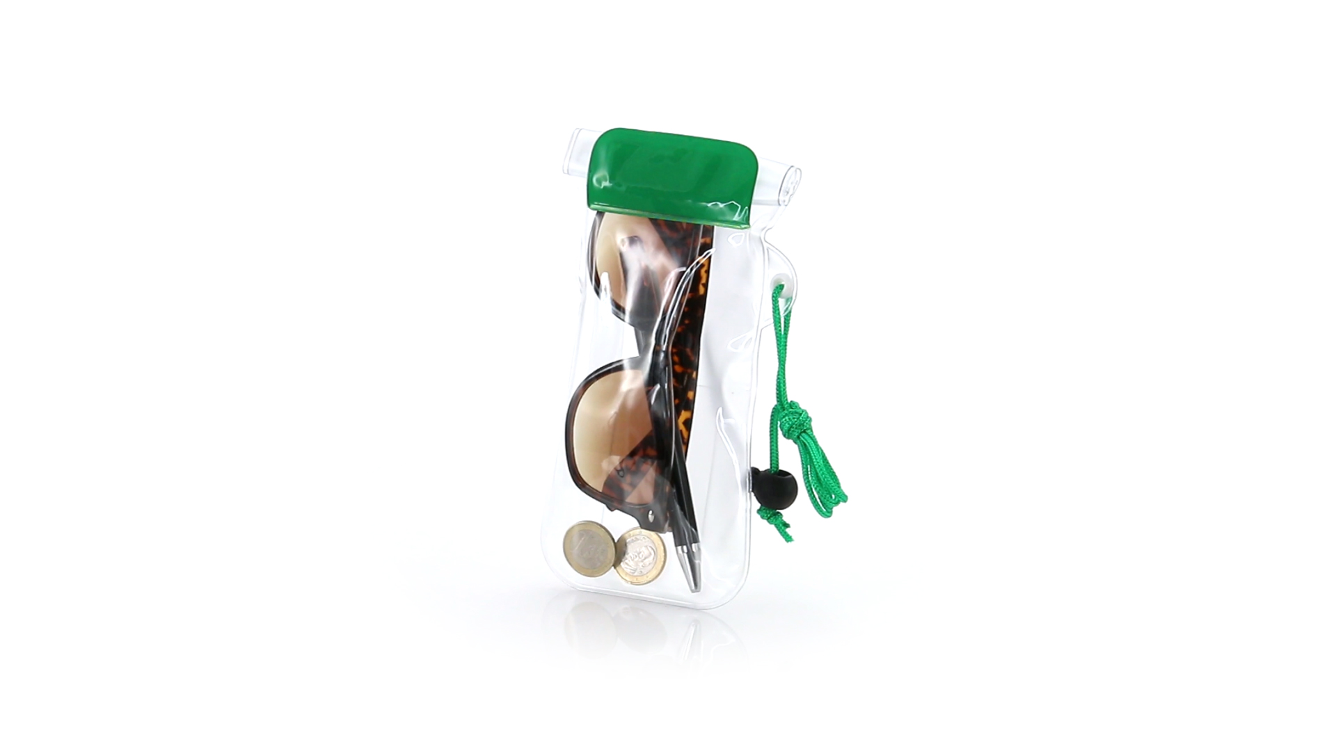 Praktische wasserdichte Mehrzwecktasche aus PVC. Mit Touch-Funktion und doppeltem Sicherheitssystem zur Erhaltung der Versiegelung. Mit Trageschlaufe mit Stopper und farblich passender Druckfläche auf der Front.