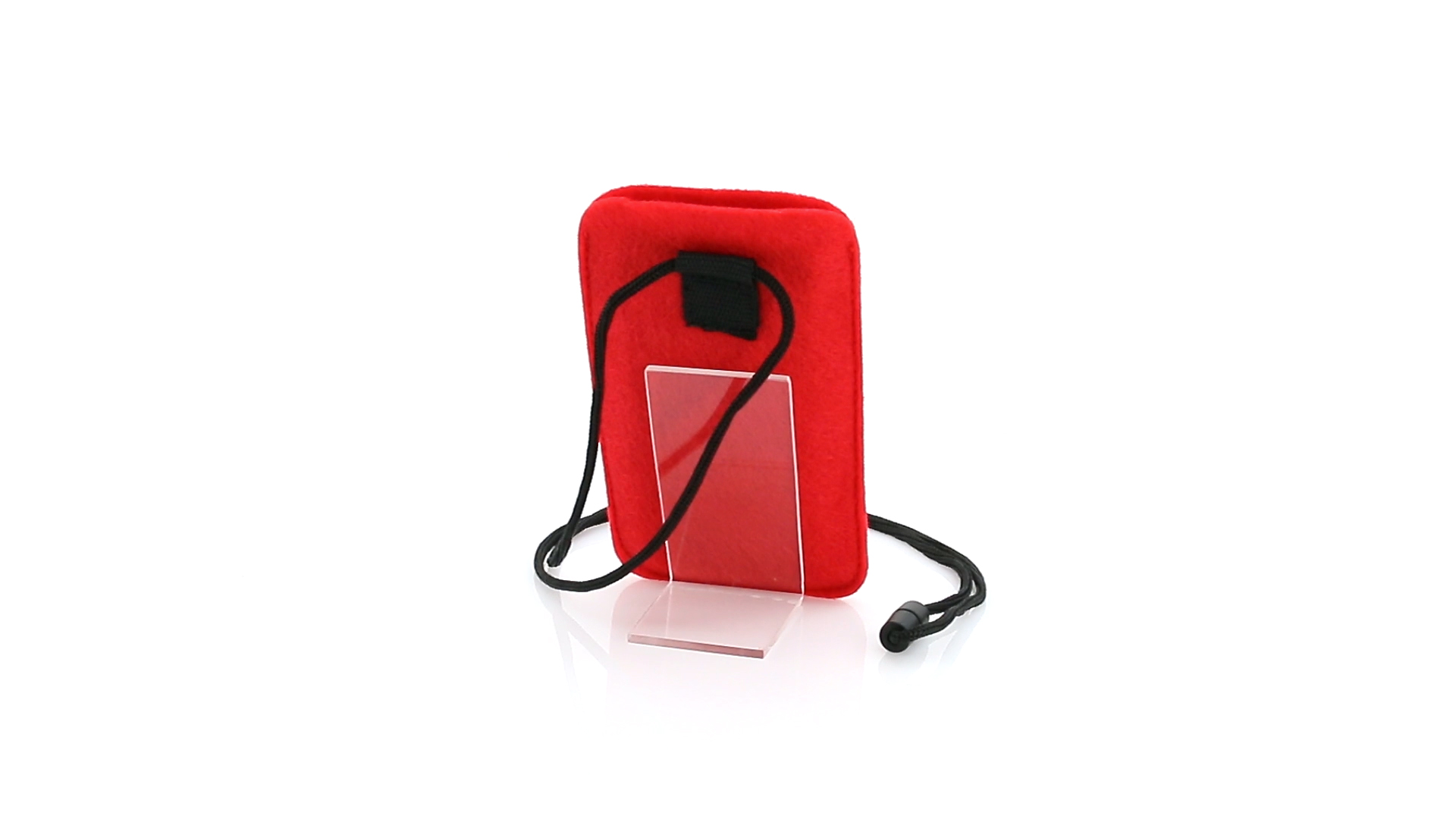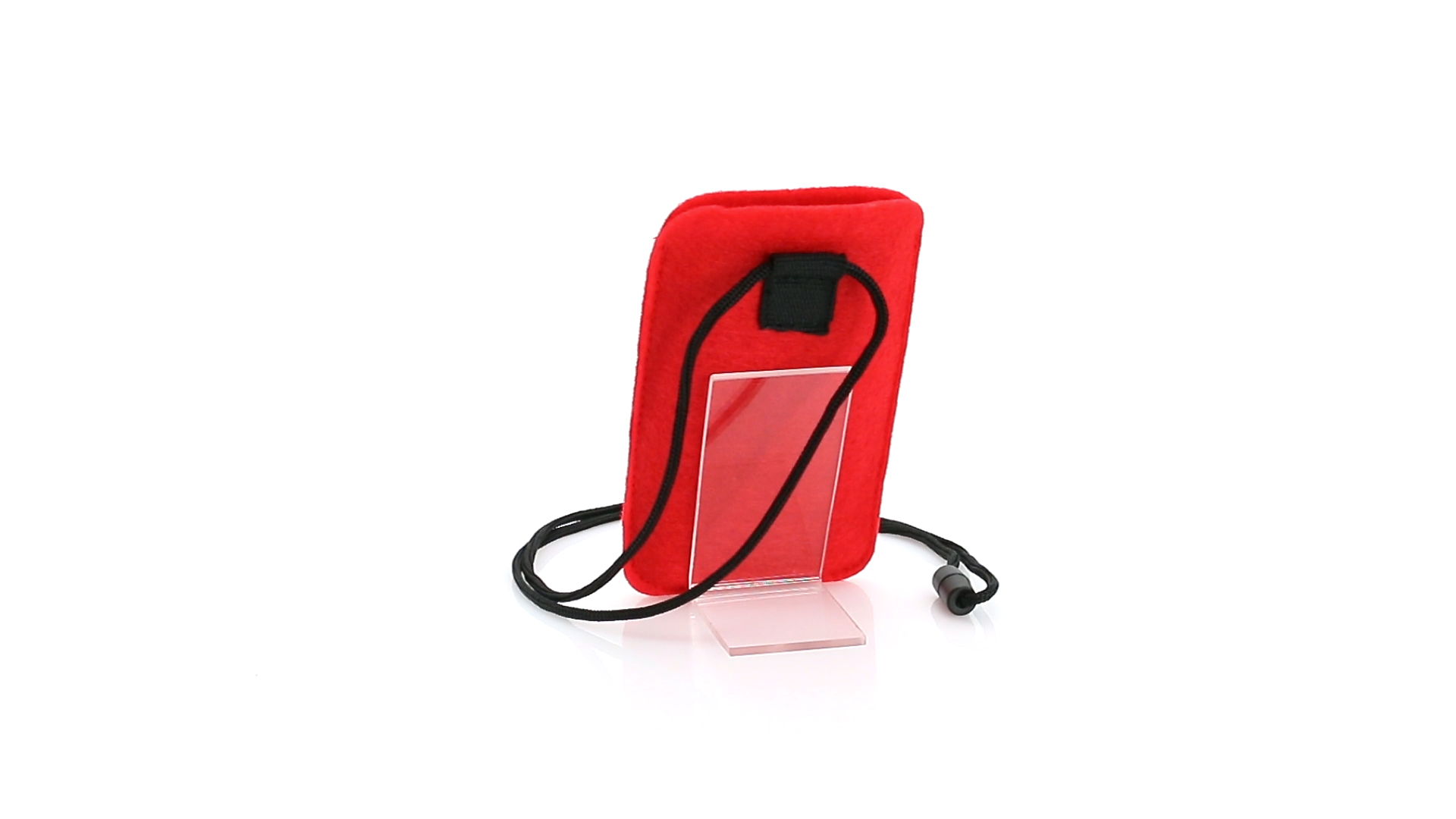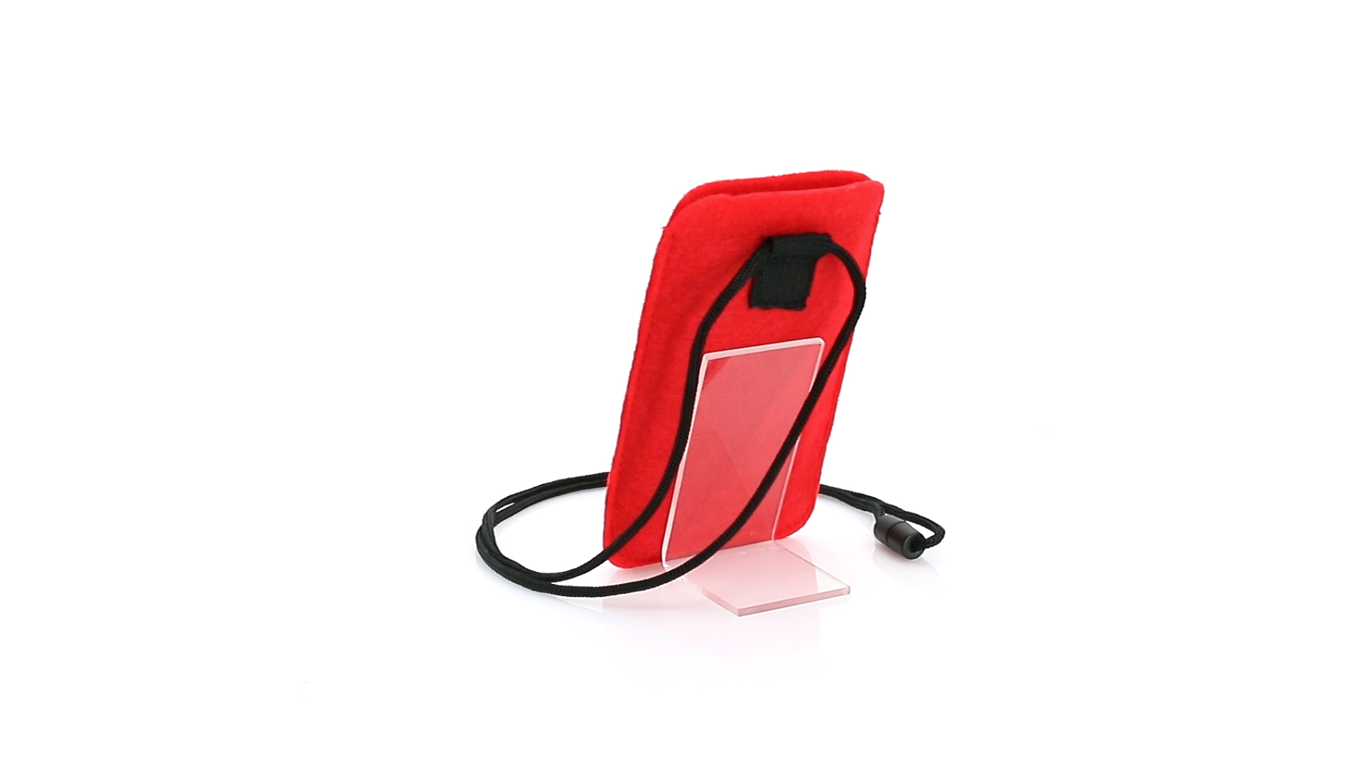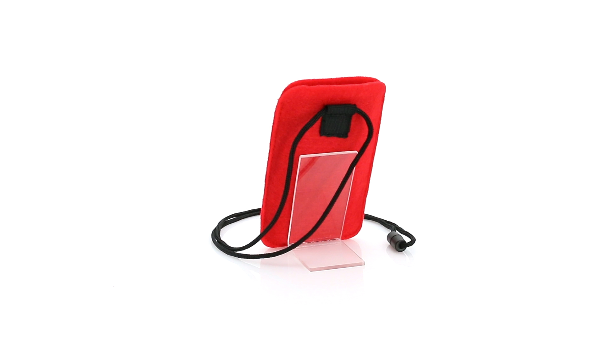 Hülle aus weichem Filz in verschiedenen Farben mit verstellbarem Trageband.