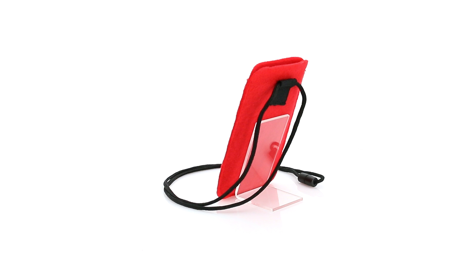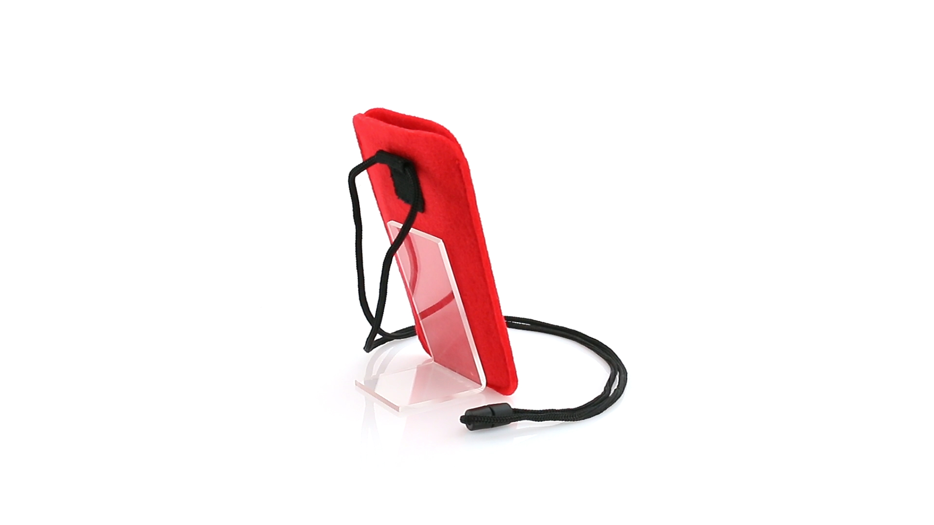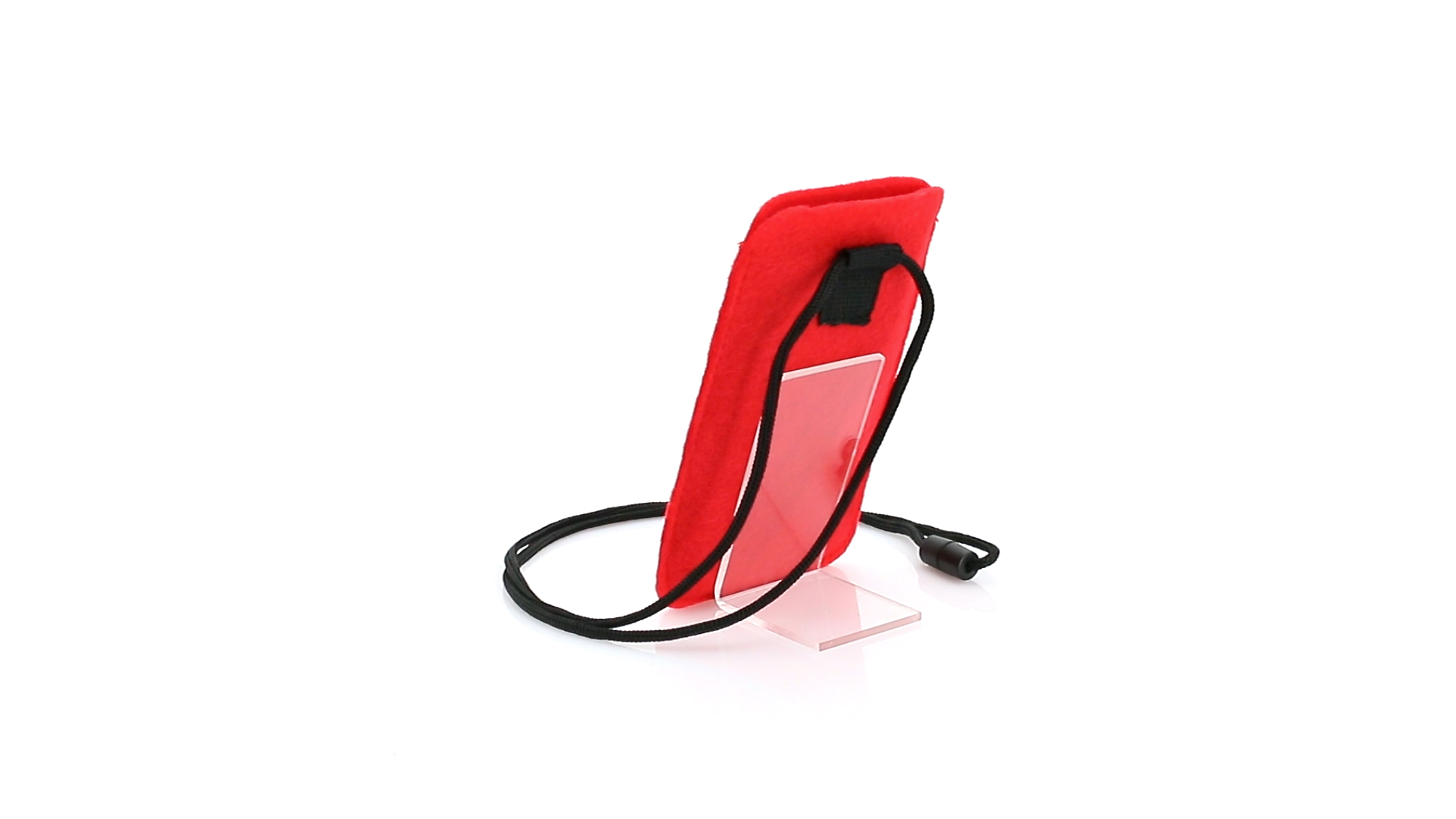 Hülle aus weichem Filz in verschiedenen Farben mit verstellbarem Trageband.