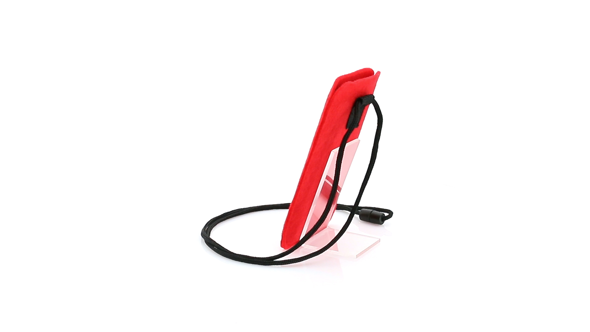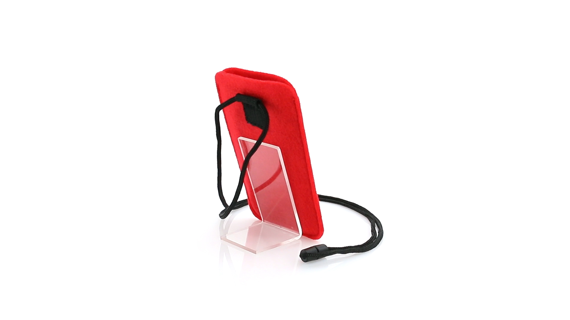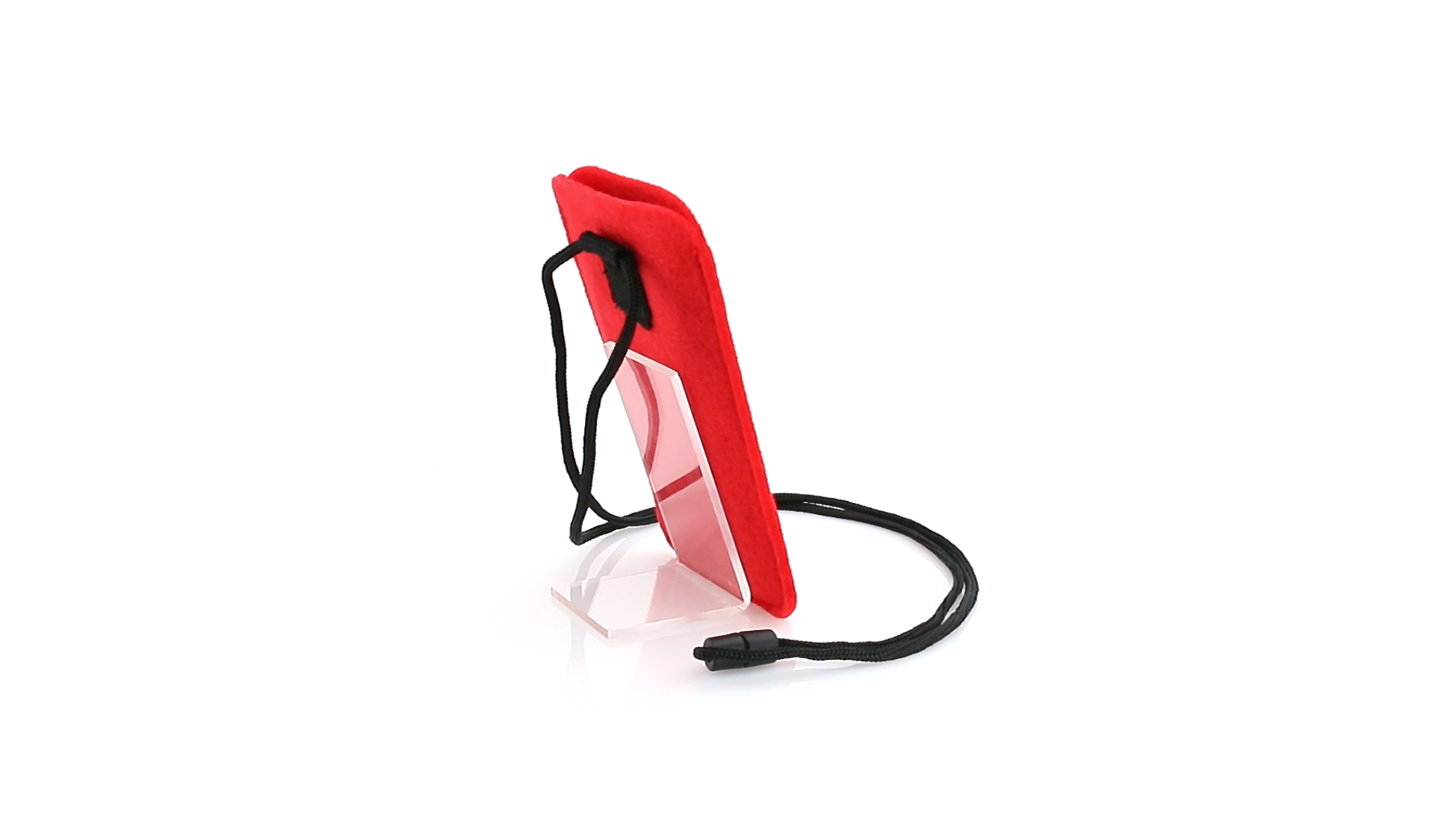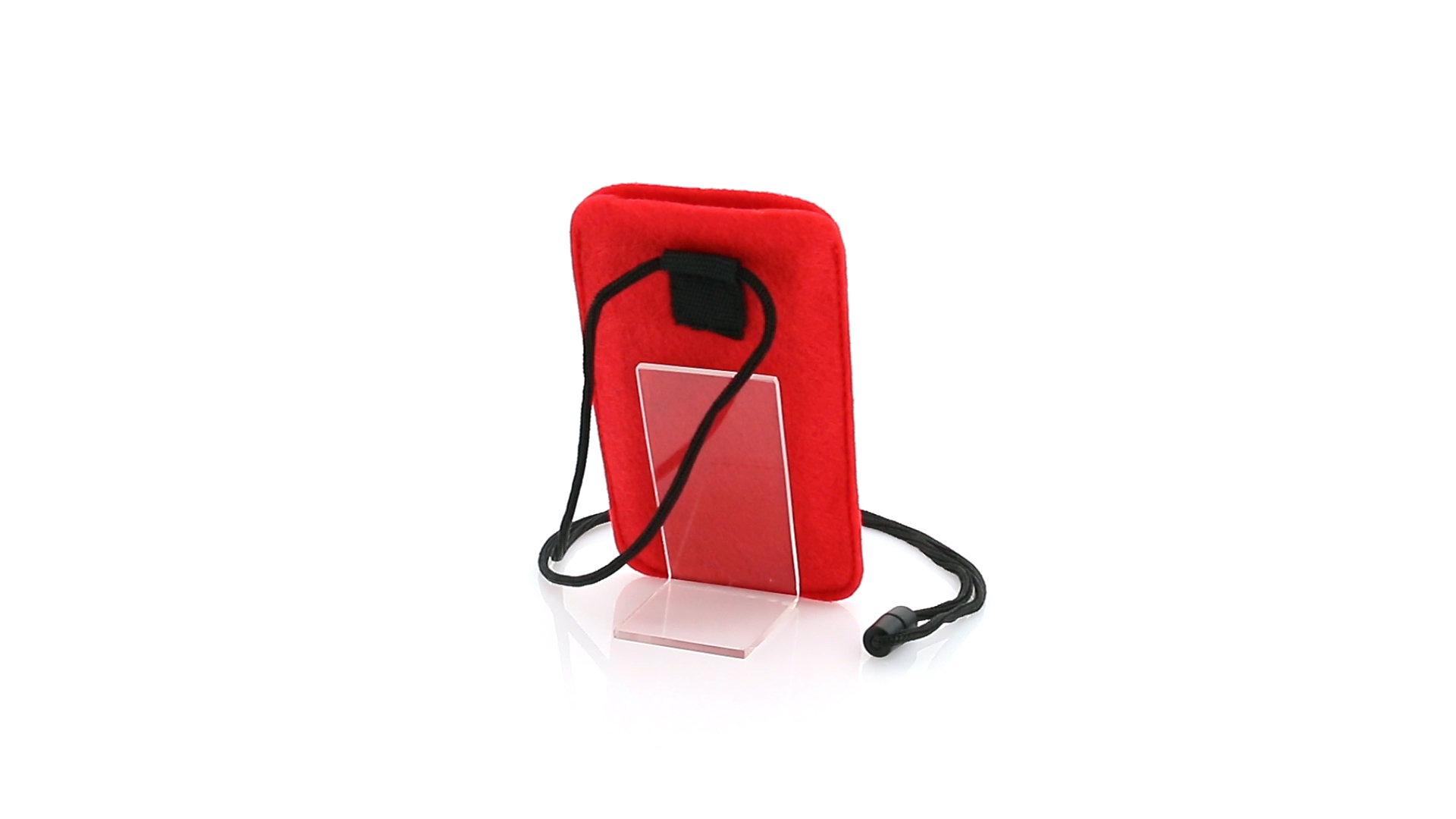 Hülle aus weichem Filz in verschiedenen Farben mit verstellbarem Trageband.