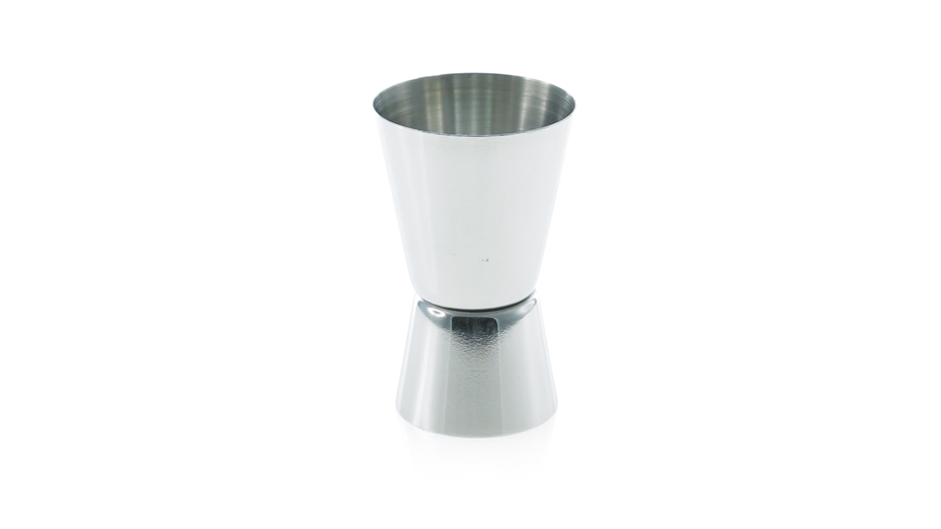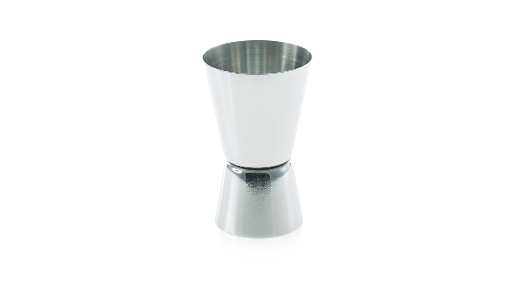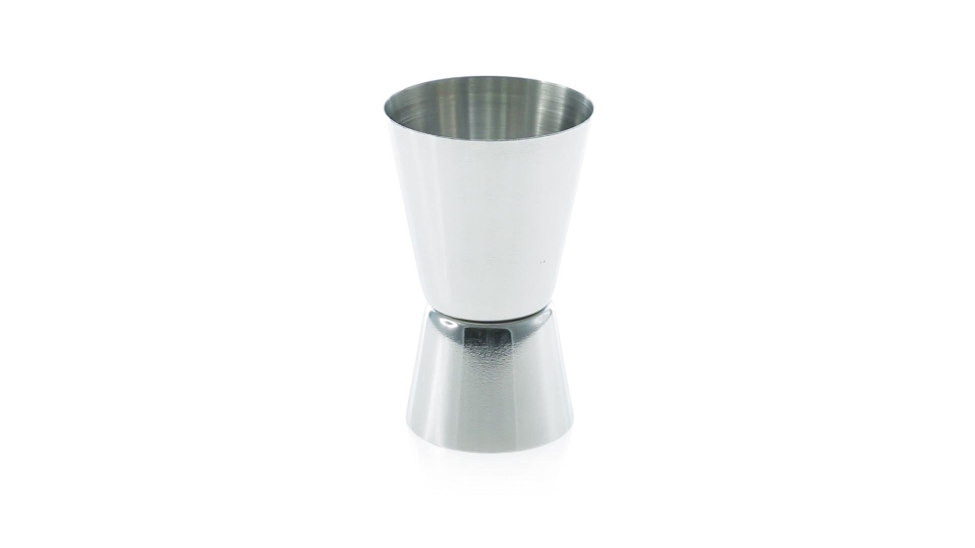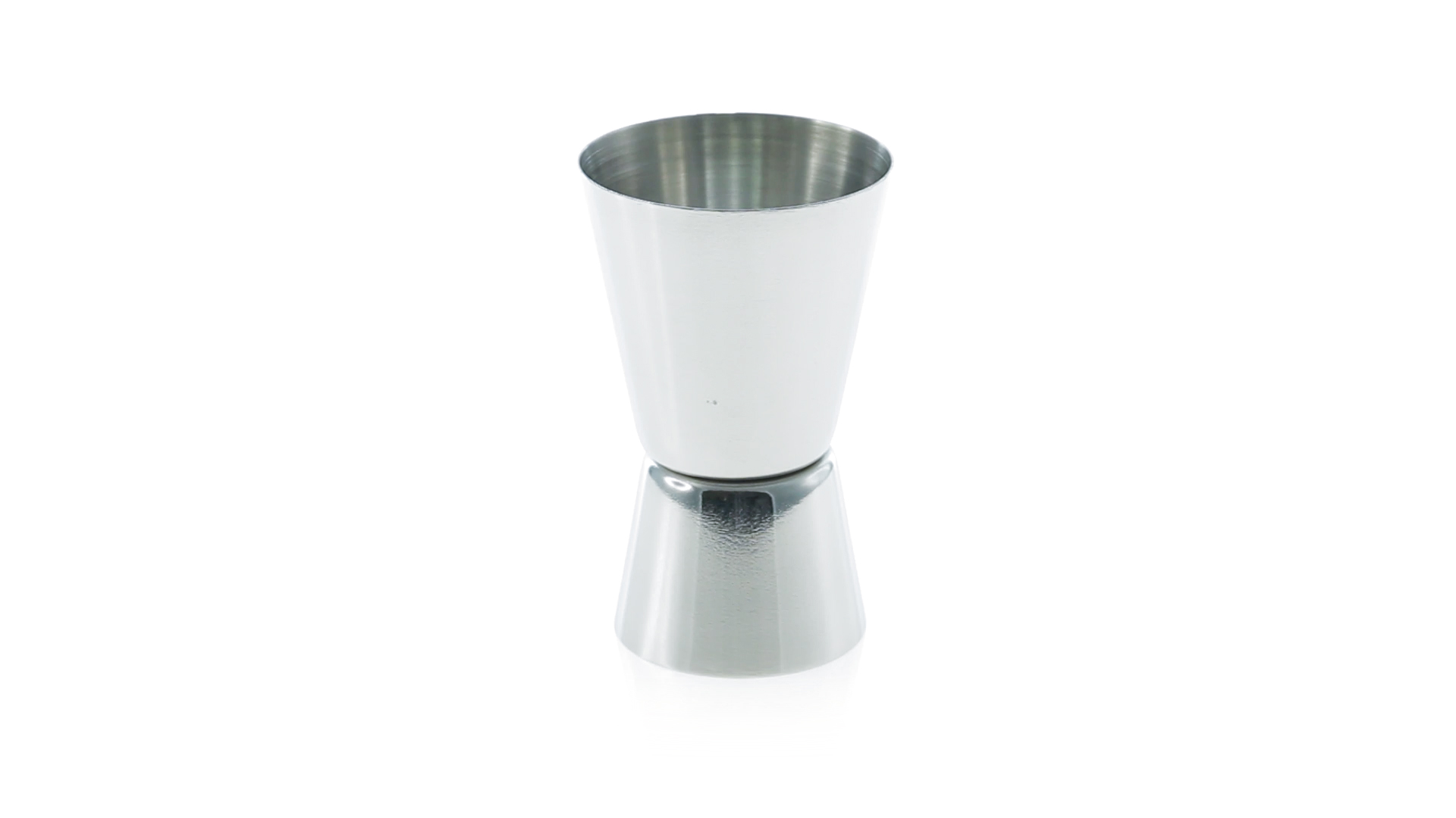 Doppelmessbecher aus Edelstahl mit mattem Finish. Speziell für den Laserdruck entwickelt. Präsentiert in einer PVC-Schachtel.