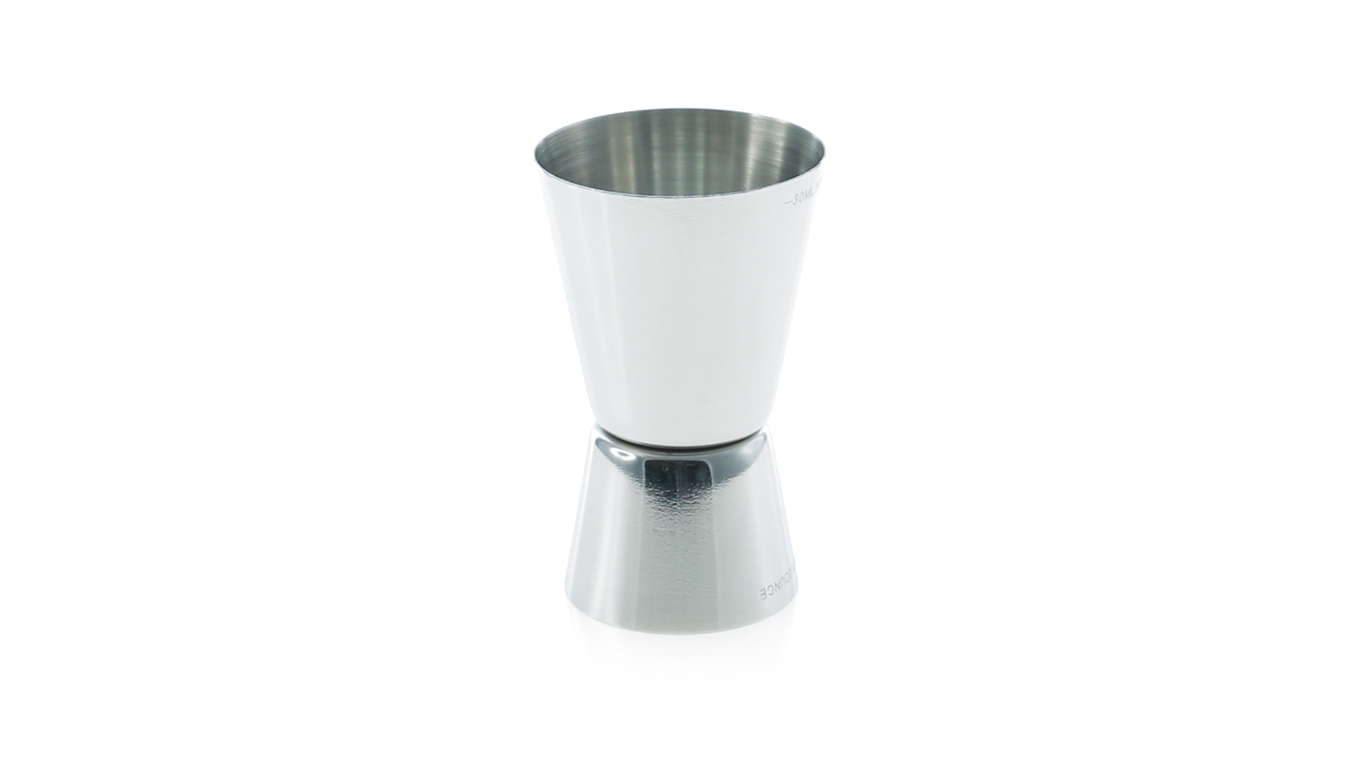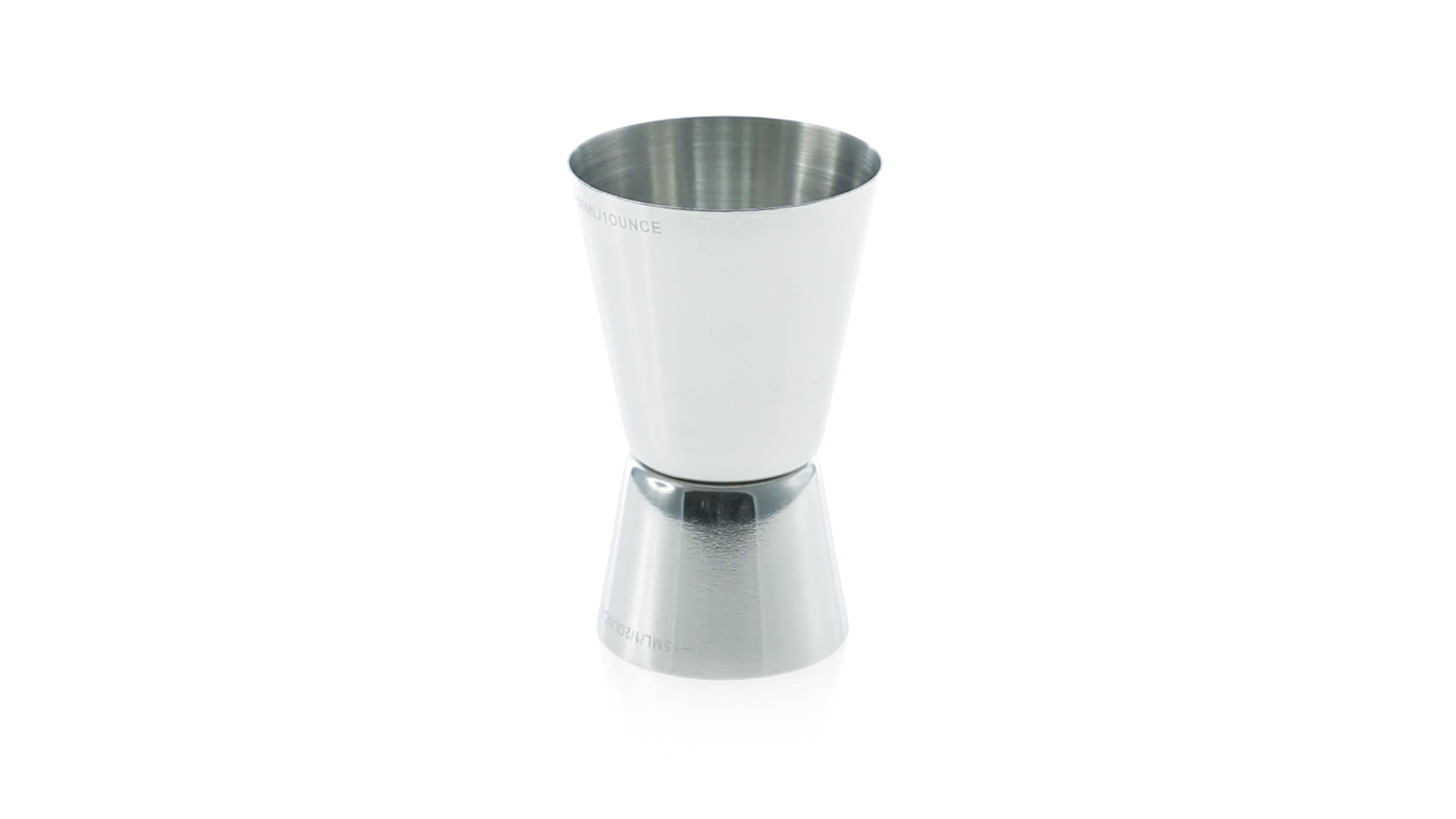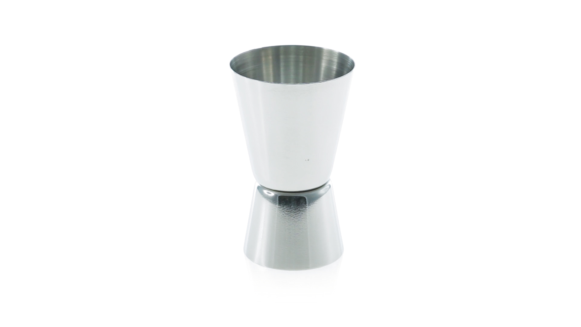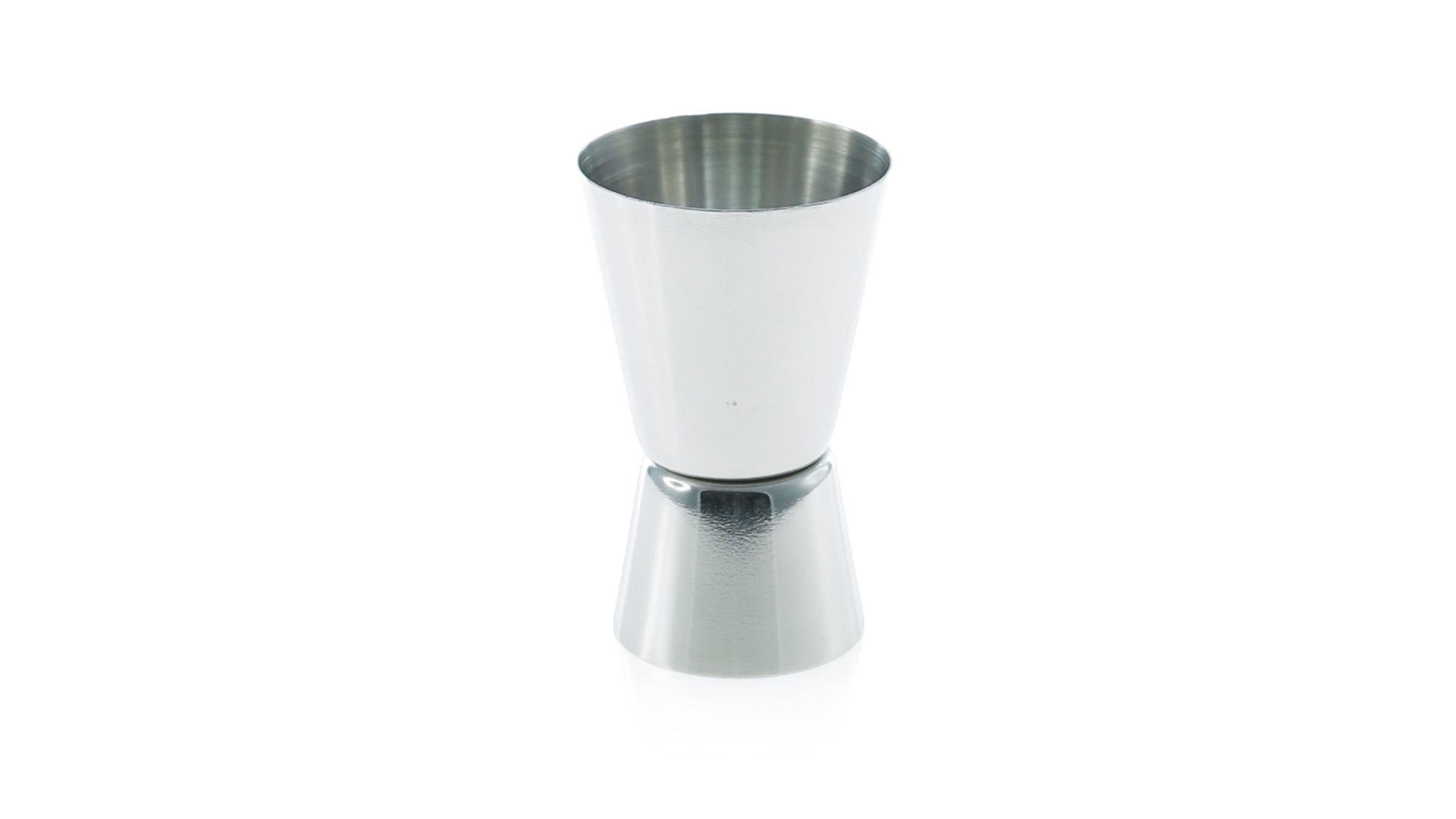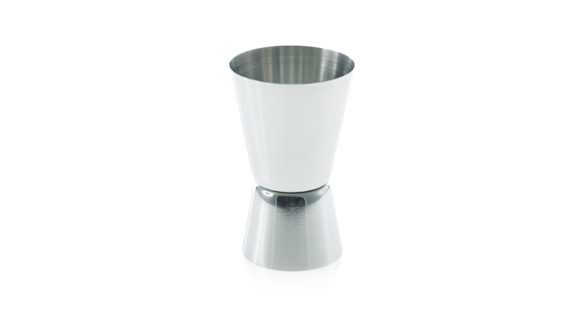 Doppelmessbecher aus Edelstahl mit mattem Finish. Speziell für den Laserdruck entwickelt. Präsentiert in einer PVC-Schachtel.