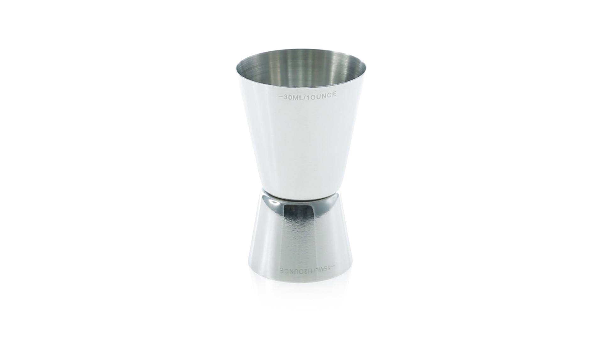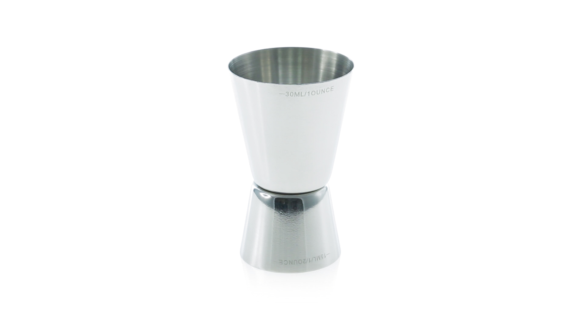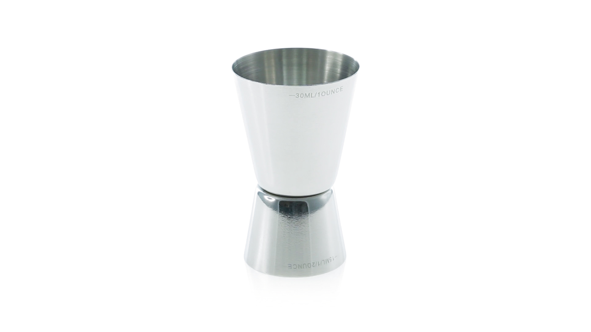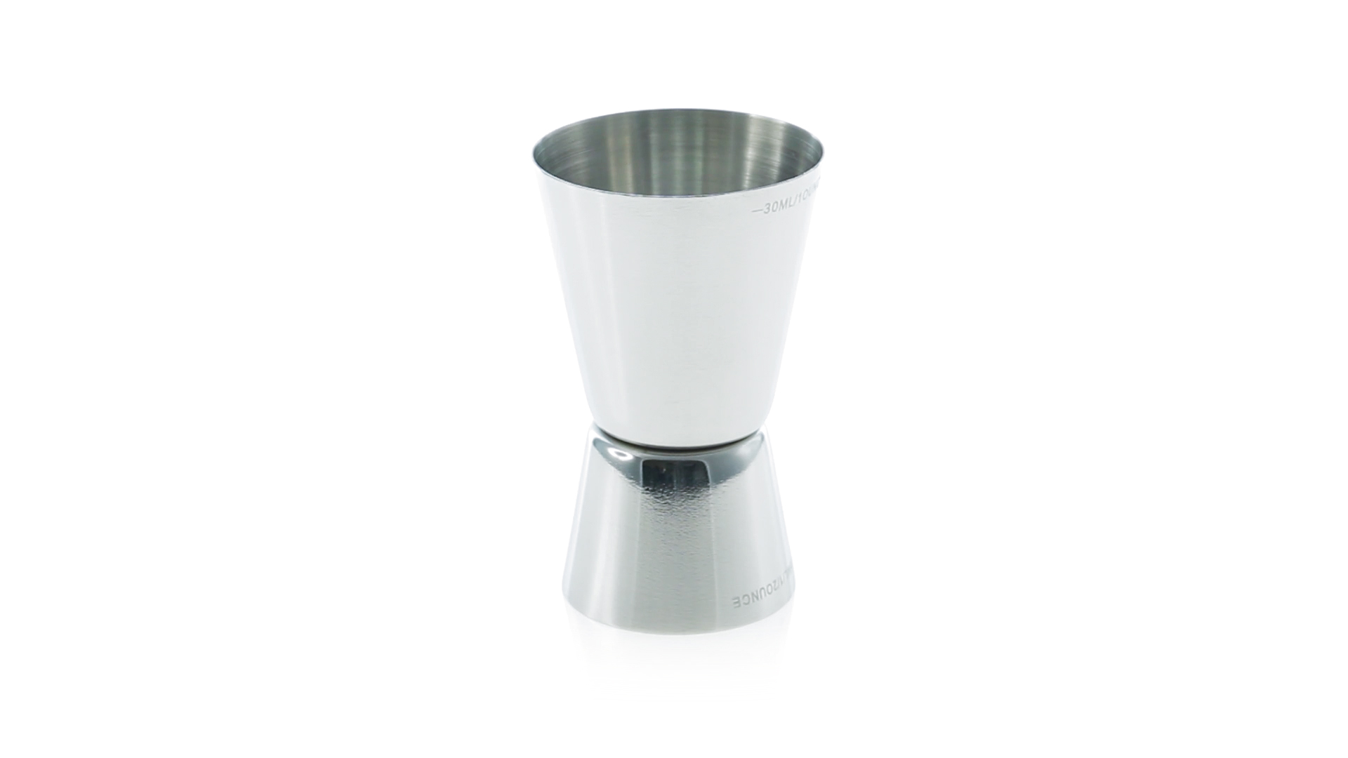 Doppelmessbecher aus Edelstahl mit mattem Finish. Speziell für den Laserdruck entwickelt. Präsentiert in einer PVC-Schachtel.
