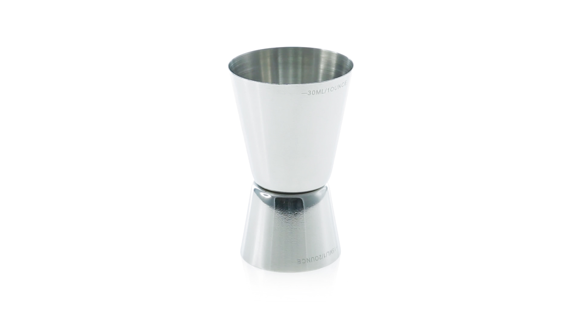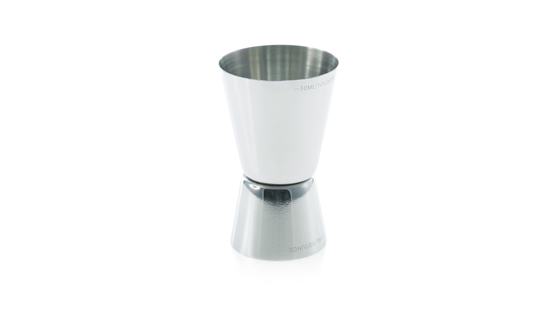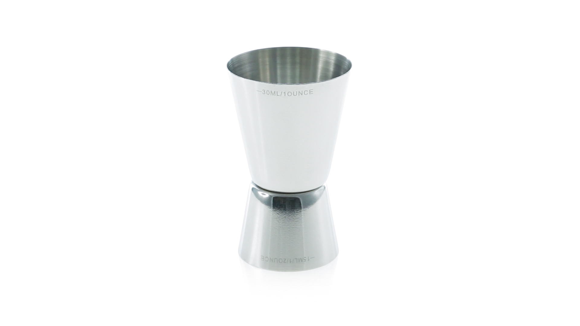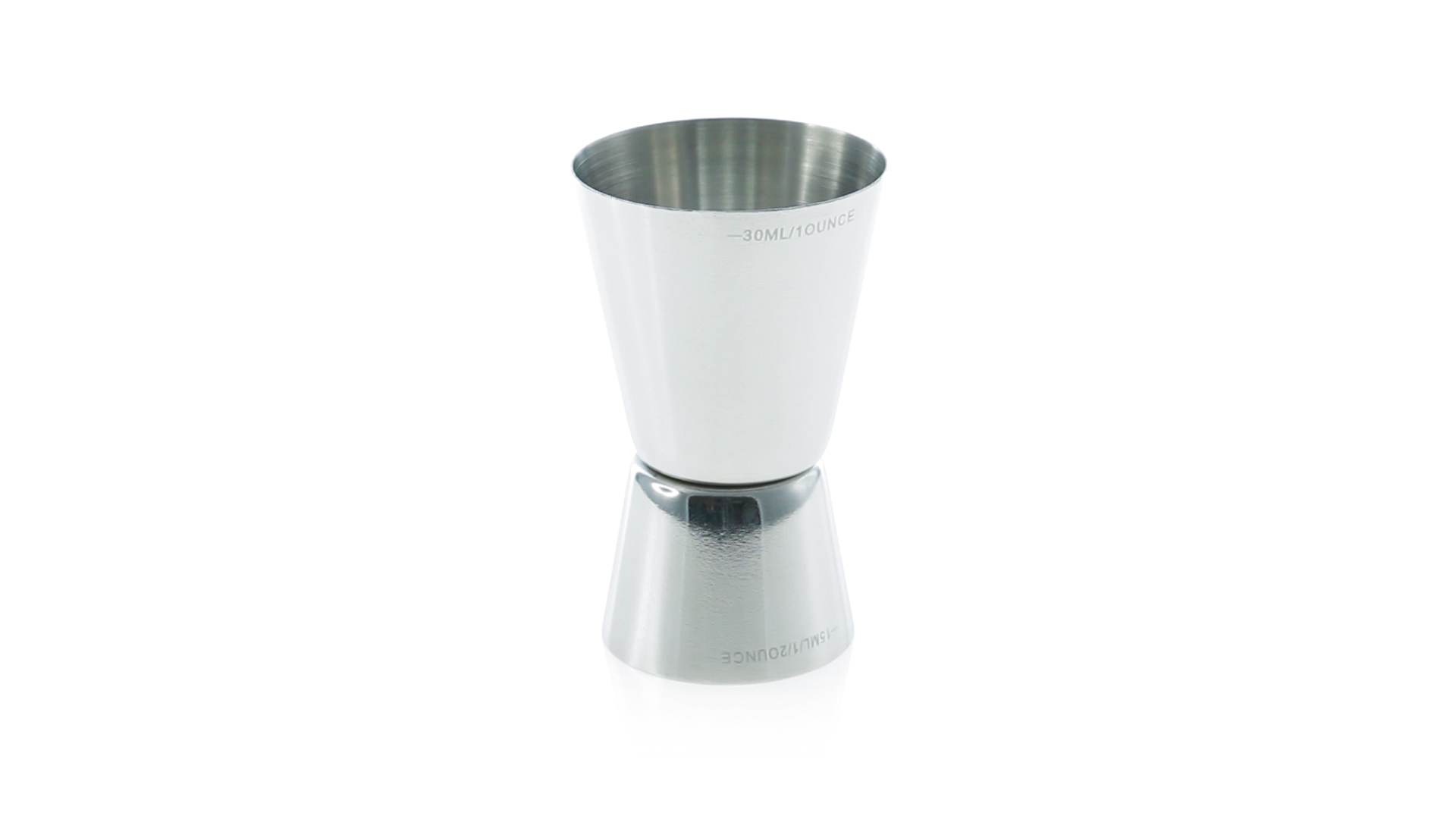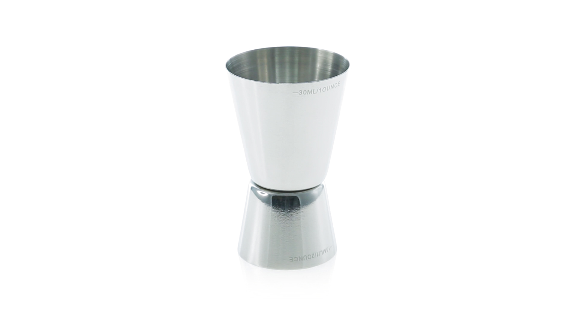 Doppelmessbecher aus Edelstahl mit mattem Finish. Speziell für den Laserdruck entwickelt. Präsentiert in einer PVC-Schachtel.