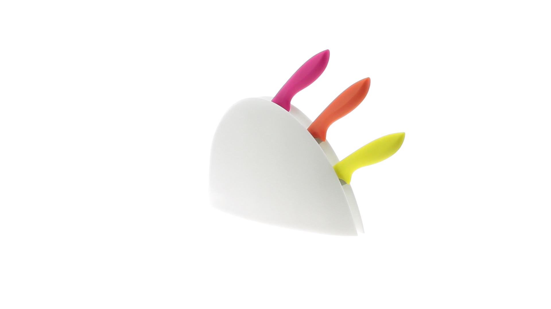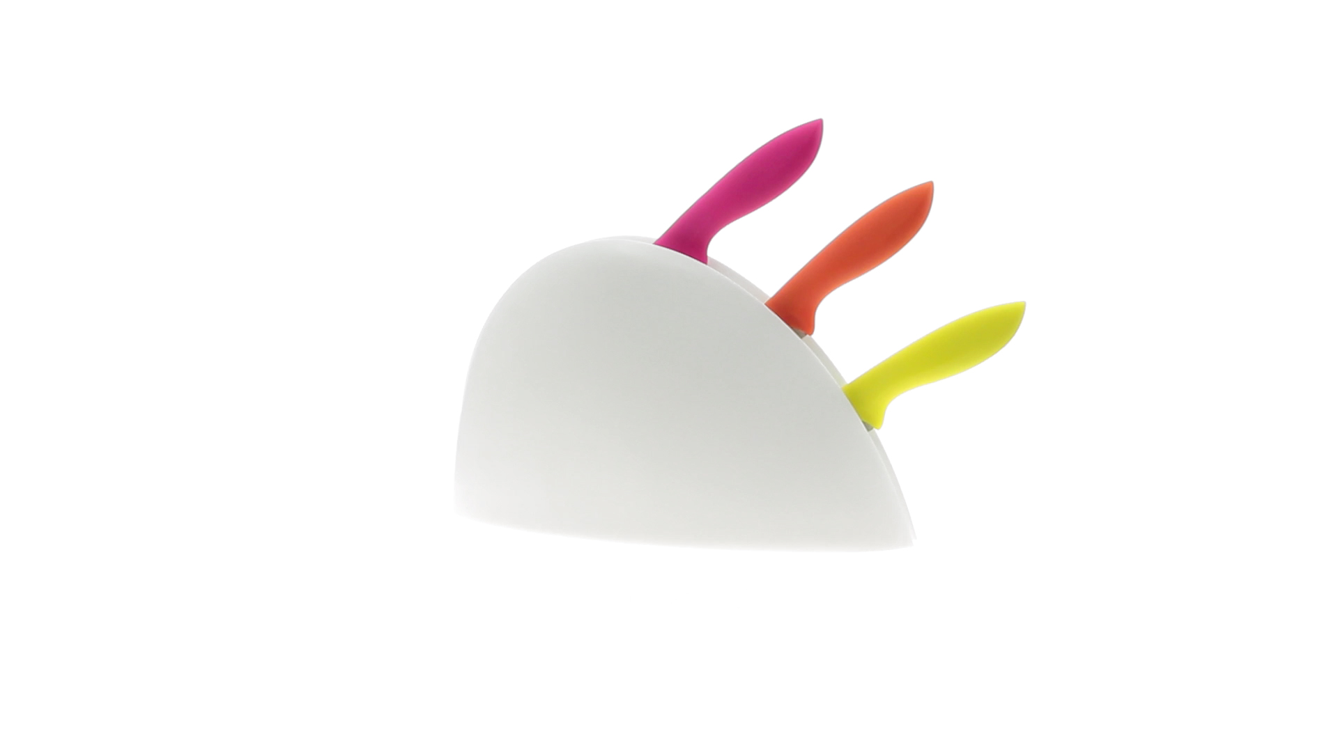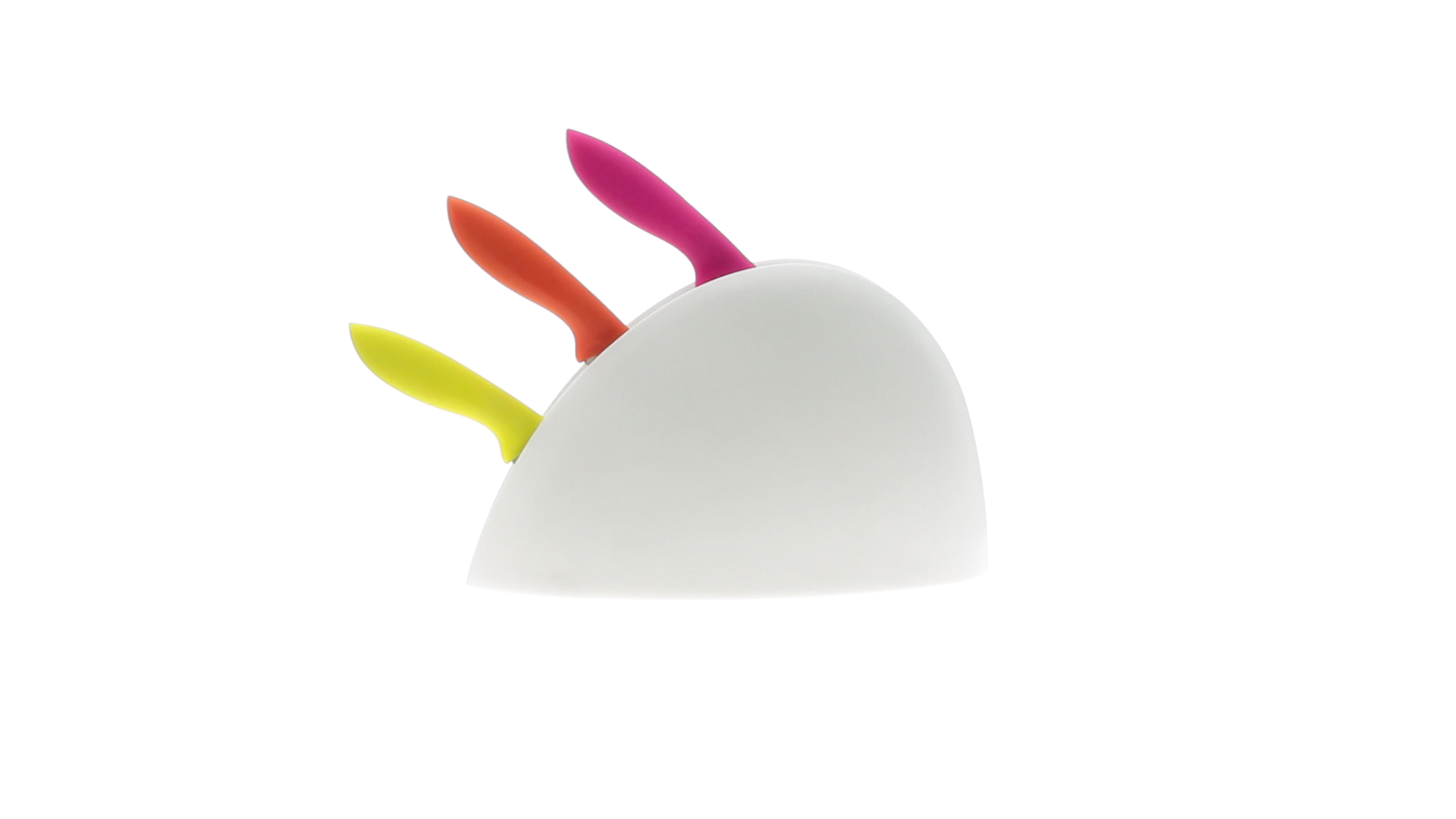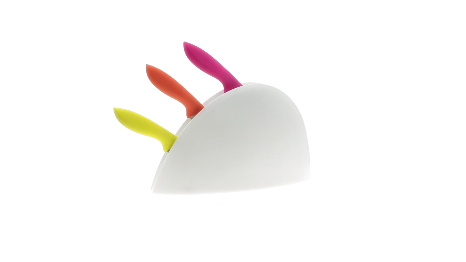 Messerset mit Messern von verschiedener Grösse und unterschiedlichen Klingen aus Edelstahl. Mit weichem, ergonomischem Griff in lebendigen Farben und robustem Messerblock. Präsentiert in einer individuellen Box.