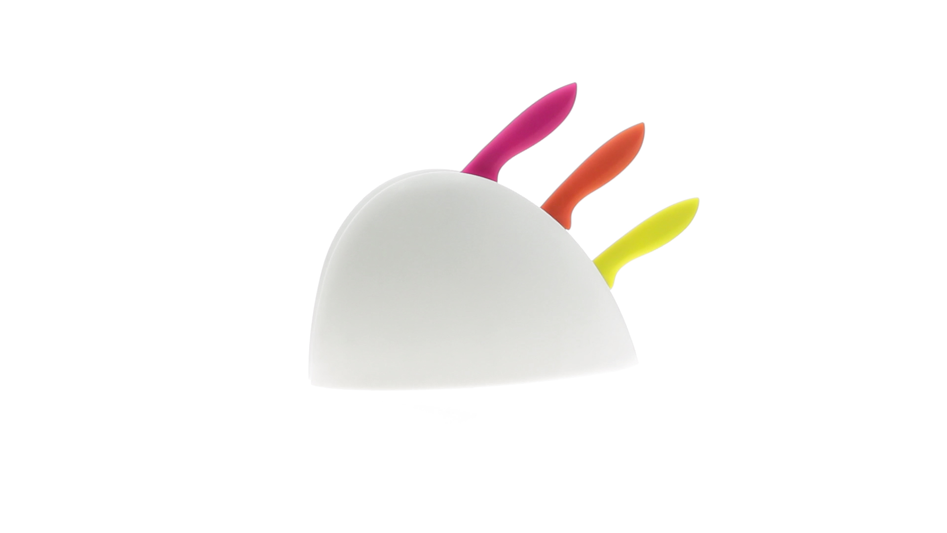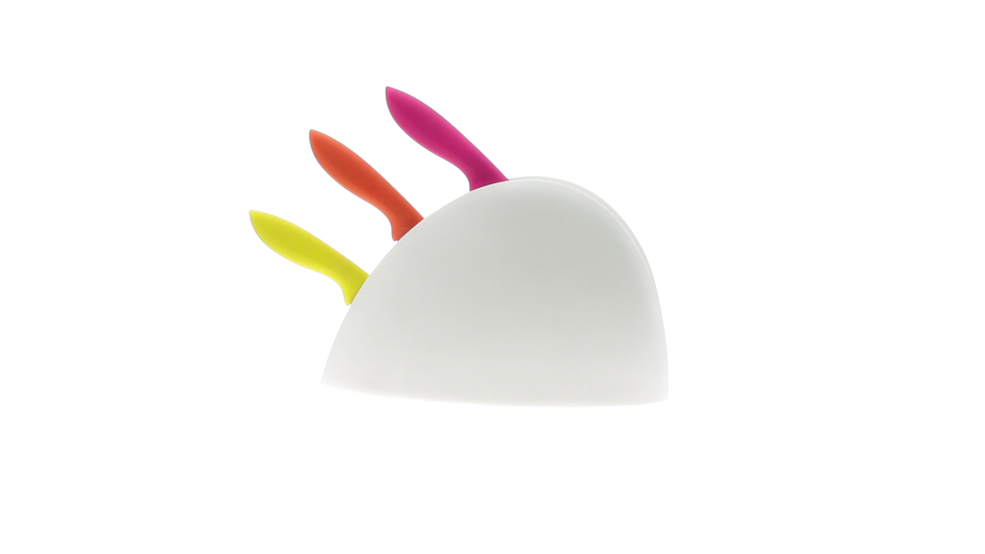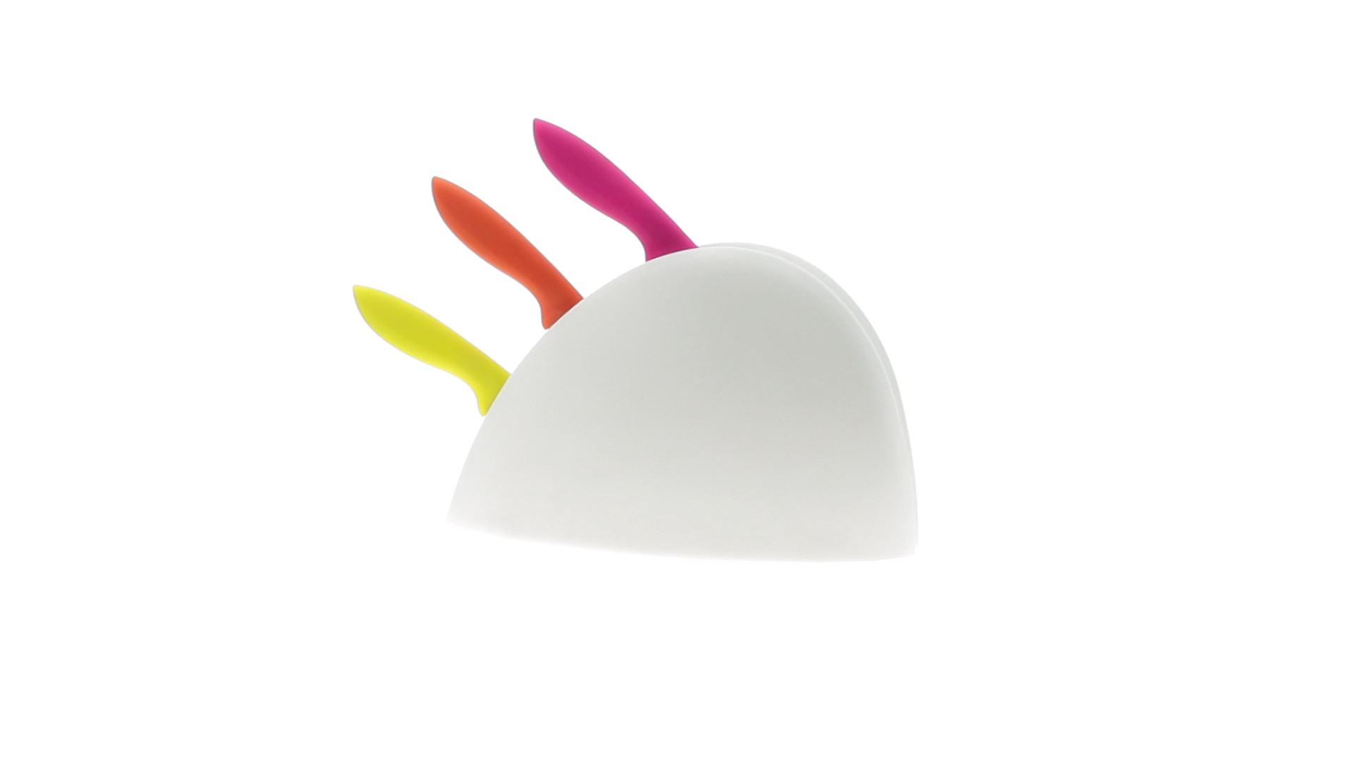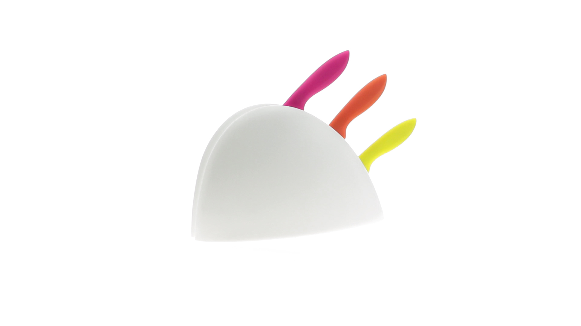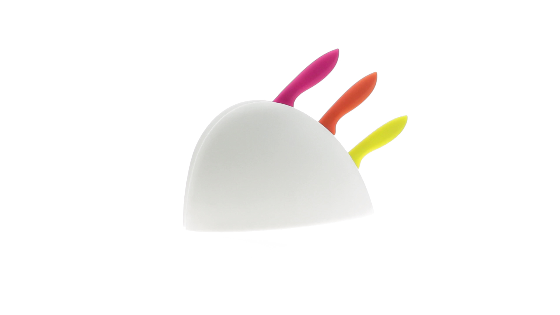 Messerset mit Messern von verschiedener Grösse und unterschiedlichen Klingen aus Edelstahl. Mit weichem, ergonomischem Griff in lebendigen Farben und robustem Messerblock. Präsentiert in einer individuellen Box.